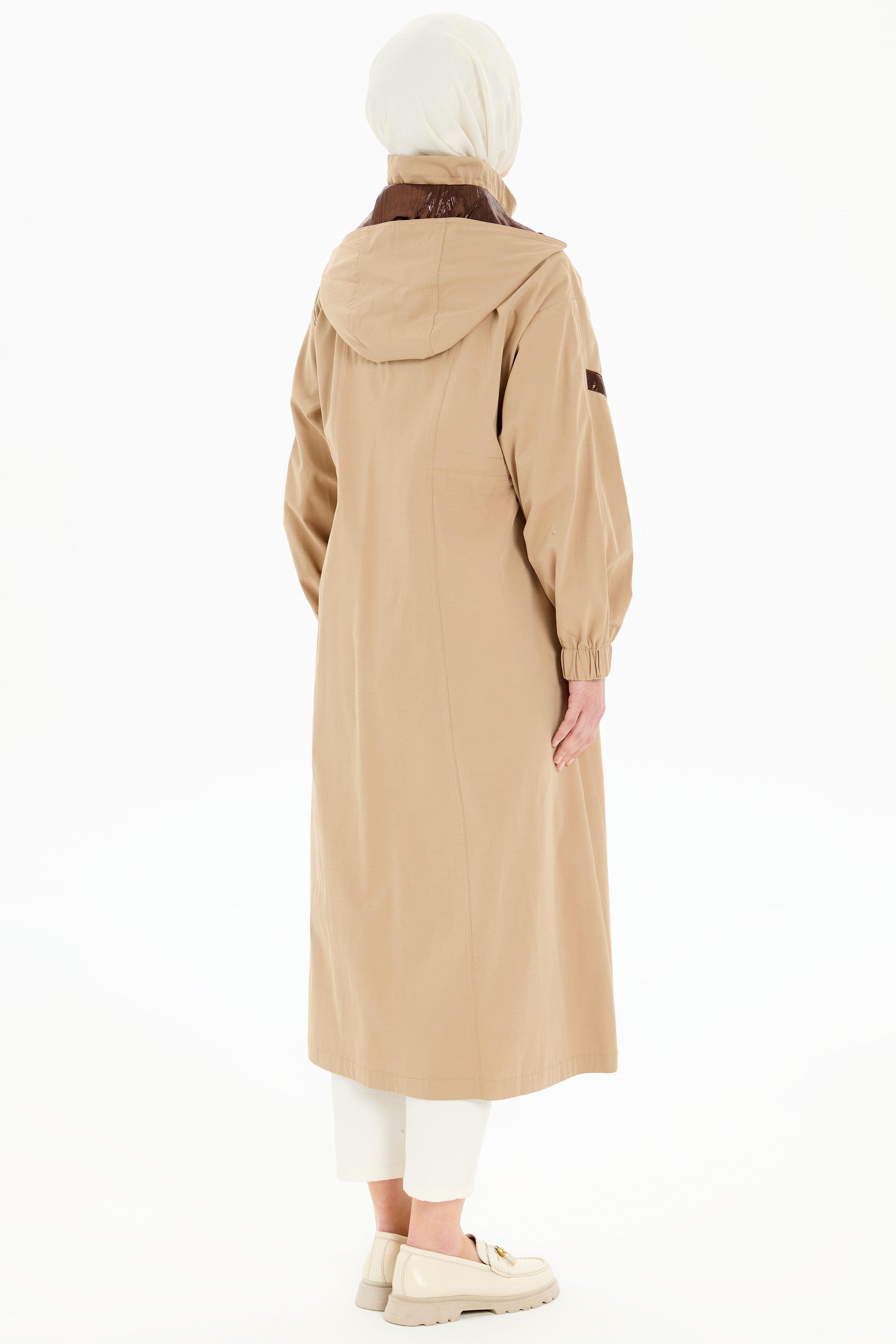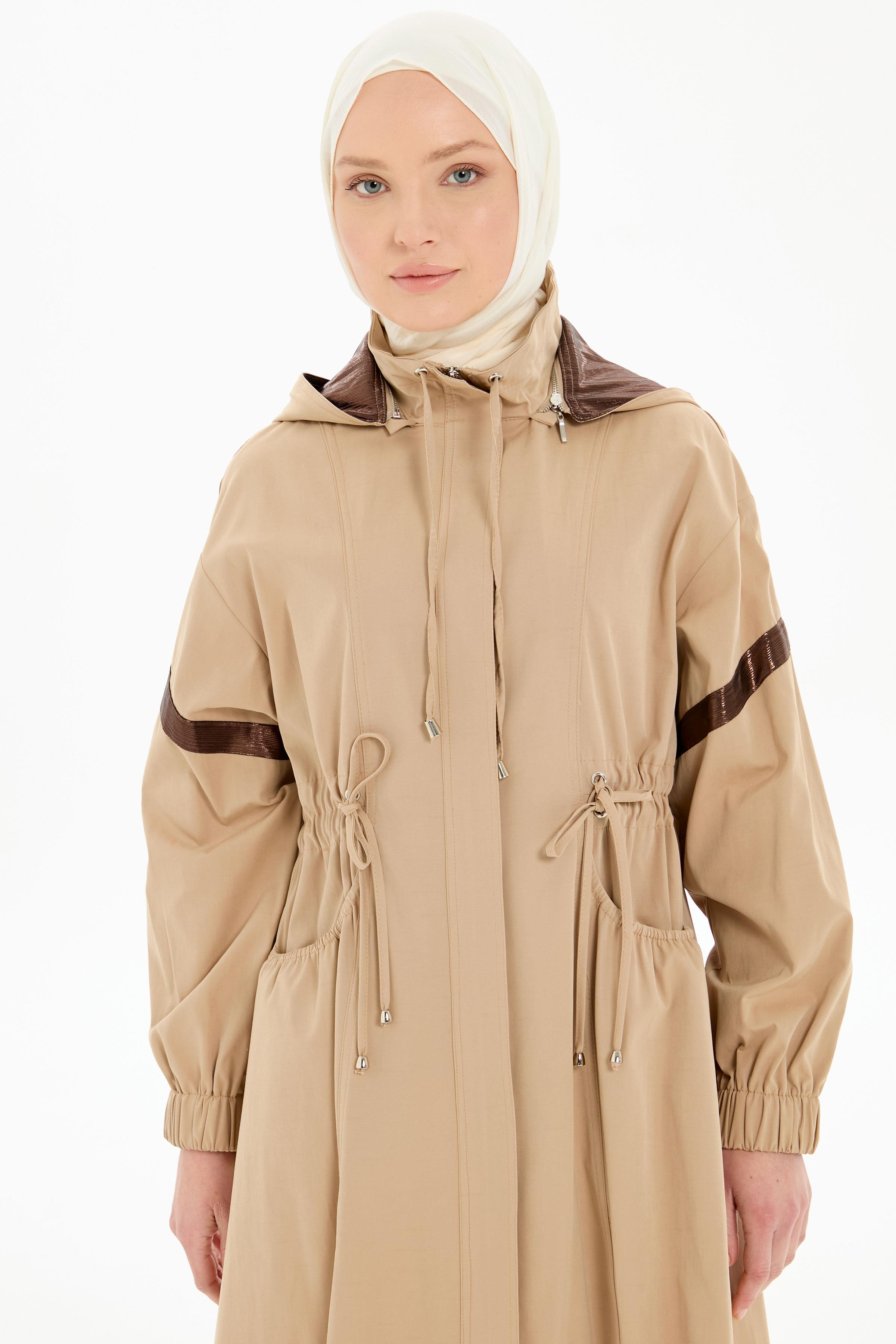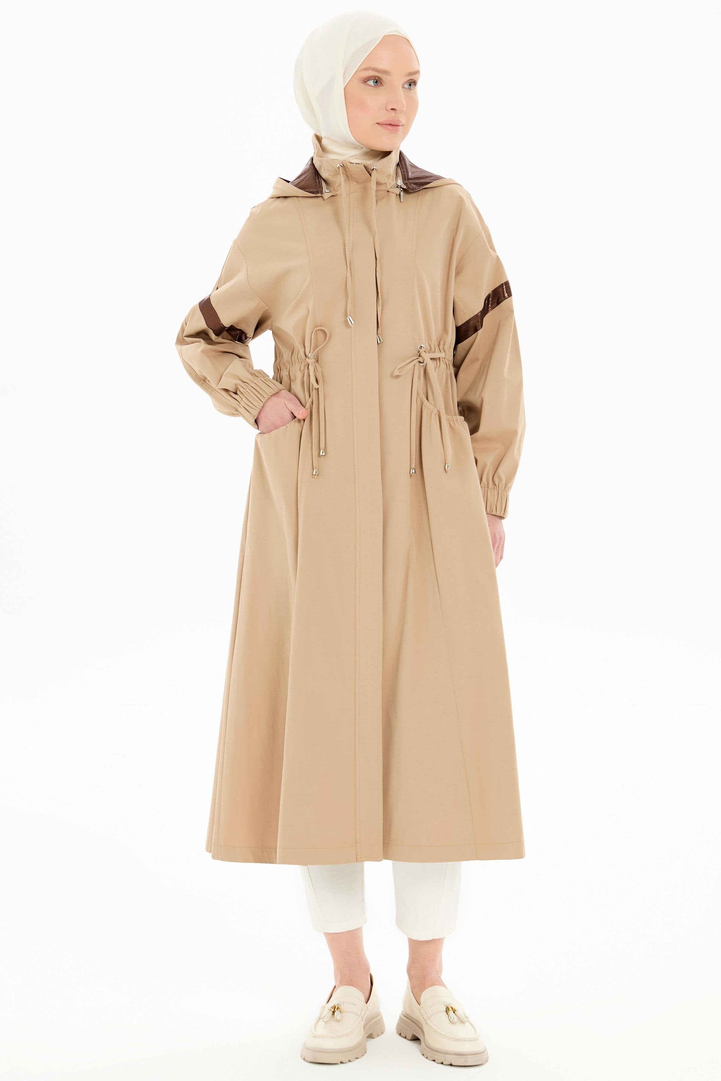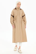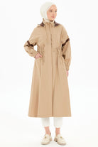 Bel Büzgülü Garnili Yağmurluk - Bej