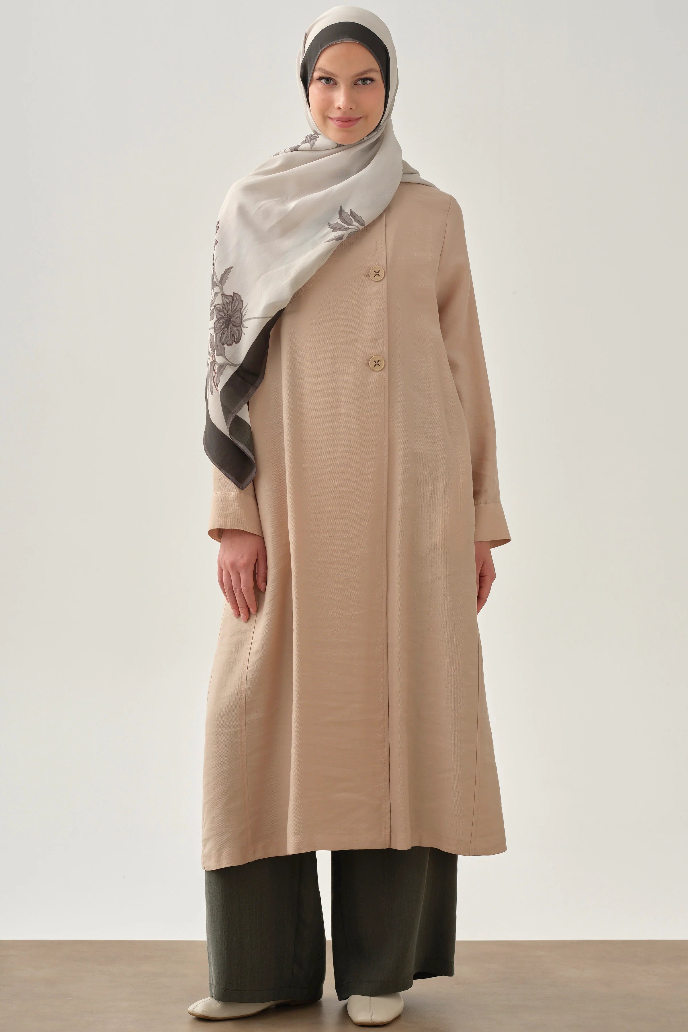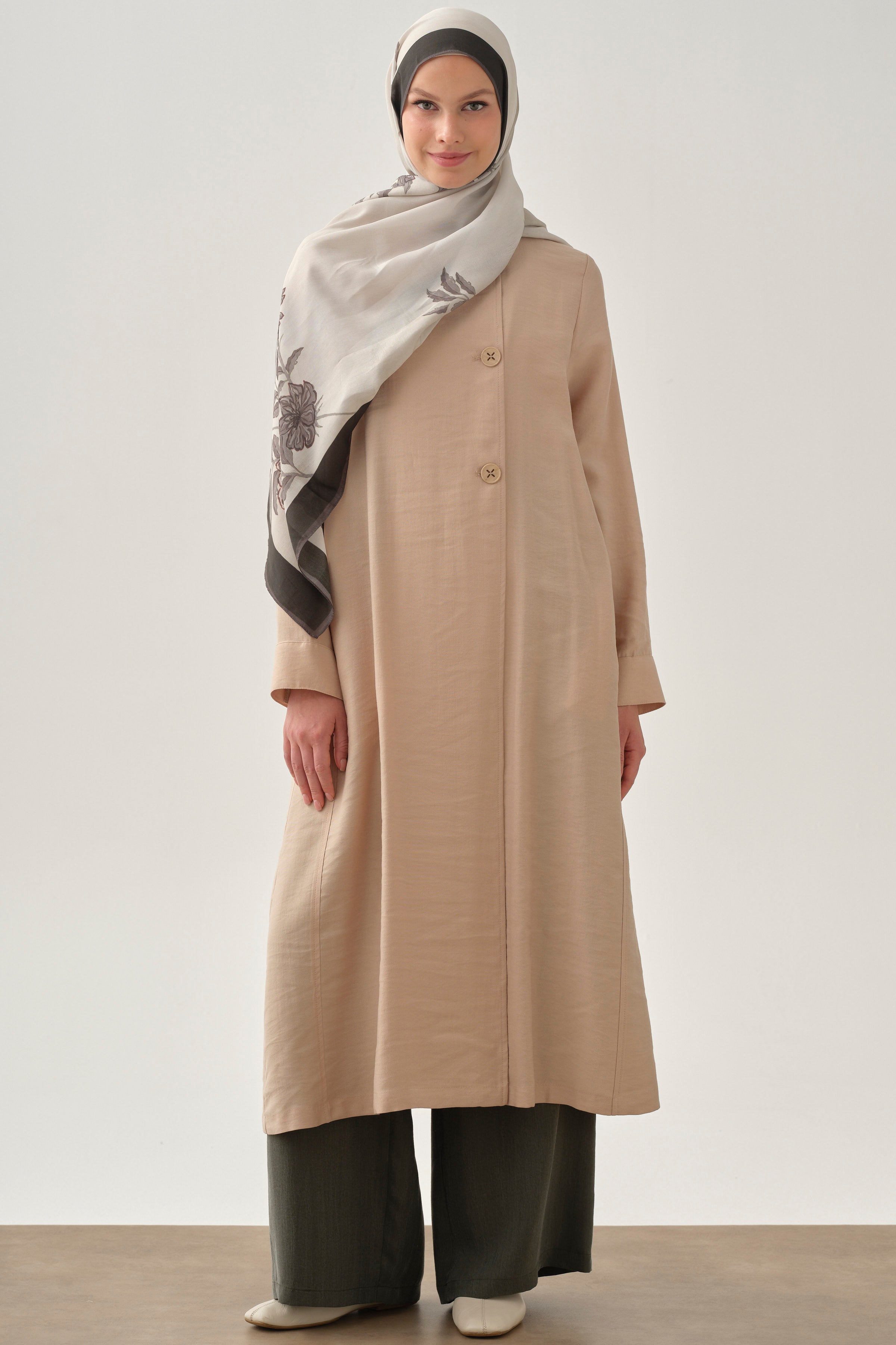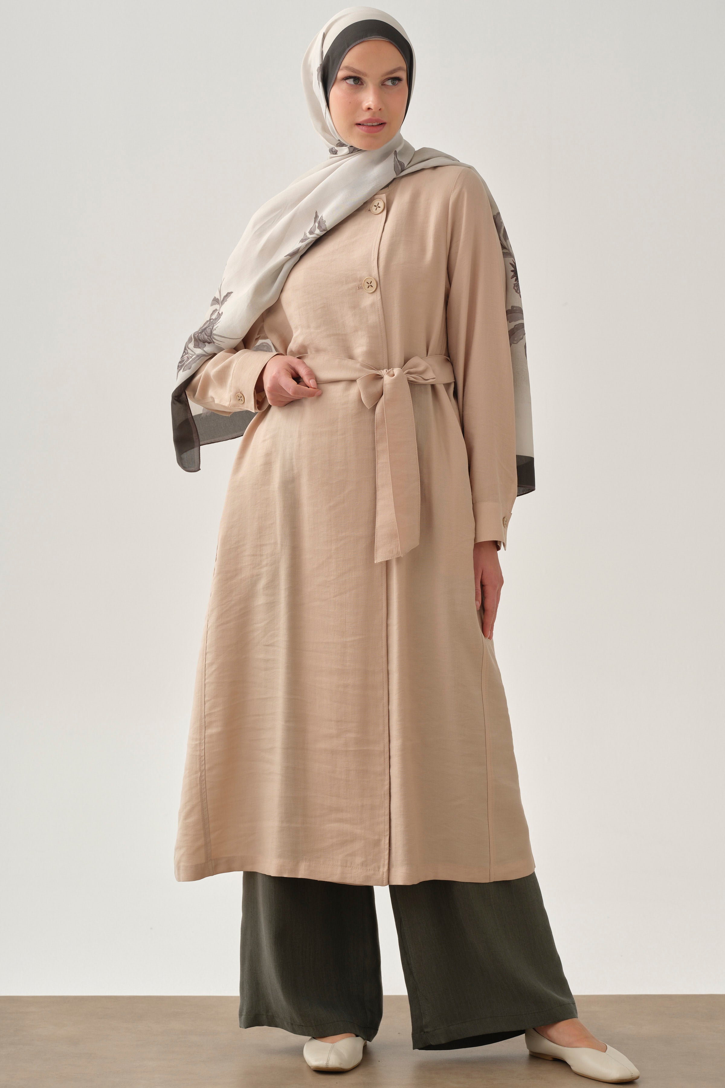 Düğme Detaylı Kruvaze Giy-Çık - Bej