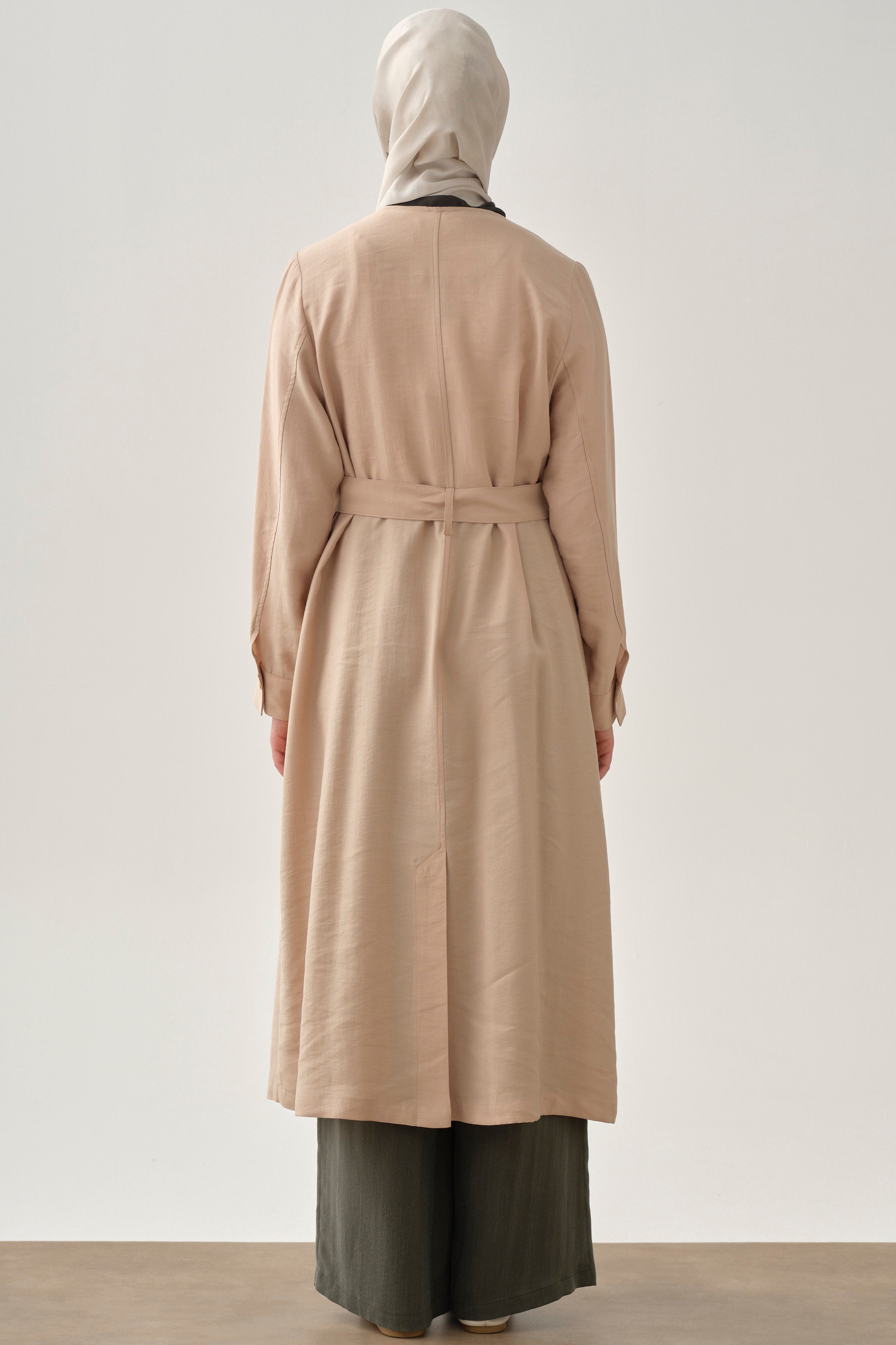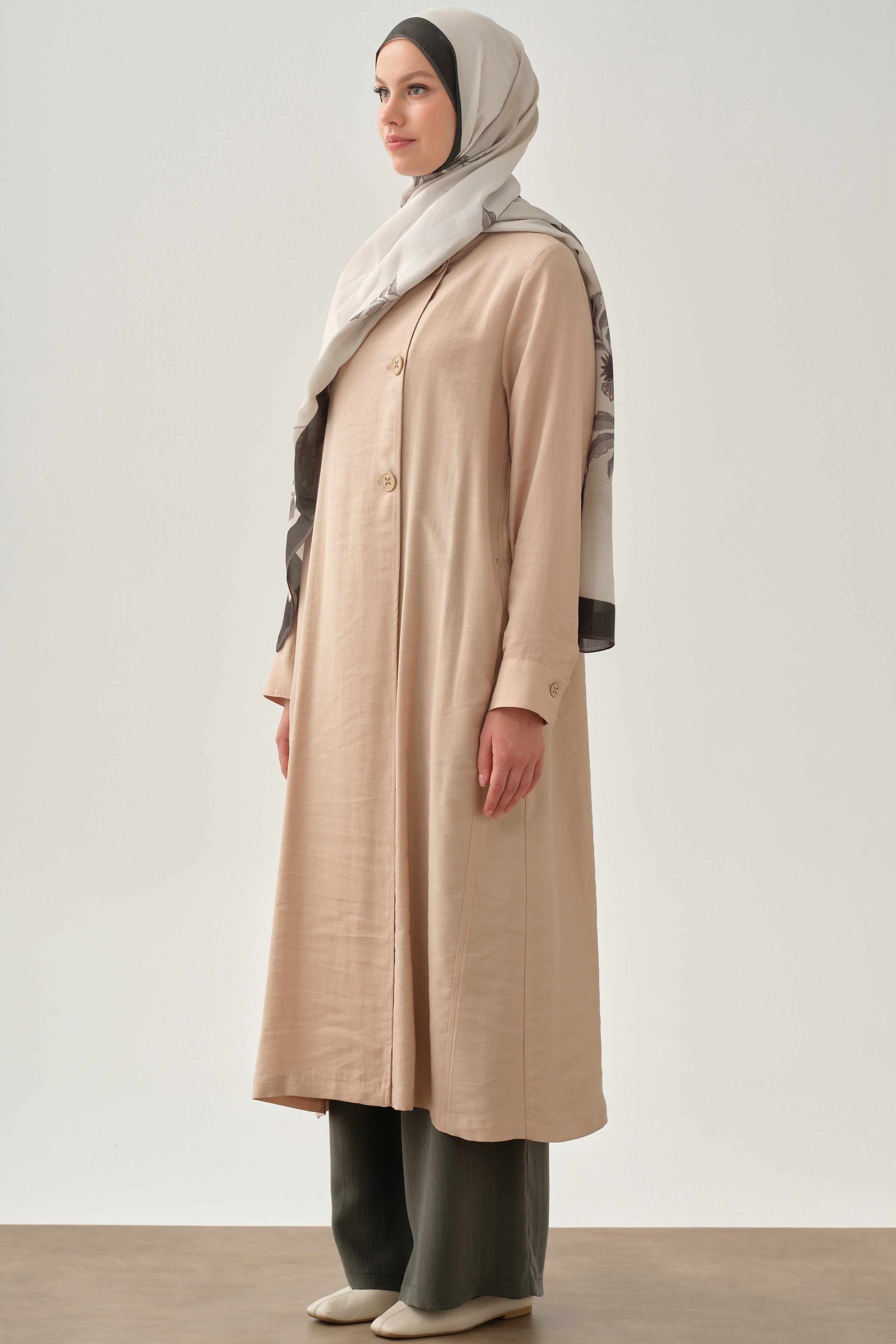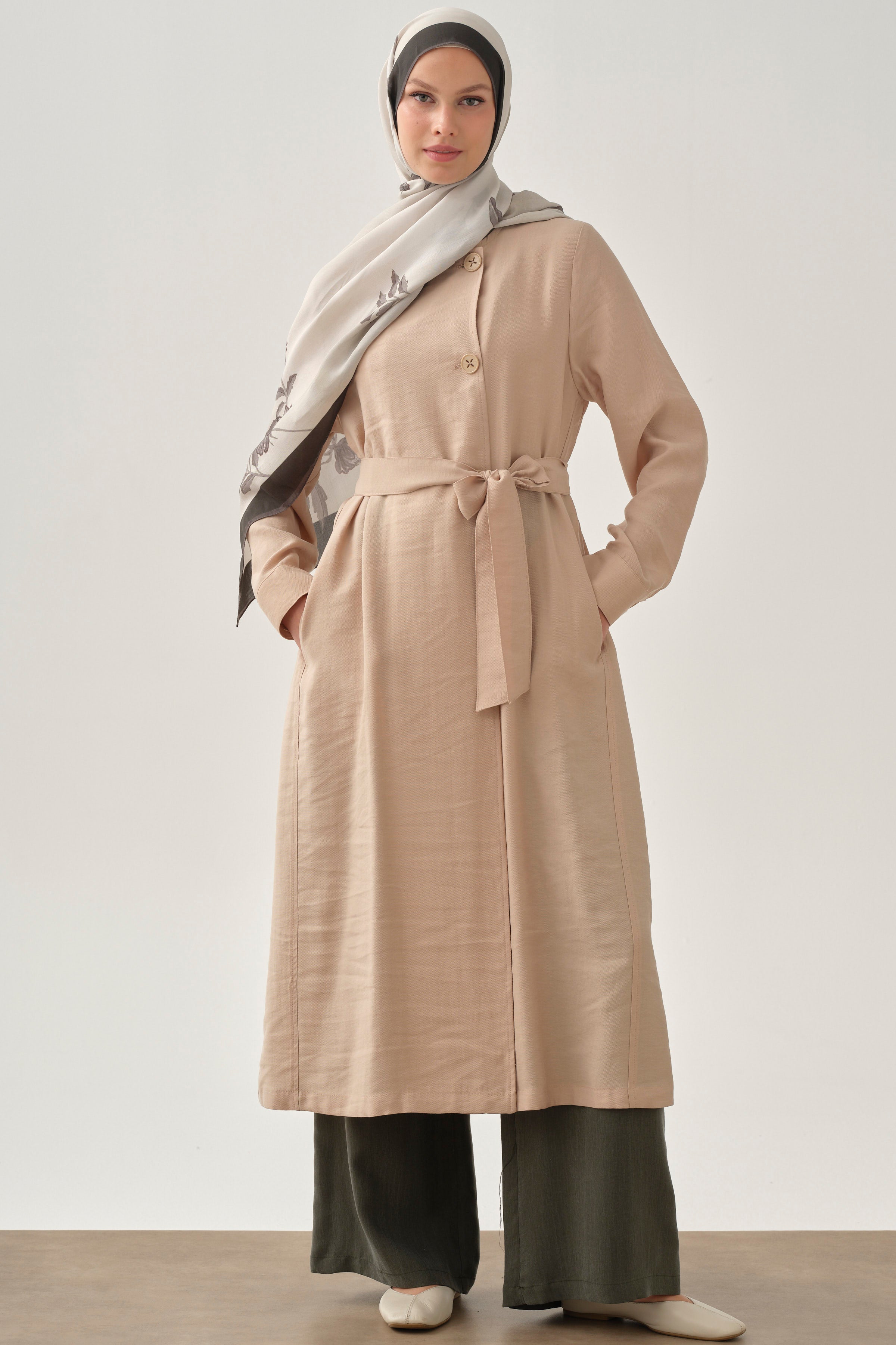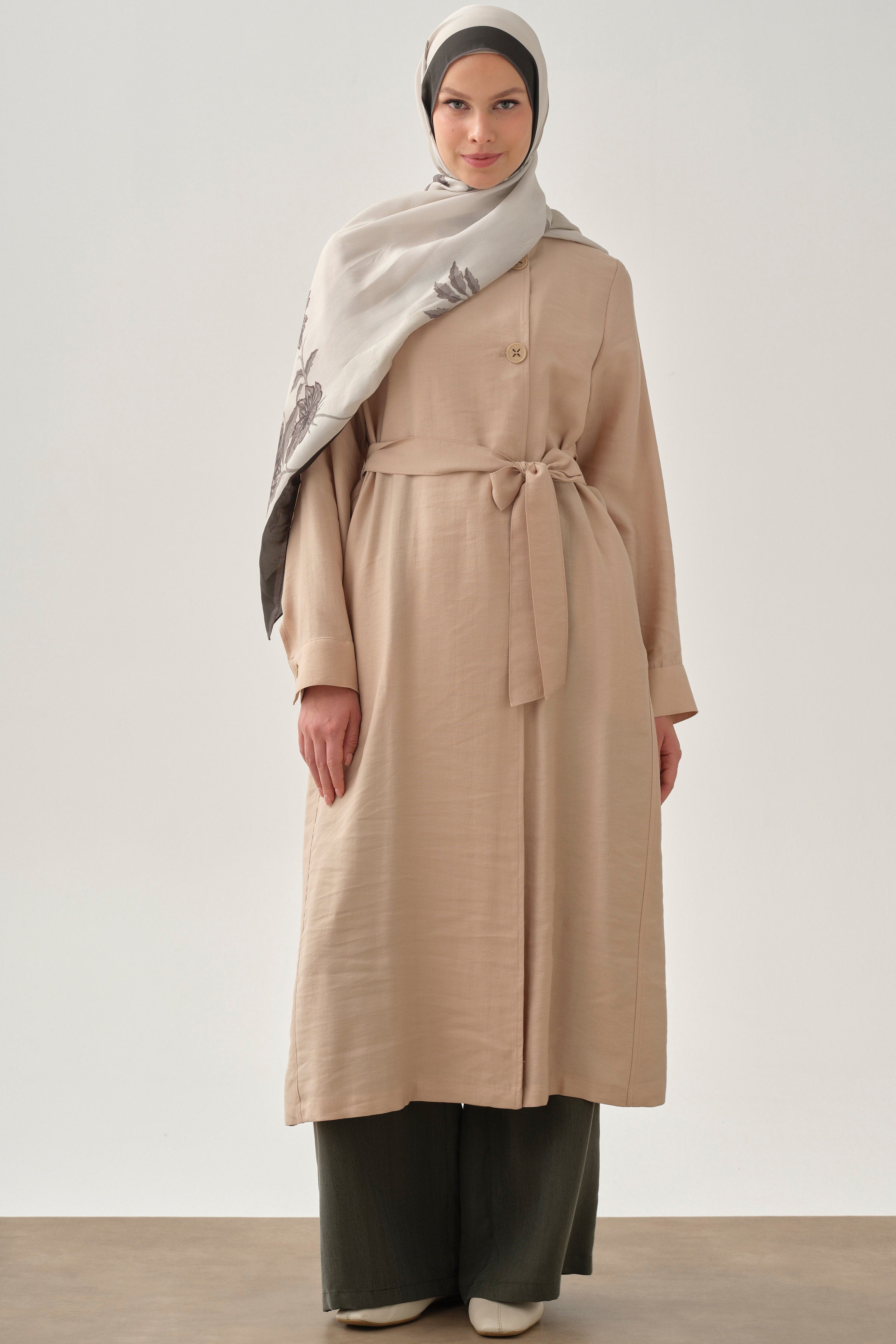Düğme Detaylı Kruvaze Giy-Çık - Bej