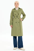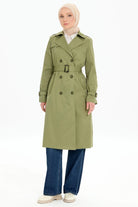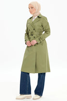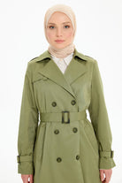 Kruvaze Yaka Kemerli Klasik Trençkot - Haki