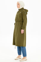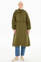 Lastik Detaylı Yağmurluk - Koyu Haki