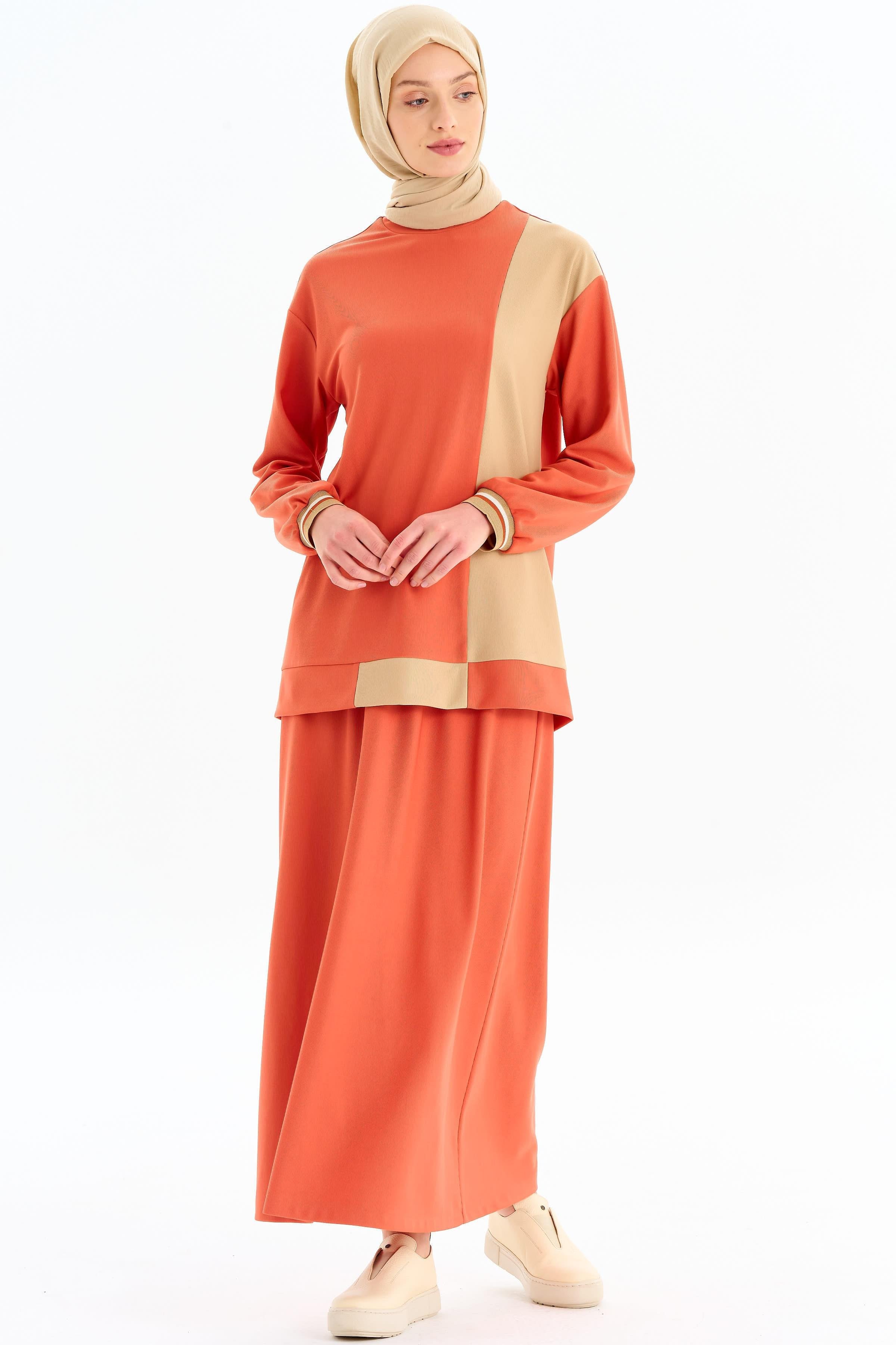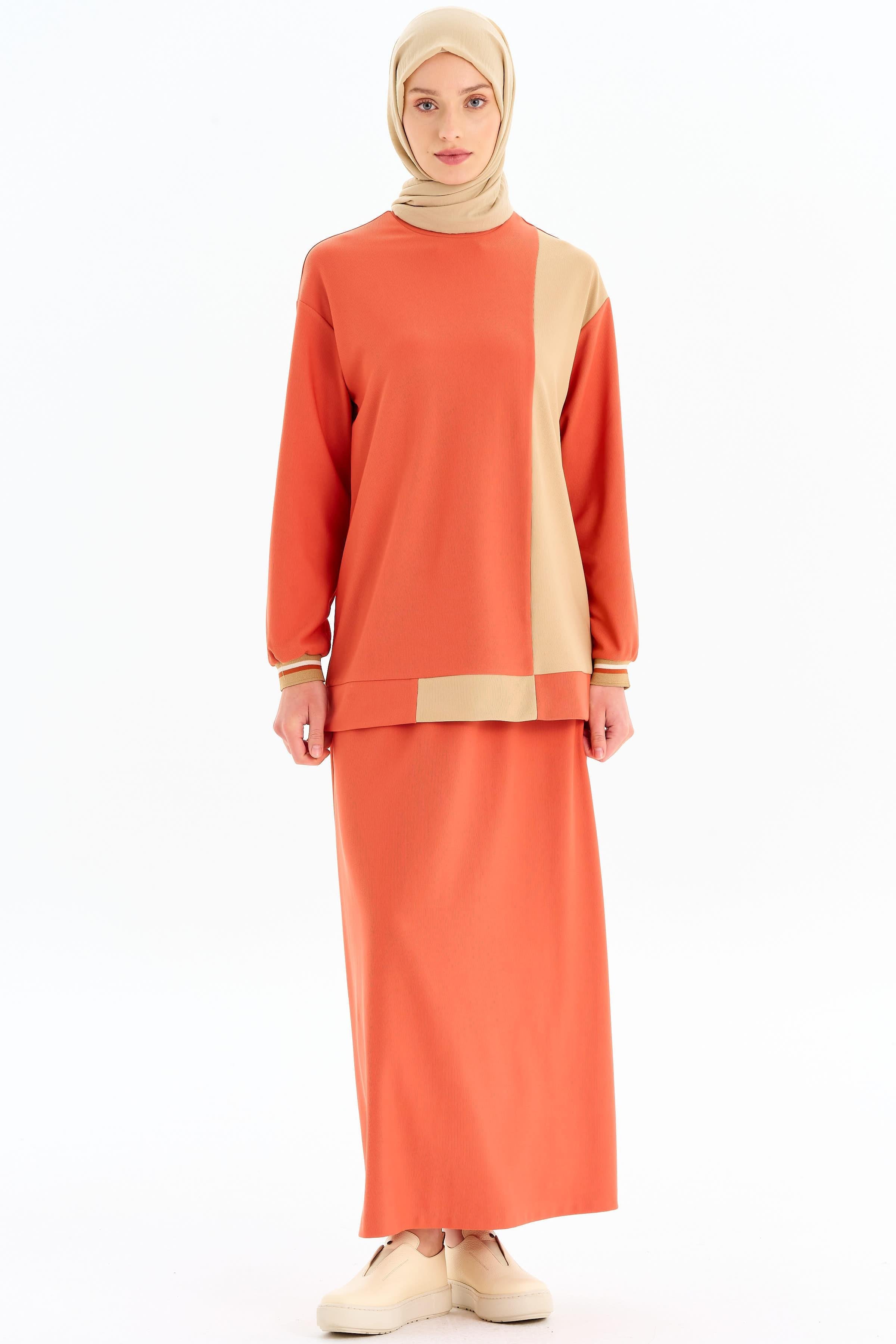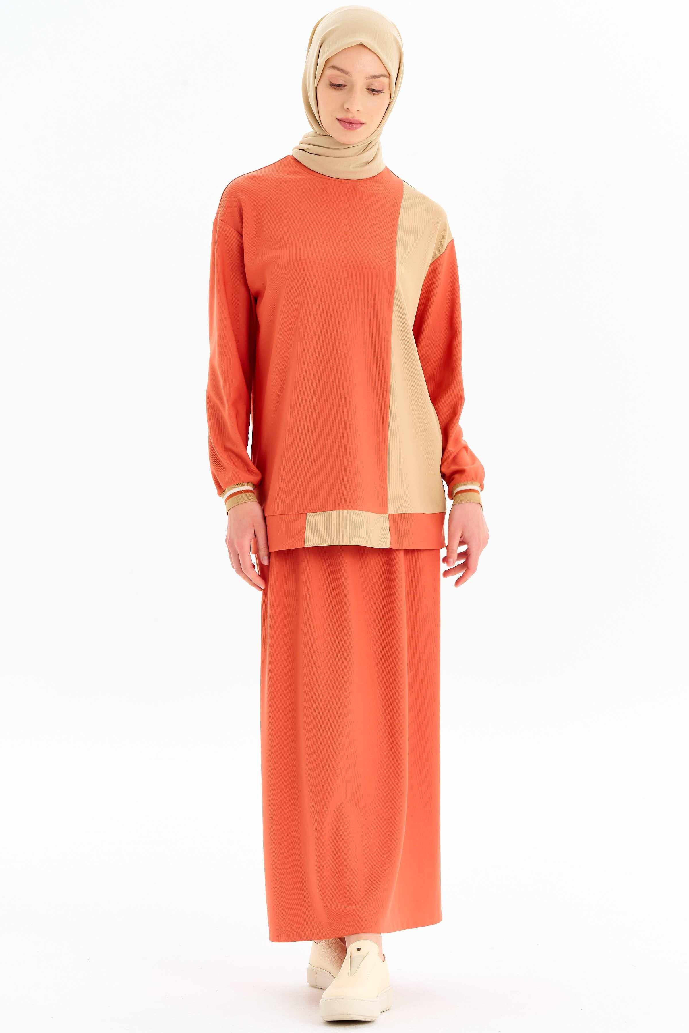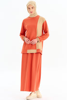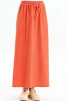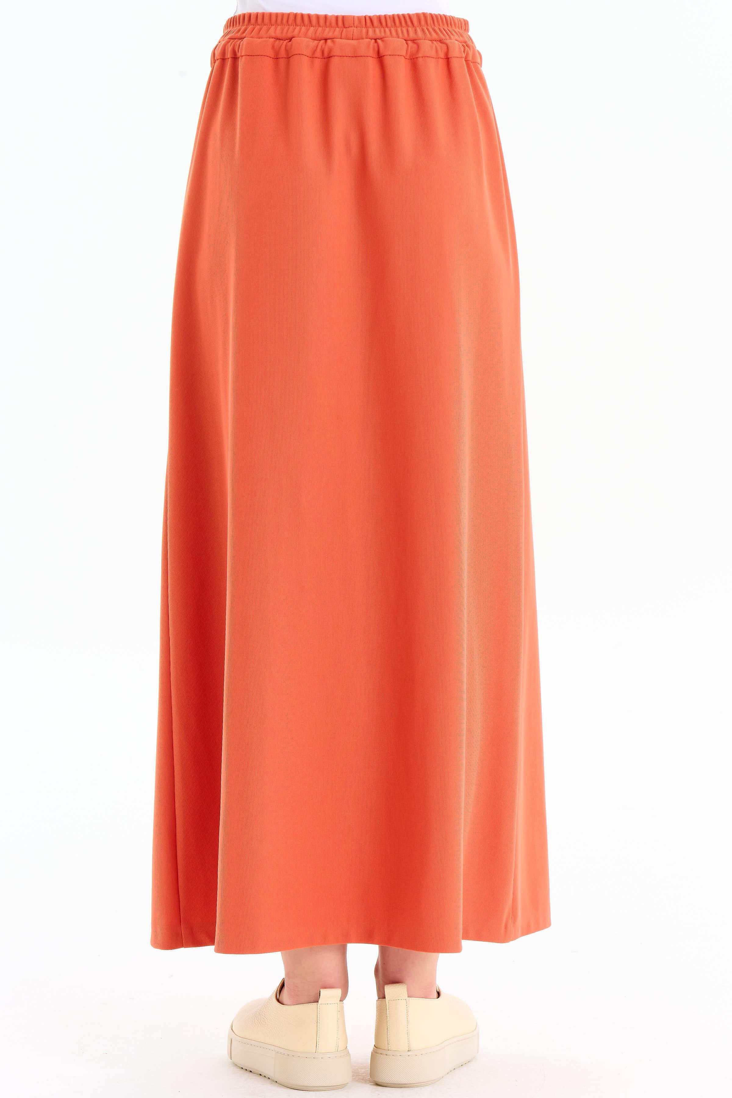 Bel Biye Bağcıklı Örme Etek - Turuncu