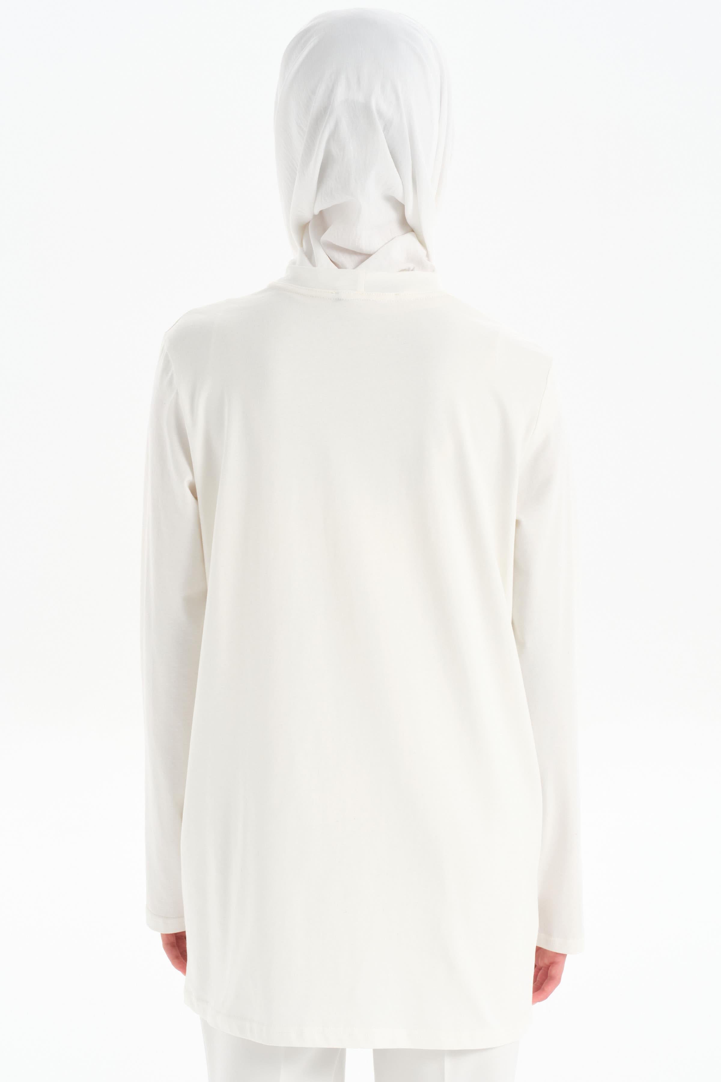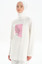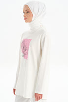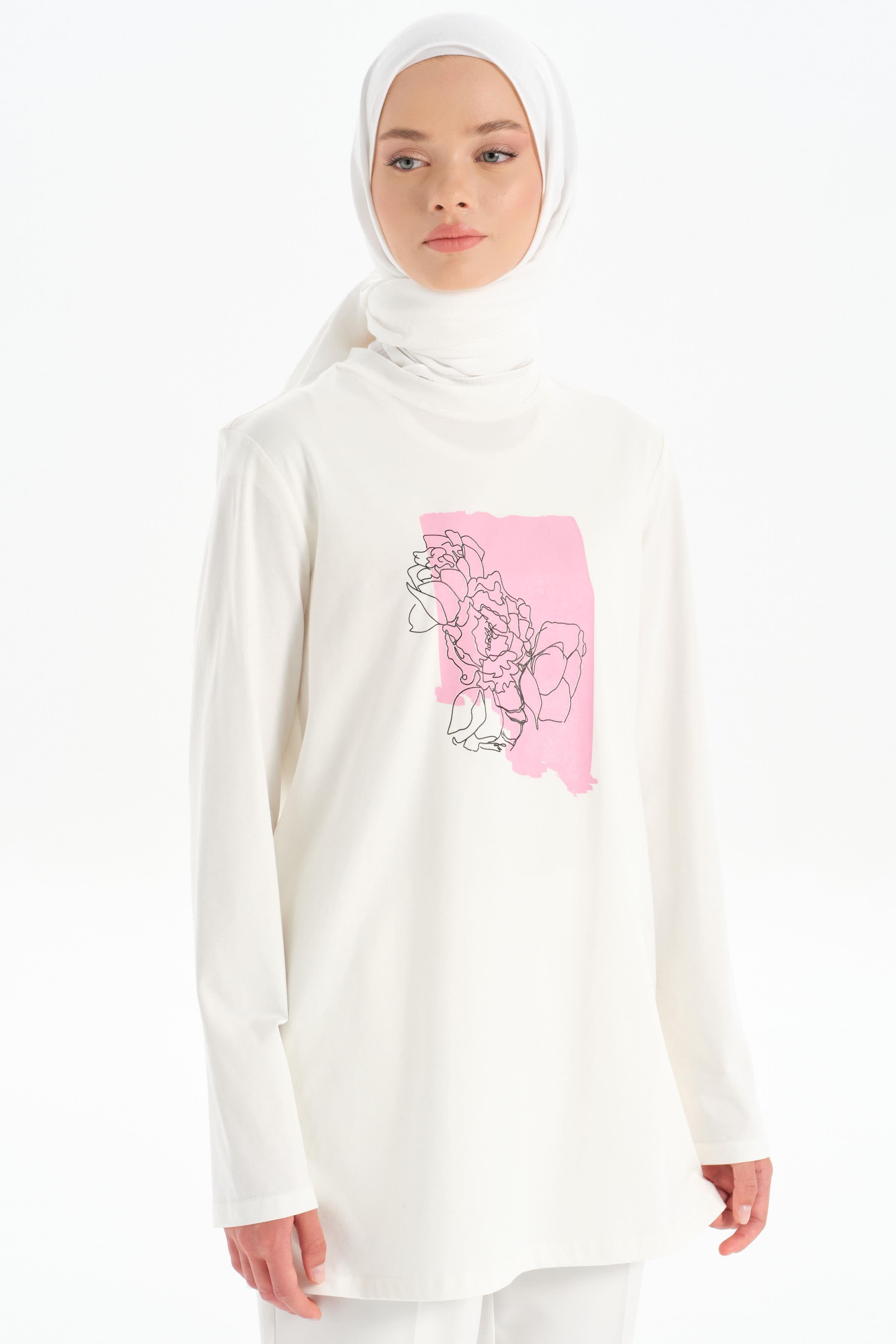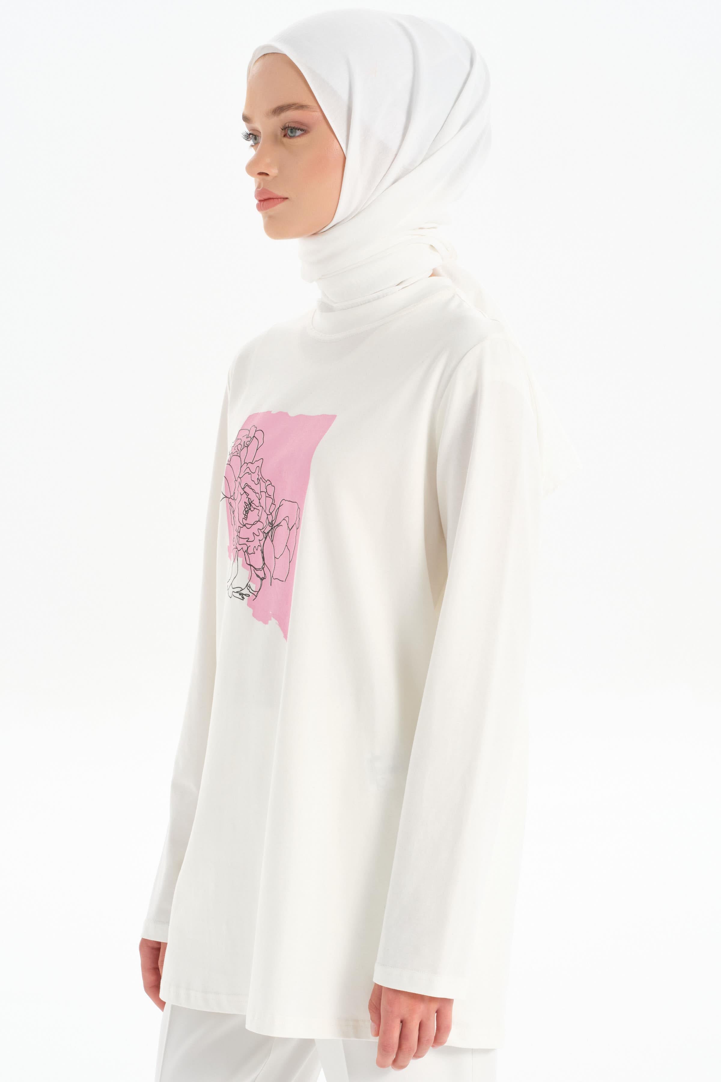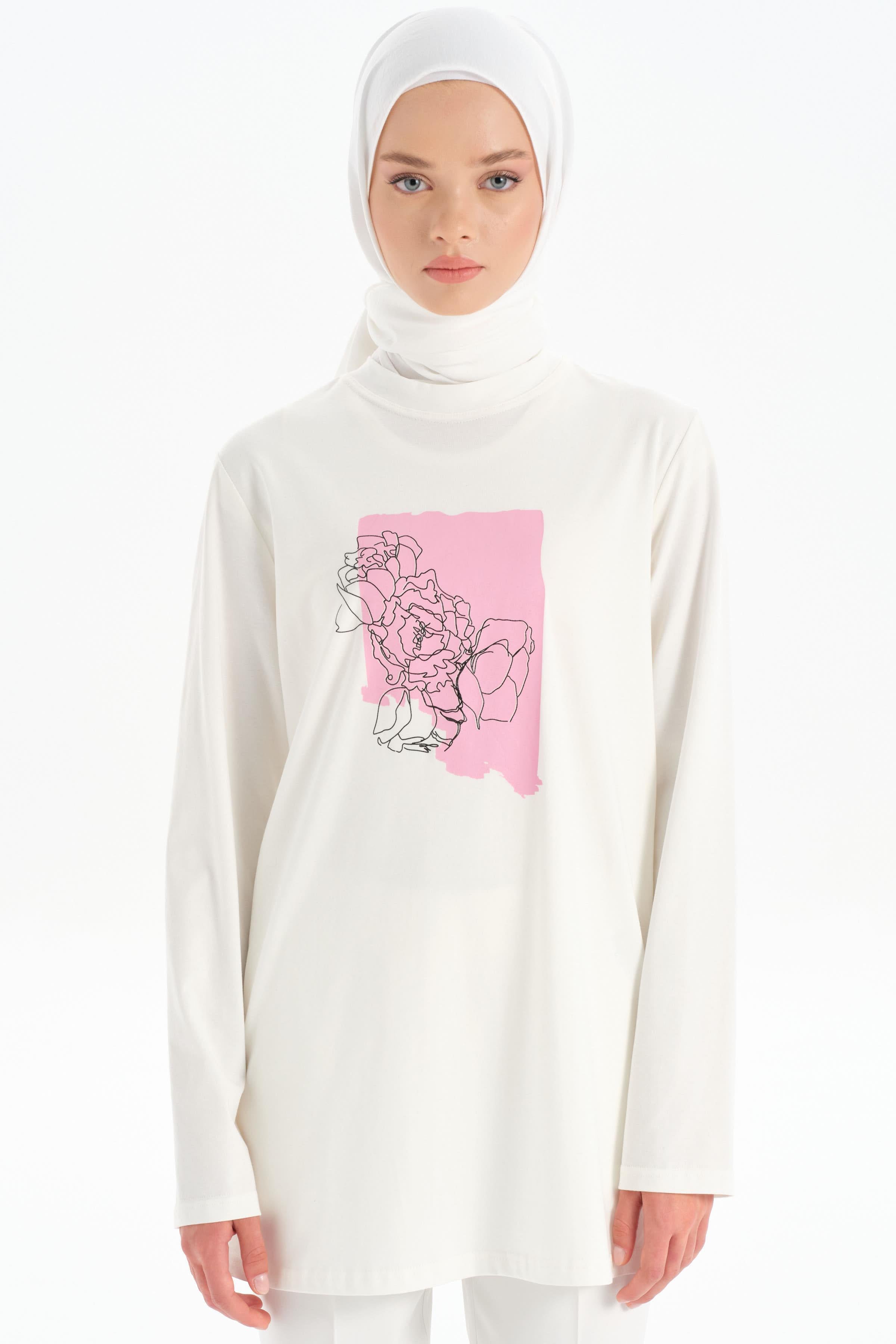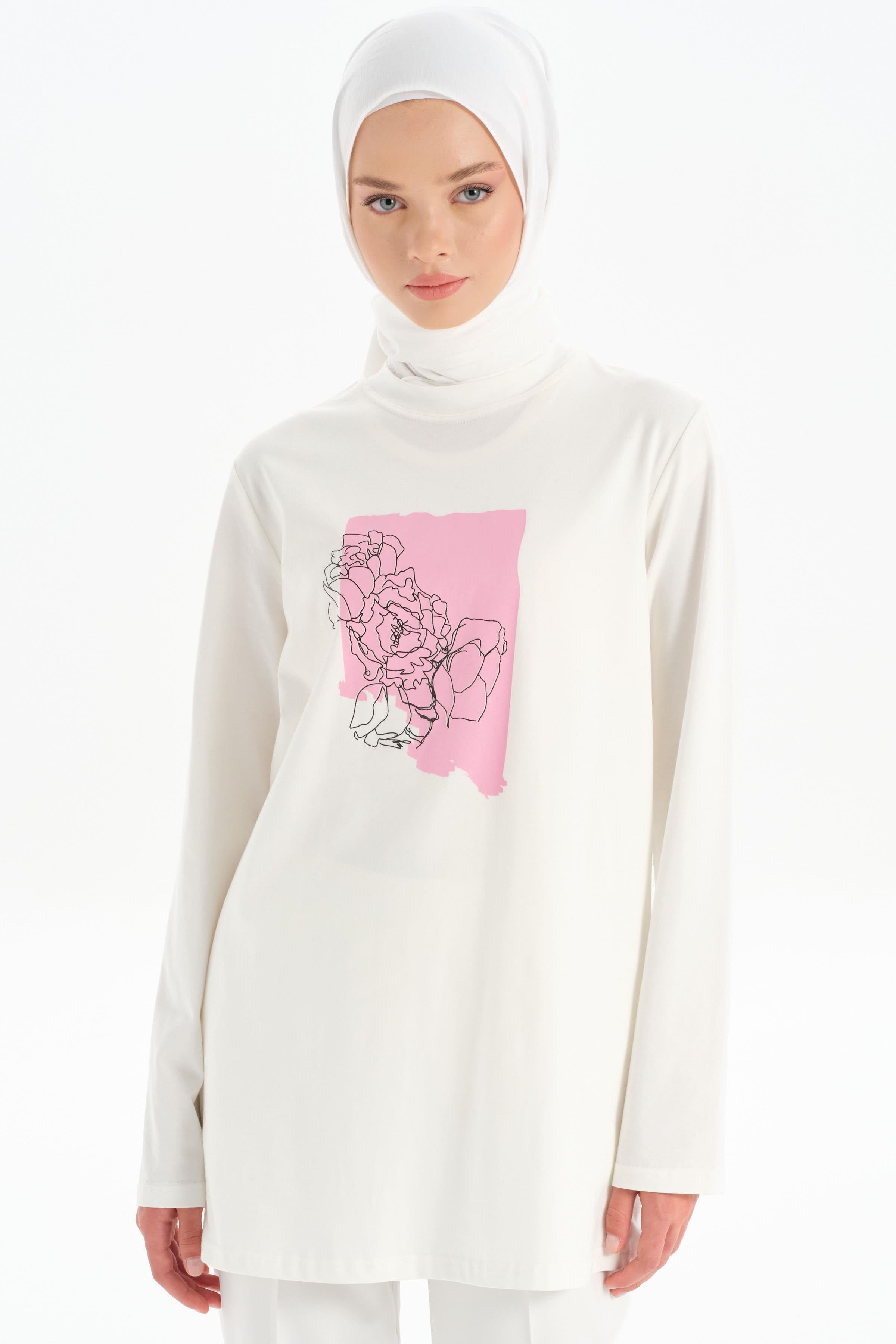 Desenli baskıları, bluzun genel stiline dinamik ve modern bir hava katarken, örme kumaşıyla rahat bir kullanım sağlar.