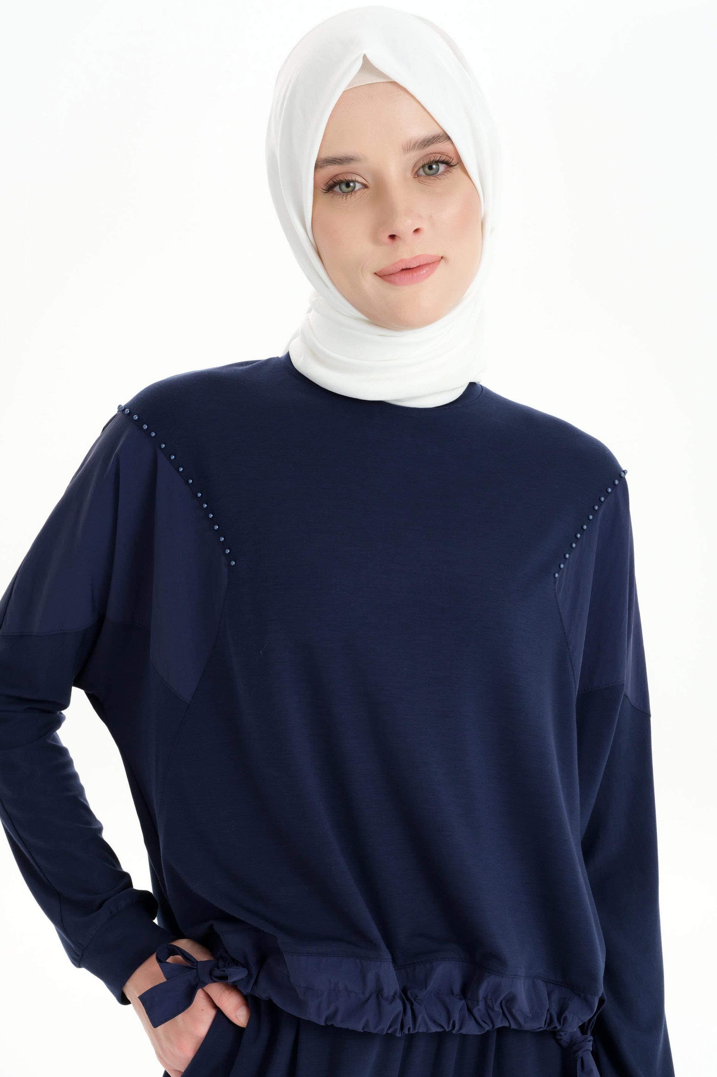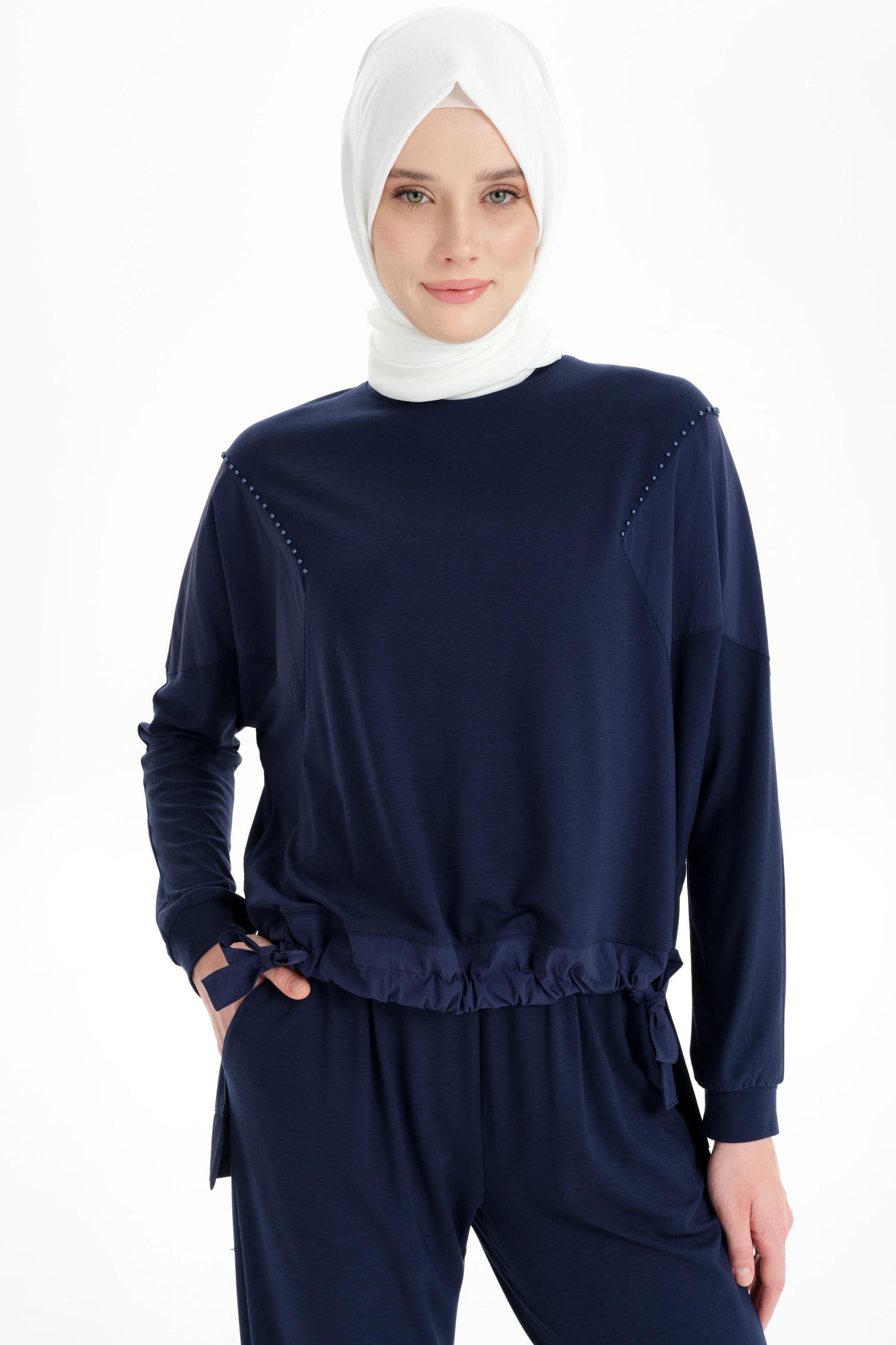 Garnili asimetrik sweat, modern tasarımı ve konforlu dokusuyla öne çıkar. Asimetrik kesimi ve şık garni detayları, bu sweatshirt'e dinamik bir görünüm kazandırırken, yumuşak kumaşı gün boyu rahatlık sağlar.