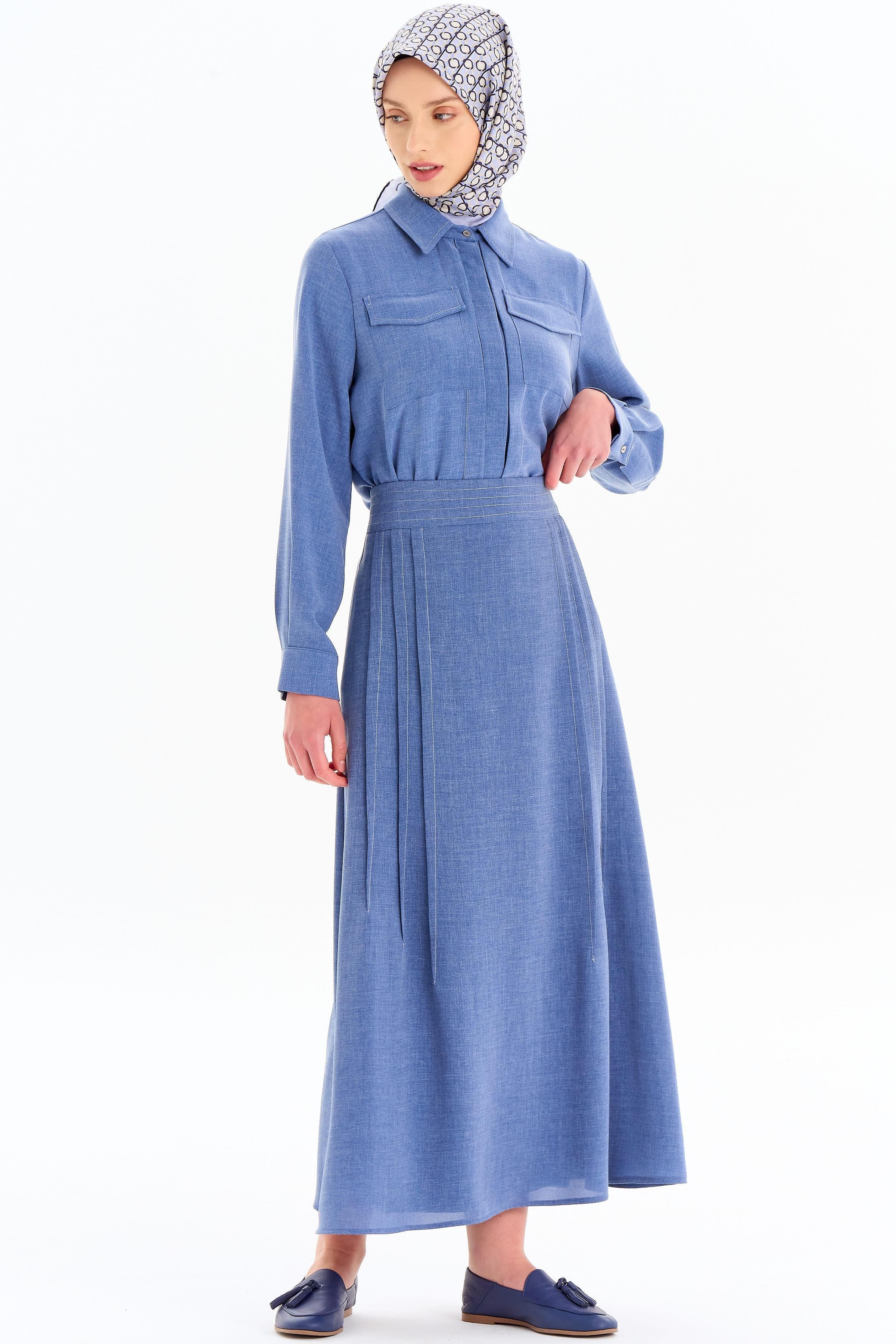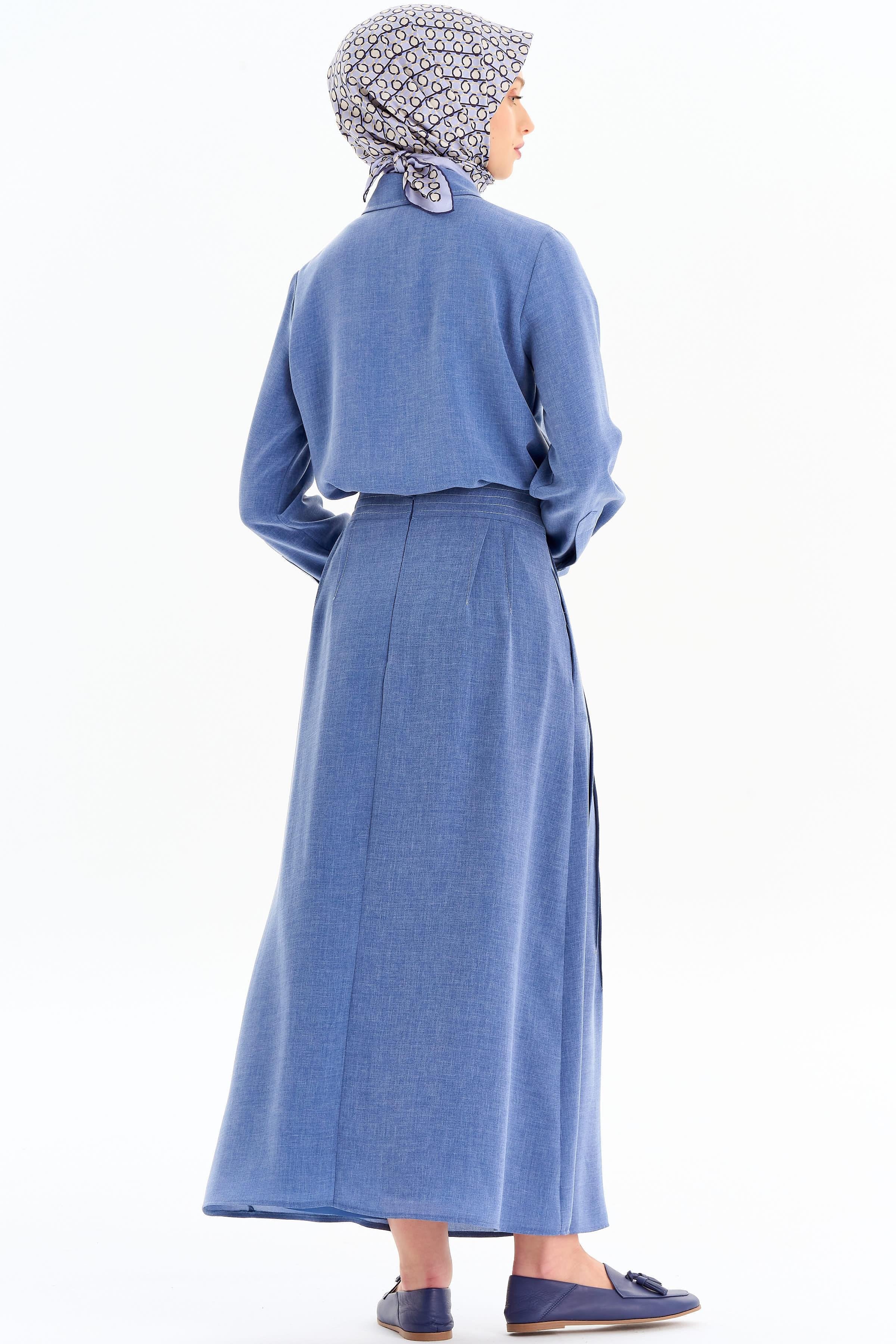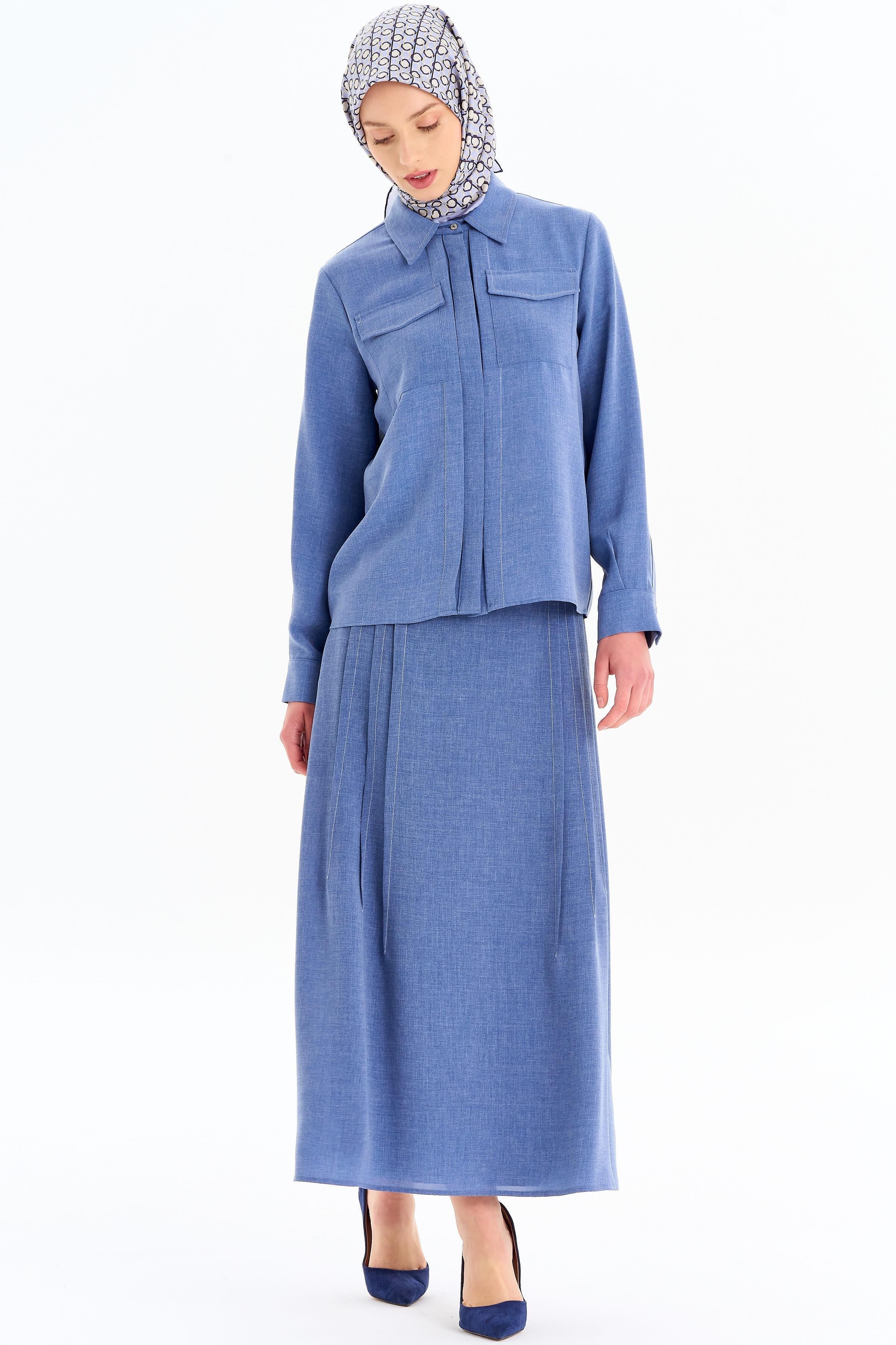 Punto Dikiş Detaylı Gömlek Etek Takım - İndigo