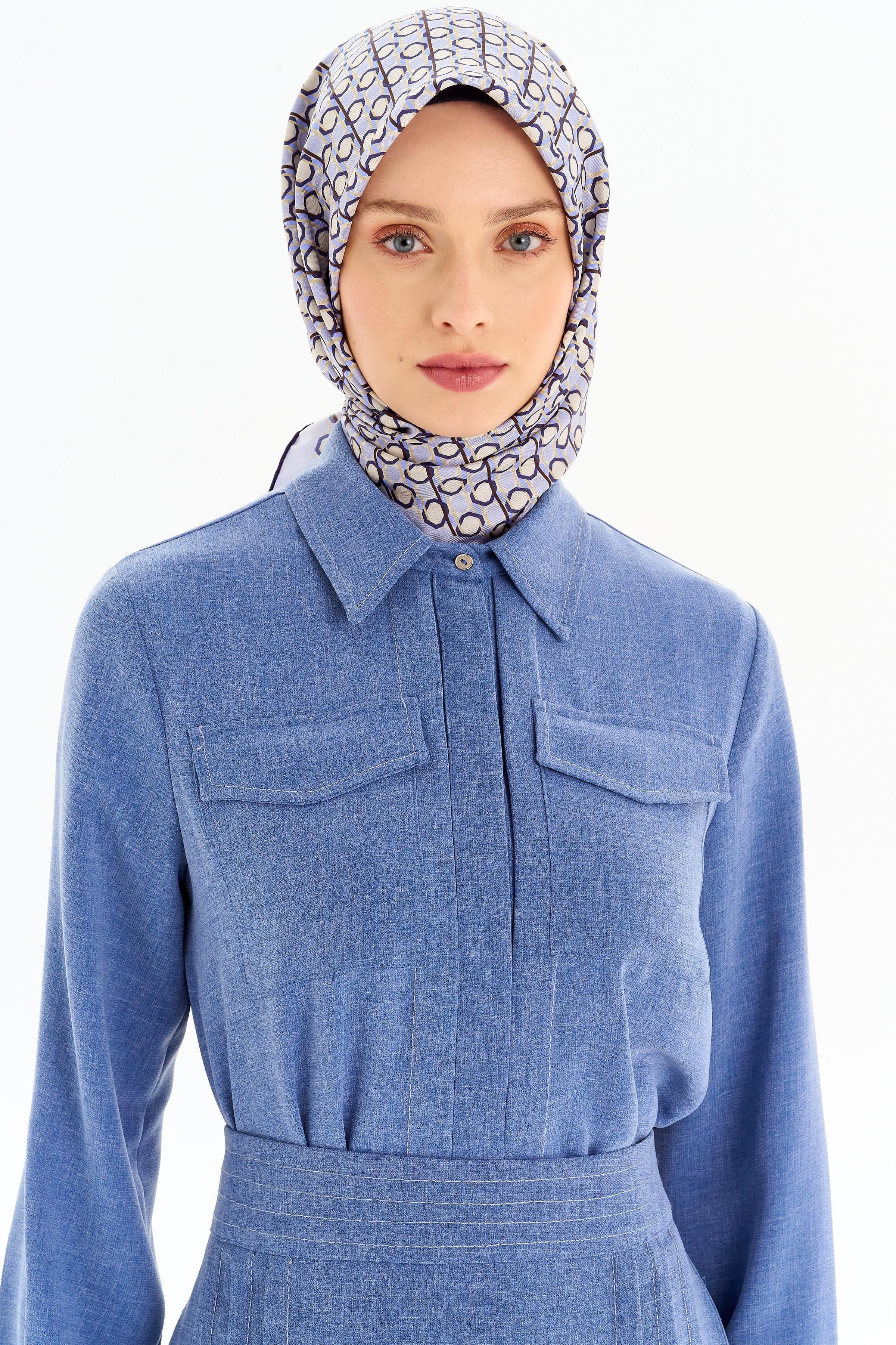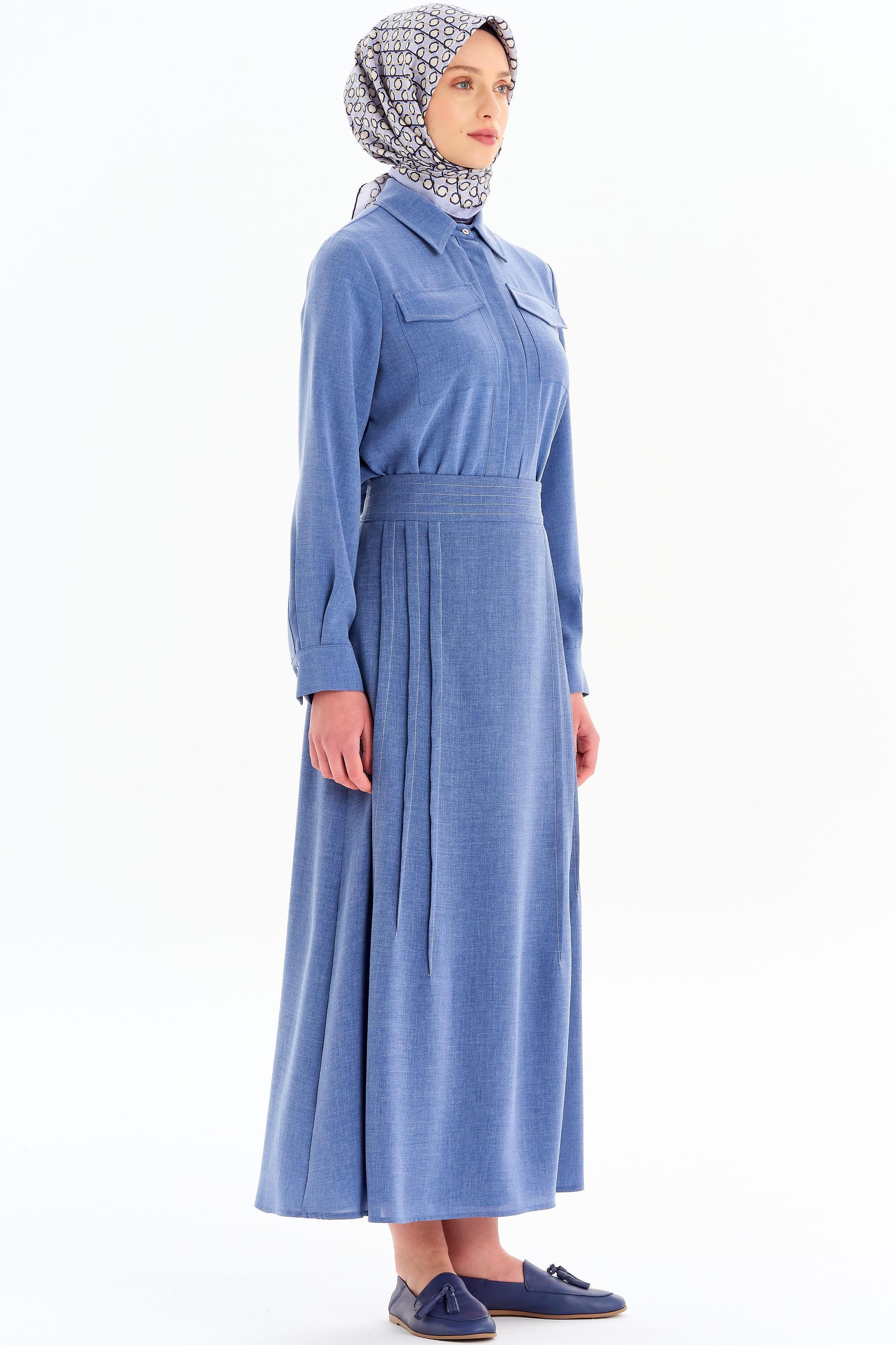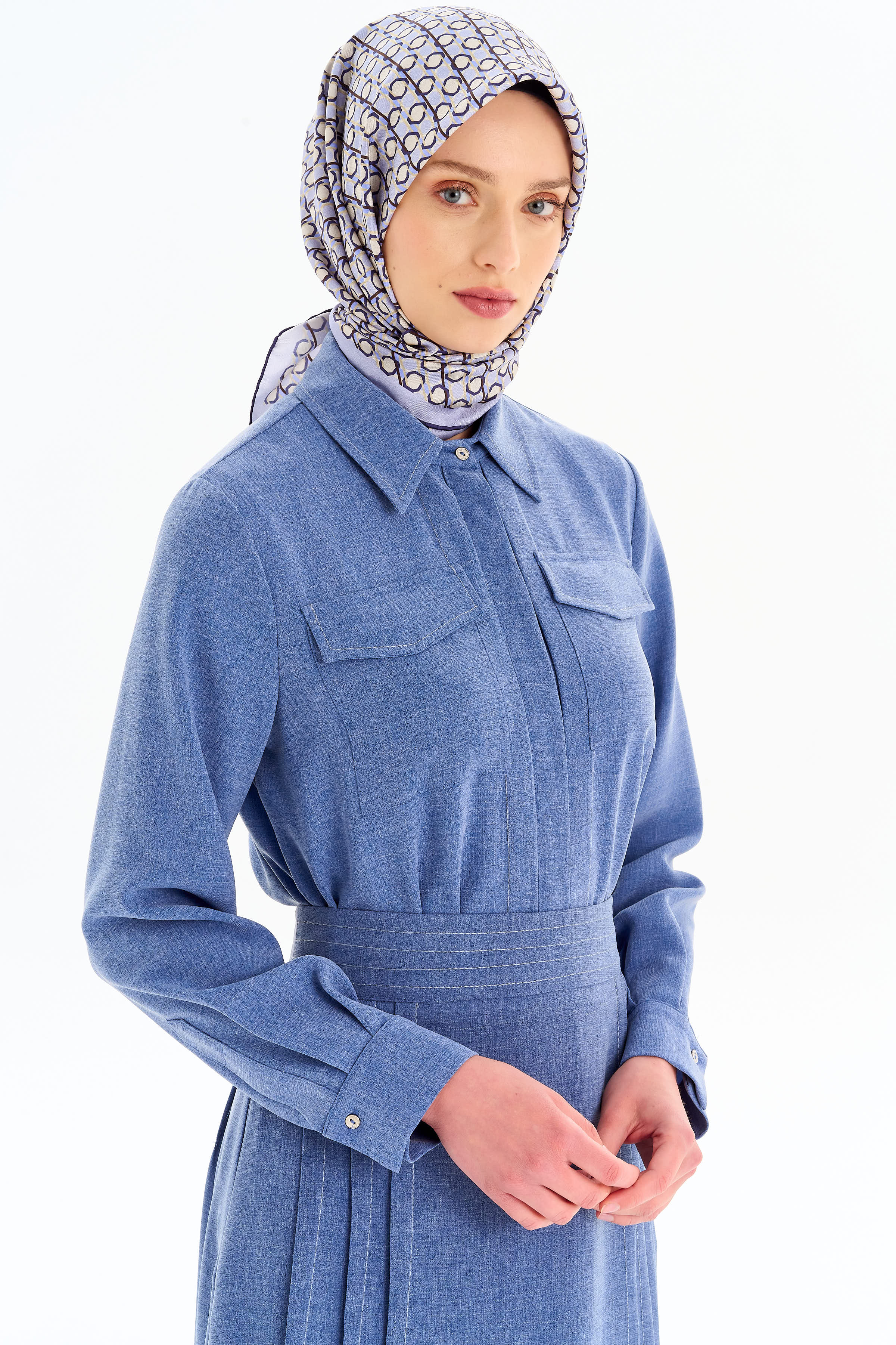 Punto Dikiş Detaylı Gömlek Etek Takım - İndigo