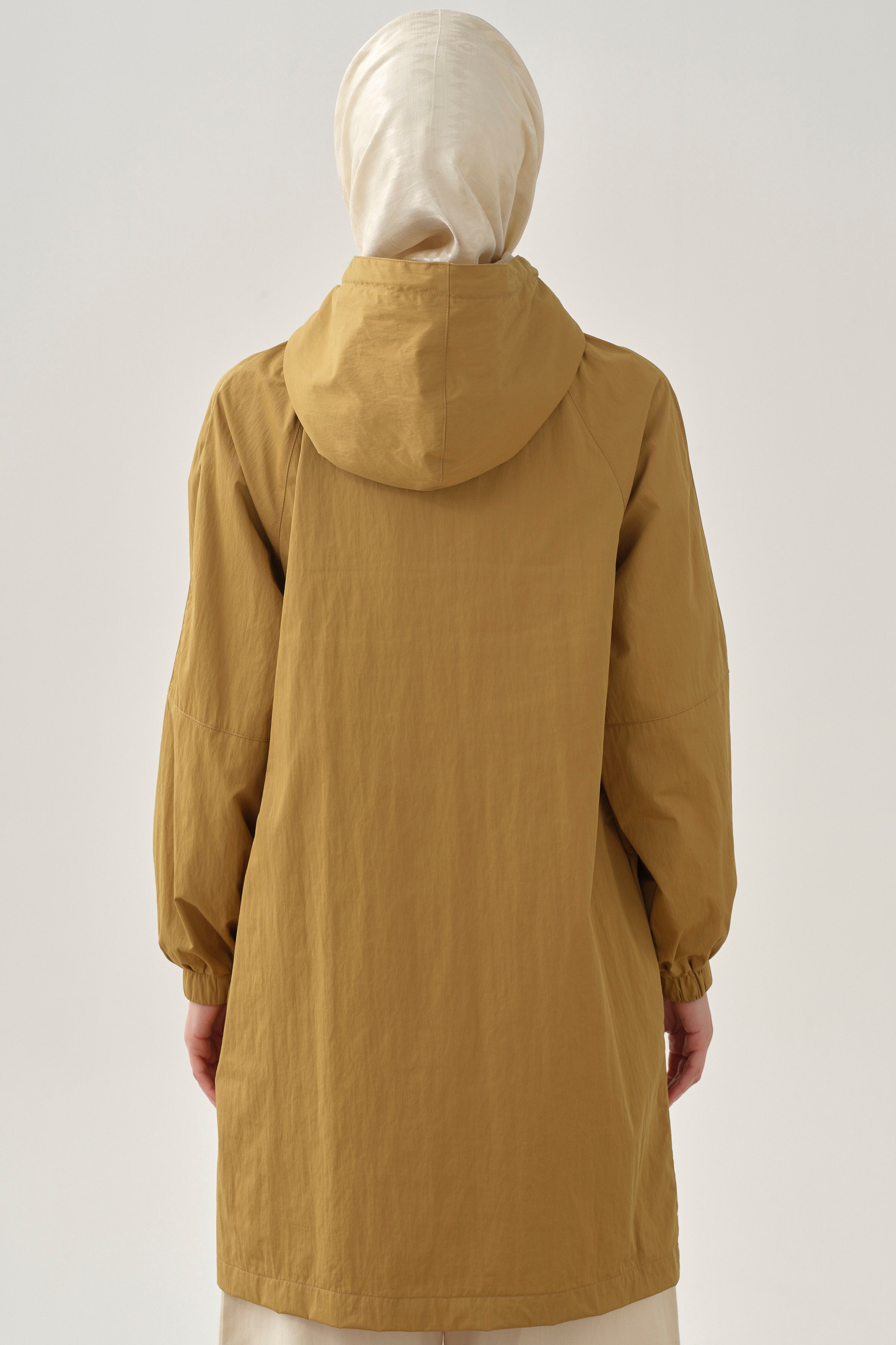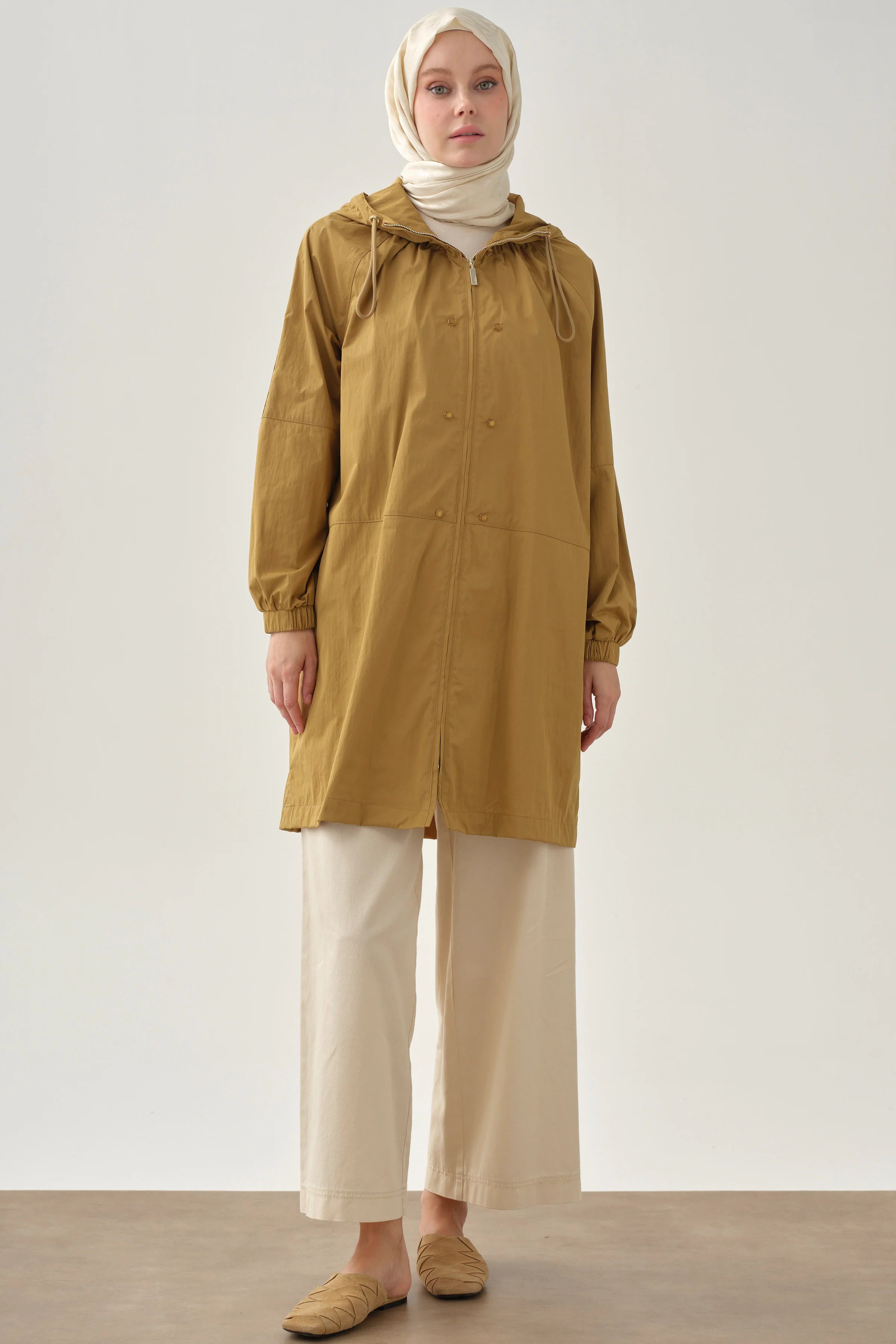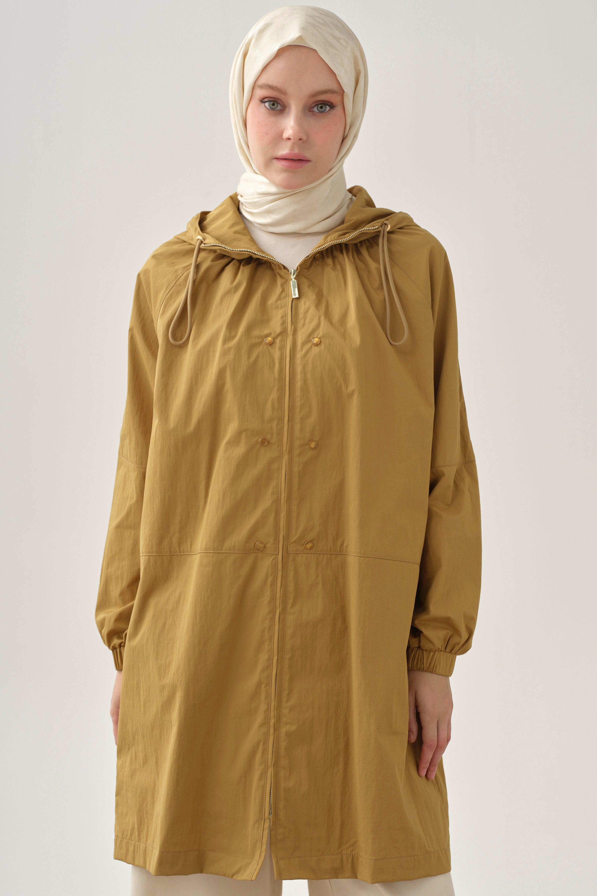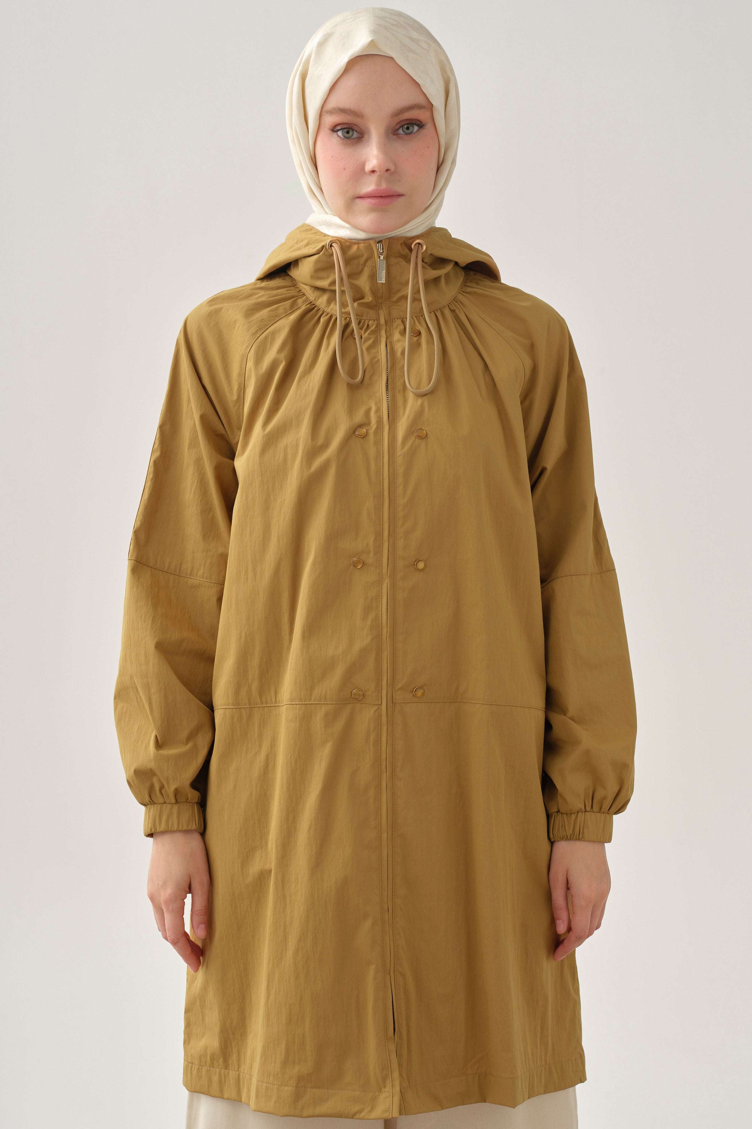 Büzgülü Fermuar Kapamalı Yağmurluk - Camel