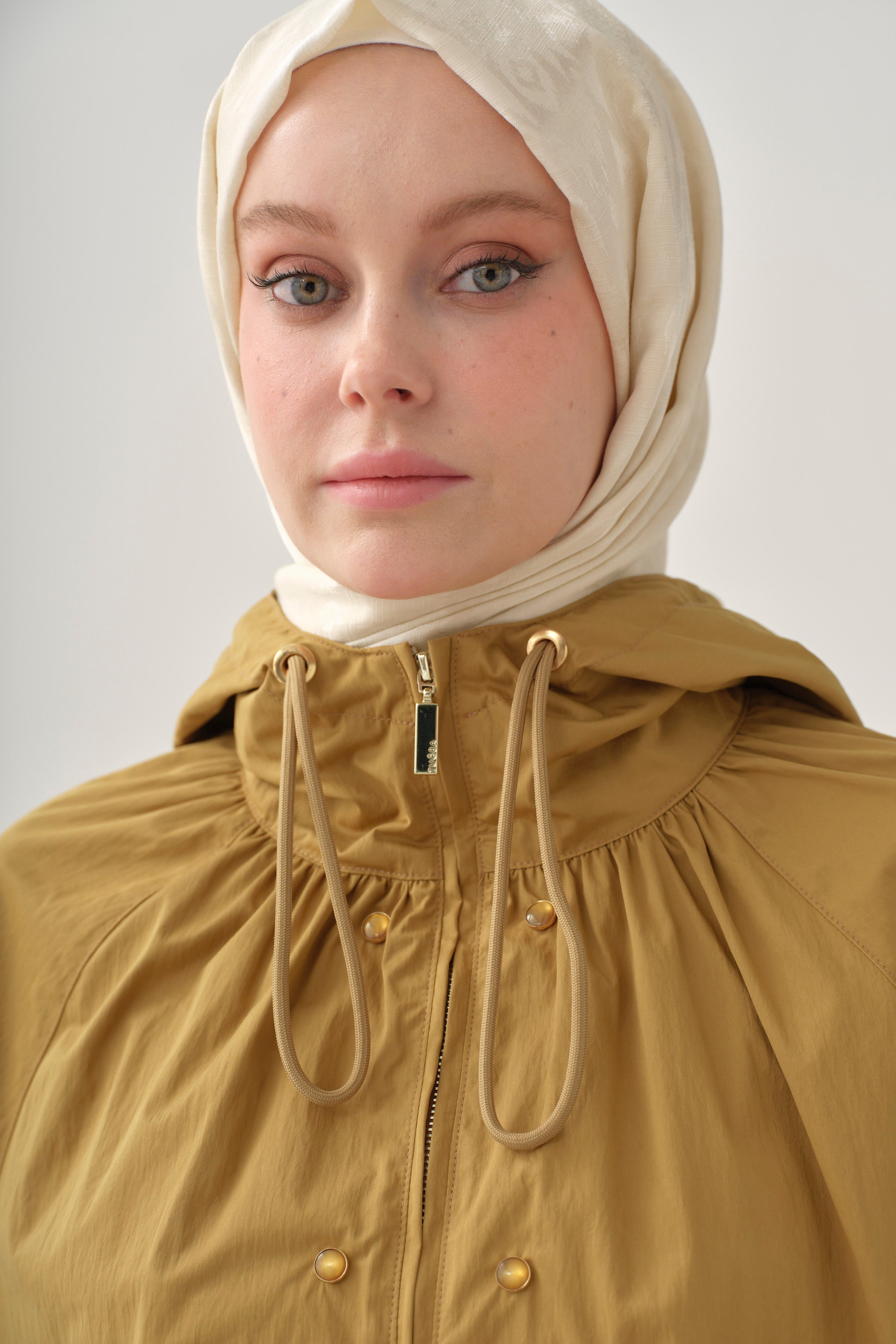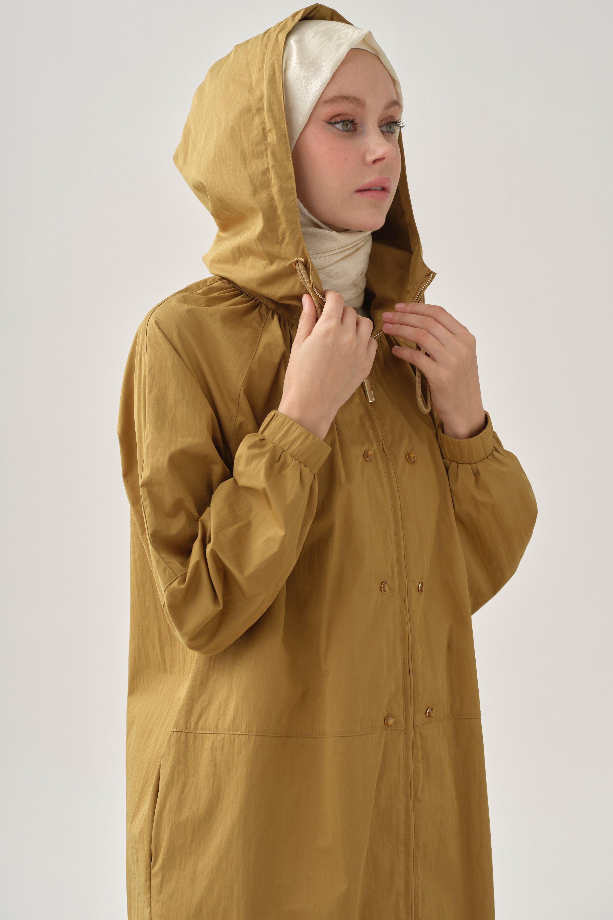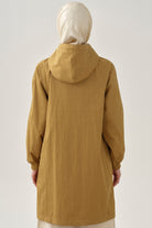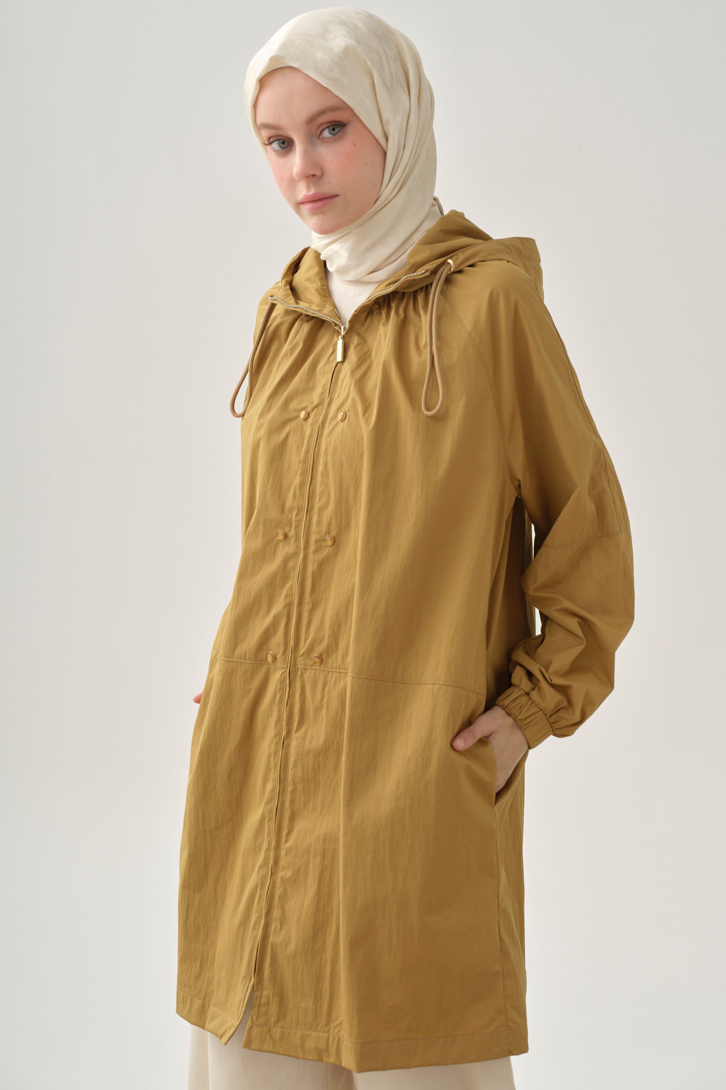 Büzgülü Fermuar Kapamalı Yağmurluk - Camel
