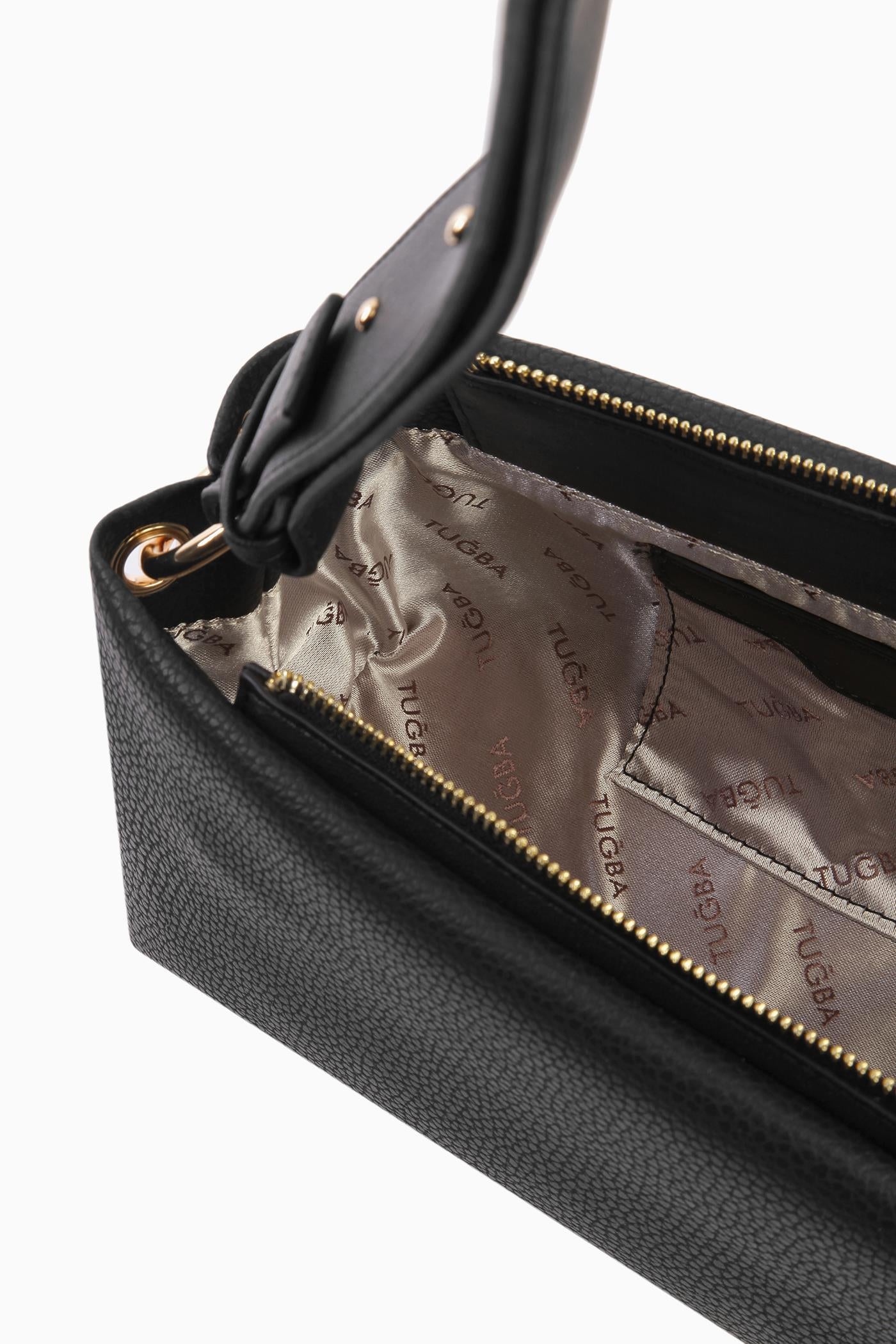 Yumuşak Deri Fermuarlı Çanta - Siyah