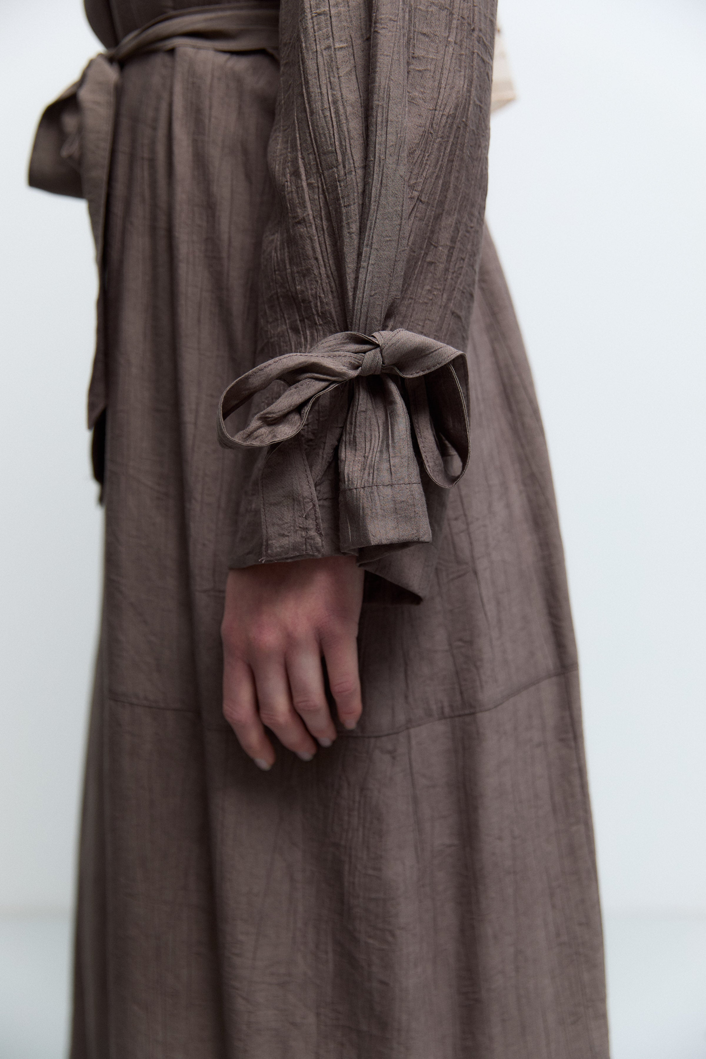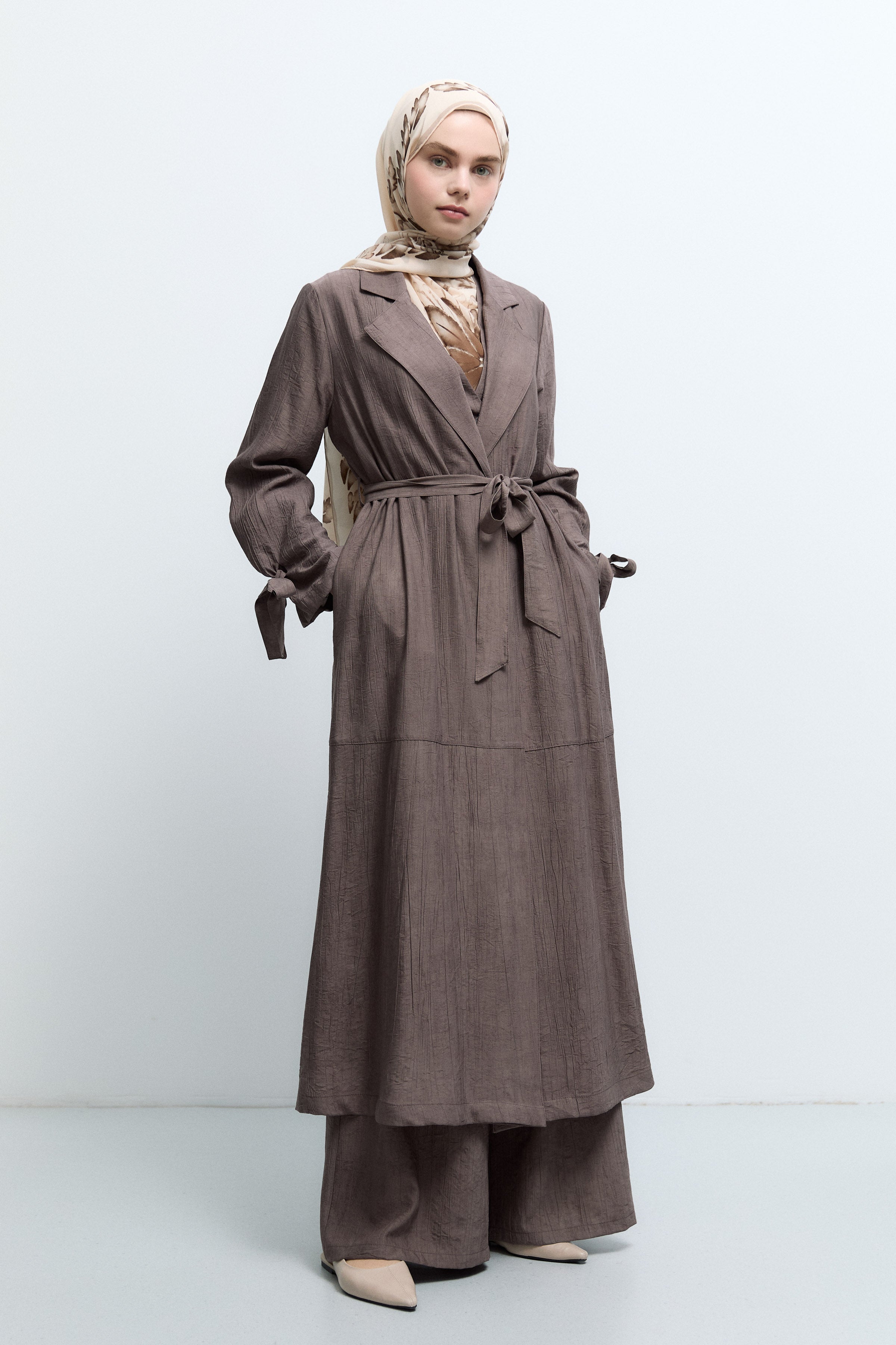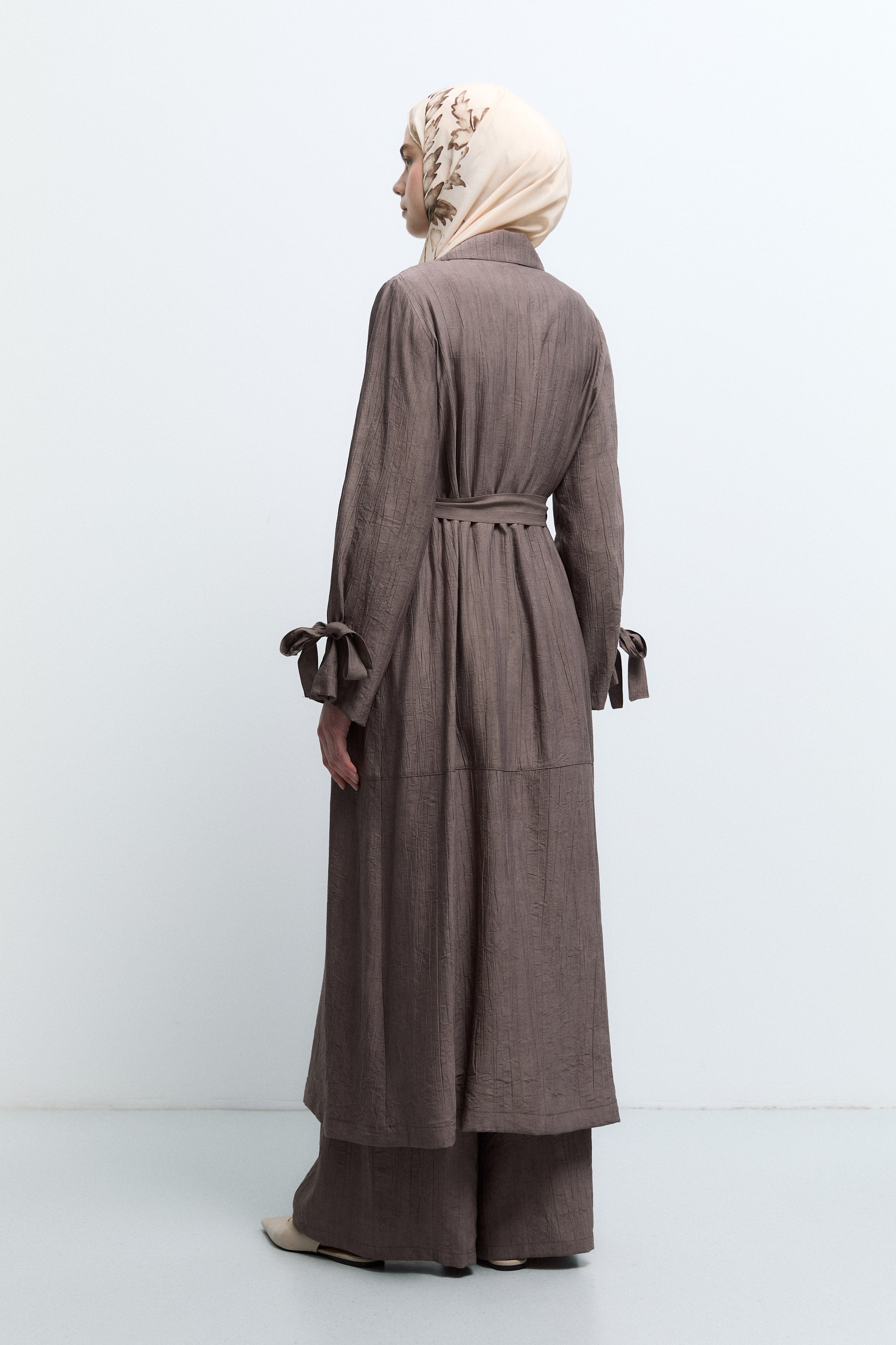 Kolları Bağlama Detaylı Trenç - Kahve