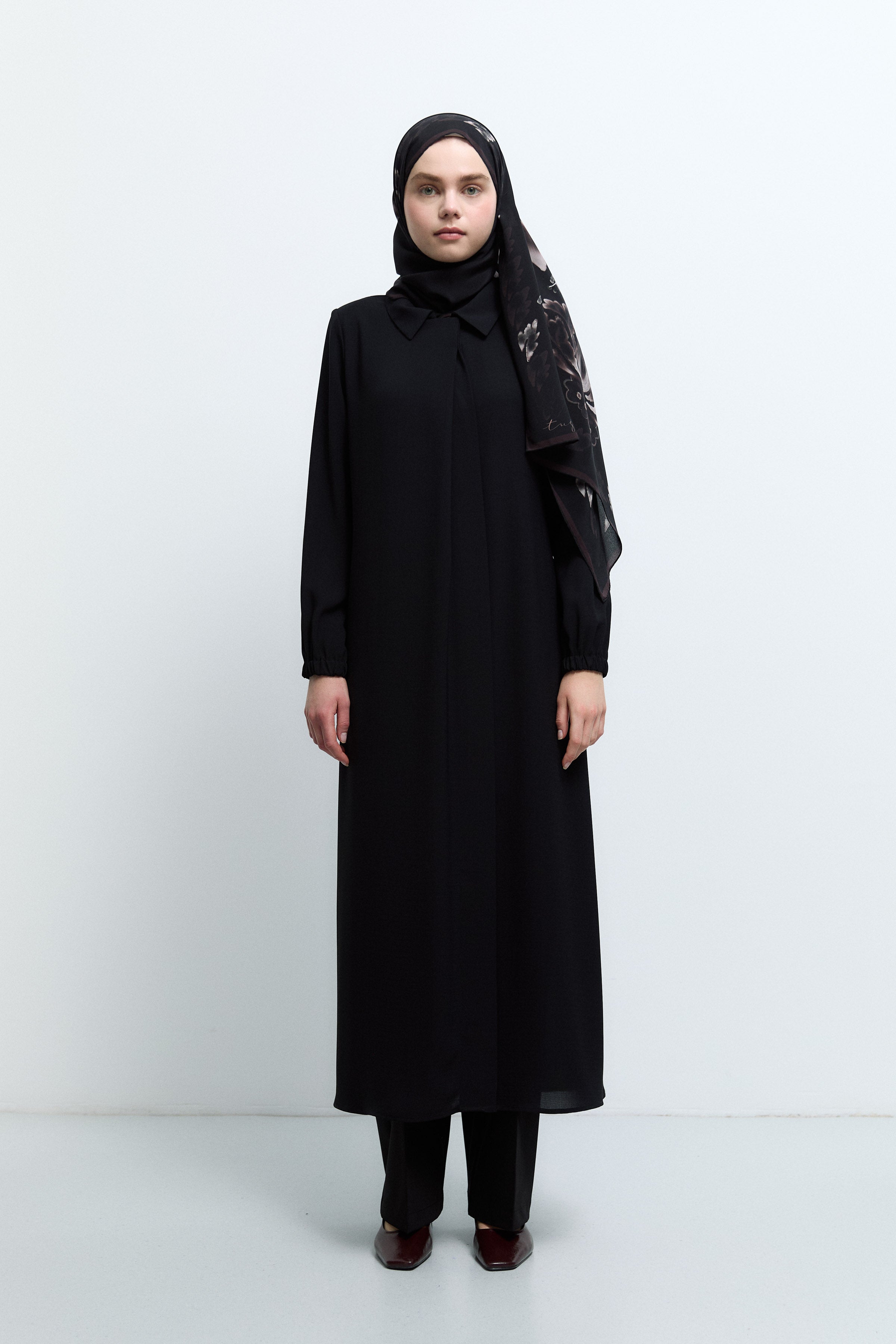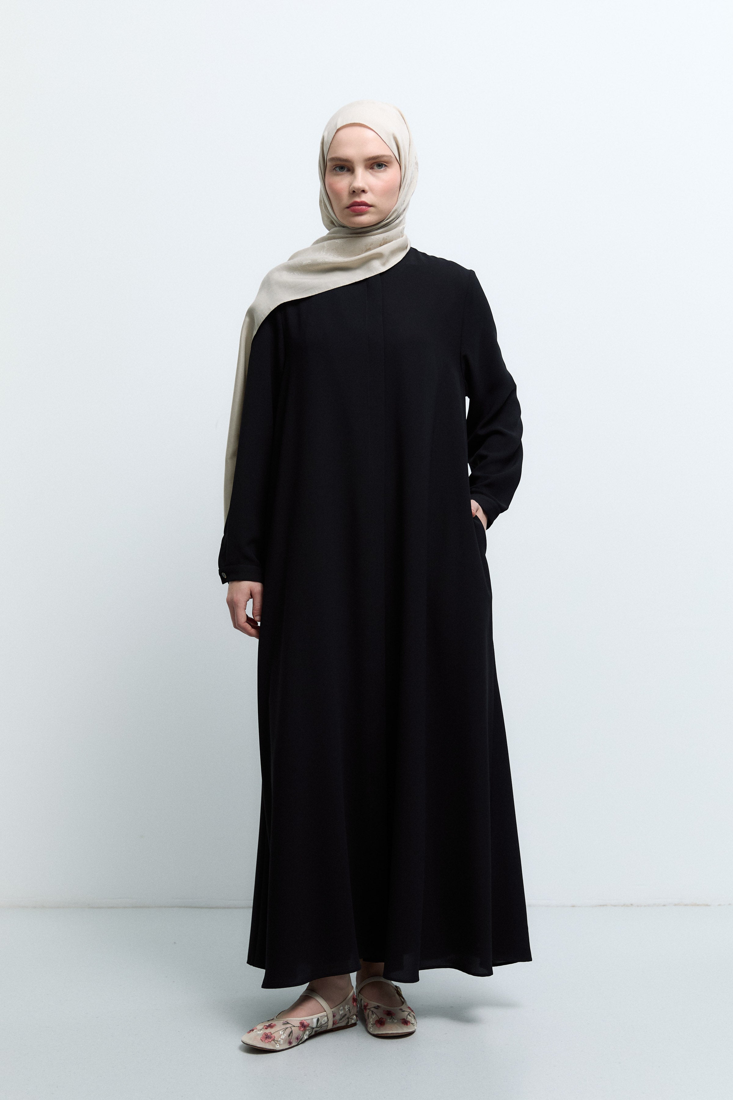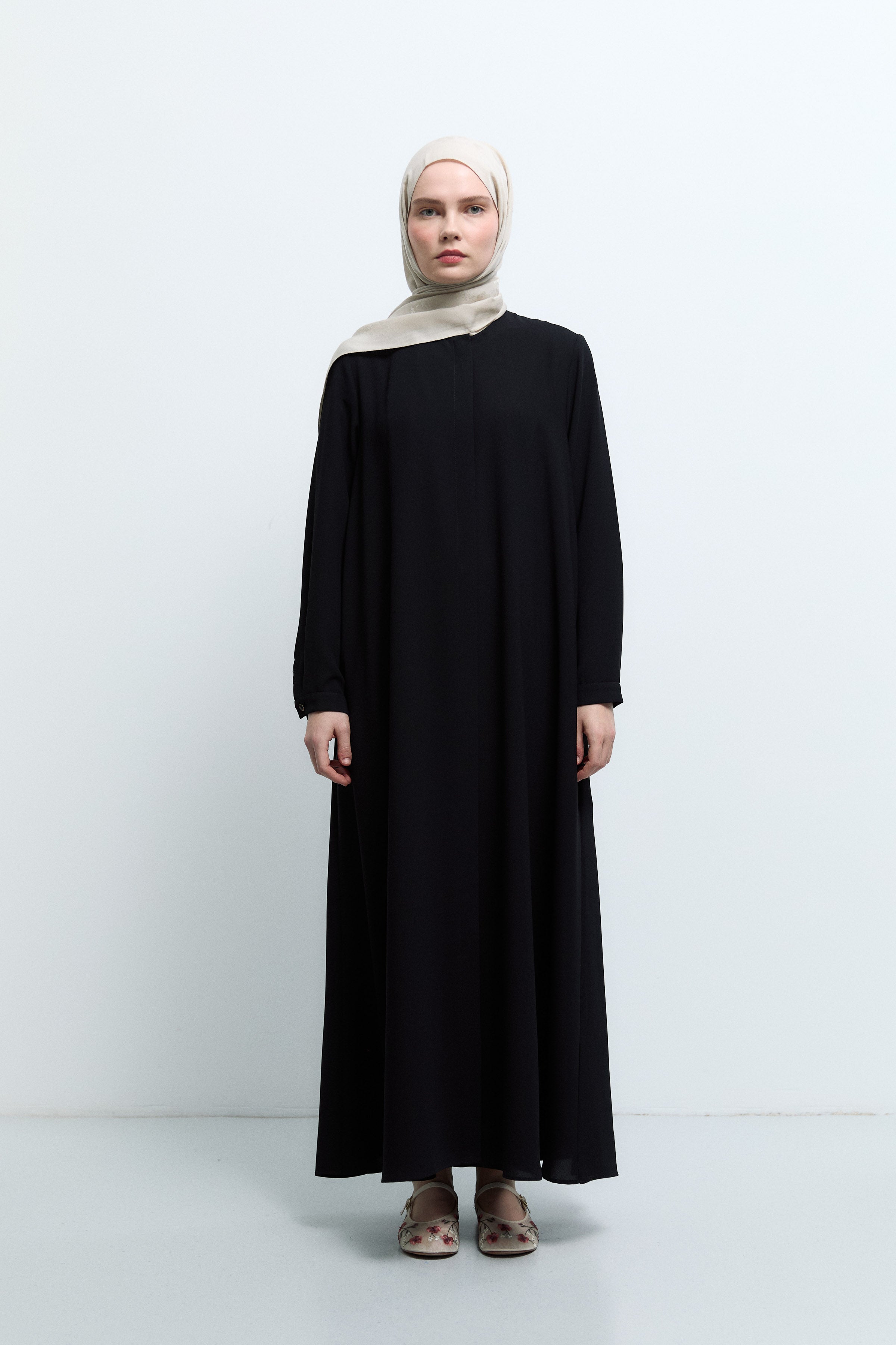 Sıfır Yaka Gizli Patlı Ferace - Siyah