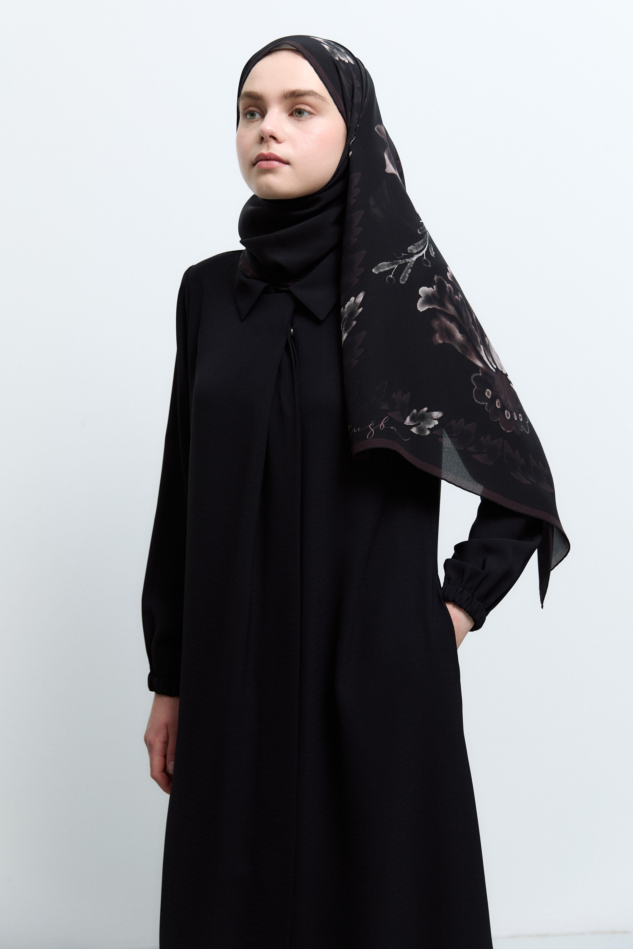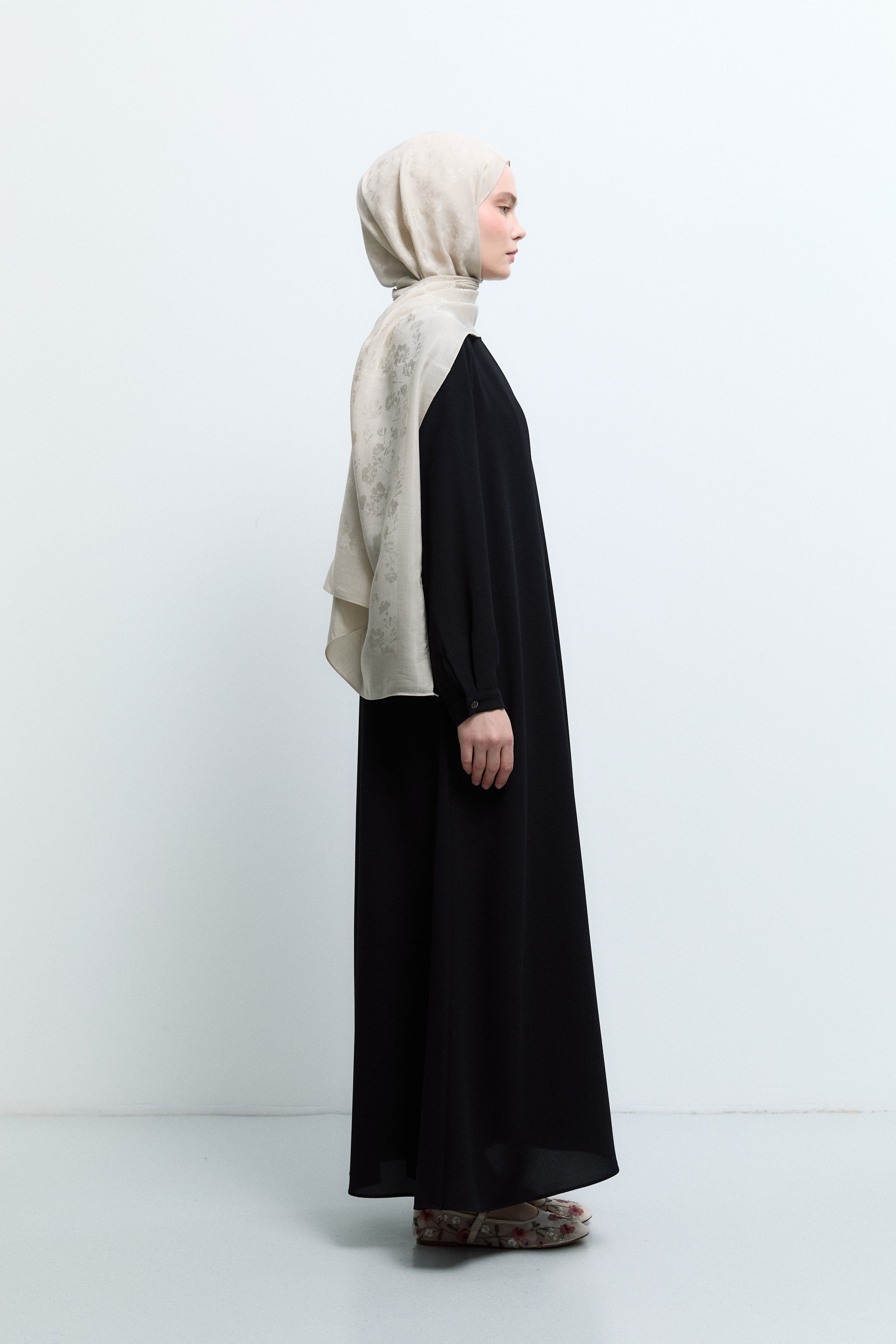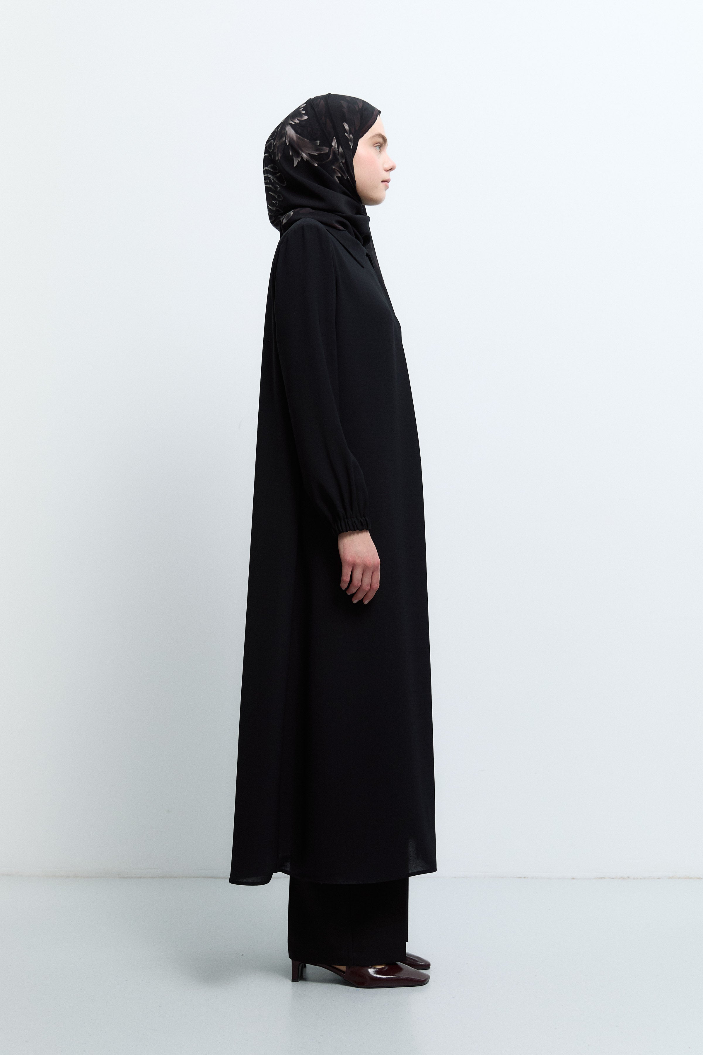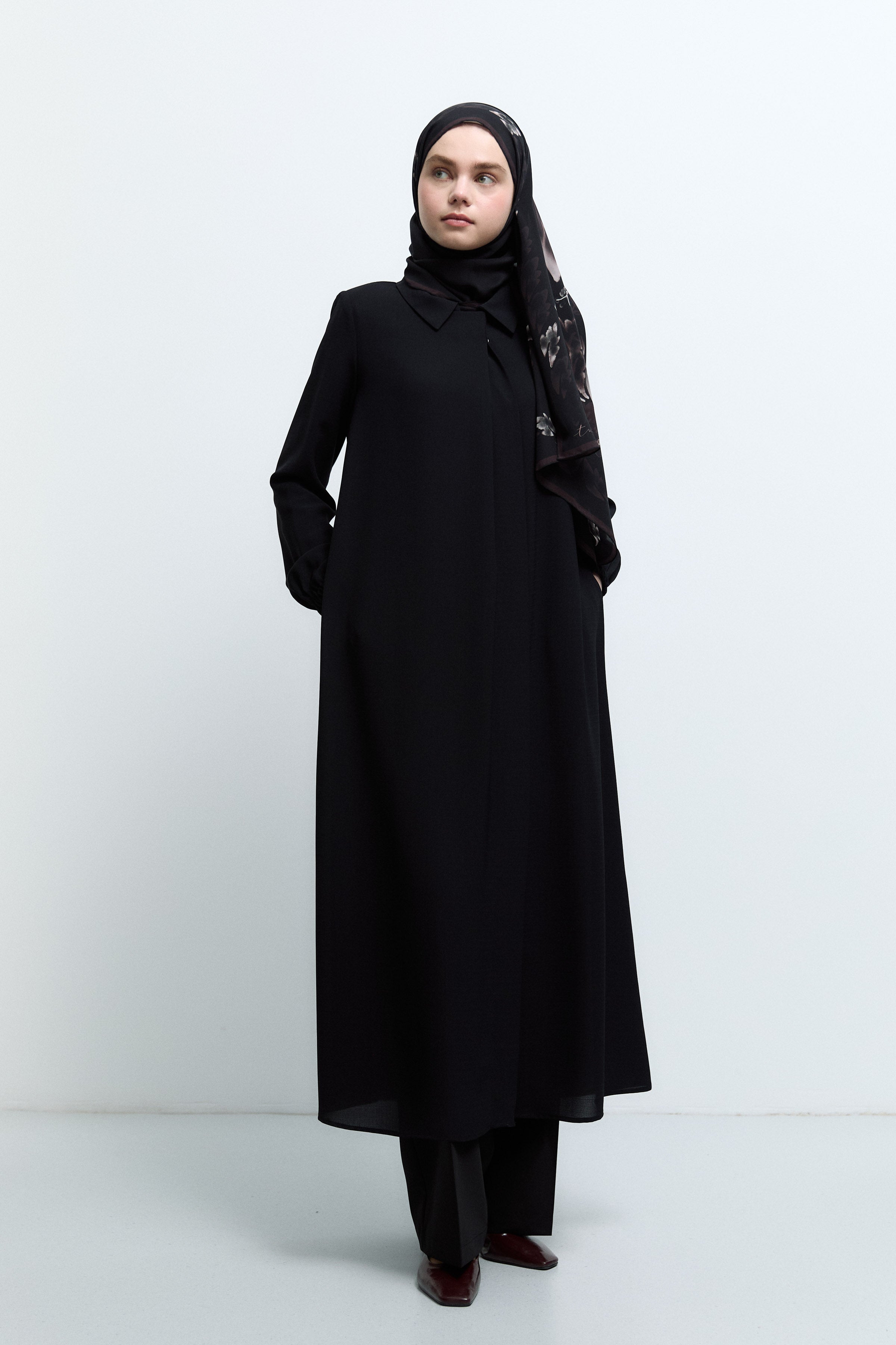 Sıfır Yaka Gizli Patlı Ferace - Siyah