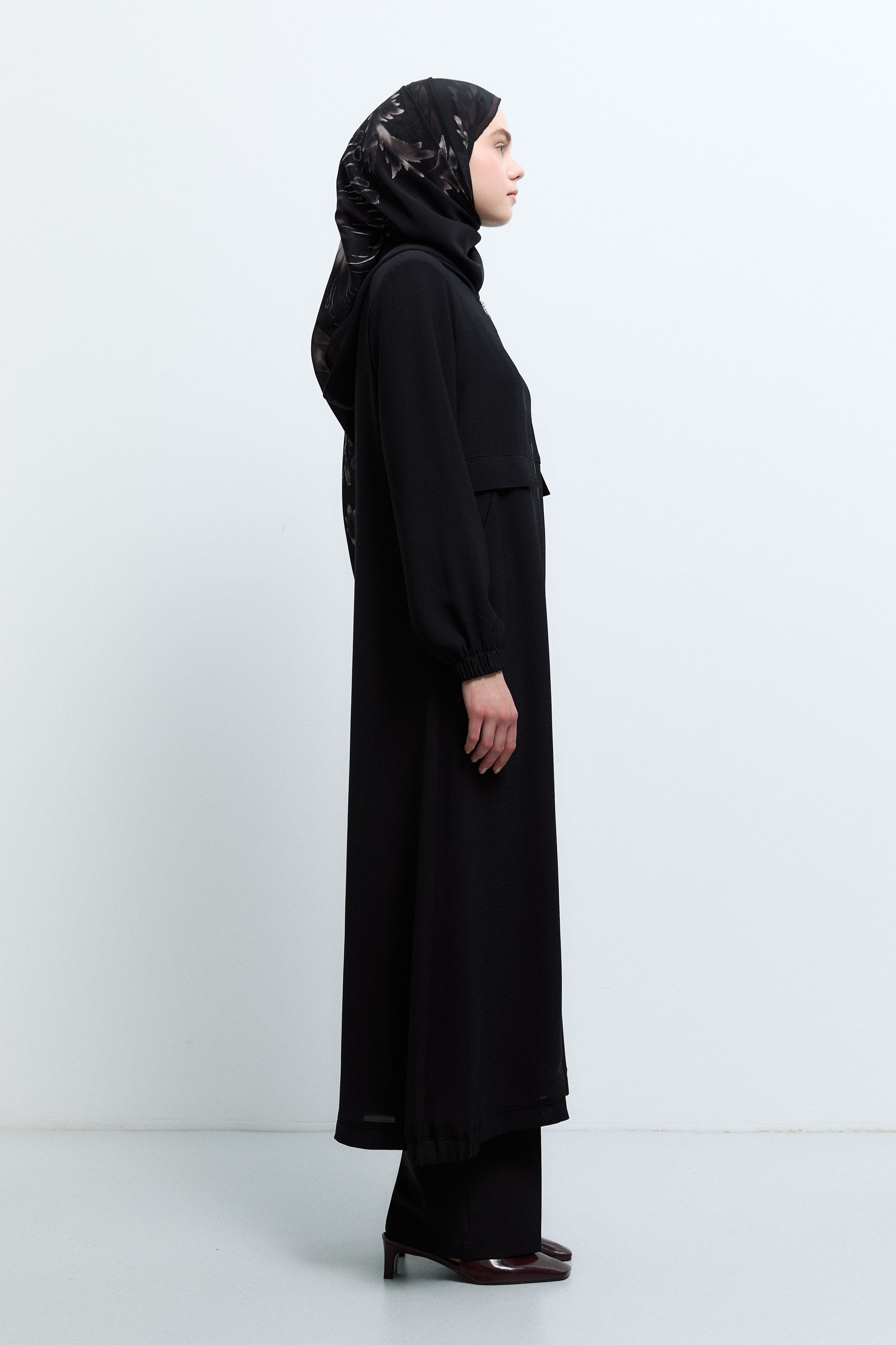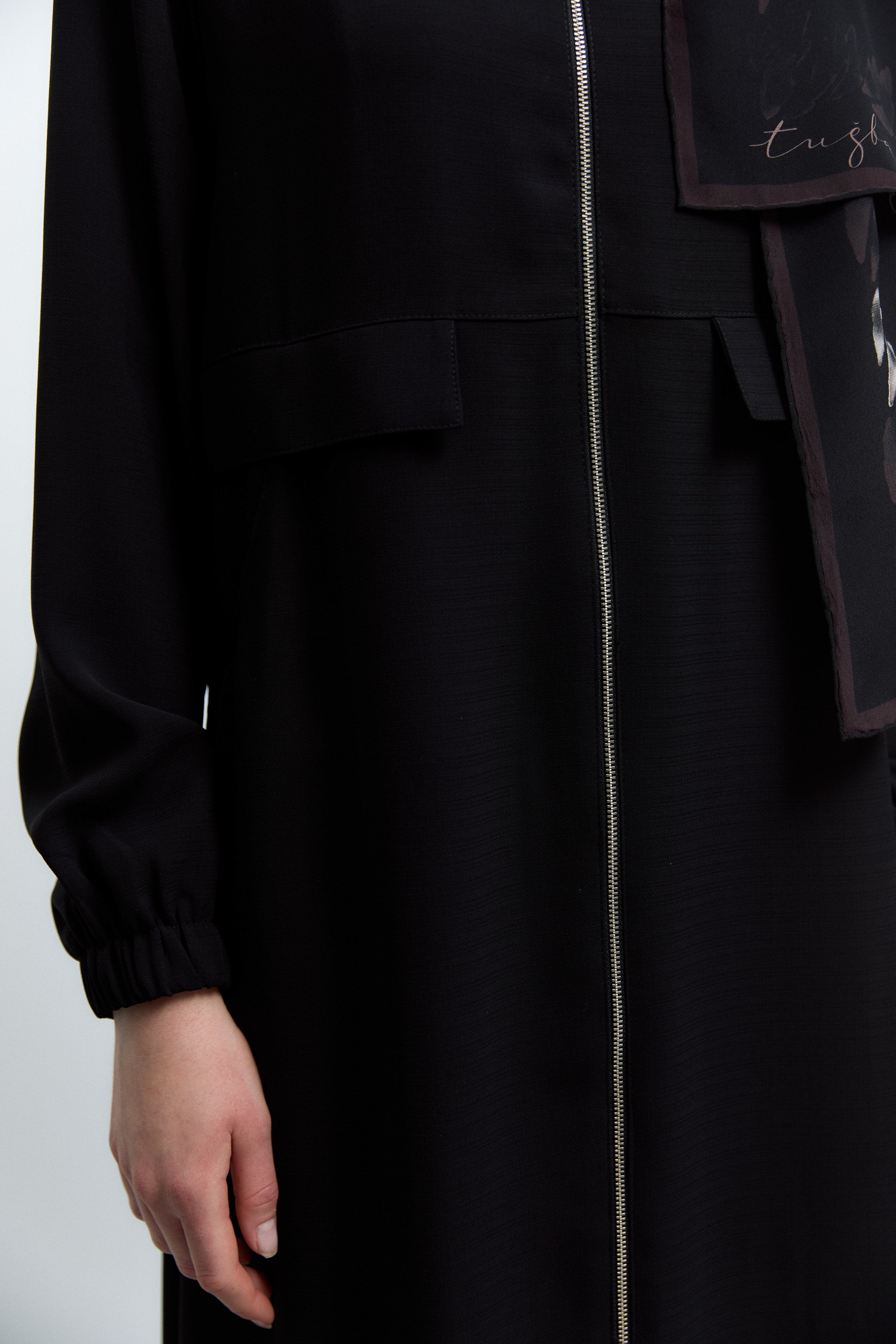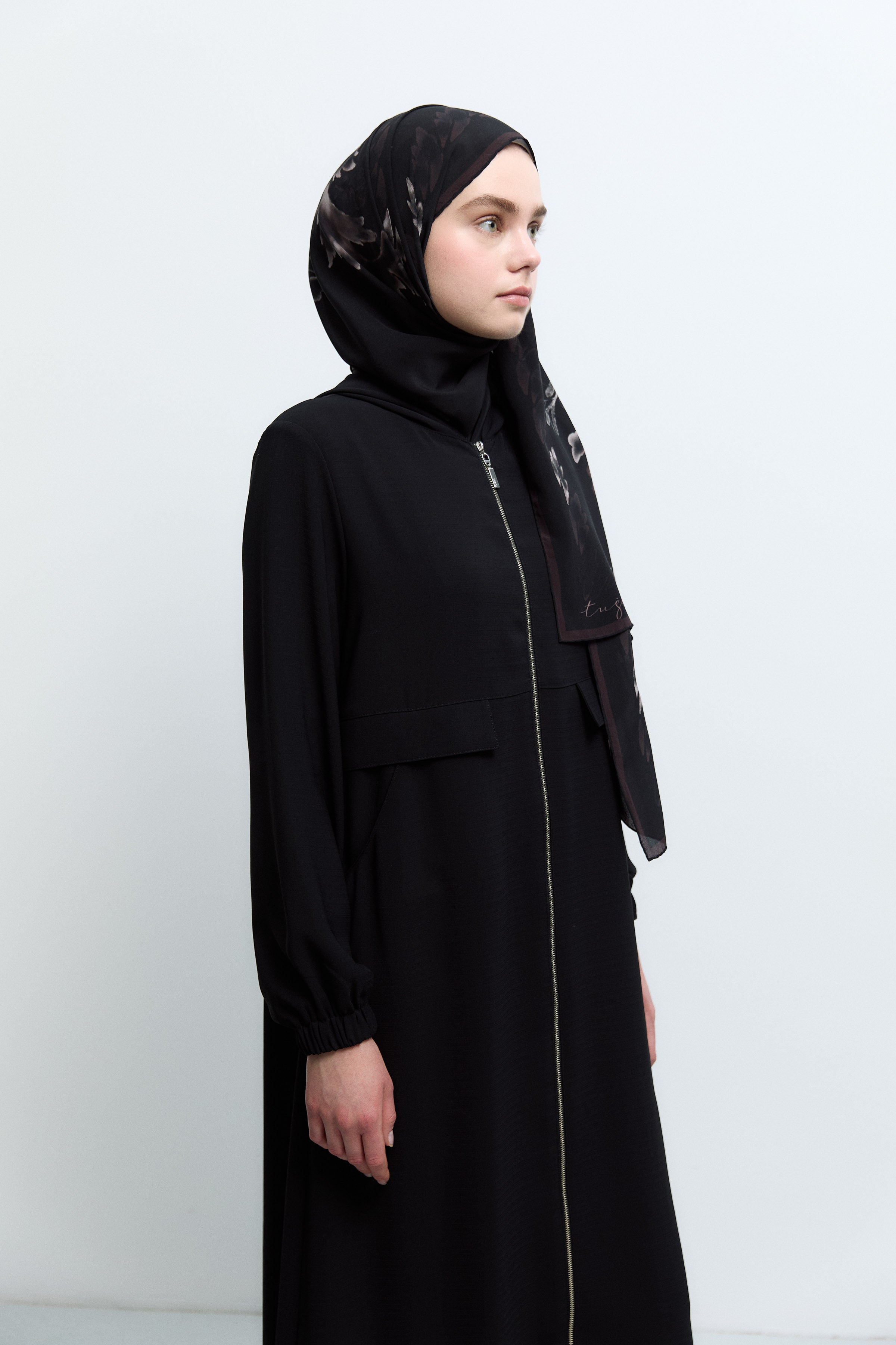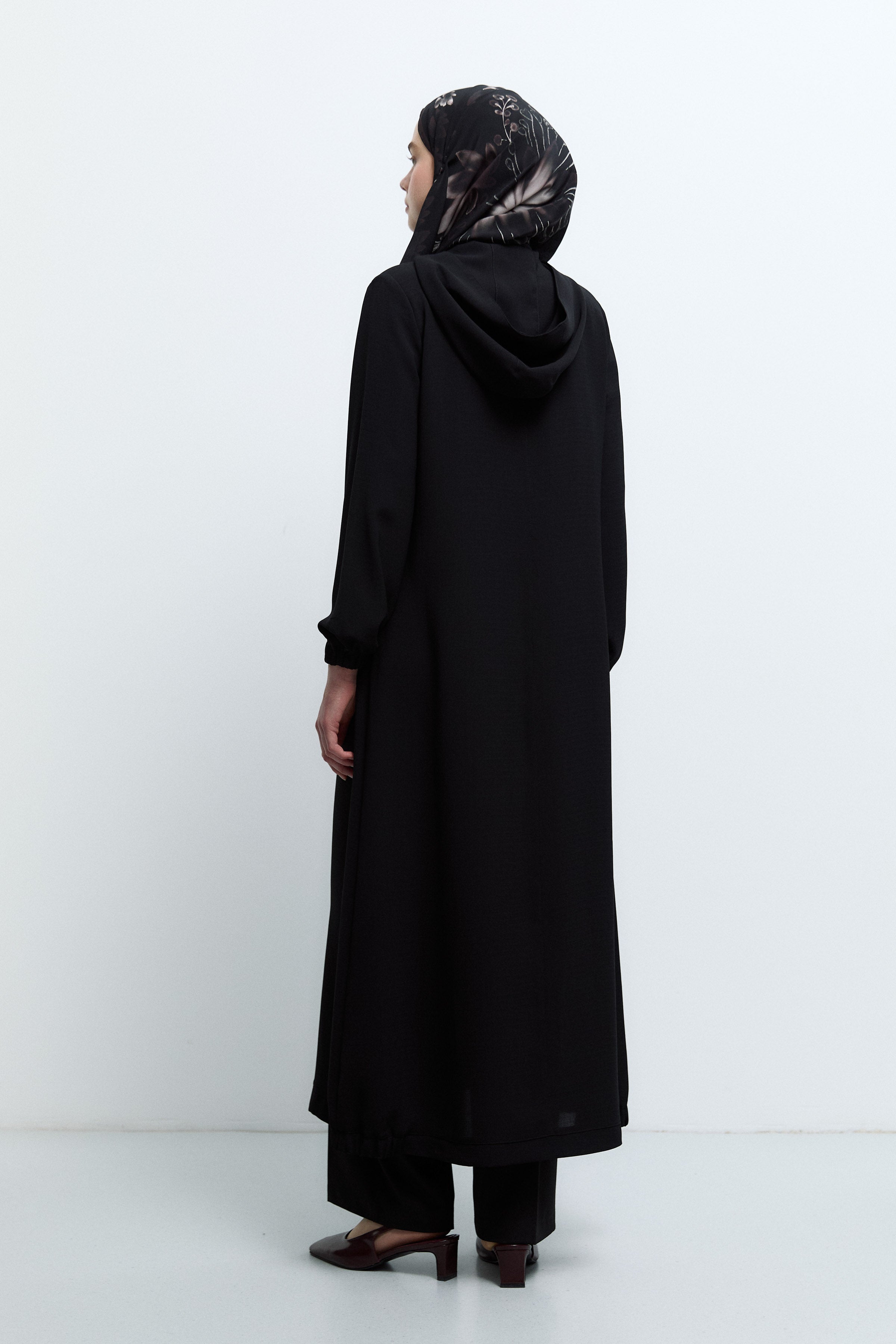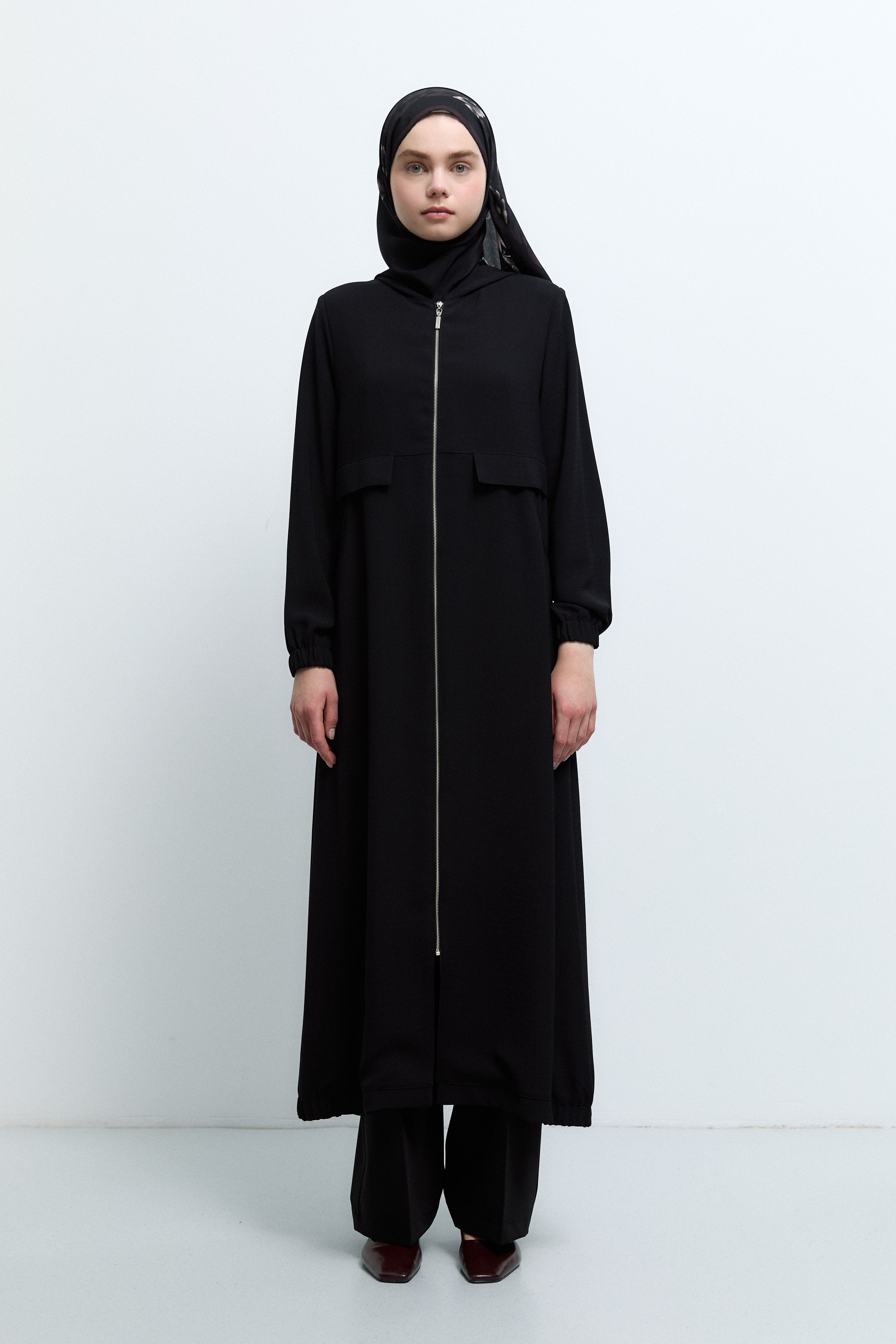 Kapüşonlu Fermuar Kapamalı Ferace - Siyah