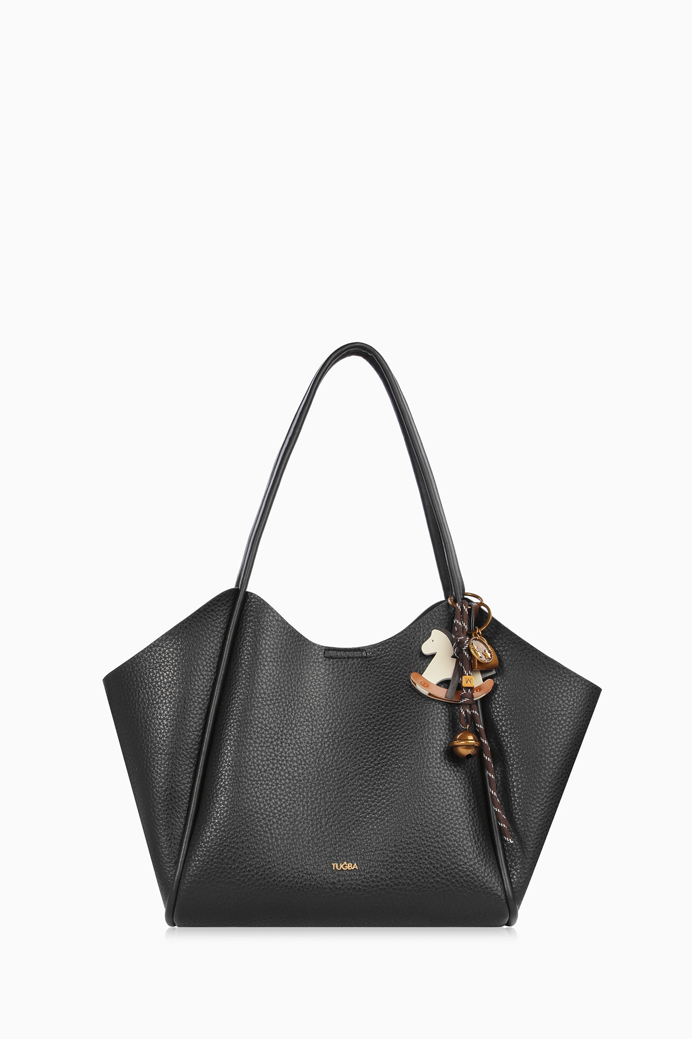 Zarif charm süslemeleriyle hareket kazanan bu çanta, sade formuna küçük ama etkili bir dokunuş ekler.