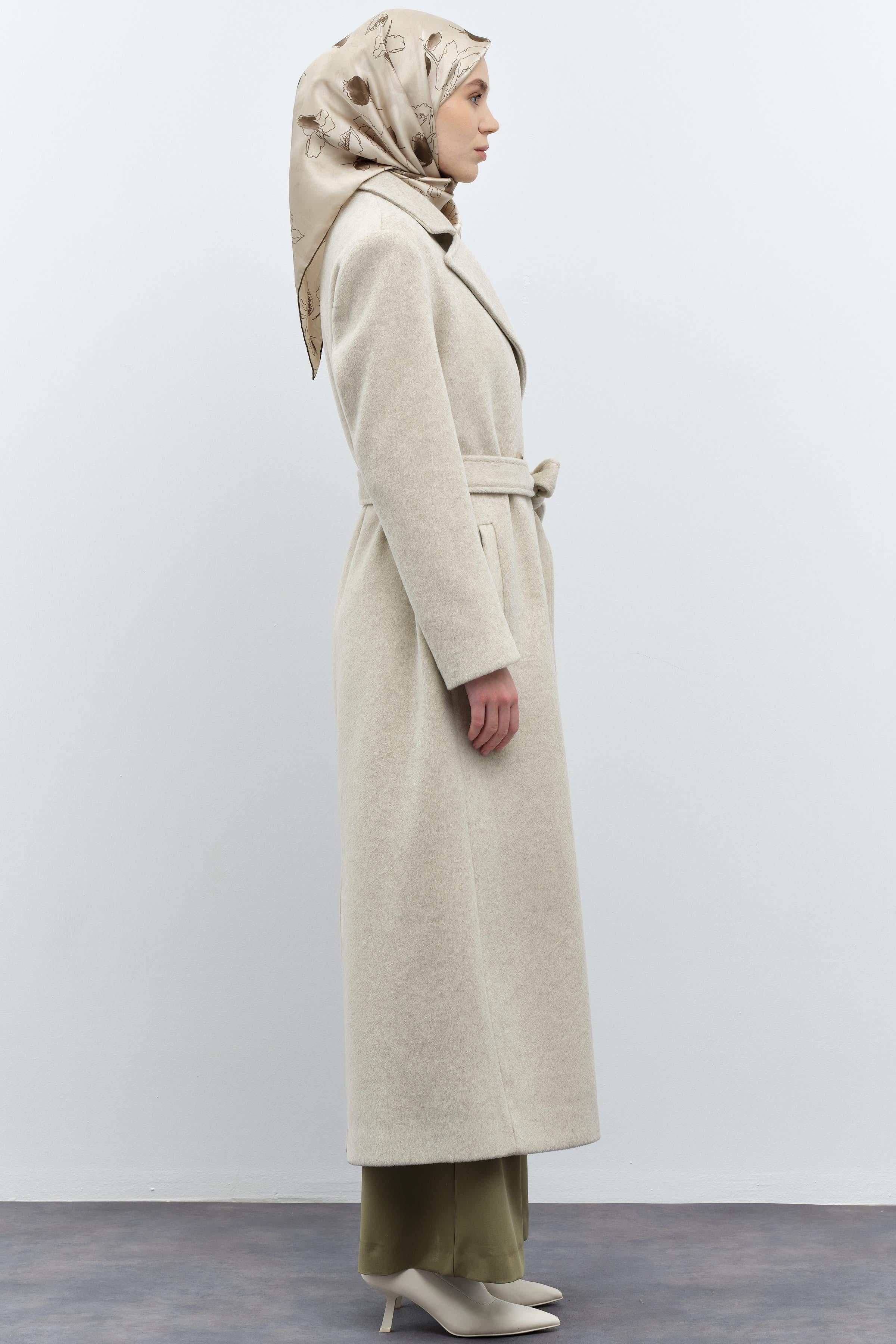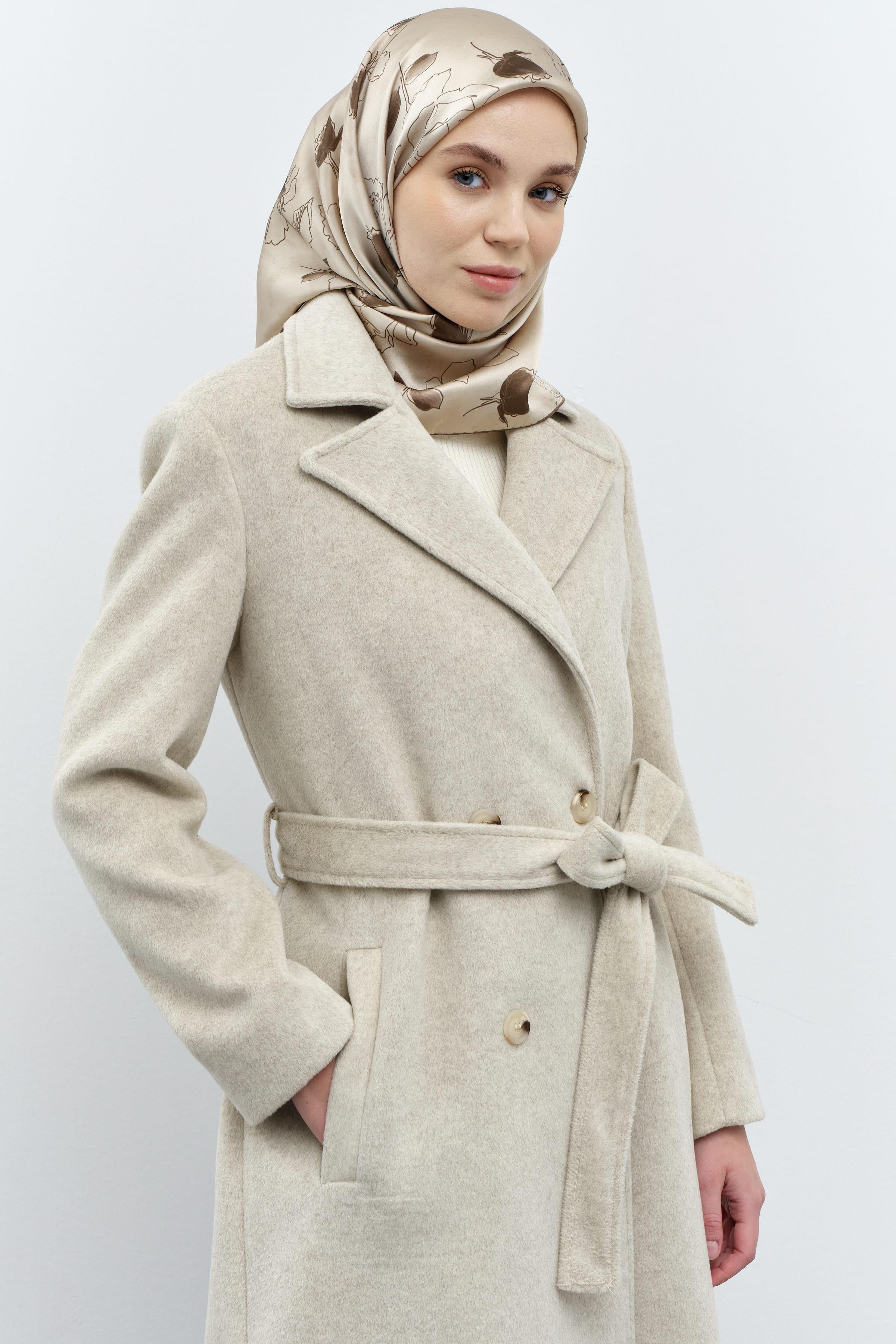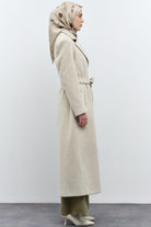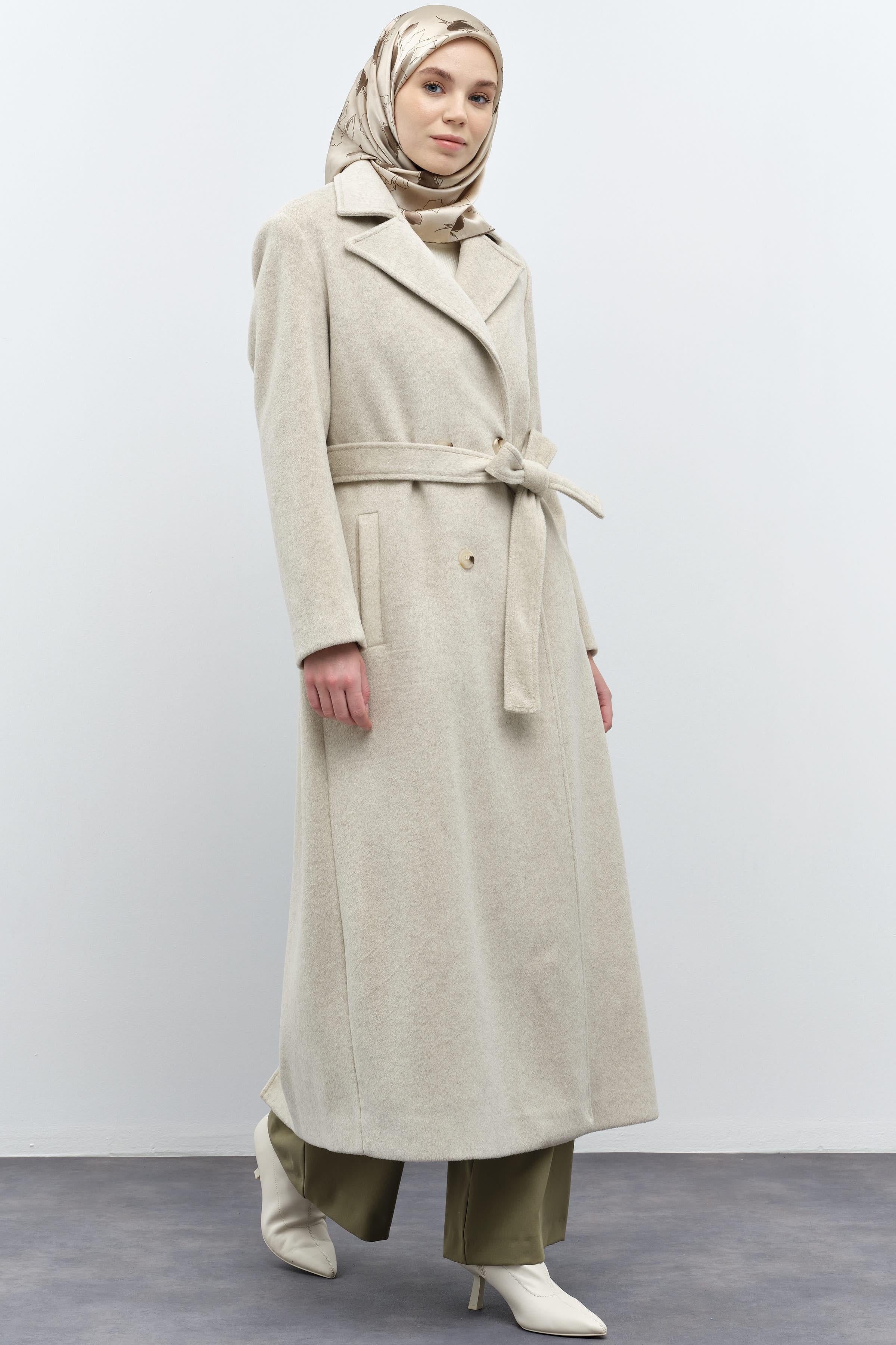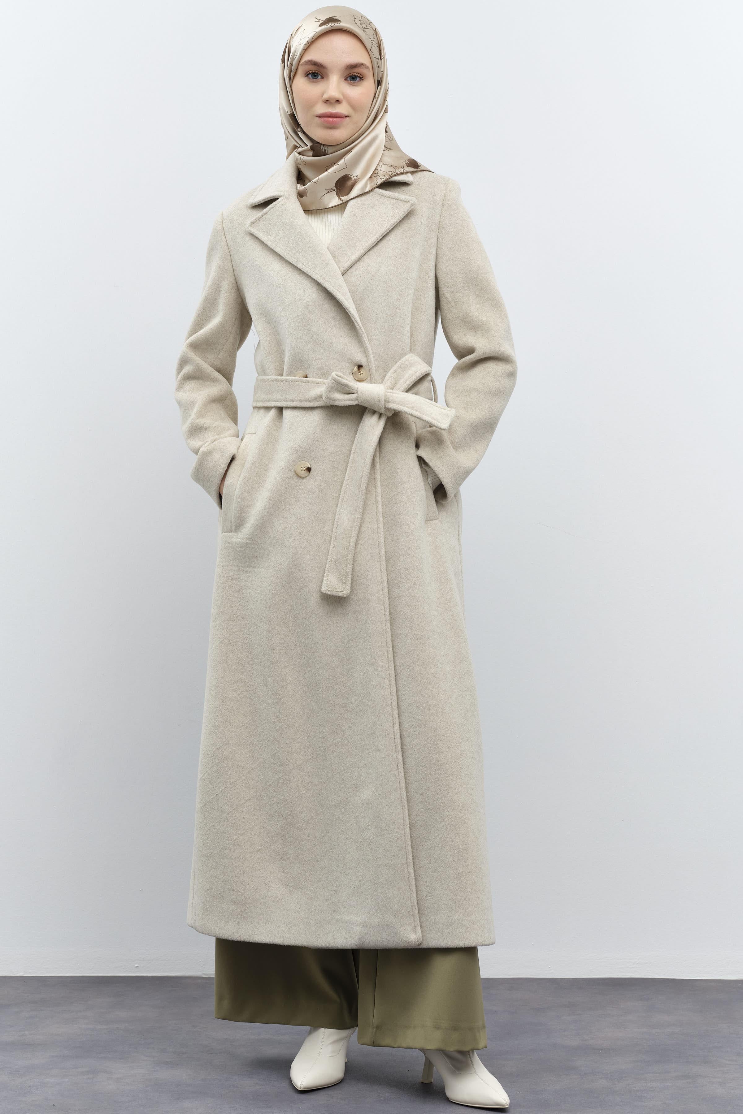 The Double-Breasted Blazer Coat combines elegance with a modern blazer collar design and double-breasted button detail. Its elegant cut and sophisticated texture create a stylish look for both everyday and special occasion outfits.