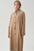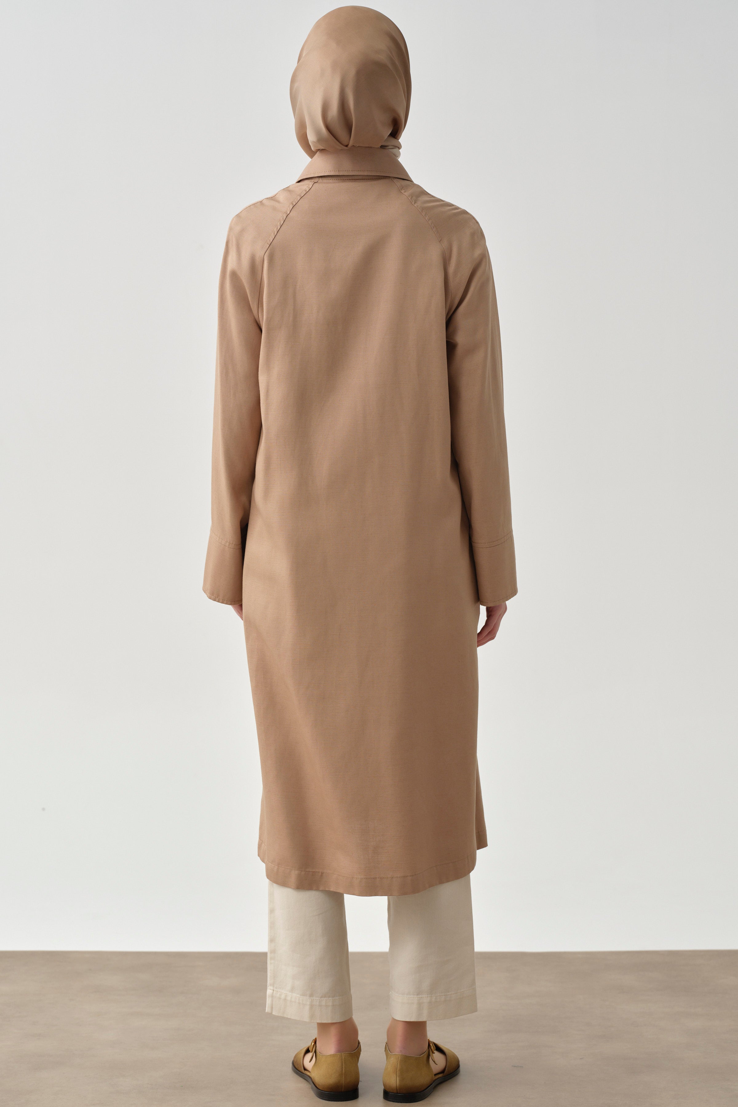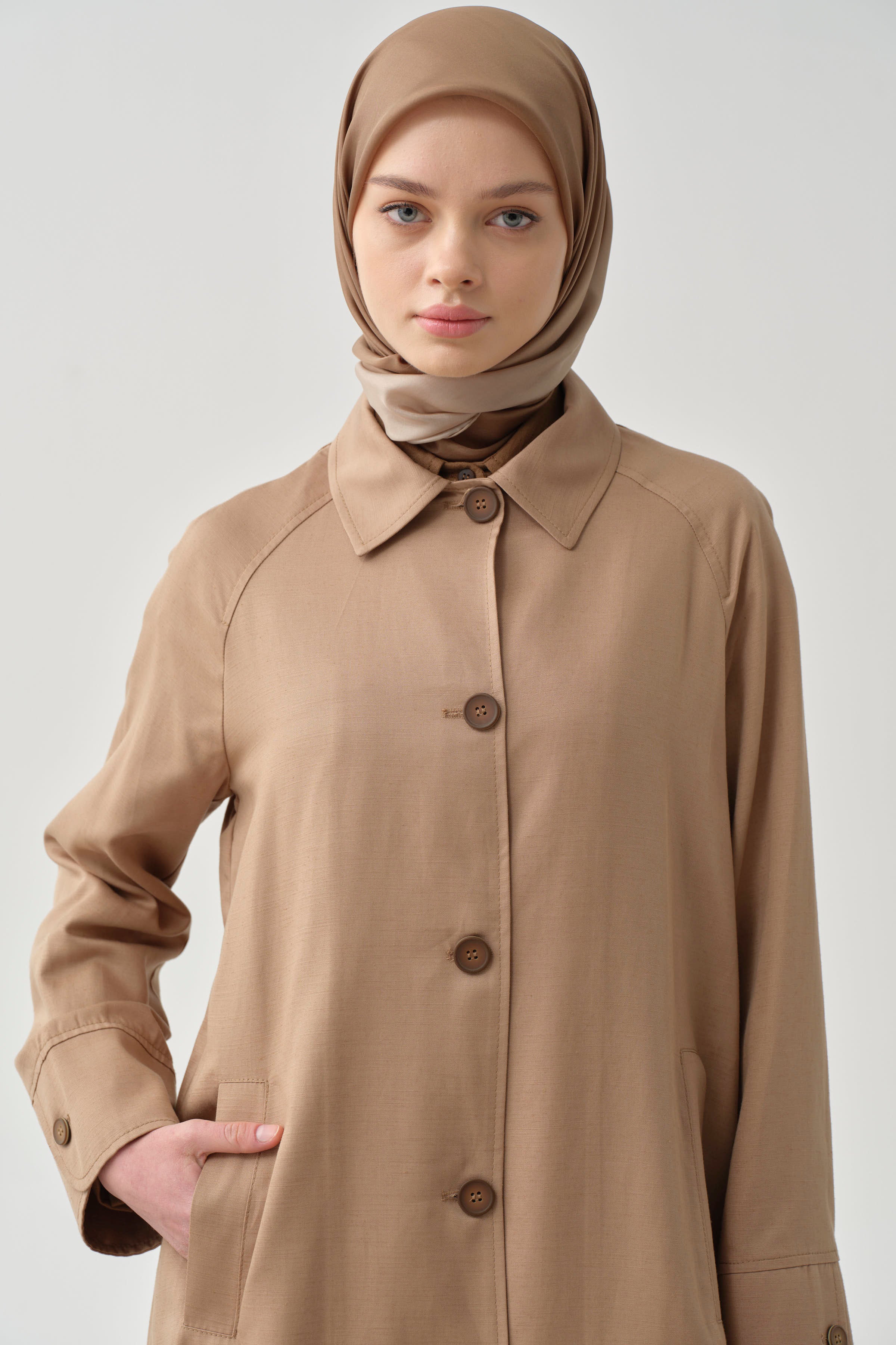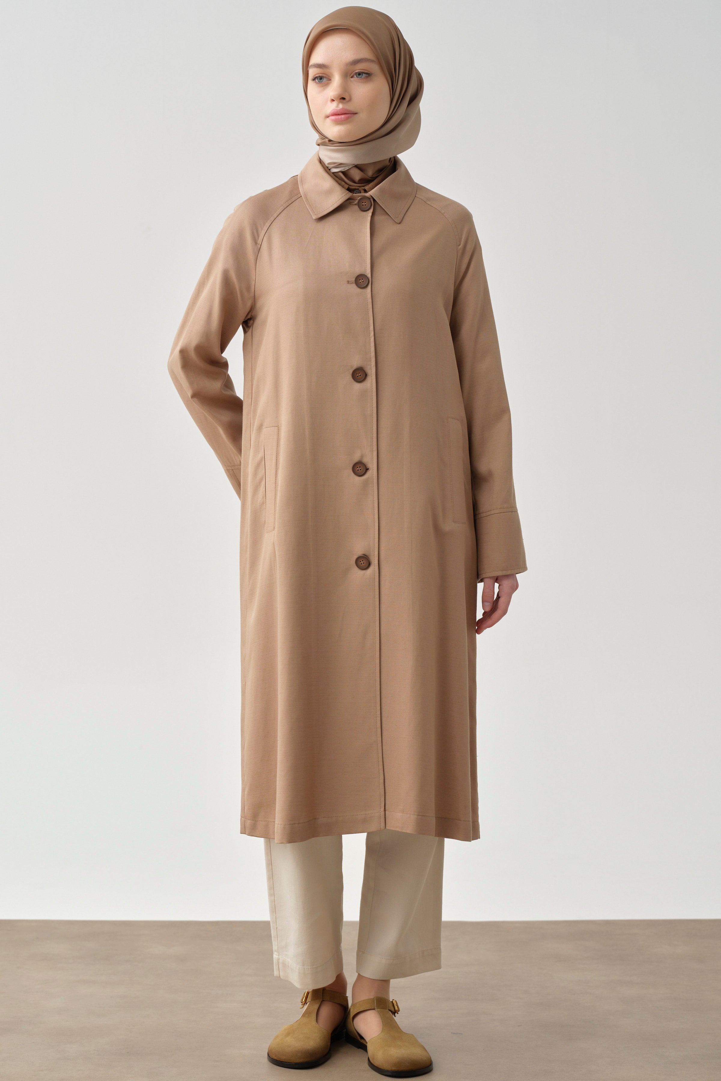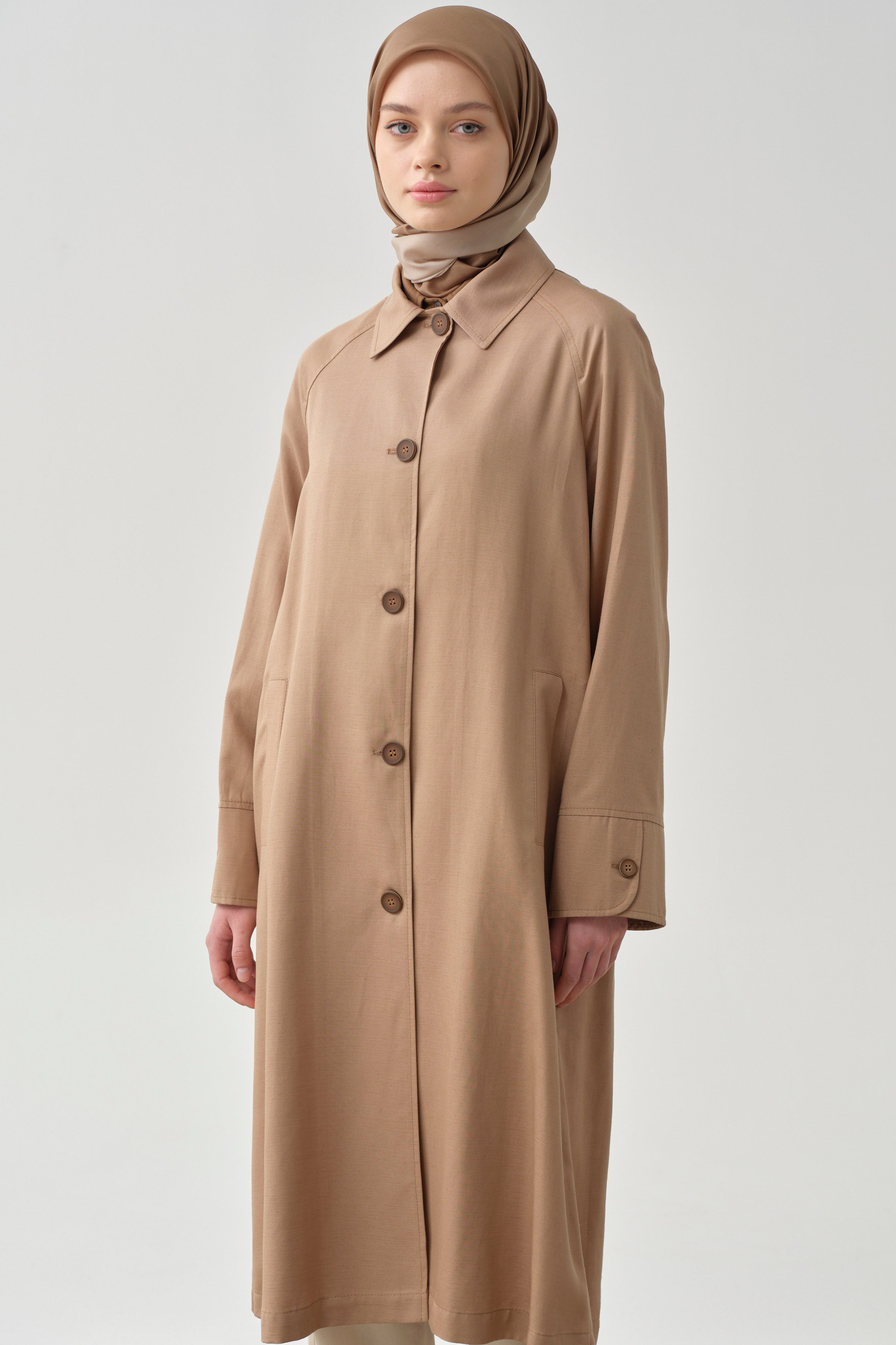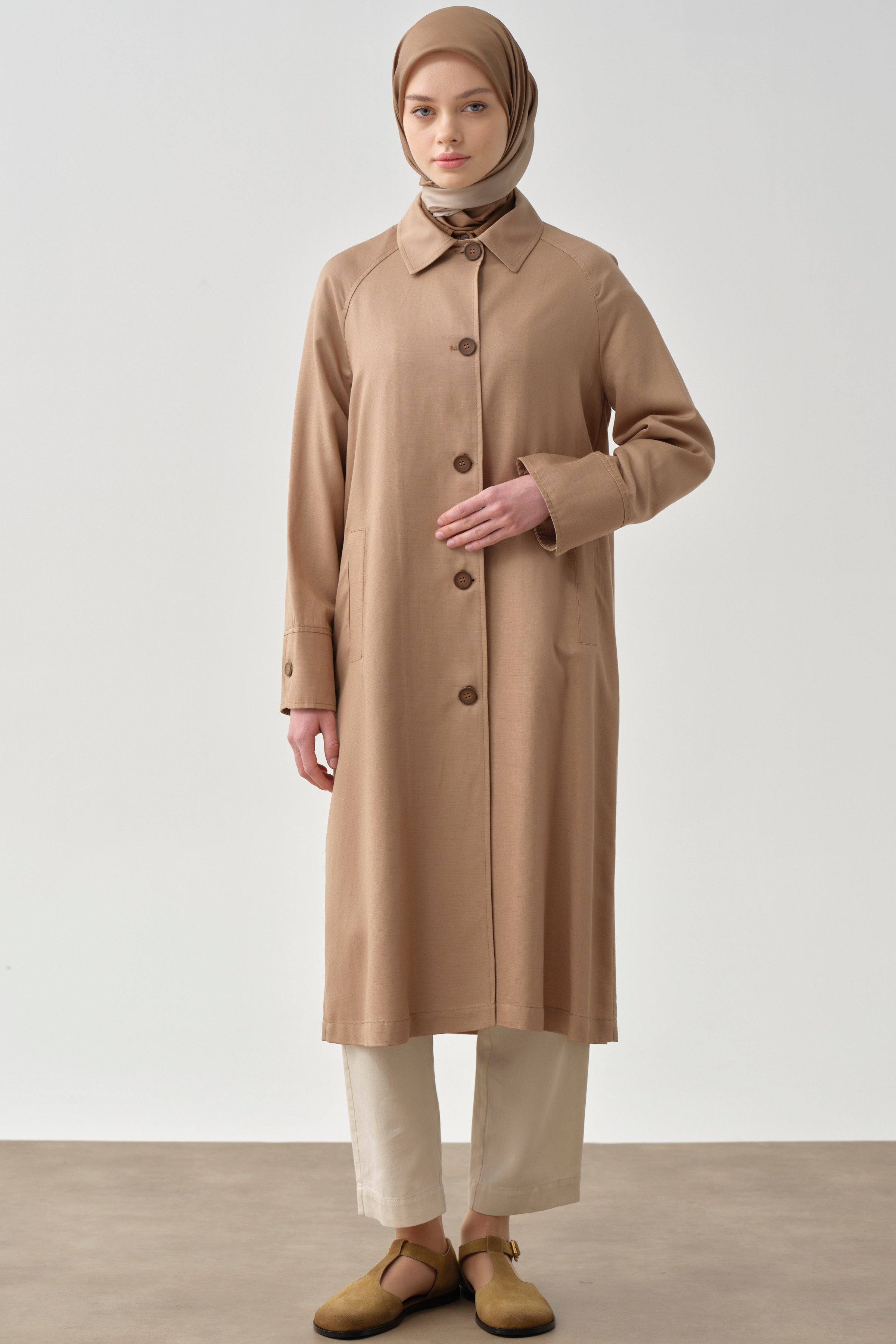 Featuring wide cuff details, this coat offers a modern and elegant look, combining style and comfort. Its flowing cut ensures comfortable wear, while its simple and sophisticated design complements any outfit.