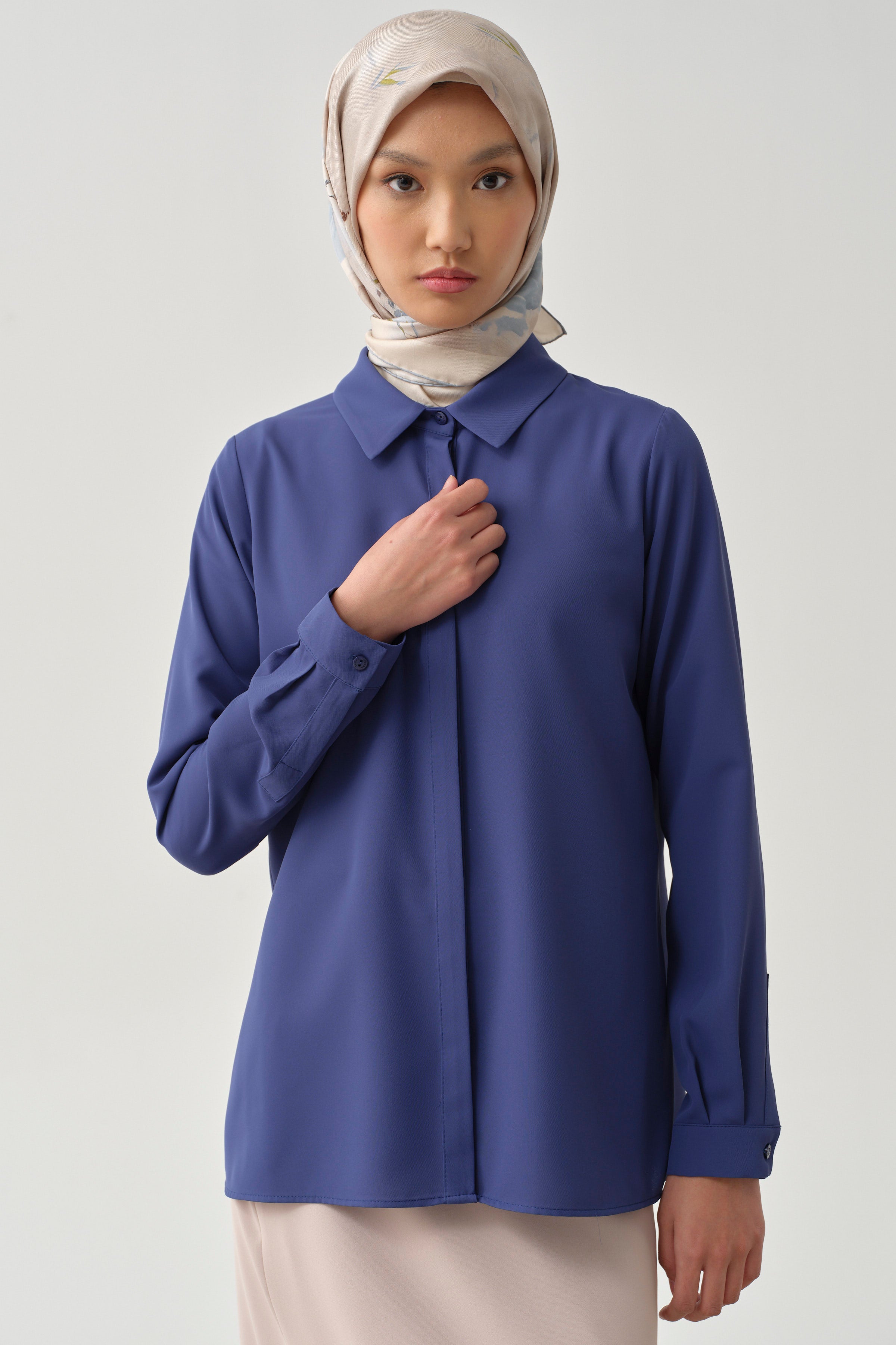 The Basic Hidden Placket Shirt is a versatile piece with a simple and elegant design. The hidden placket detail gives the shirt a clean and minimalist look, highlighting its sophistication.