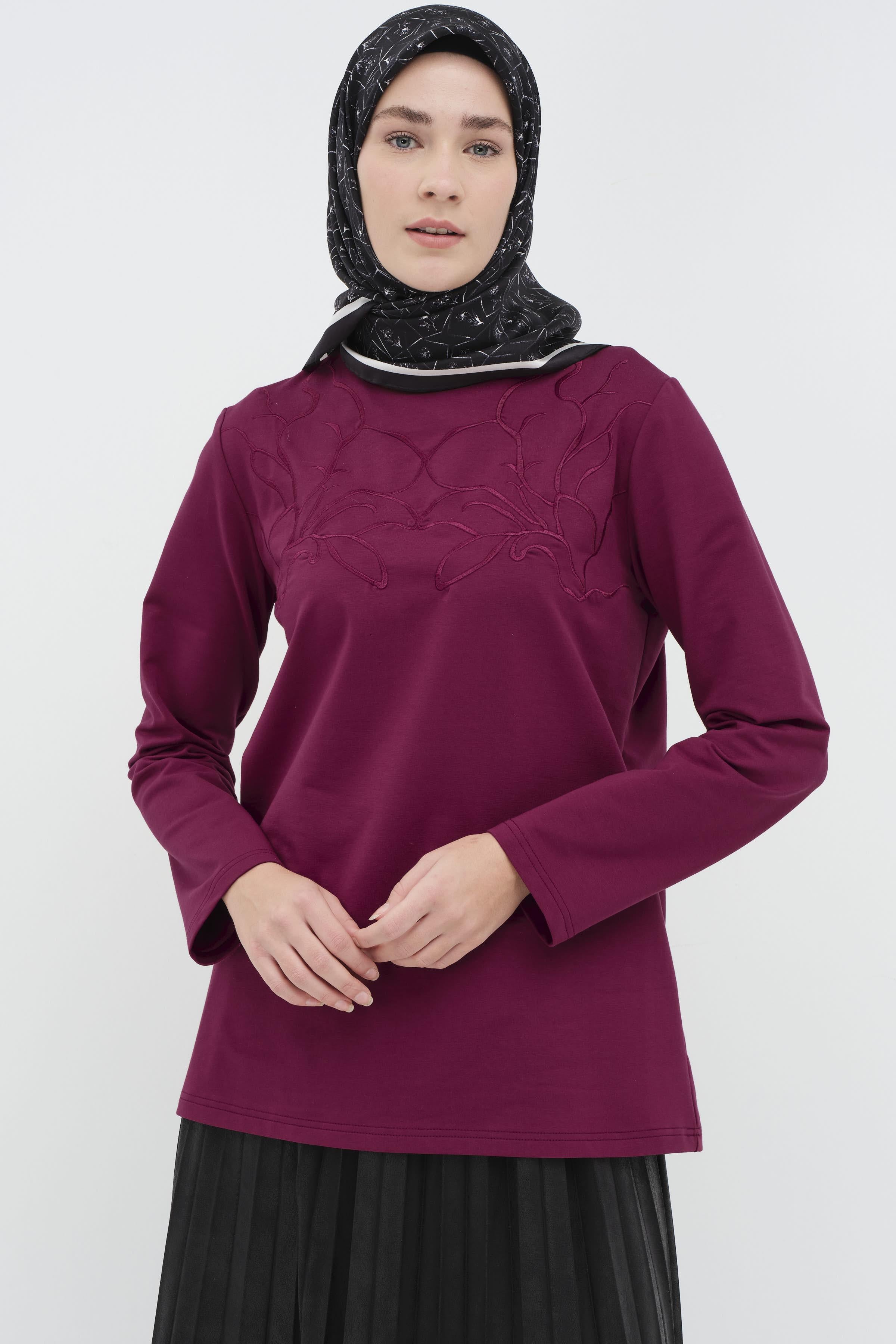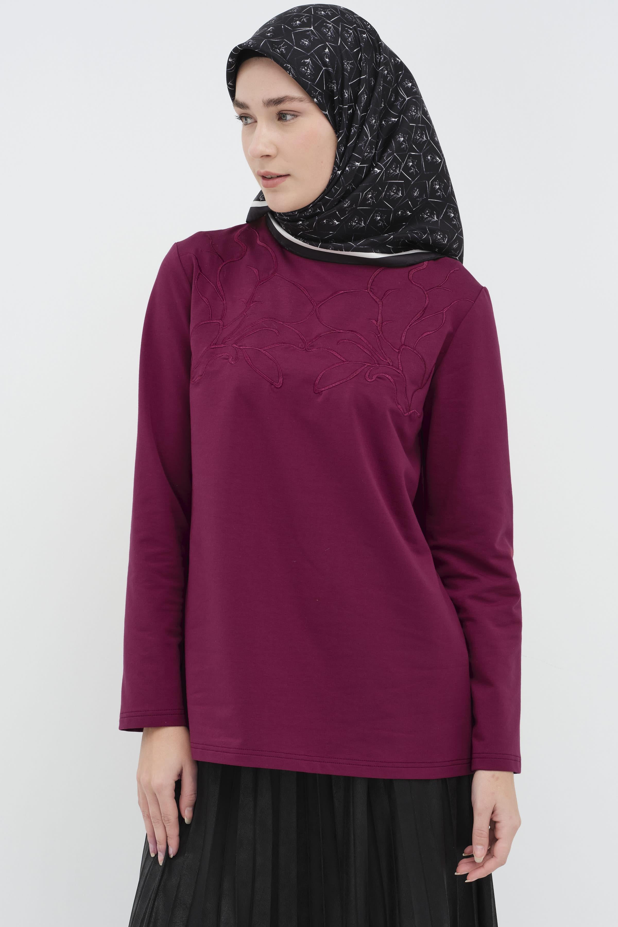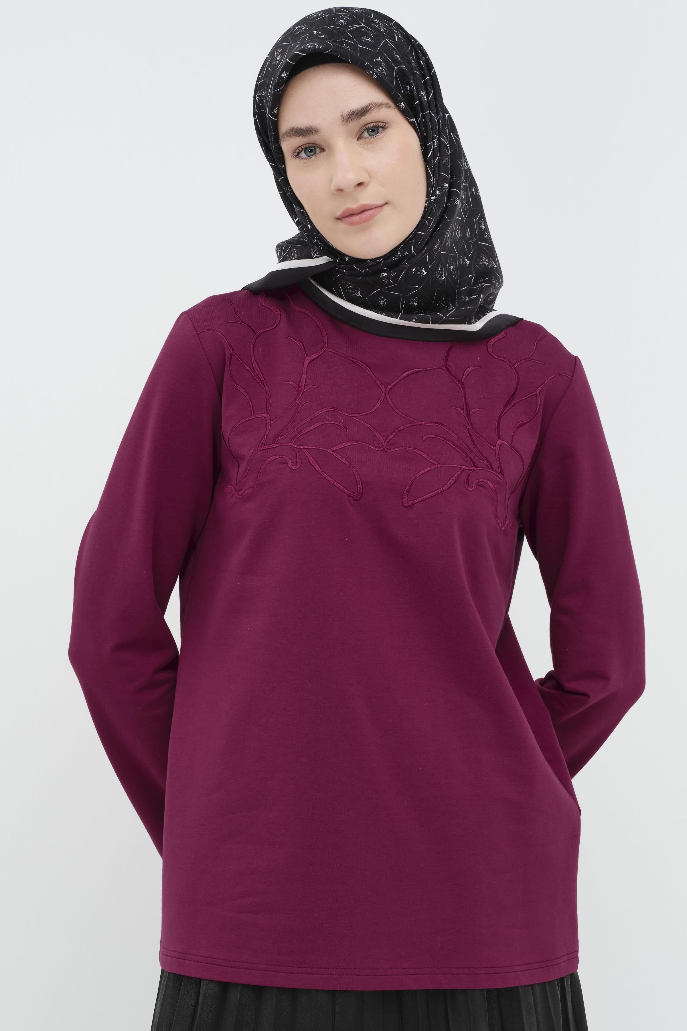 This short tunic, enlivened with elegant three-dimensional embroidery, offers a modern and stylish look. Its unique design adds a sophisticated touch to both everyday and special occasion outfits.