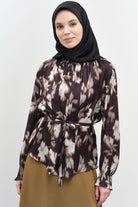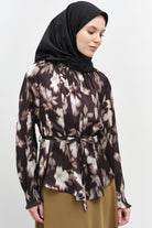 Elastic Gathered Detail Patterned Blouse - Olive