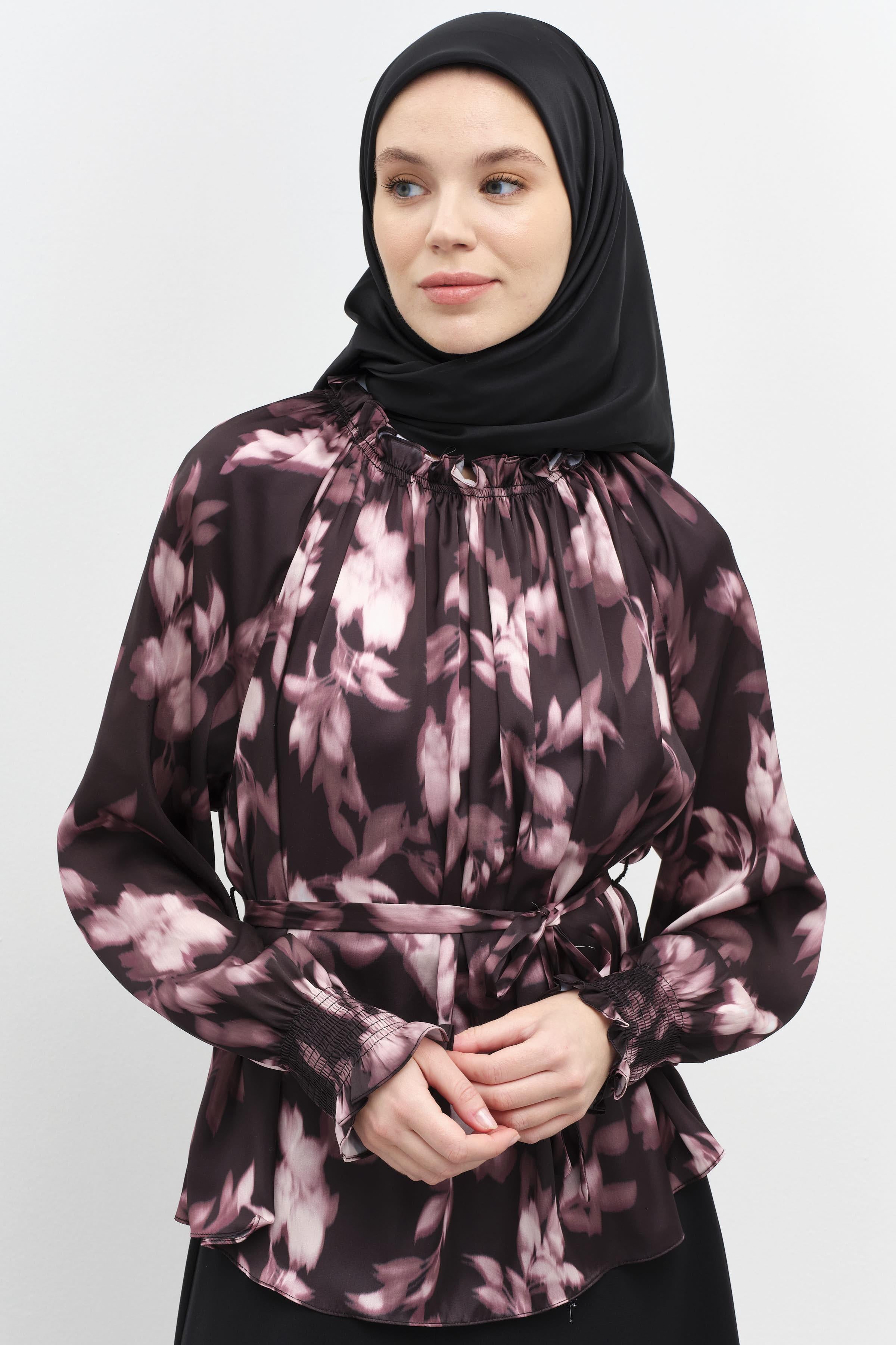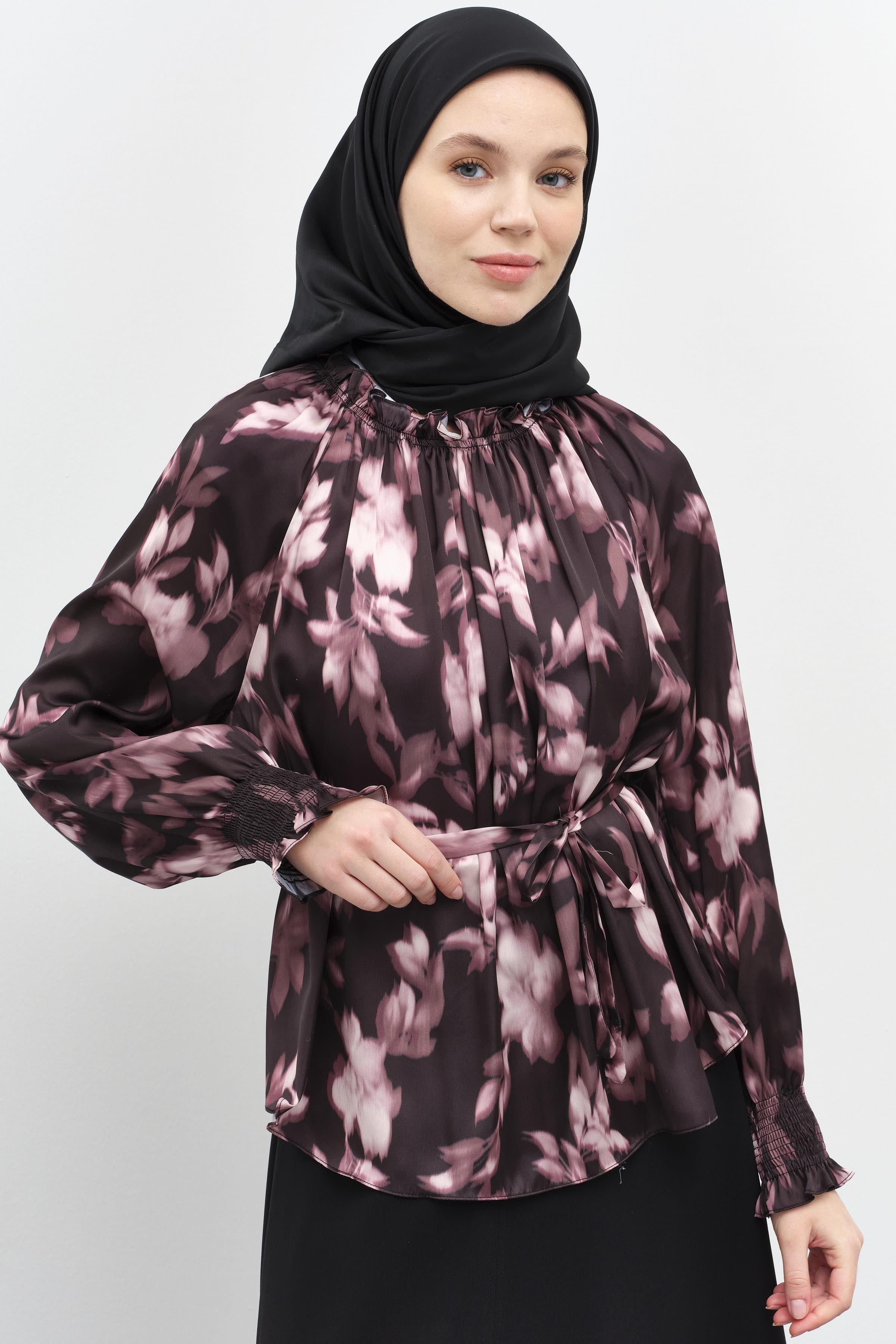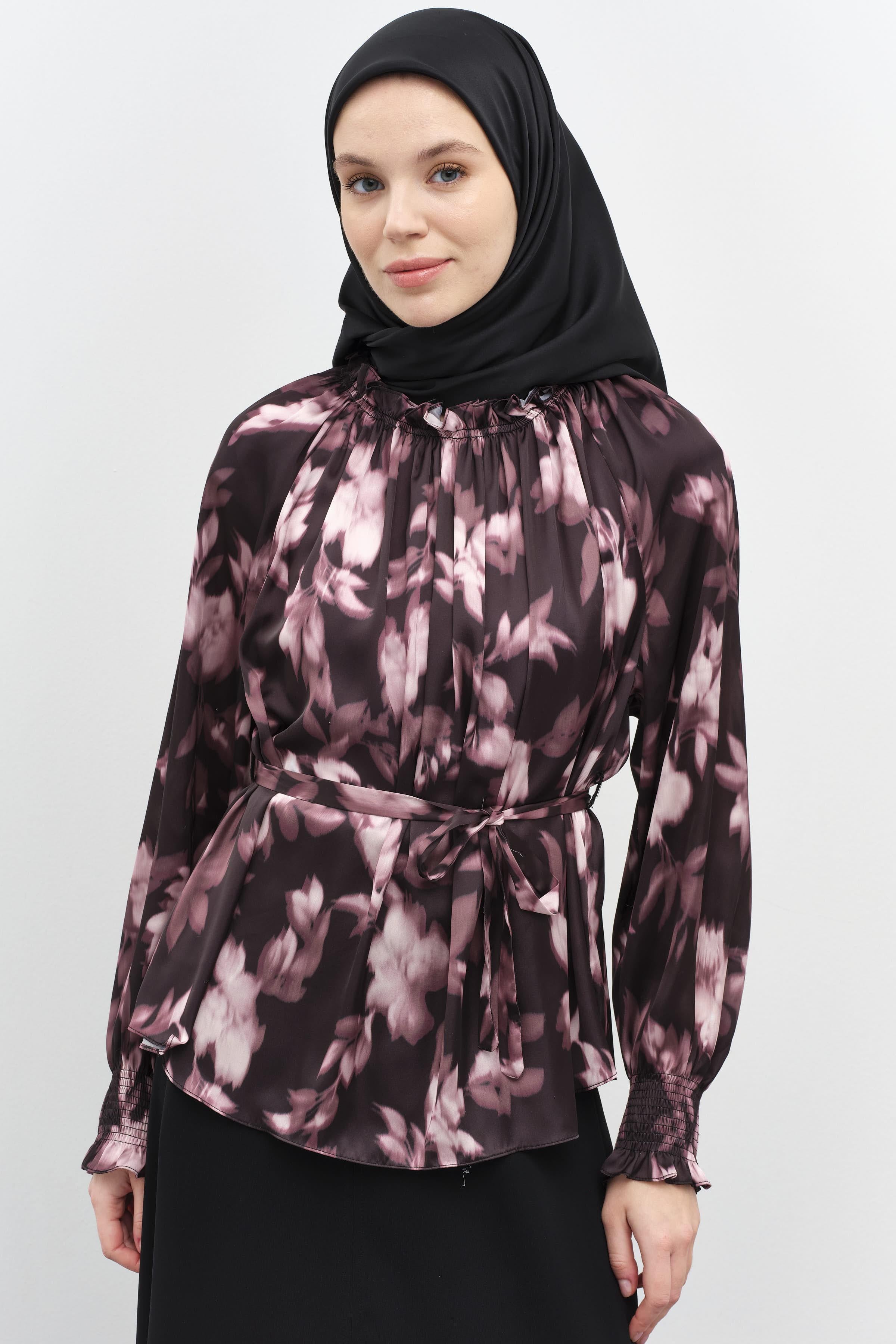 This patterned blouse, which gains an elegant form with its elasticated gather details, offers both style and comfort. Its lightweight fabric and modern cut add a touch of dynamism to your everyday outfits, while its comfortable design ensures all-day wear.