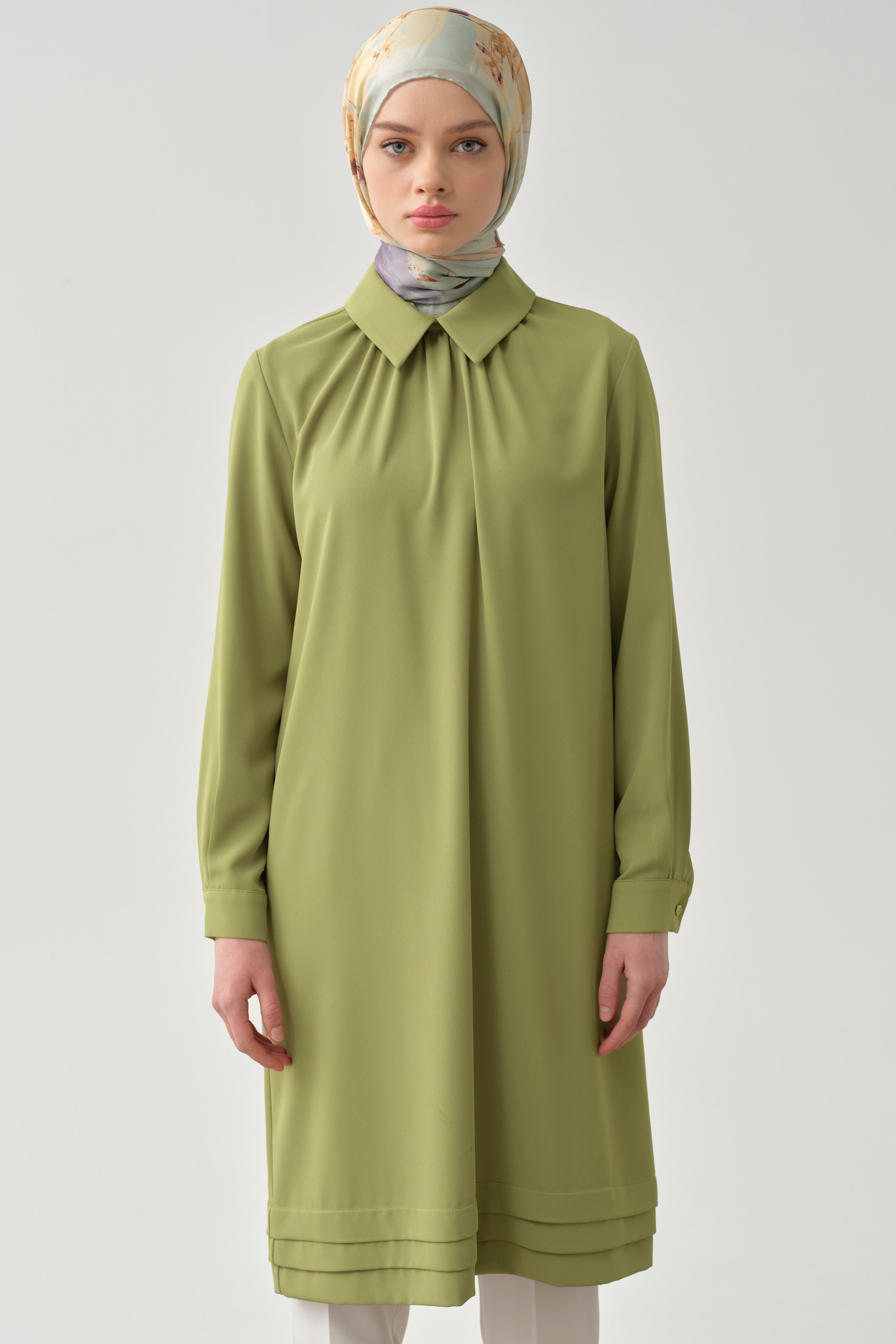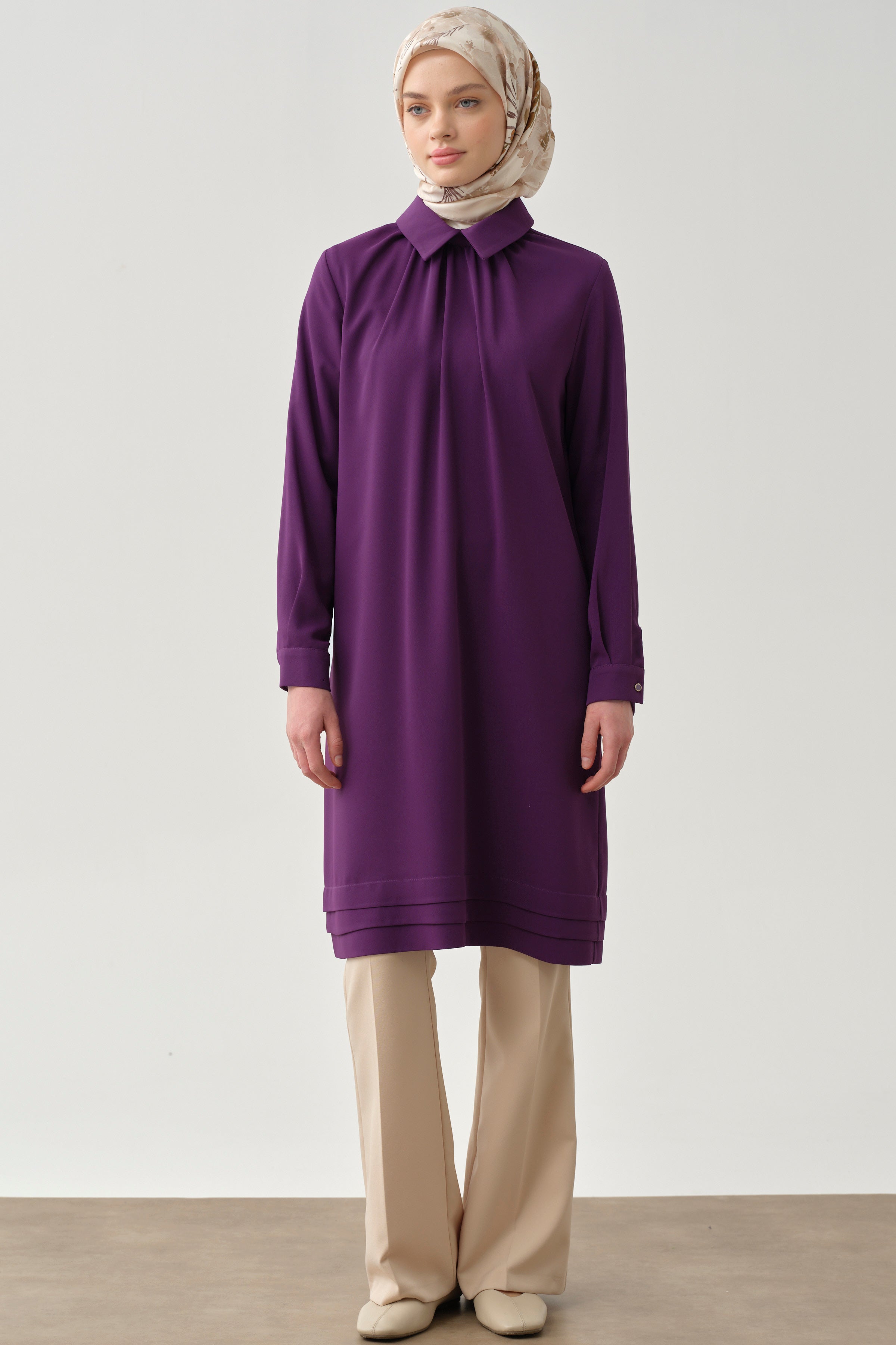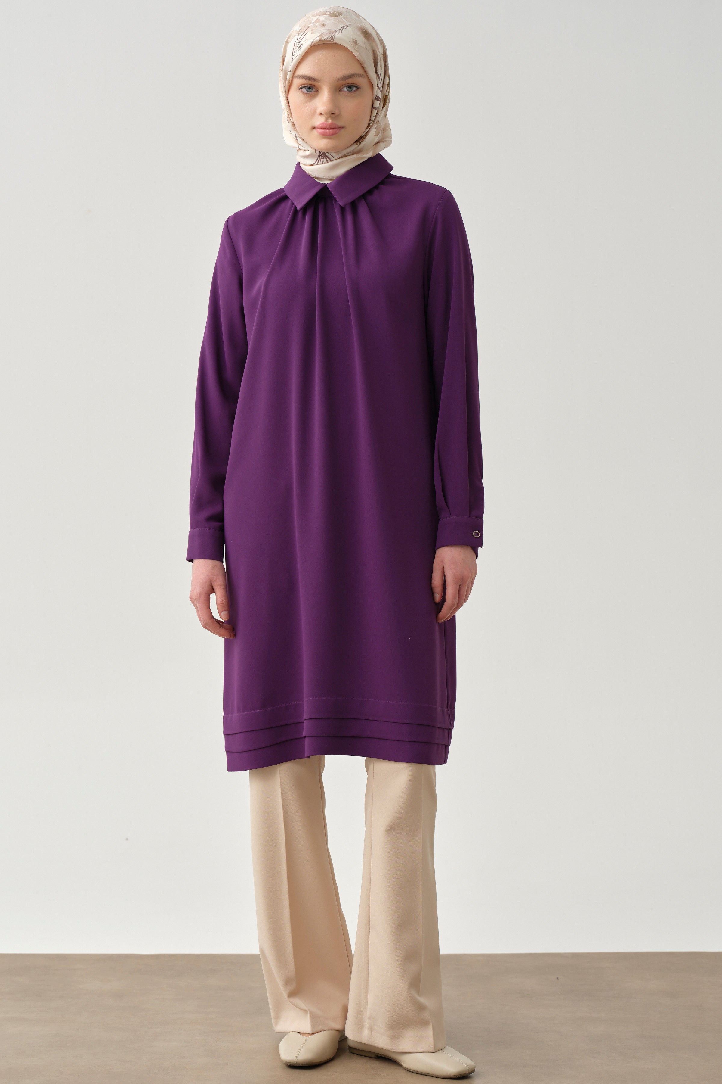 There are models to suit every taste in the women's plus size tunic collection. Many types such as long sleeve, short sleeve, buttoned, zippered and patterned allow you to create different combinations. In daily life, you can create a comfortable style by combining it with jeans and sneakers. At the same time, you can get an elegant look at work or at special events by combining it with stylish trousers and high-heeled shoes.
