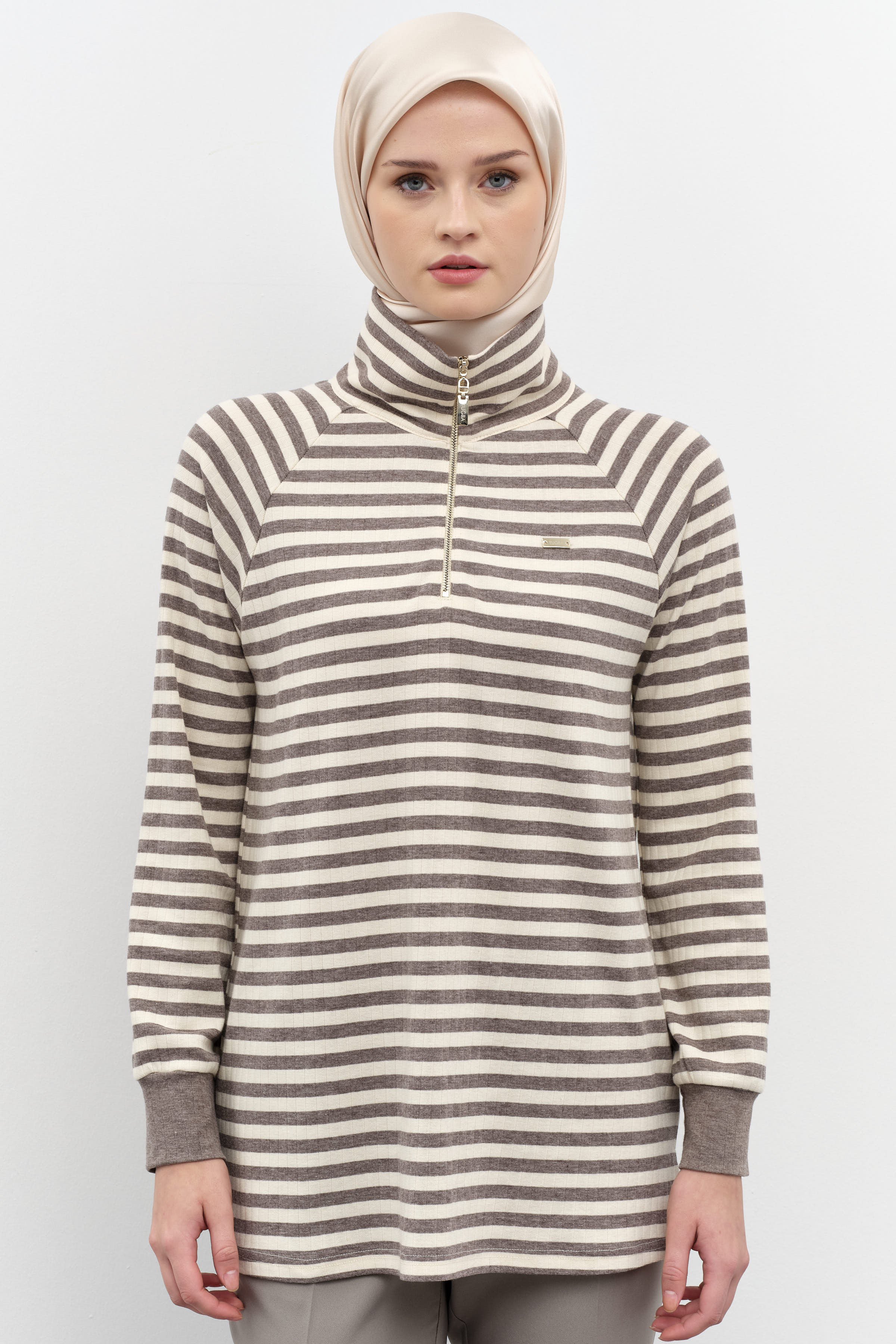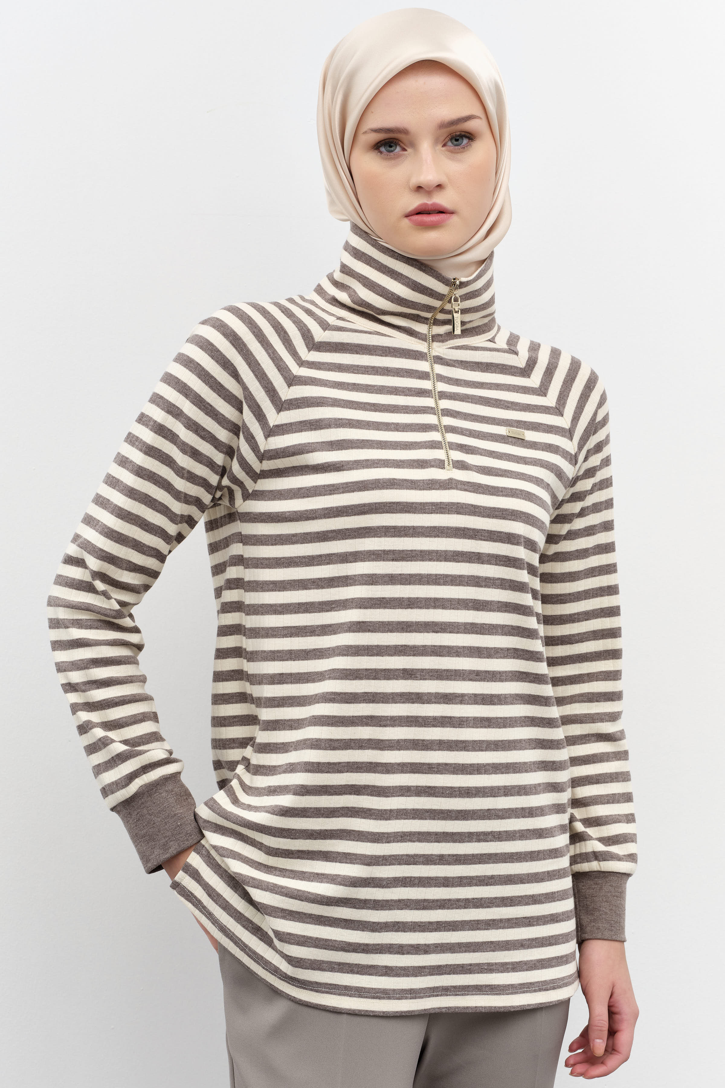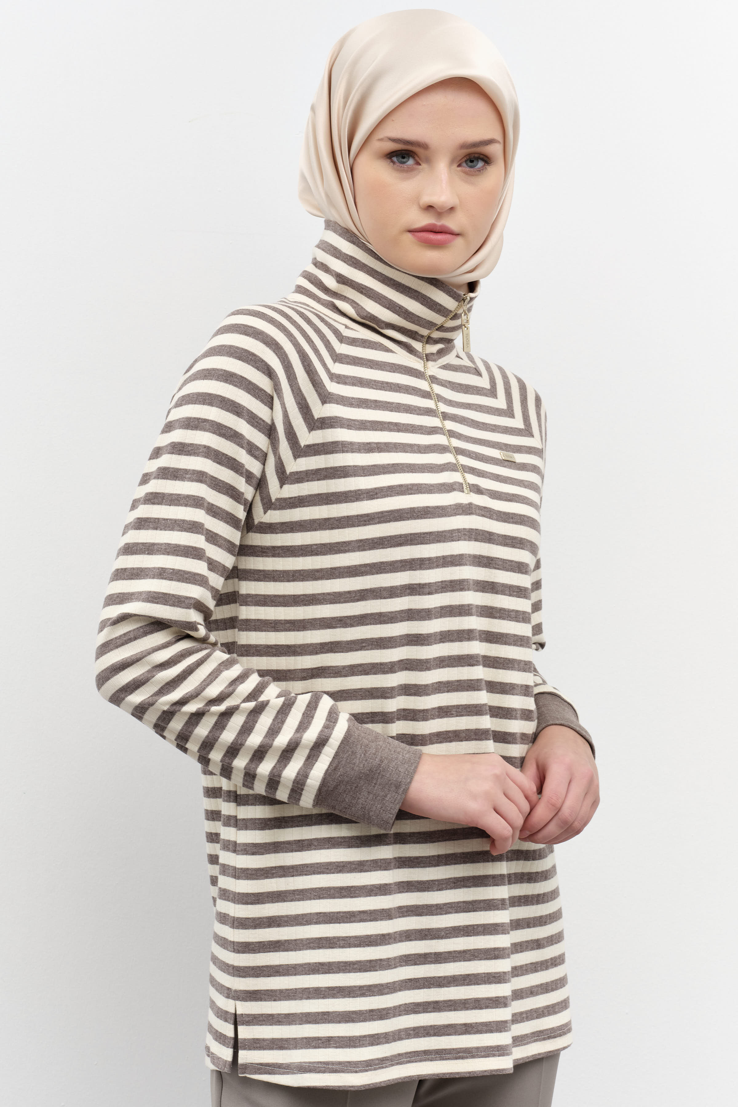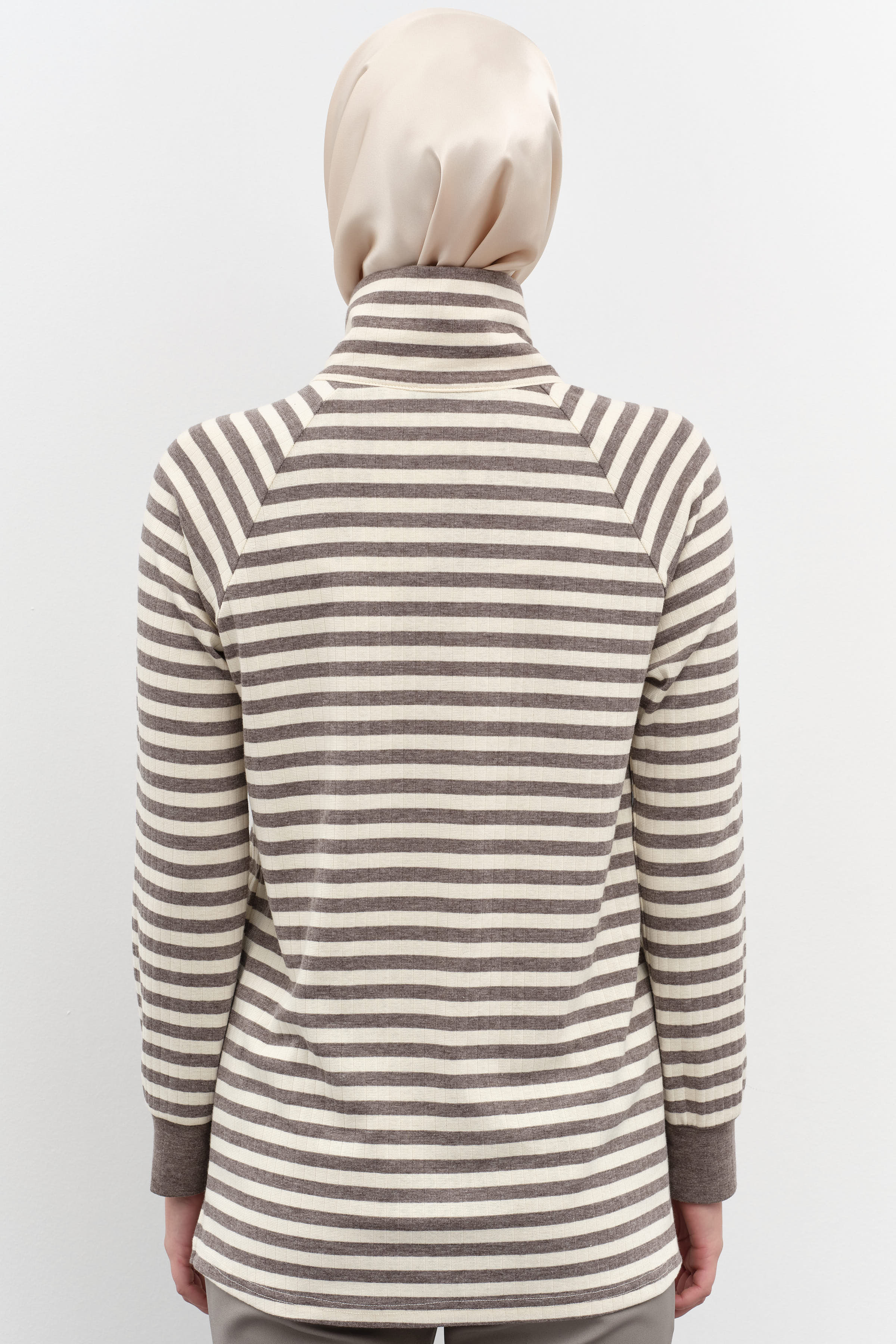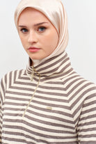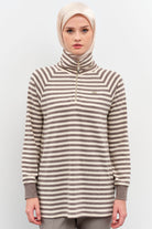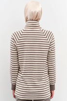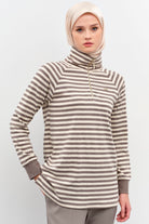 Striped Turtleneck Knitted Sweater - Mink