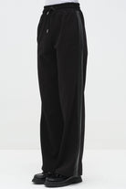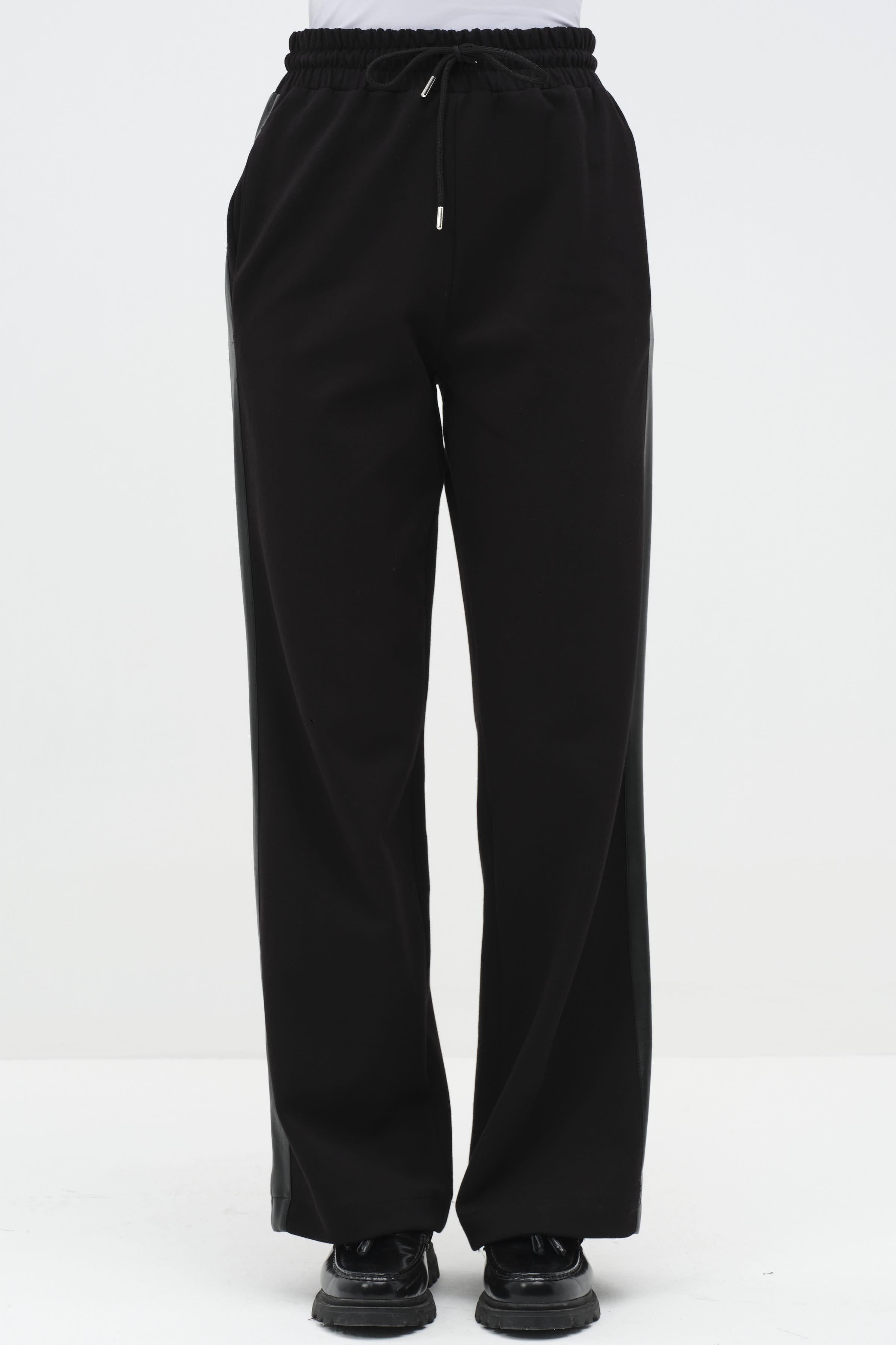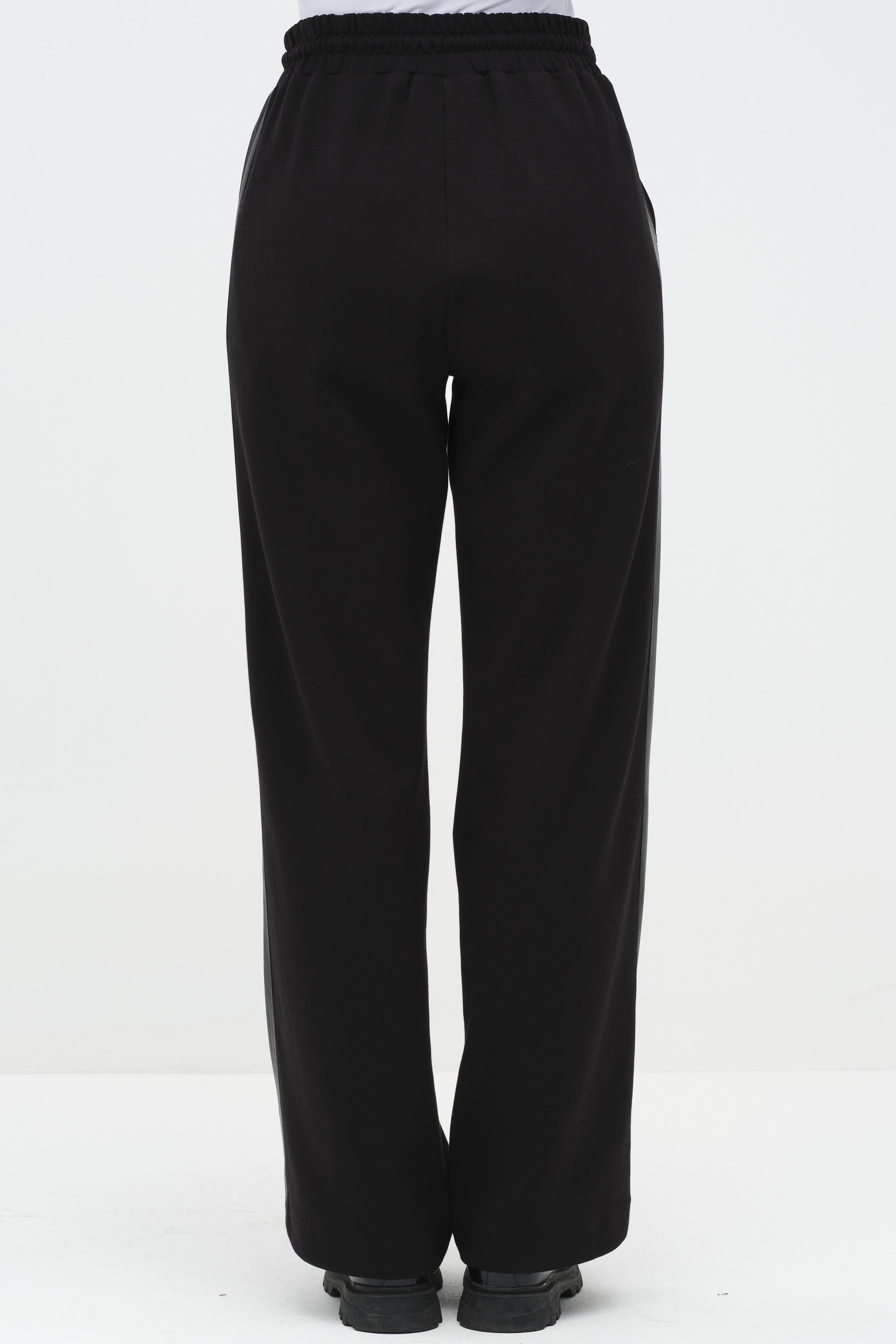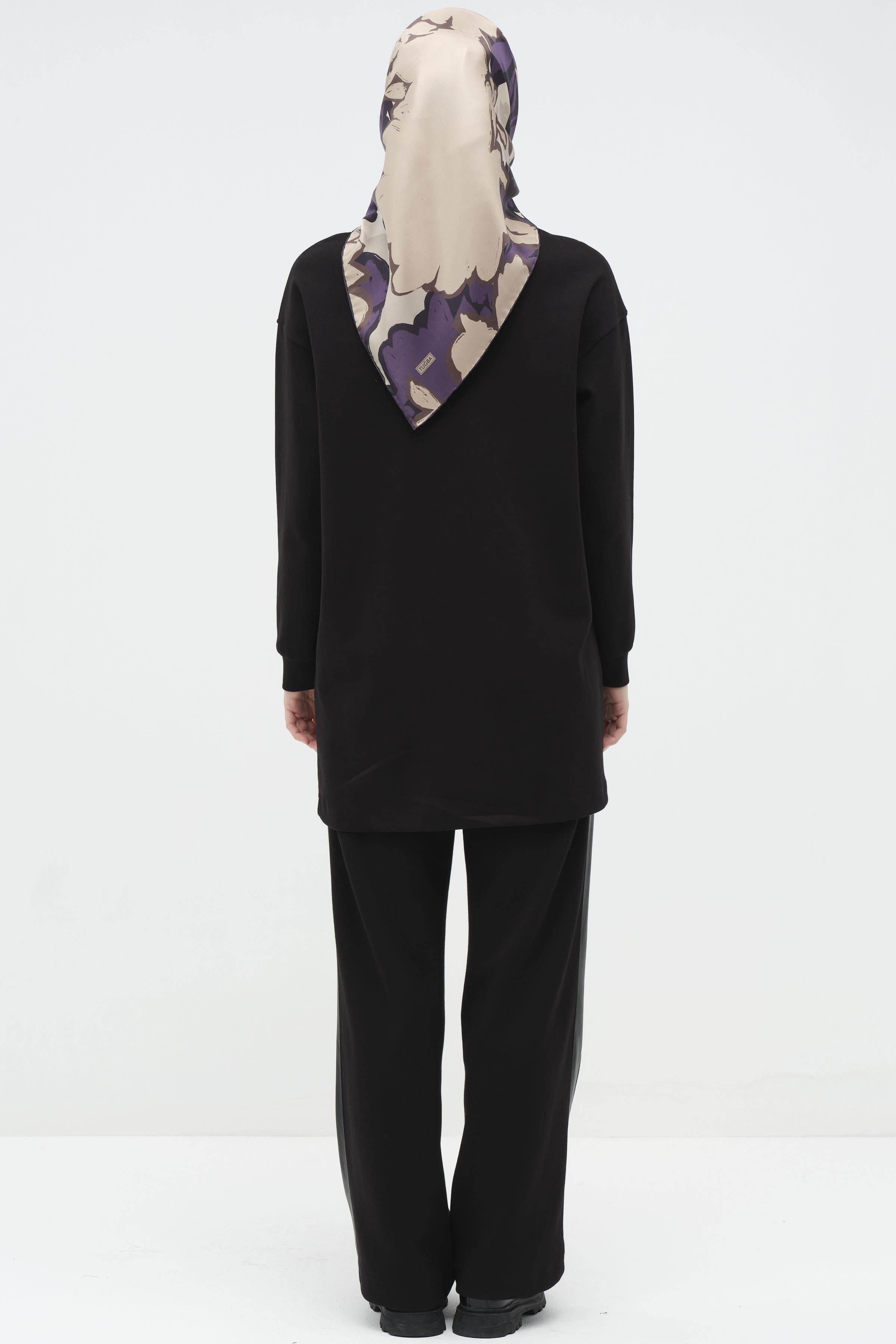 Leather Garnished Tunic Trouser Knitted Set - Black
