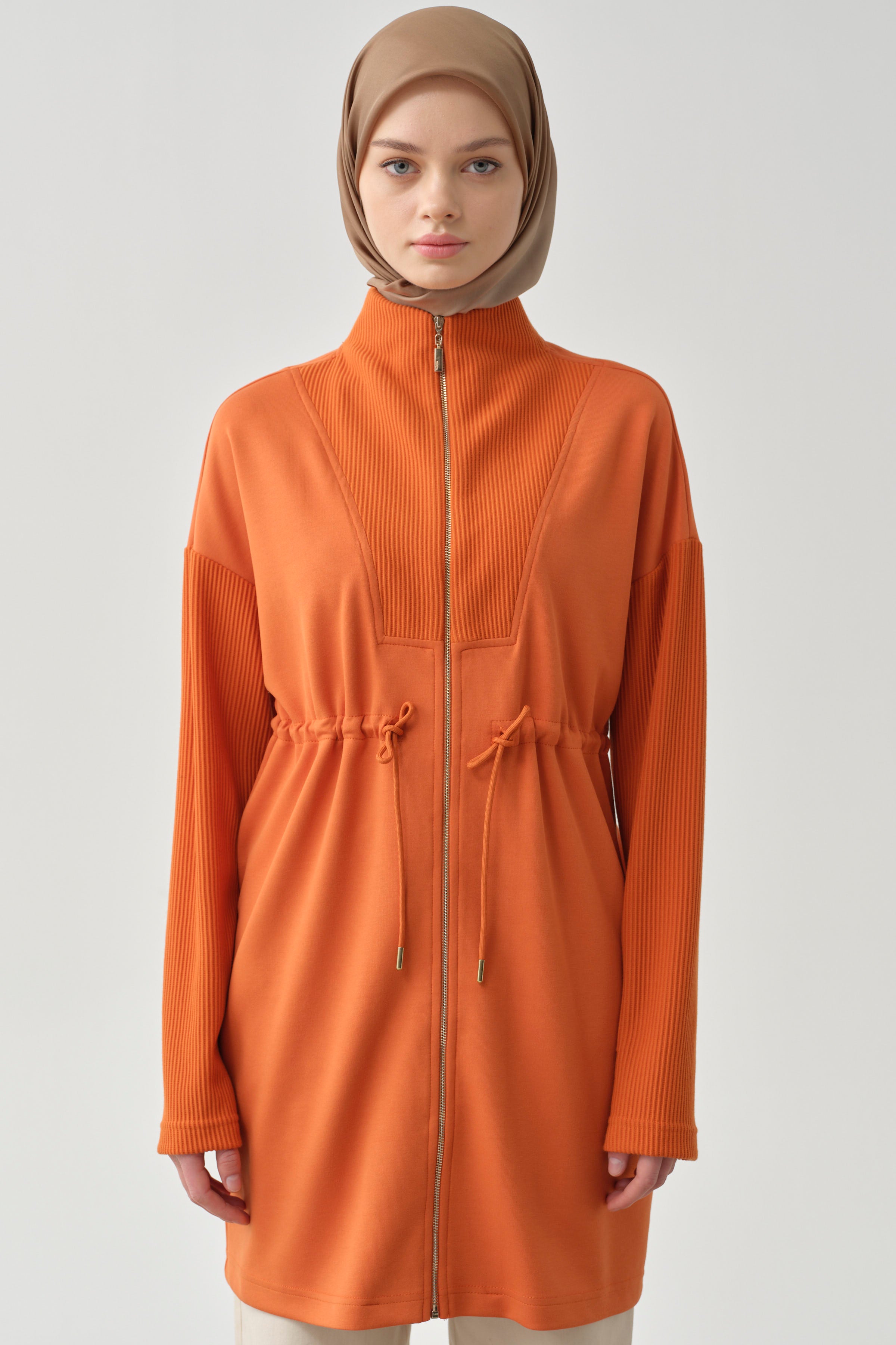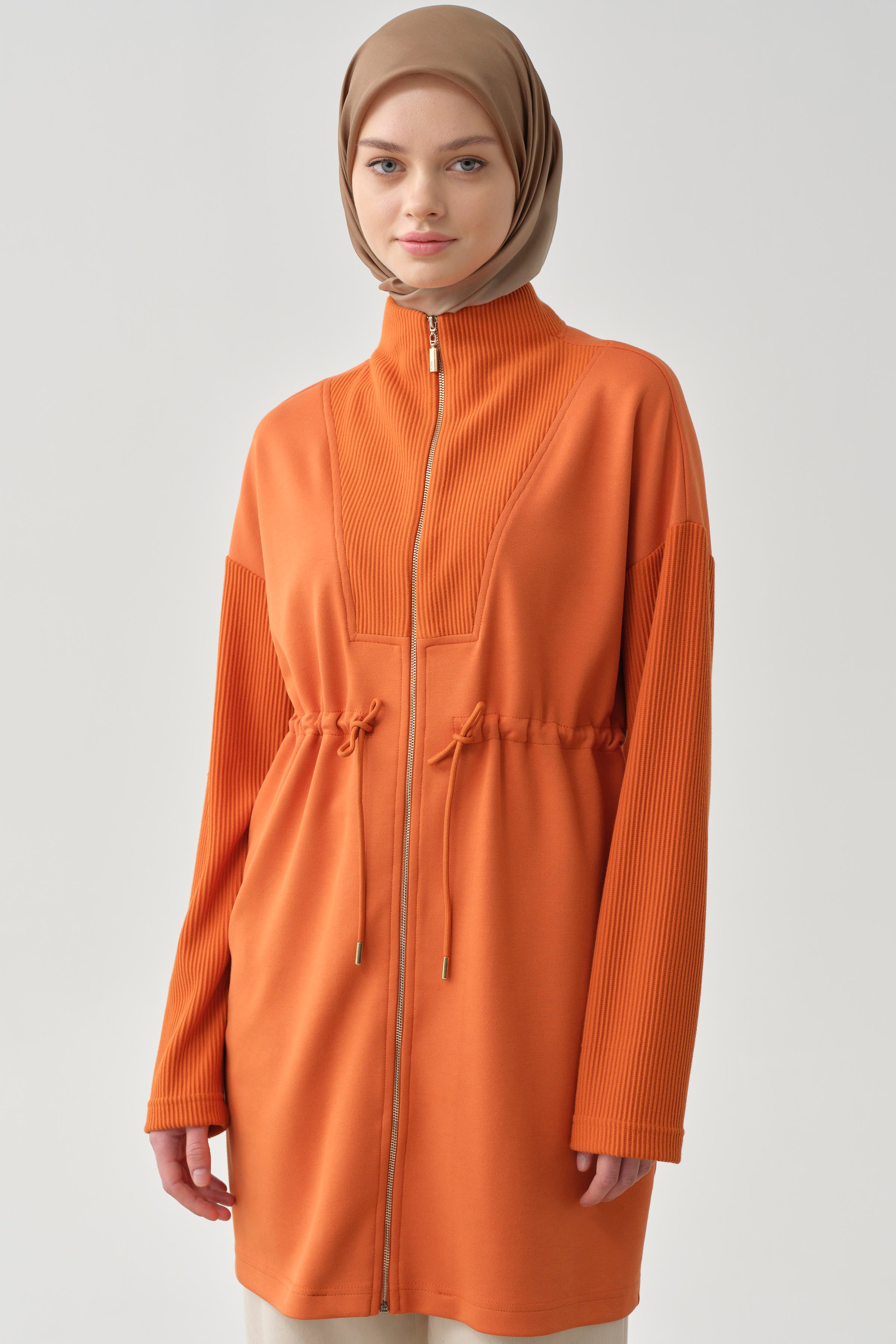 Featuring a zipper closure and embellished design, this sweatshirt offers a modern look while combining comfort and style. Its soft texture and practical zipper detail make it an ideal choice for everyday wear.