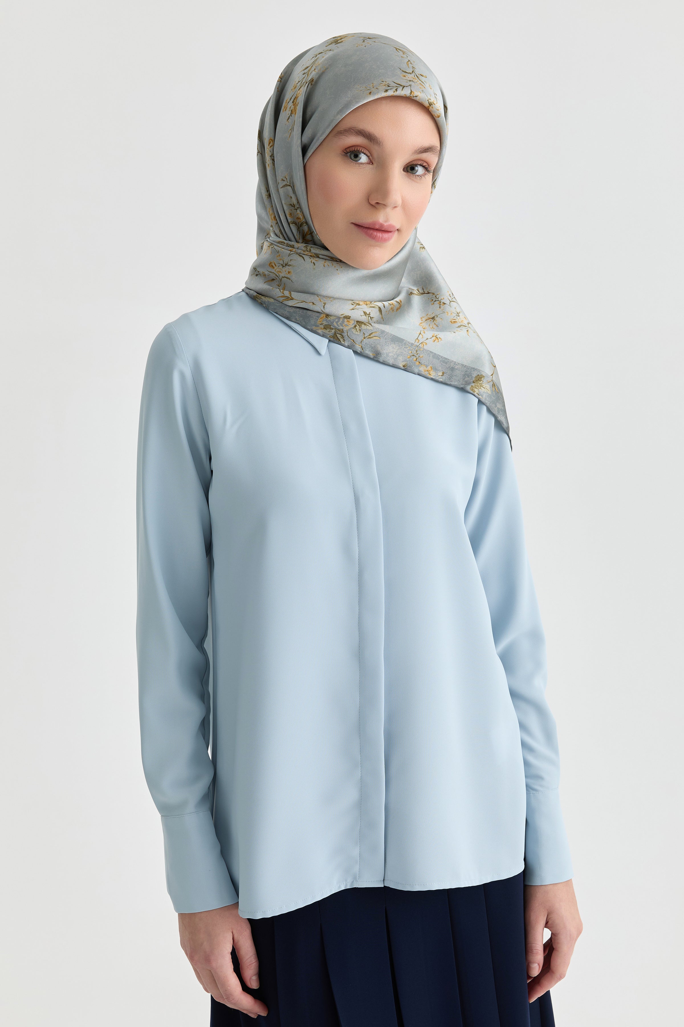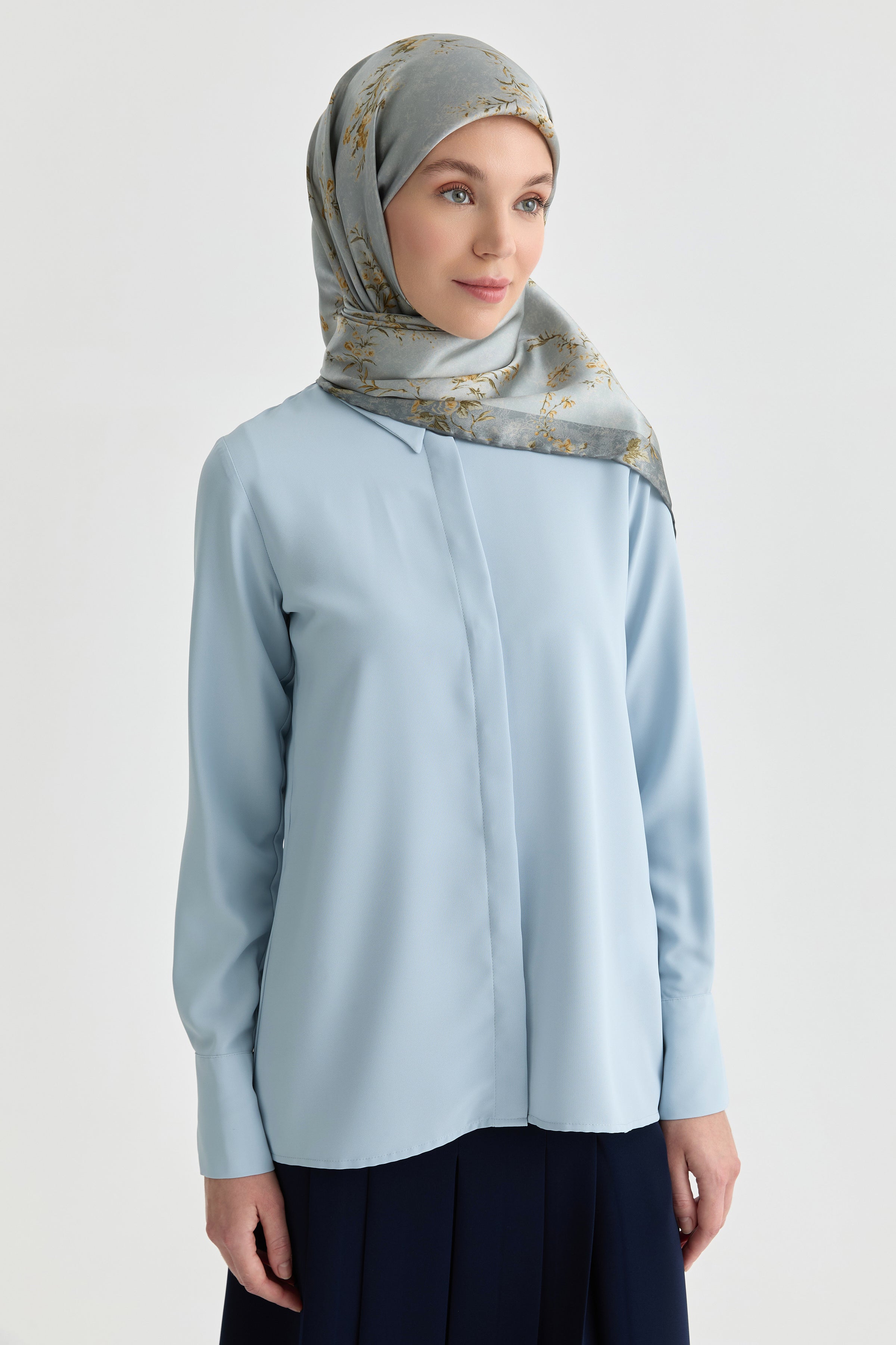 This basic tunic with a hidden placket complements any style with its simple design and elegance. Its modern cut elegantly highlights the figure's curves and is ideal for everyday wear with its comfort.