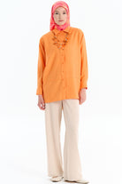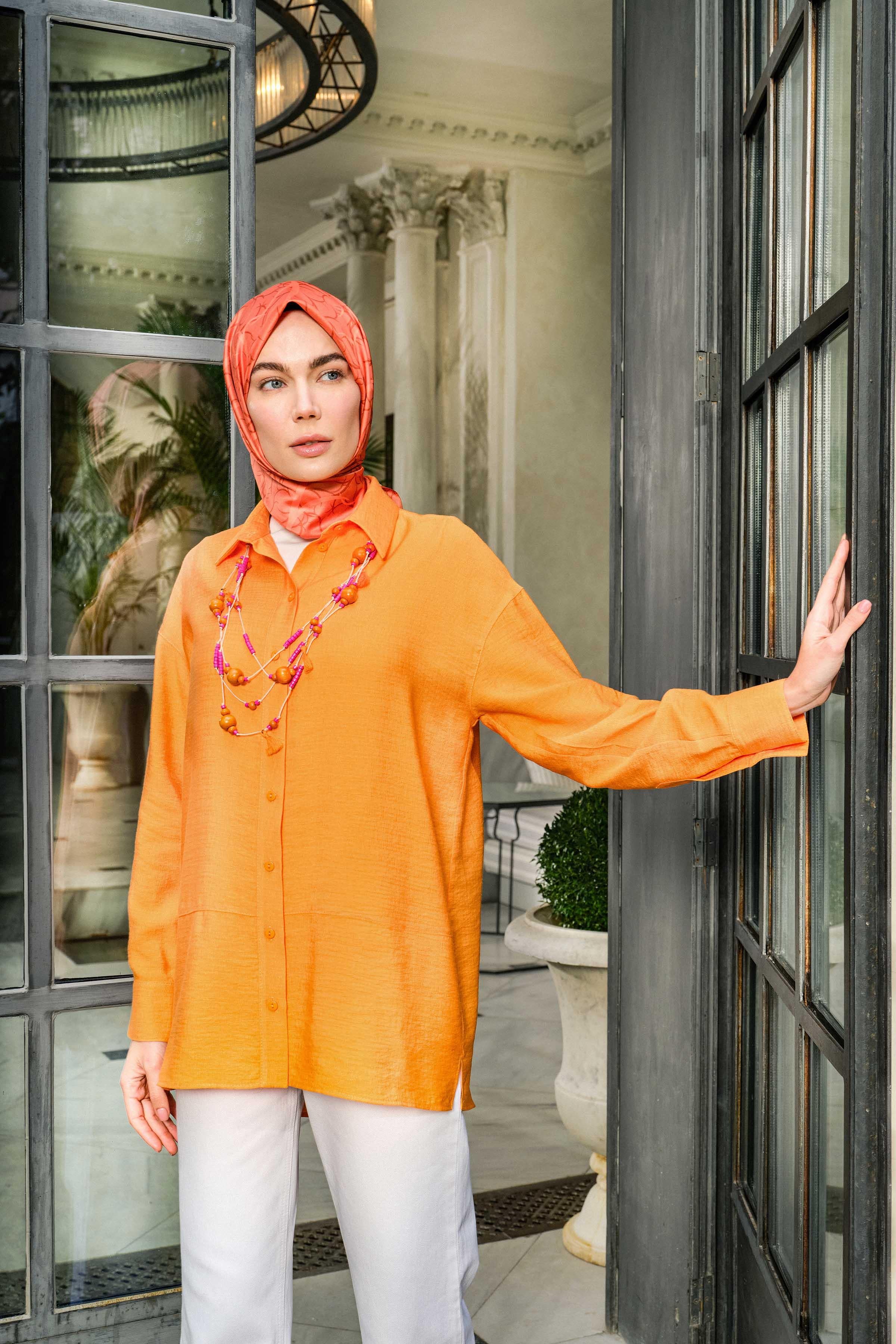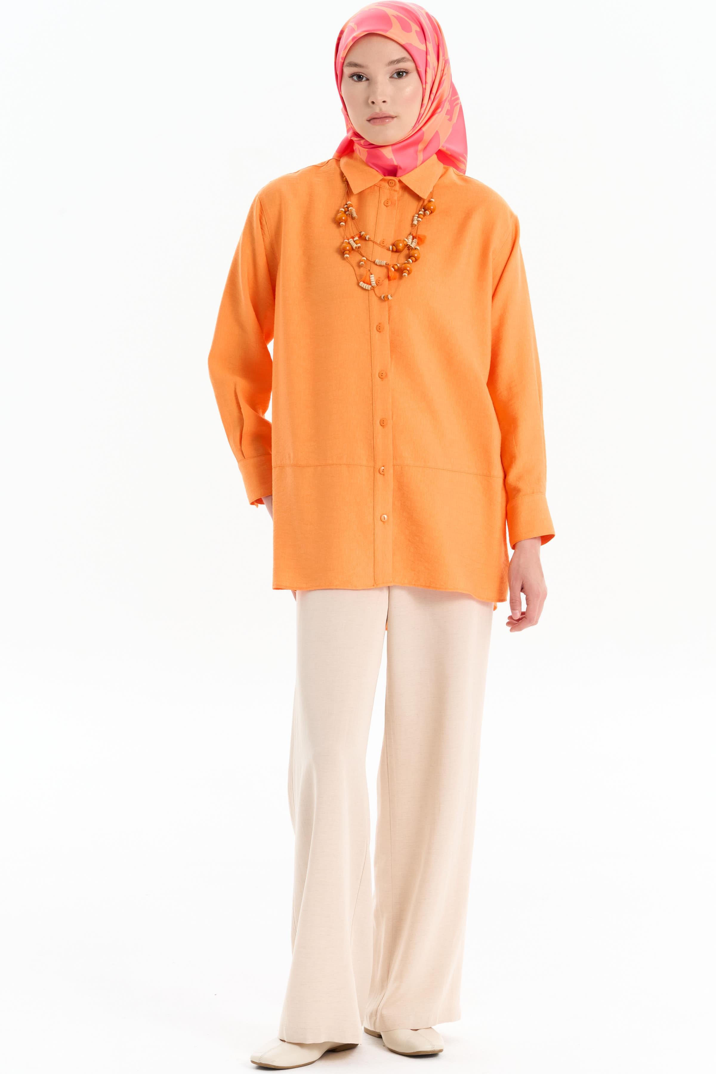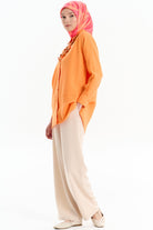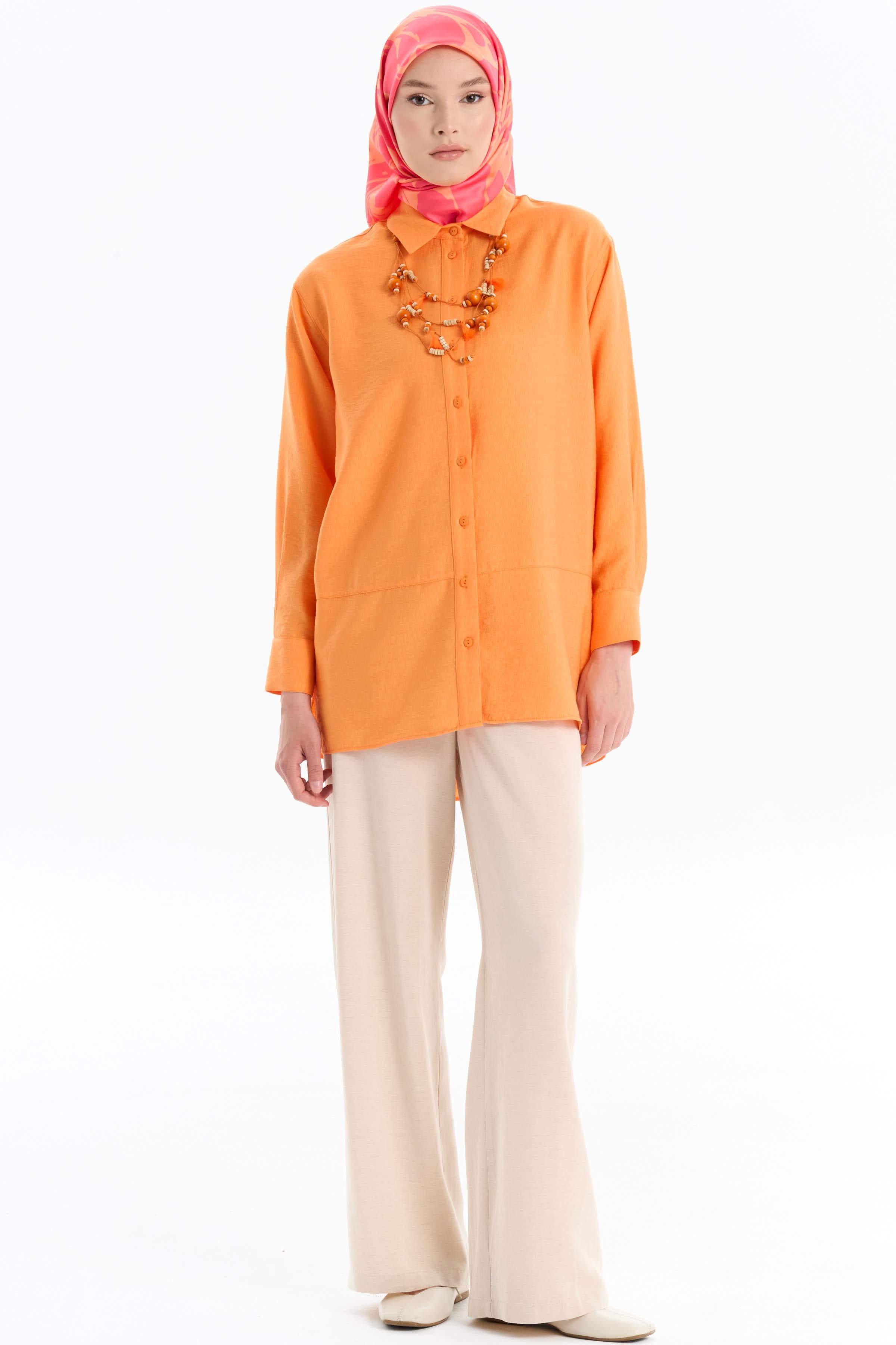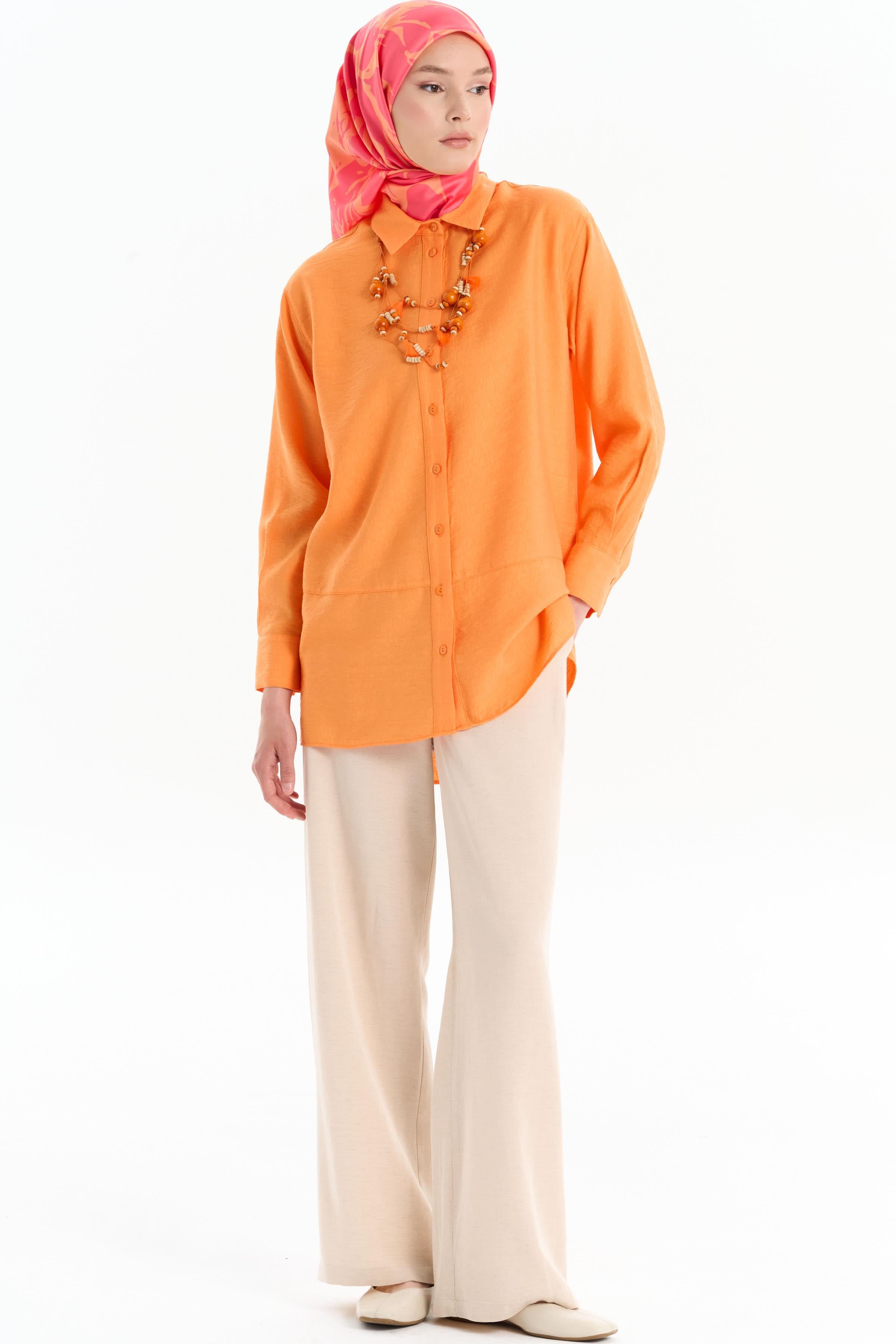 Cut-Out Detailed Necklace Shirt - Orange