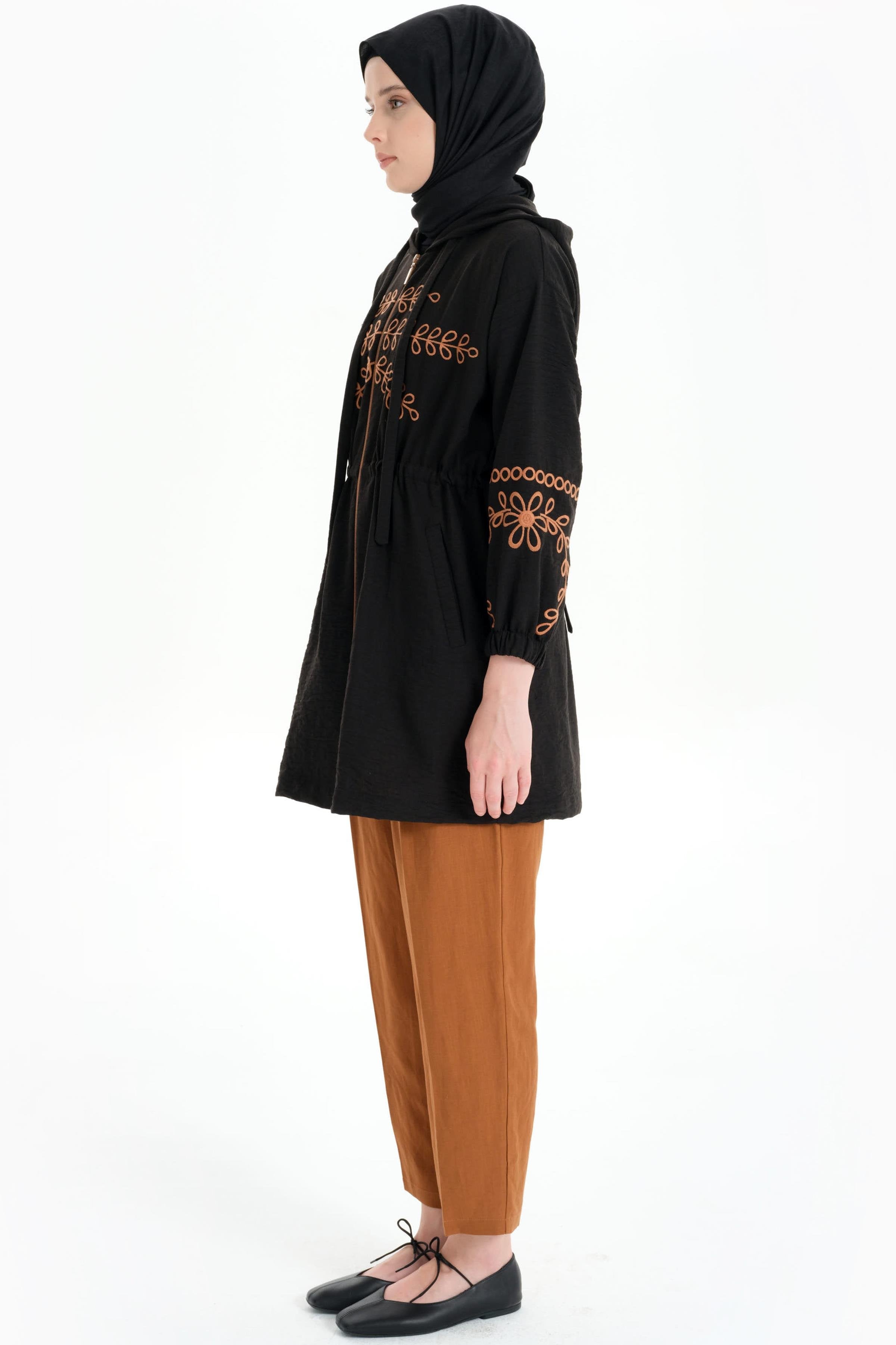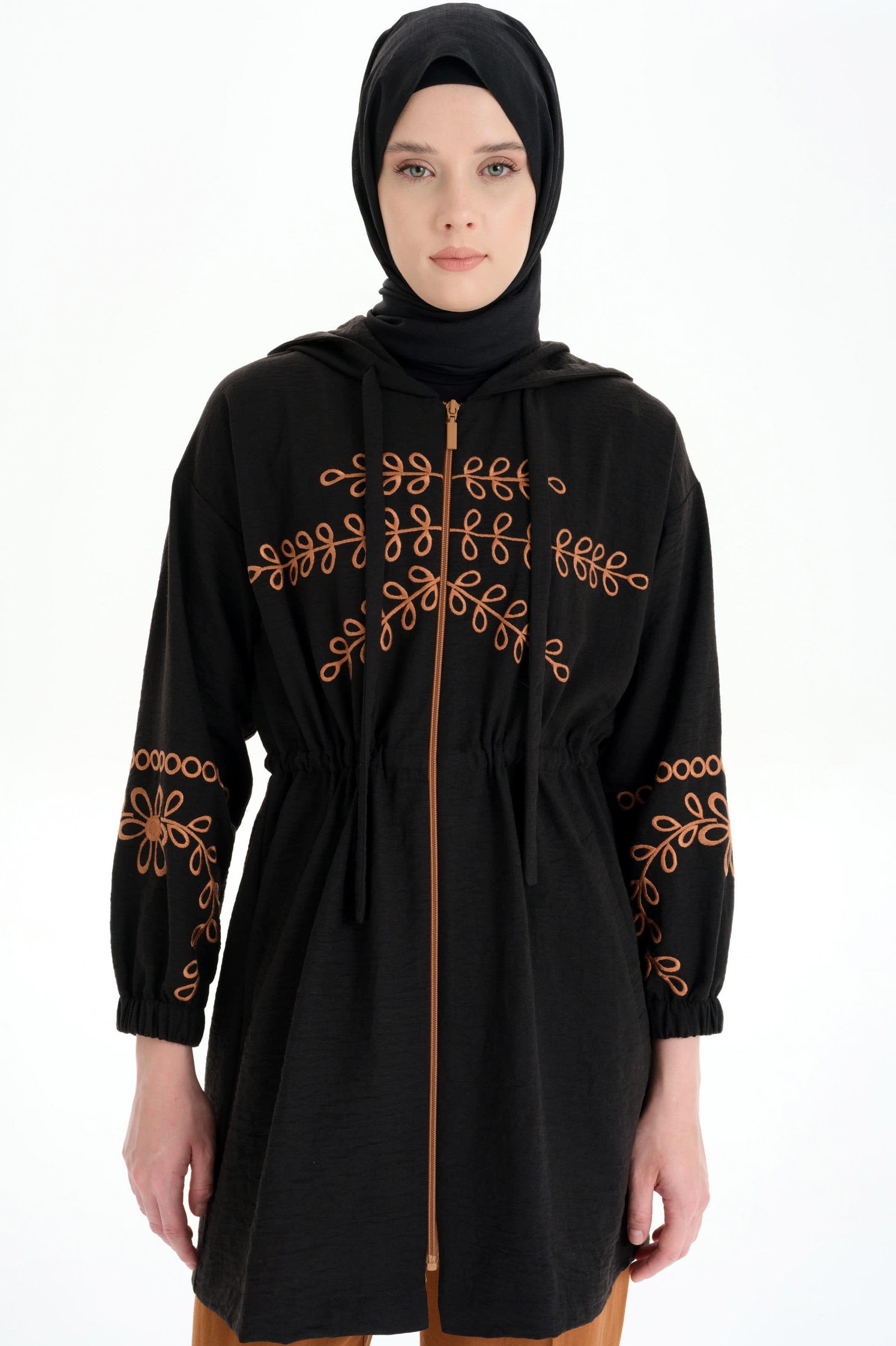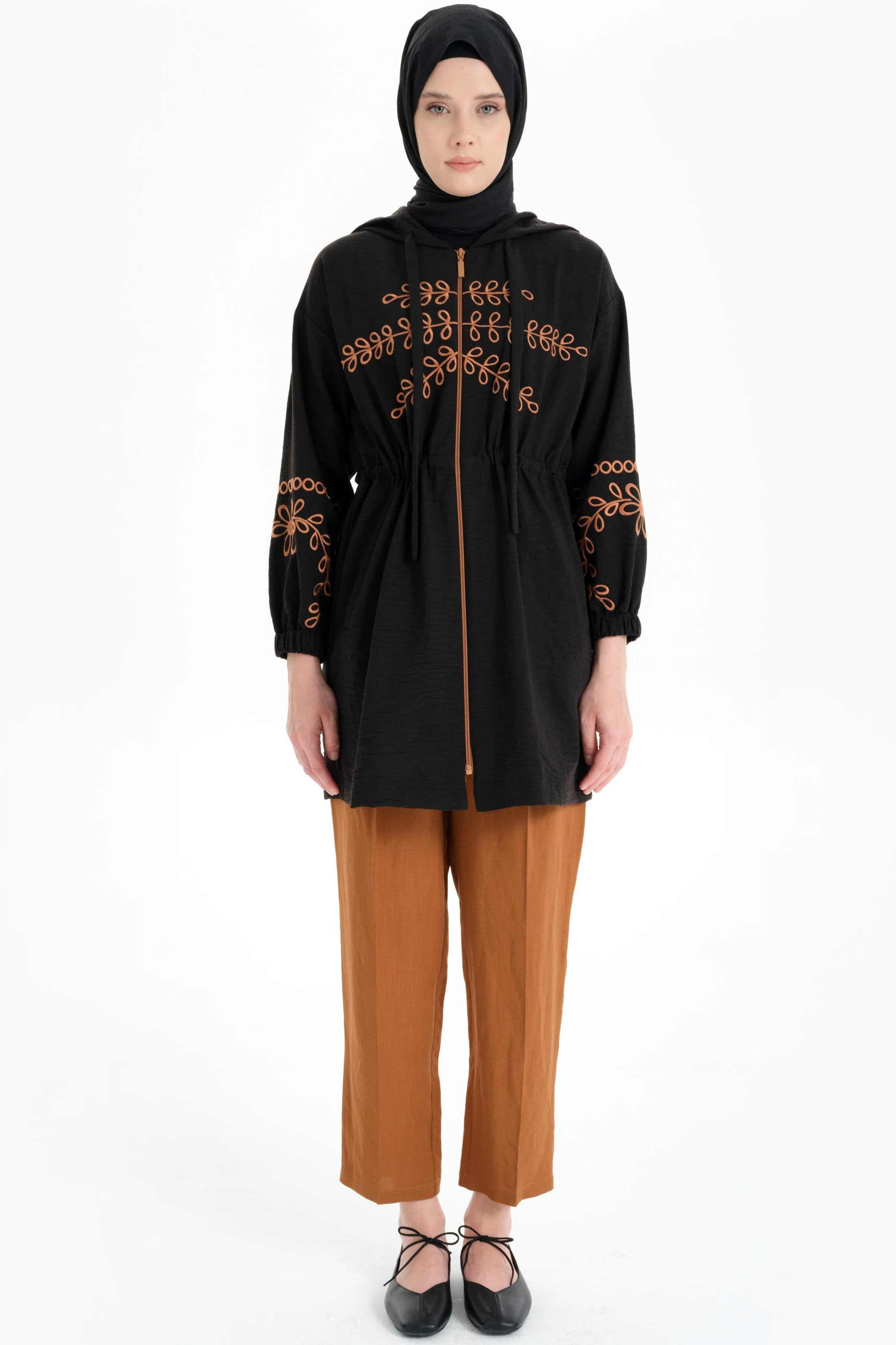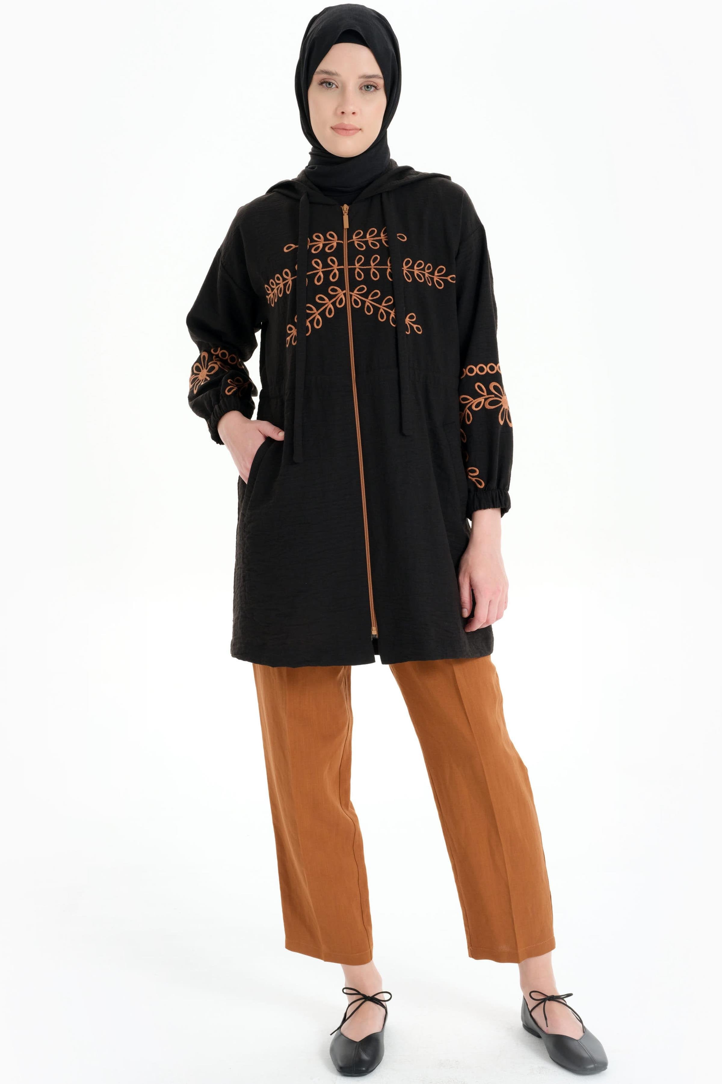 The slip-on dress with embroidered zipper closure brings together elegance and functionality with its elegant embroidery details and practical zipper closure. This dress, which is an ideal piece for seasonal transitions thanks to its thin and light fabric, fits both your daily combinations and special occasions. It will add an elegant touch to your style with its embroidered design.