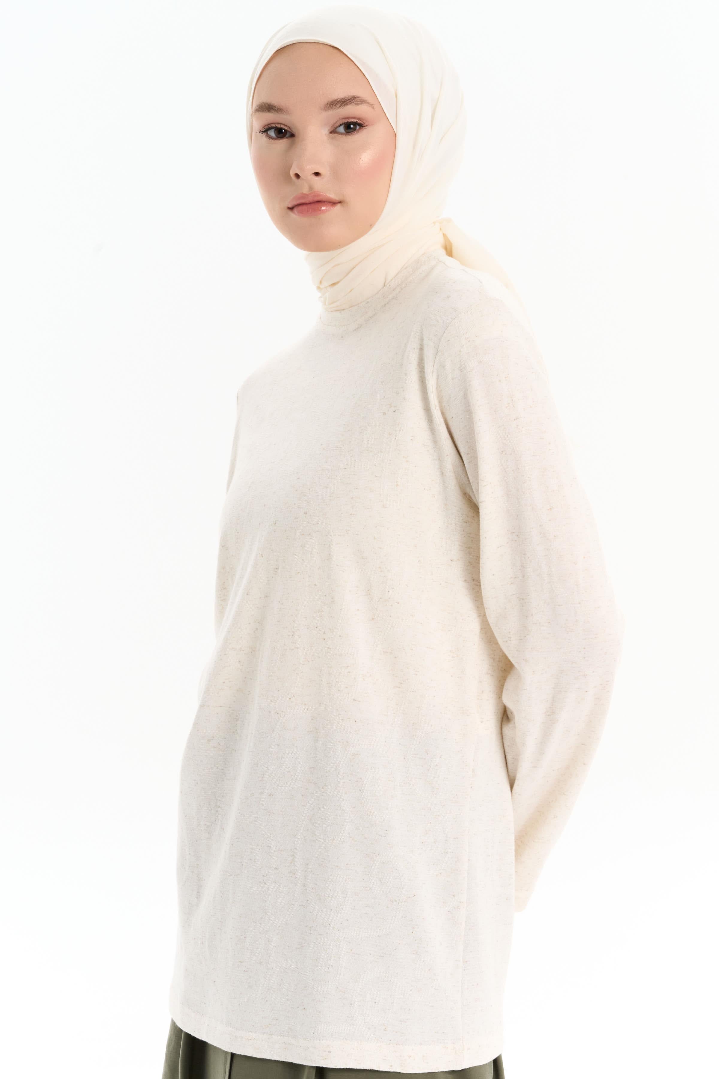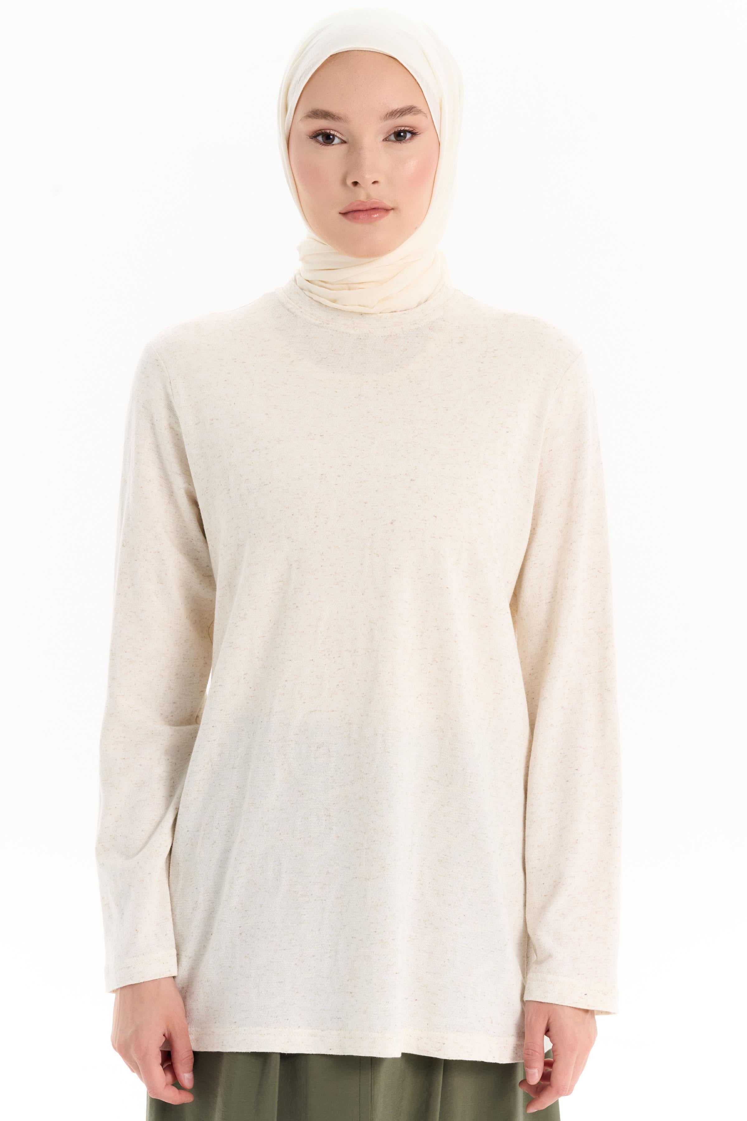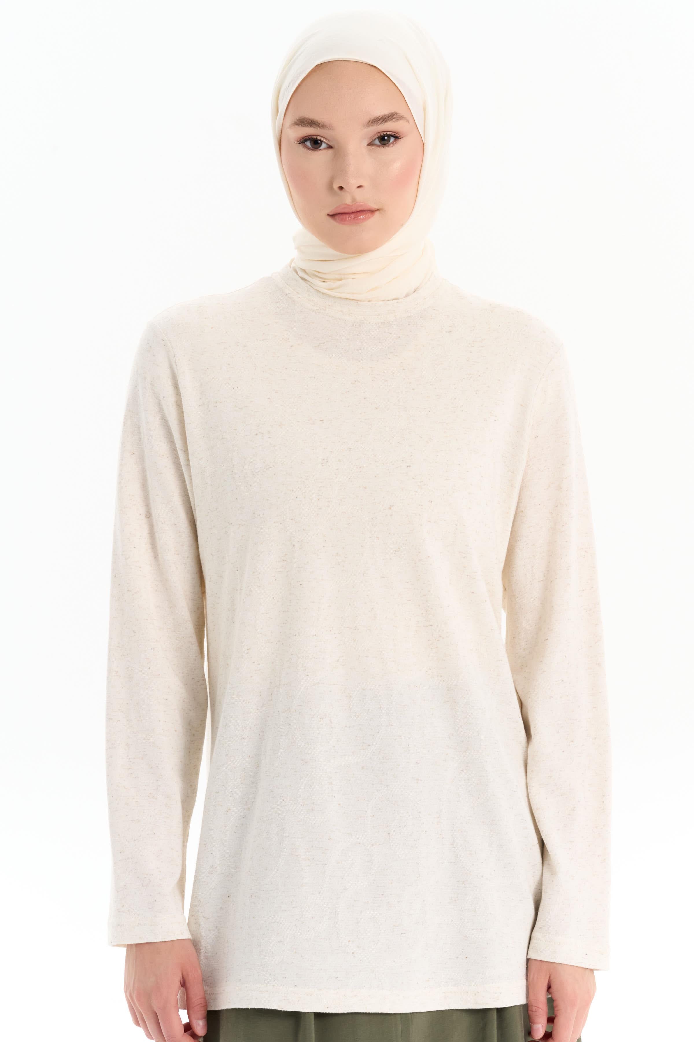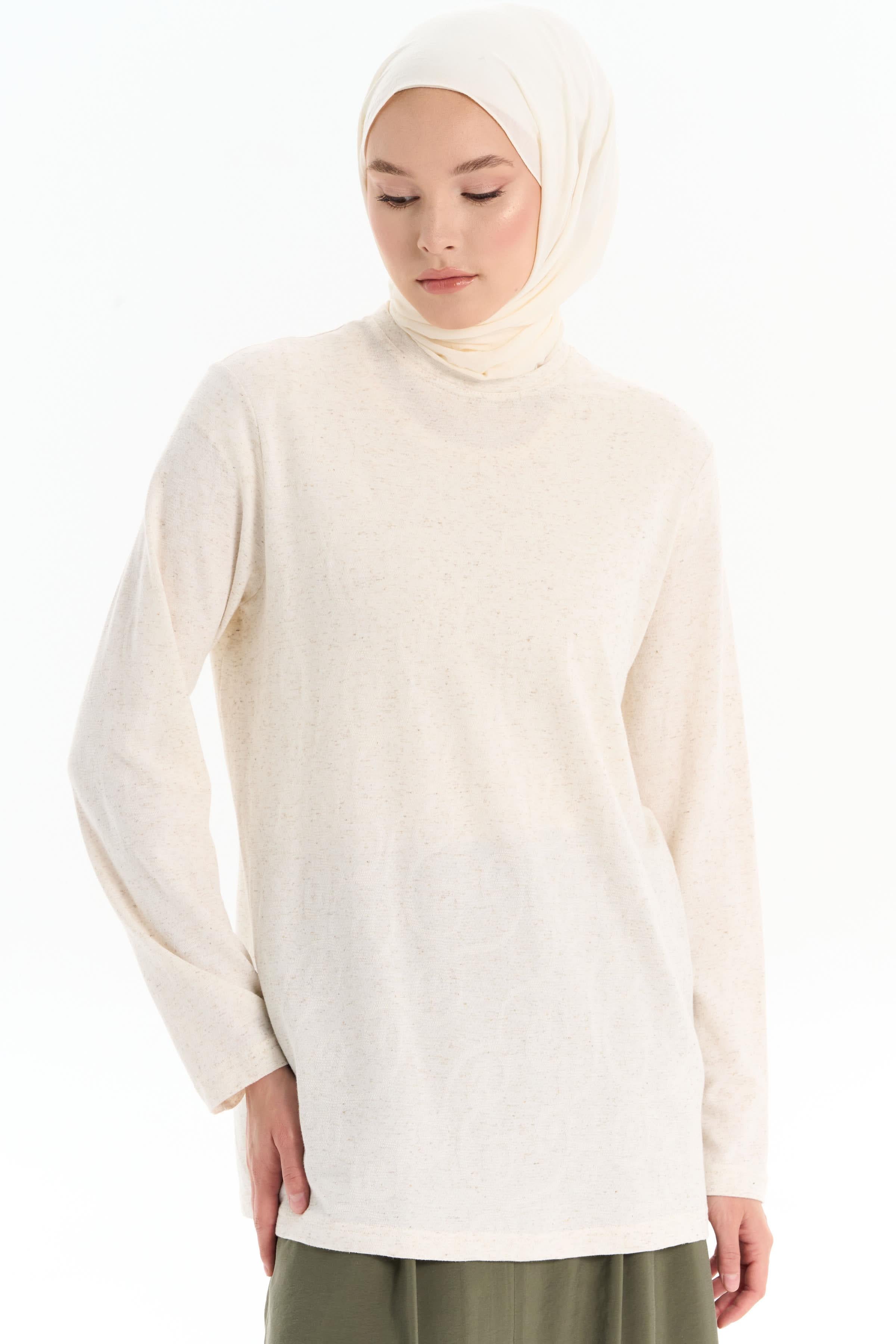 Crew Neck Knitted Blouse - Beige