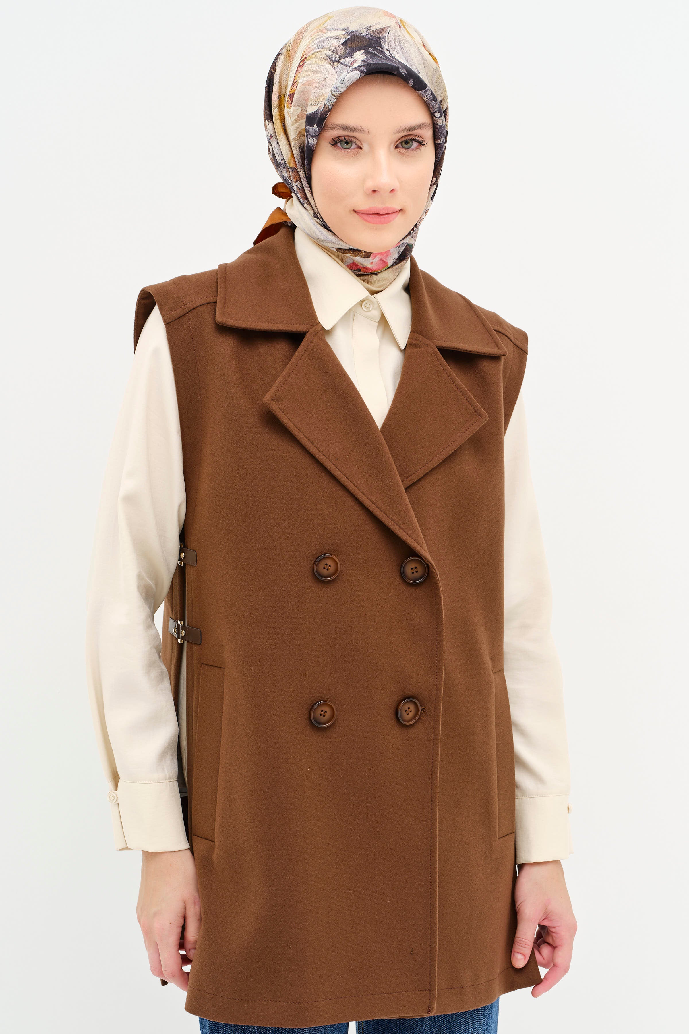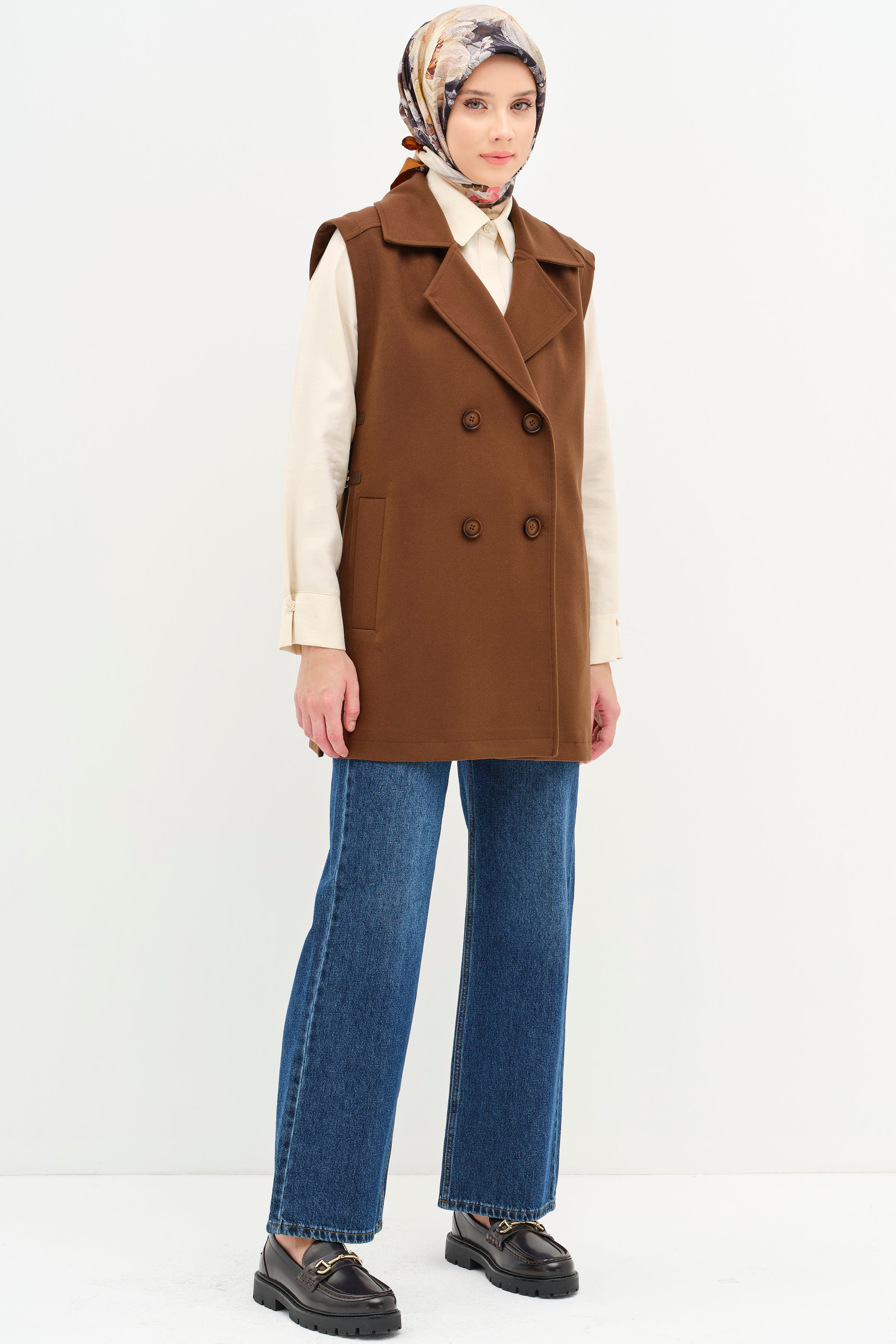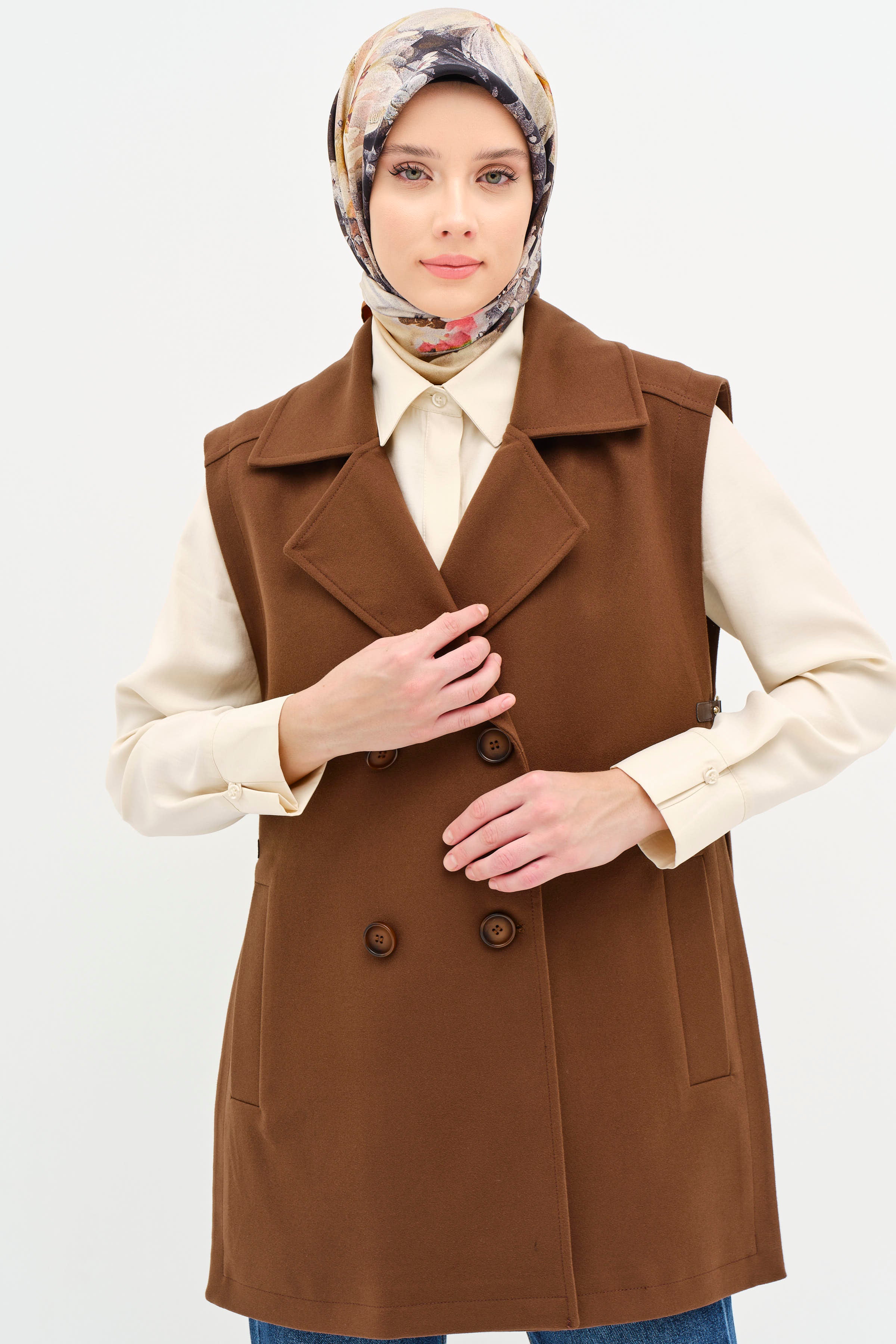 Featuring eye-catching lapel details and a double-breasted design, this vest offers a modern and sophisticated style. Its elegant cut creates a fitted silhouette, while the details add dynamism to your outfit.