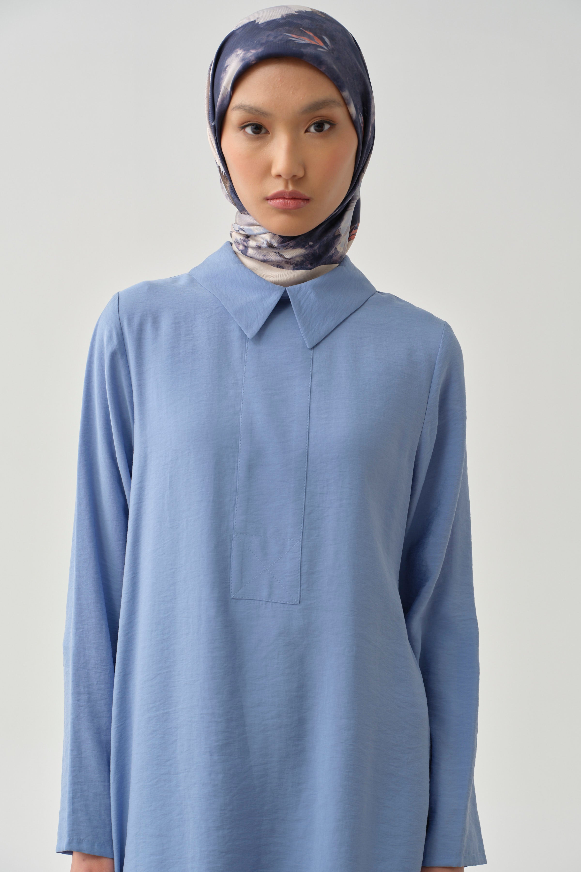 Half Placket Detailed Tunic - Blue