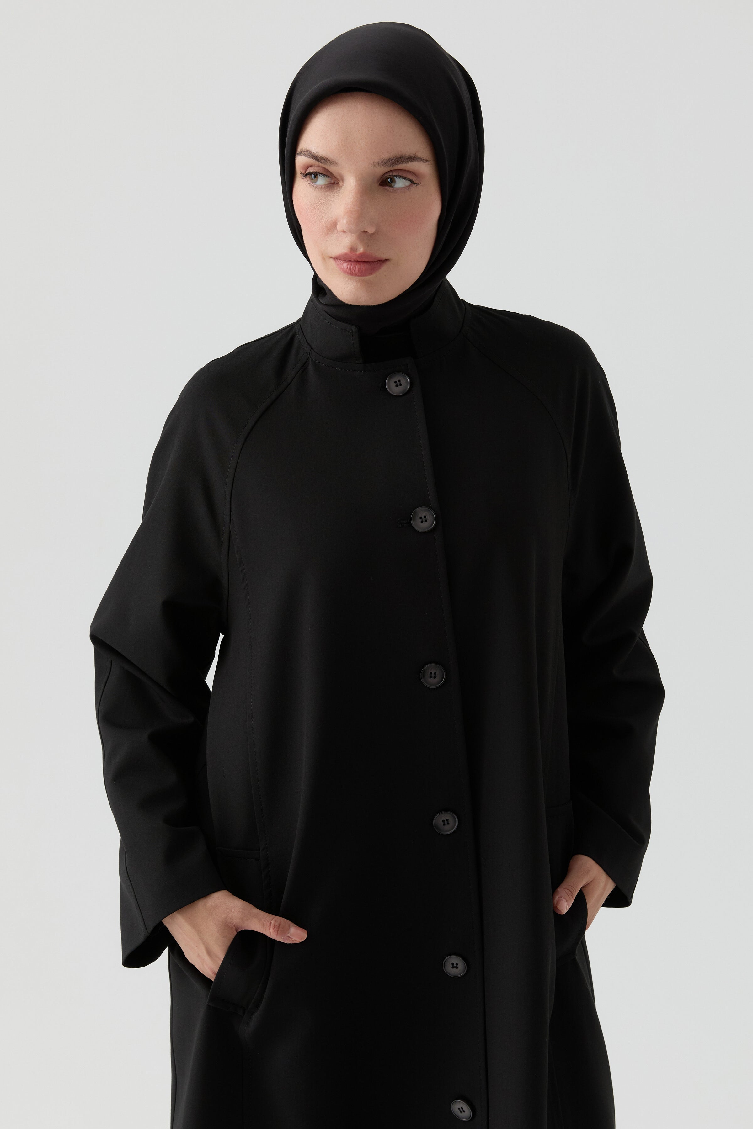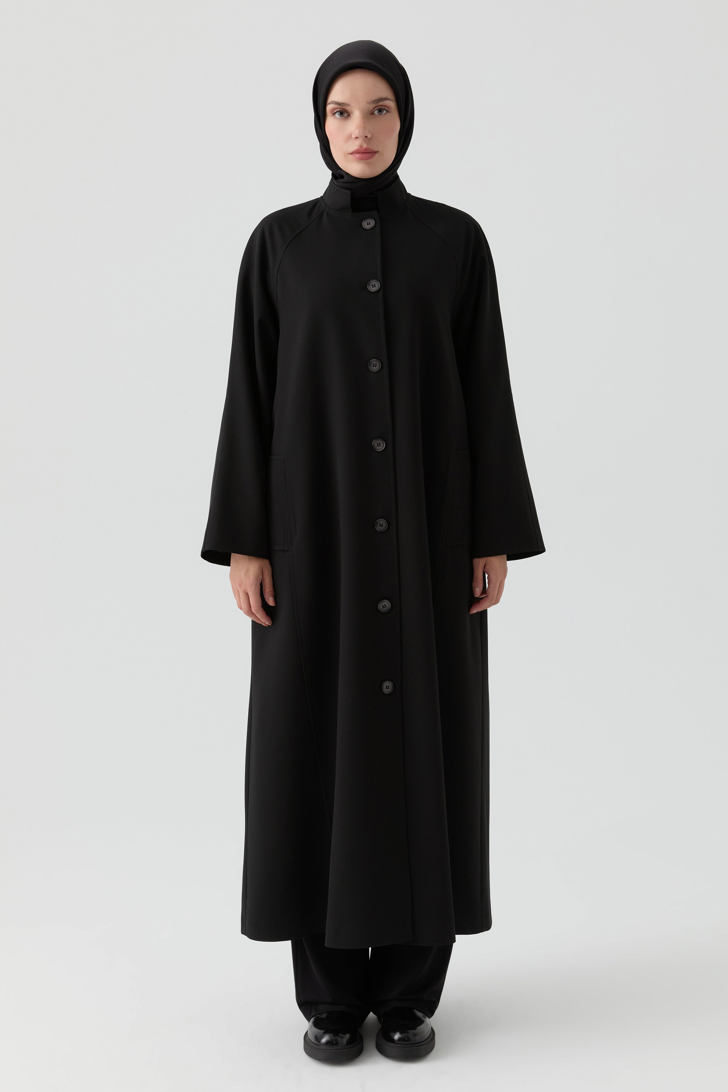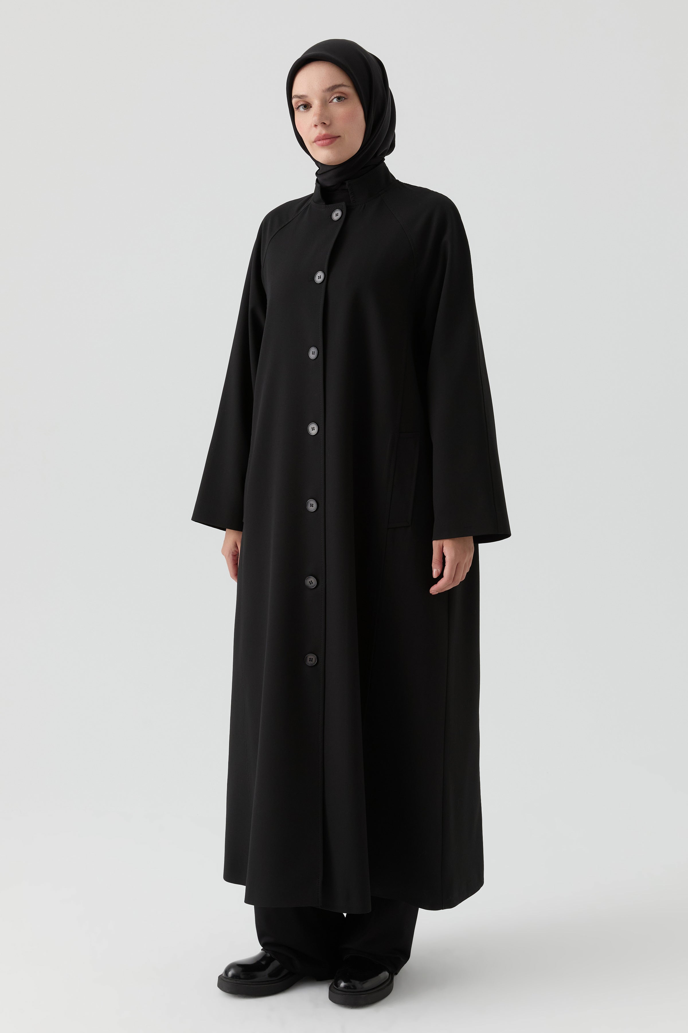 Grandad Collar Coat - Black