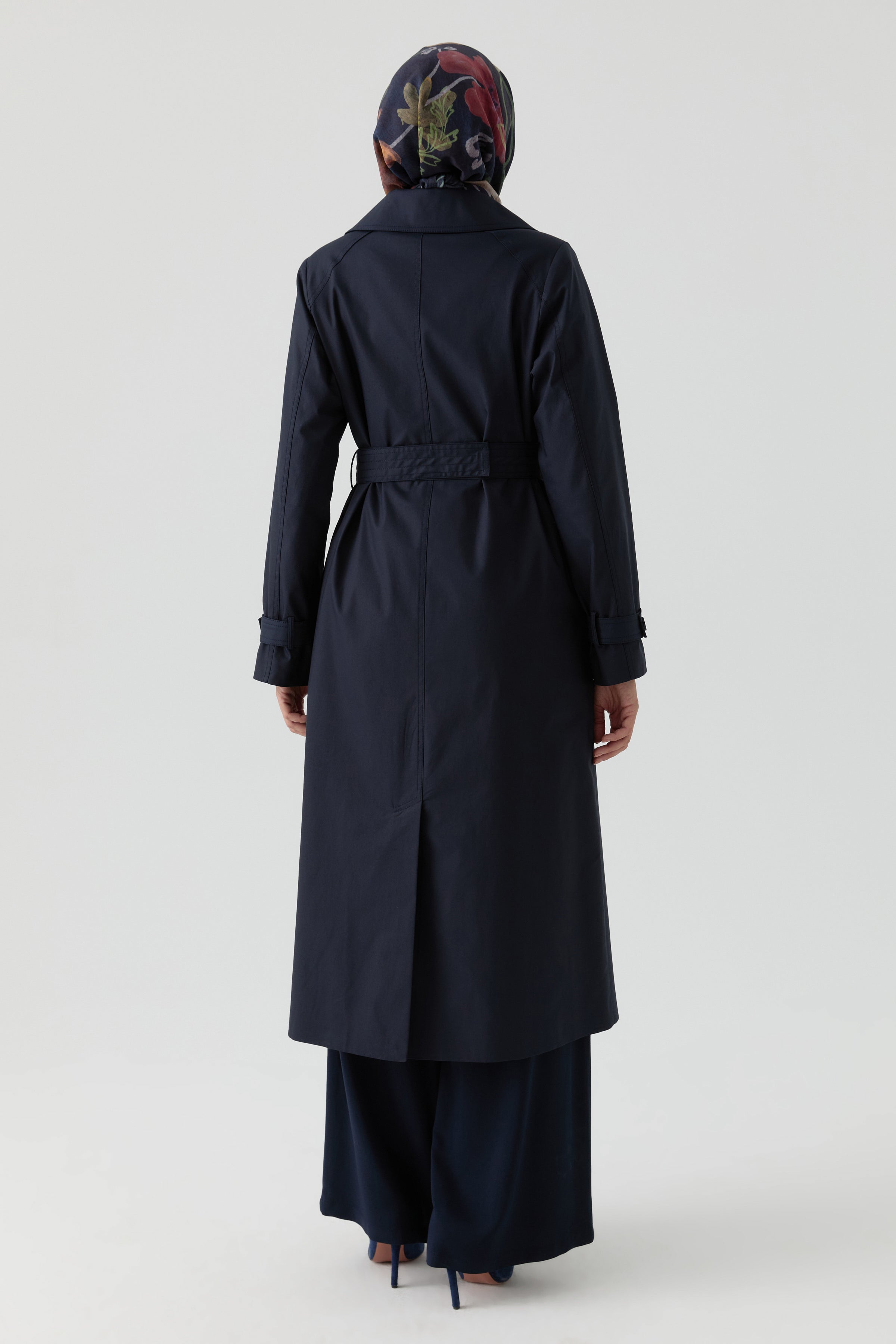 Offering a sophisticated elegance with its classic double-breasted collar, this trench coat provides a functional and modern look with the windbreaker detail on the front and back.