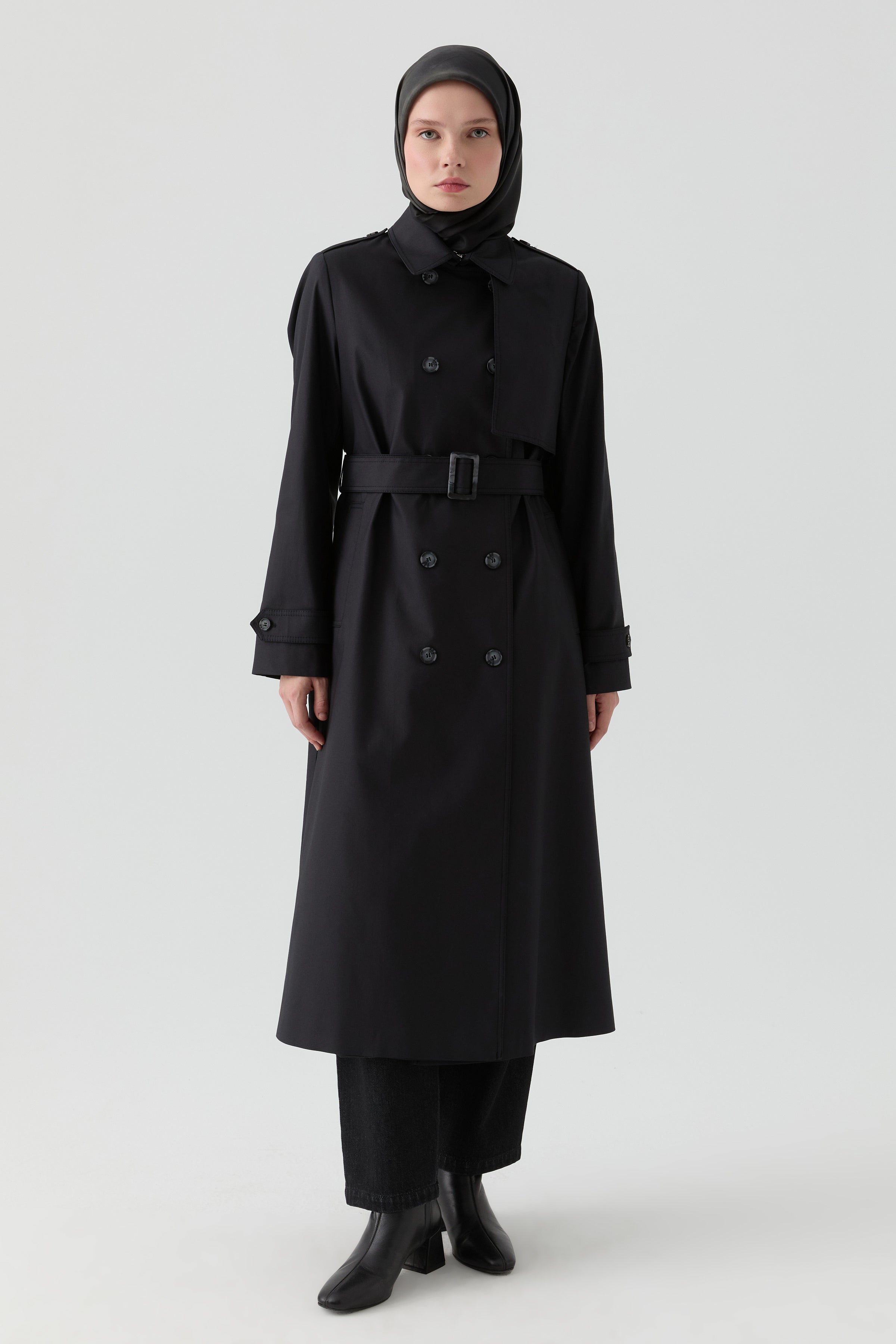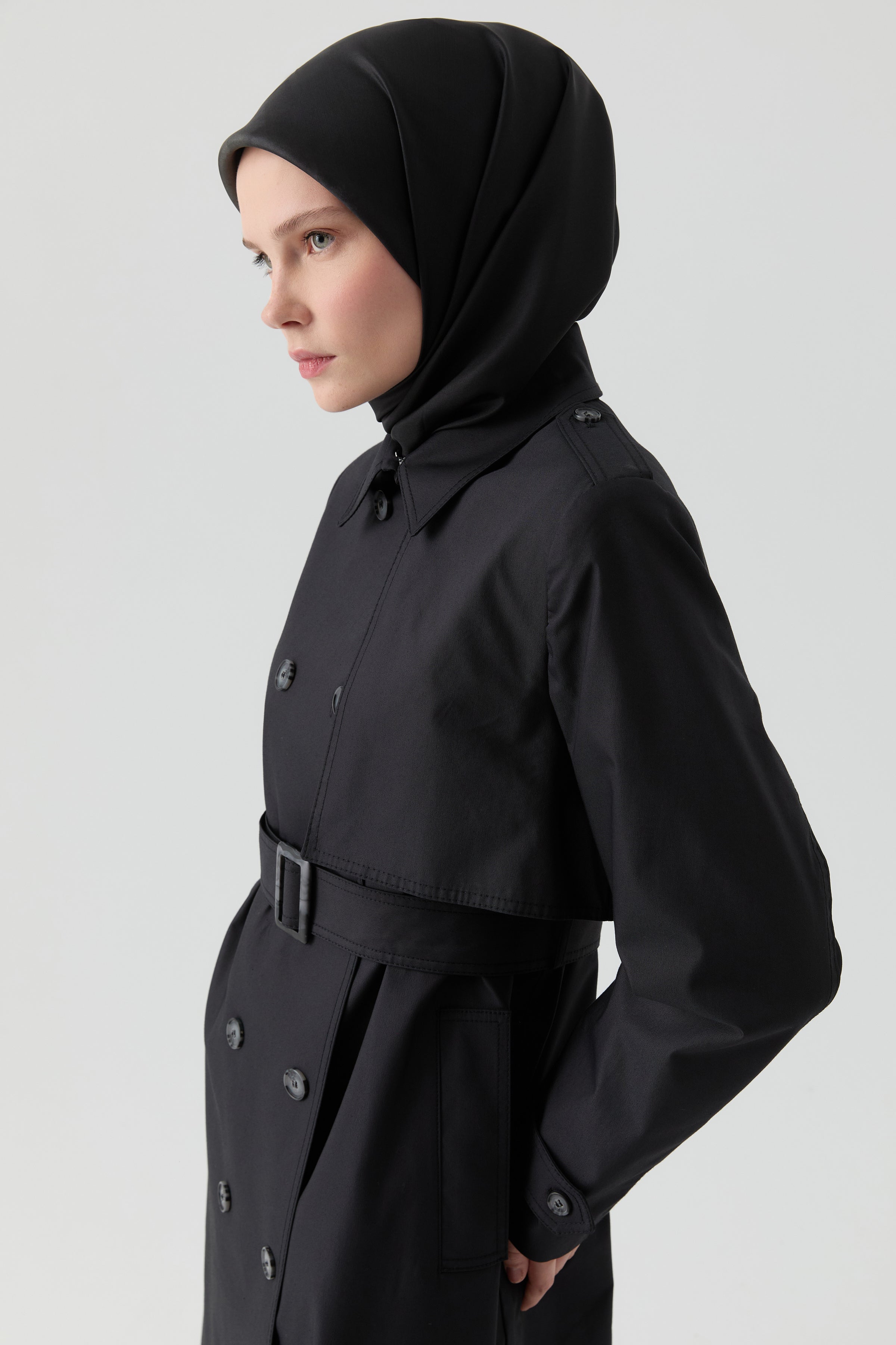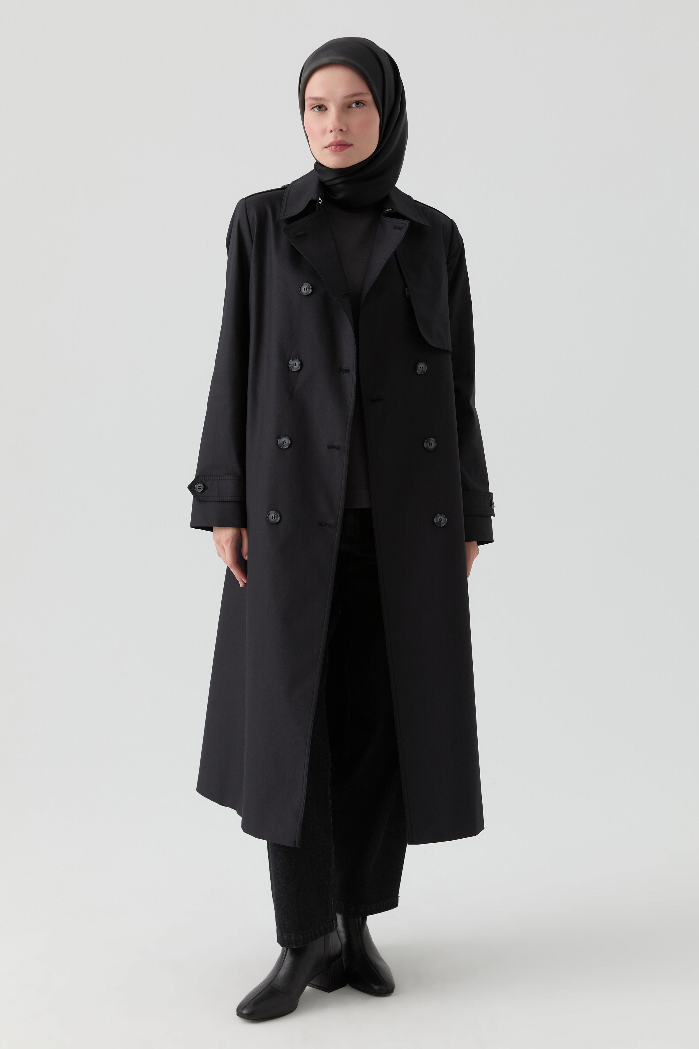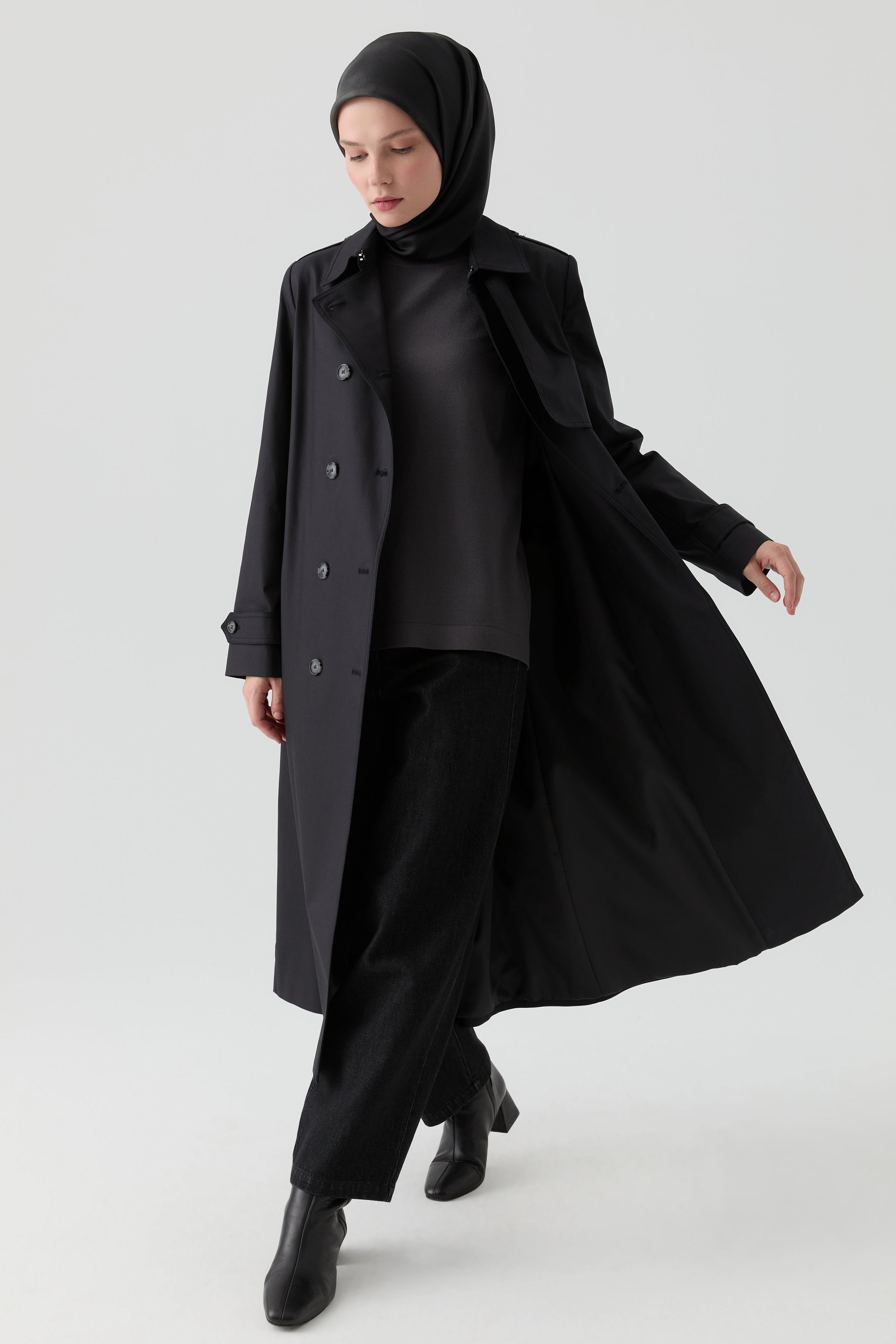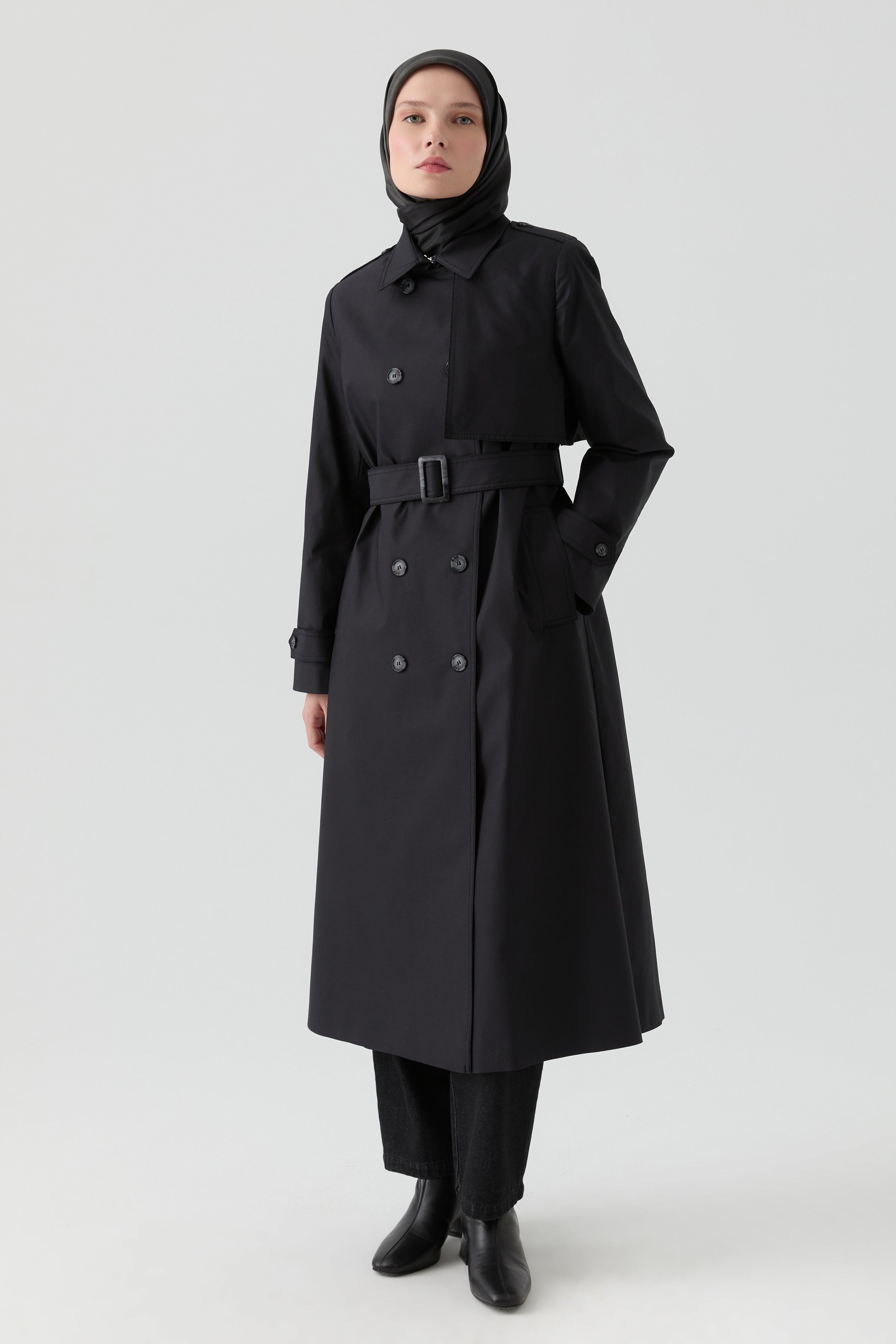 Trench Coat with Windbreaker Detail - Black