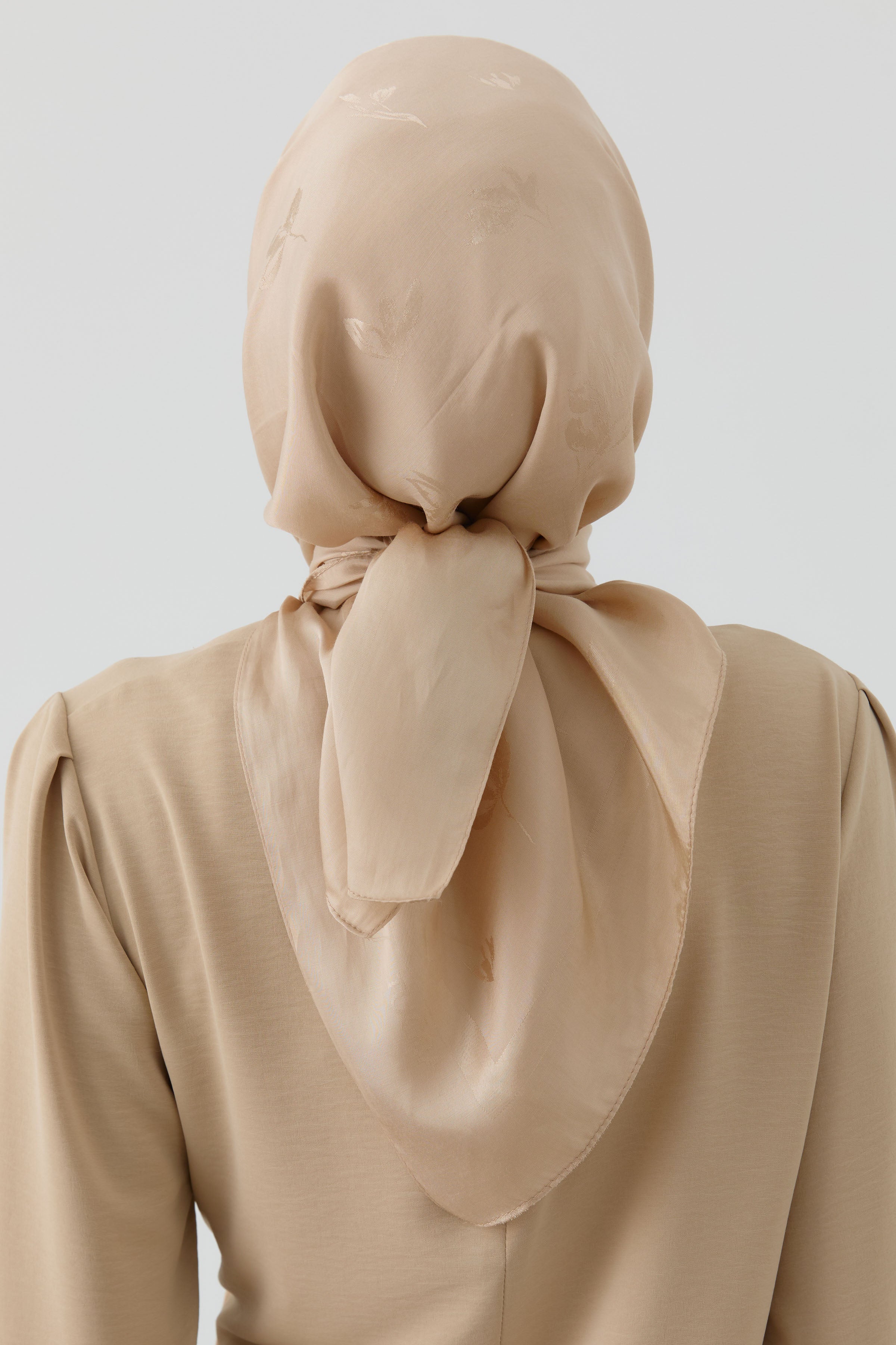Nevgül natural scarf, which stands out with its finely crafted edge details, adds an elegant touch to its simple design. It offers comfort and elegance all day long with its natural texture.