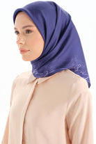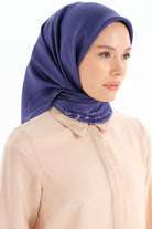 Twill Silk Scarf with Edge Detail - Navy Blue