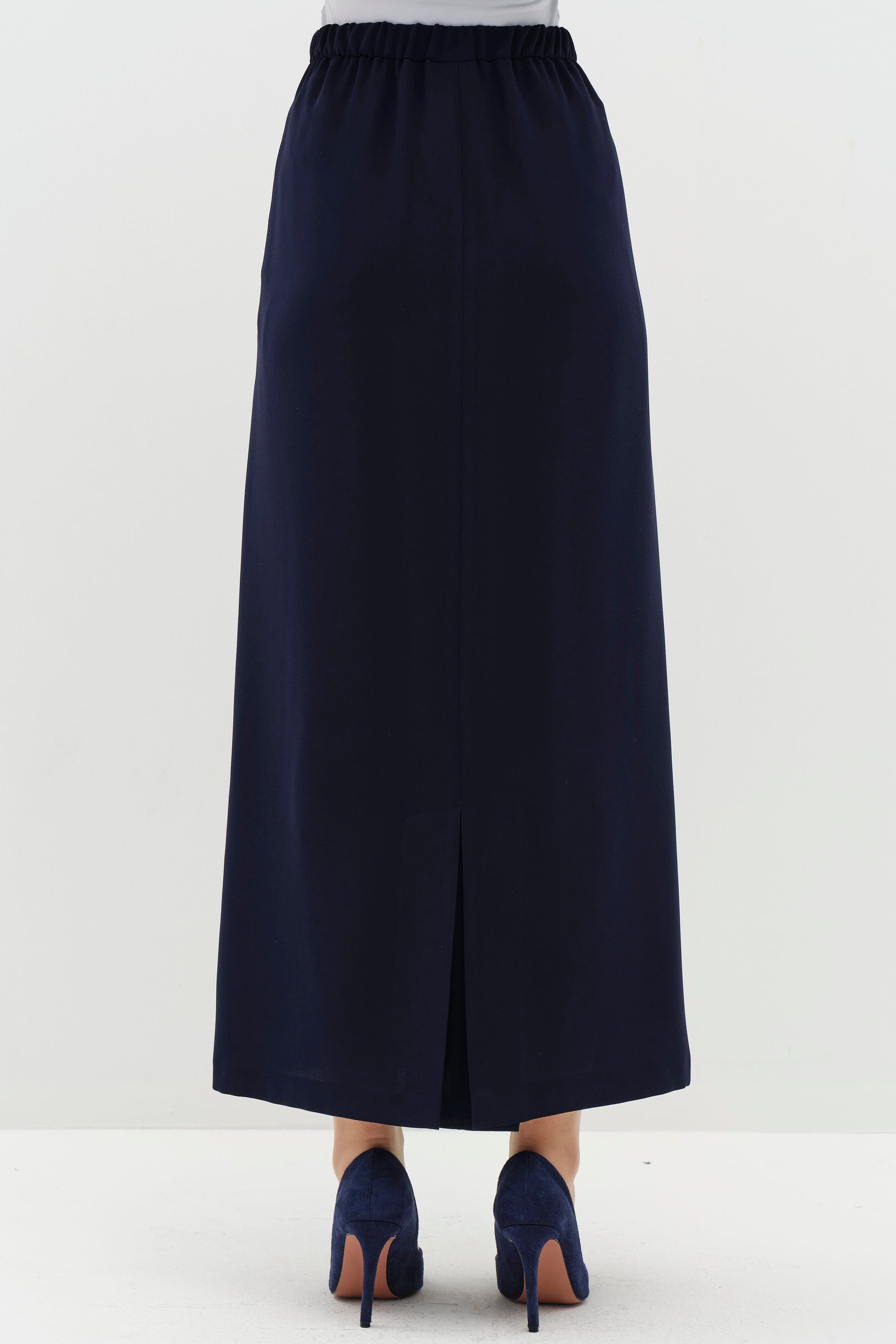 Pleated Pencil Skirt with Elastic Waist Detail - Navy Blue