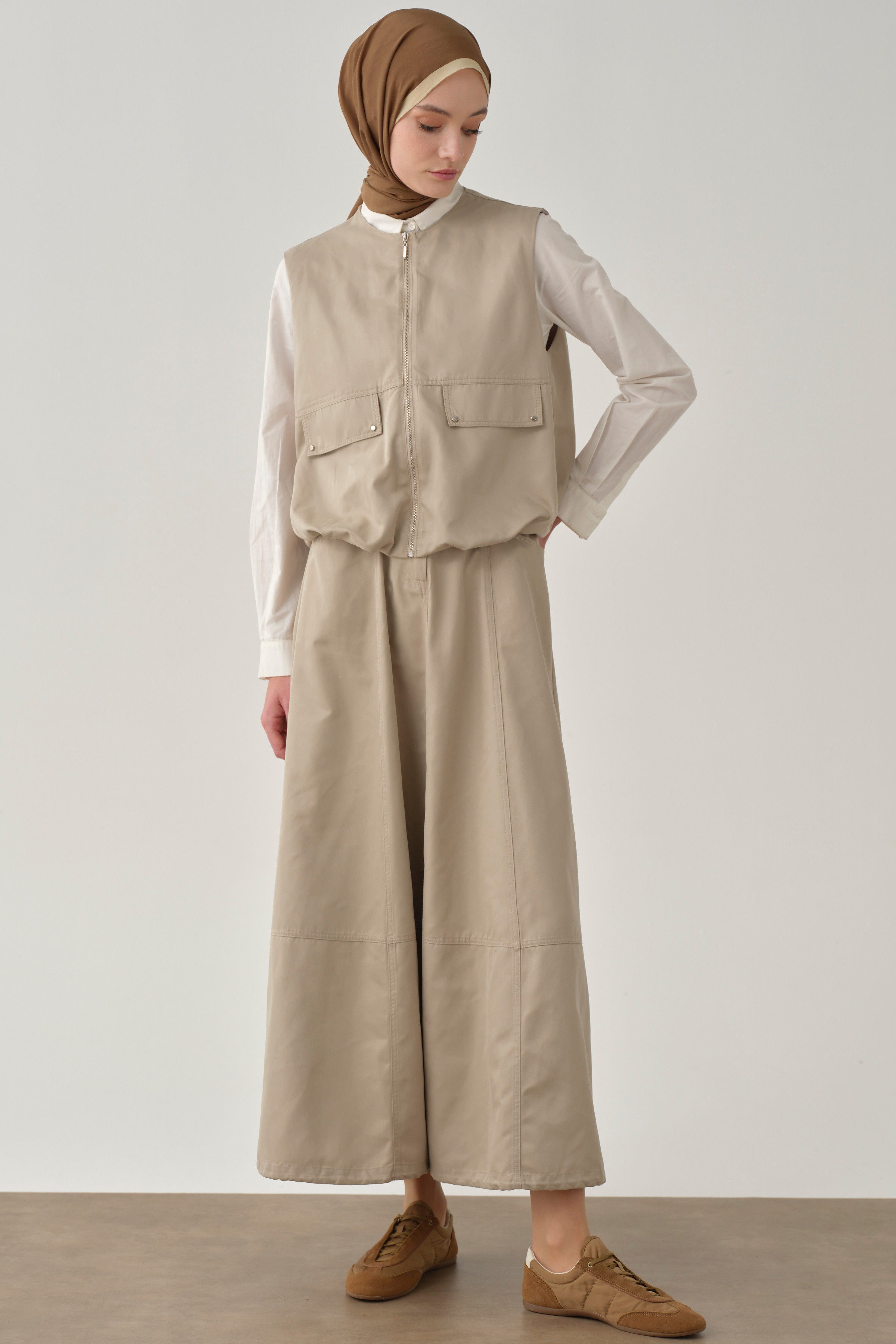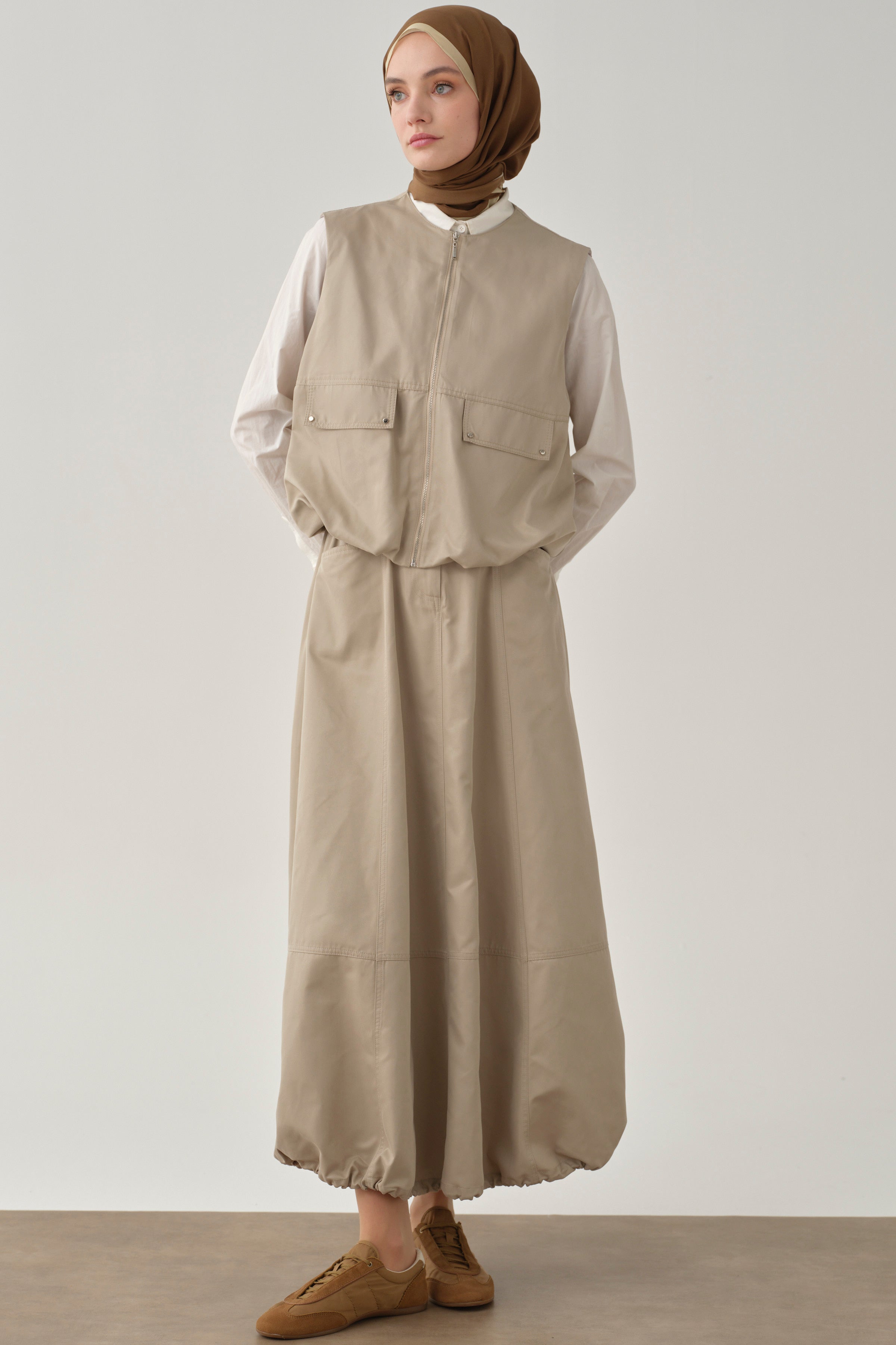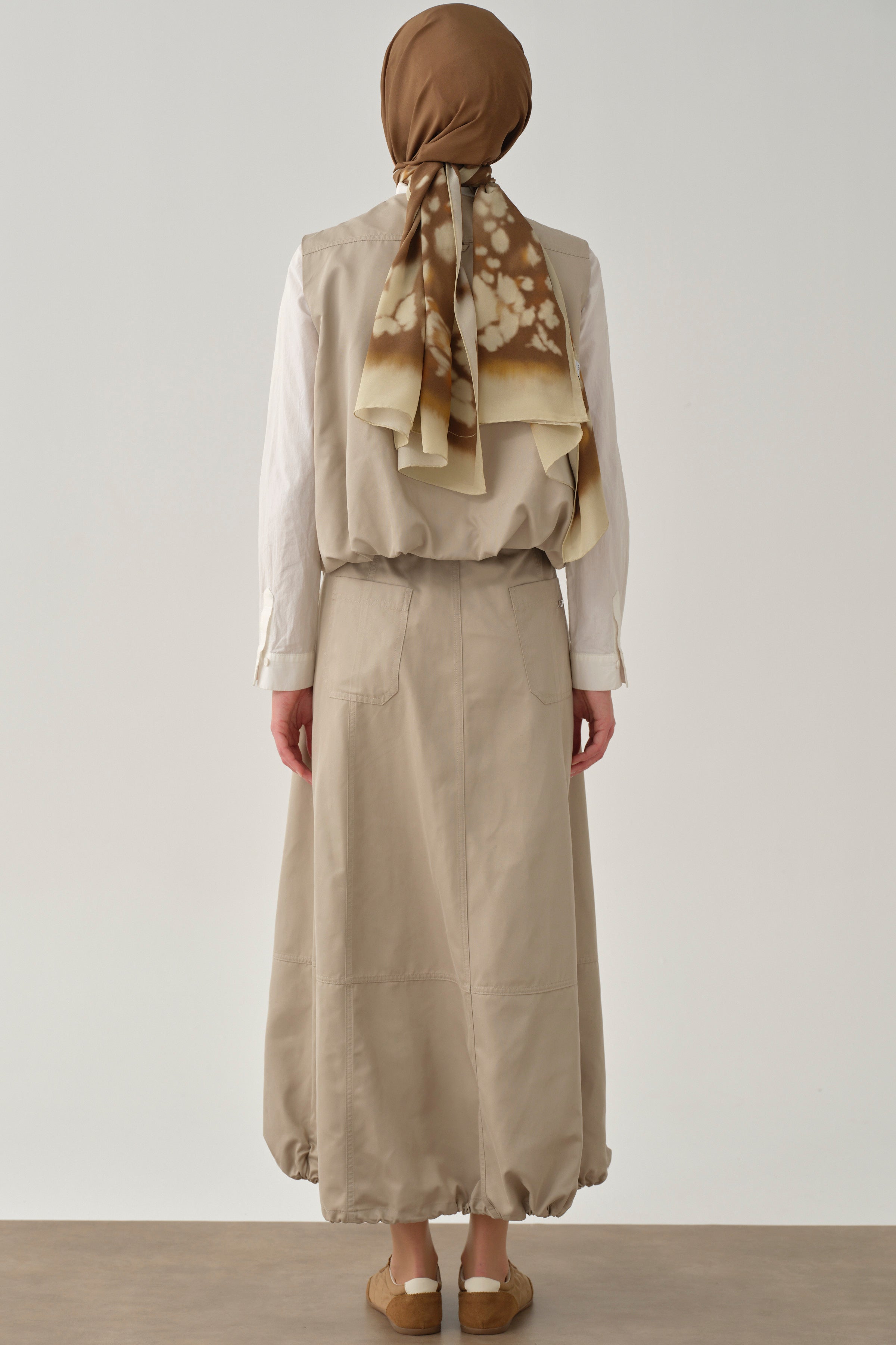 This pocketed, segmented balloon skirt stands out with its modern and stylish design, adding a unique touch to your style with its voluminous silhouette. The segmented cut offers a dynamic look, while the functional pockets provide practical use.