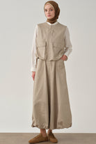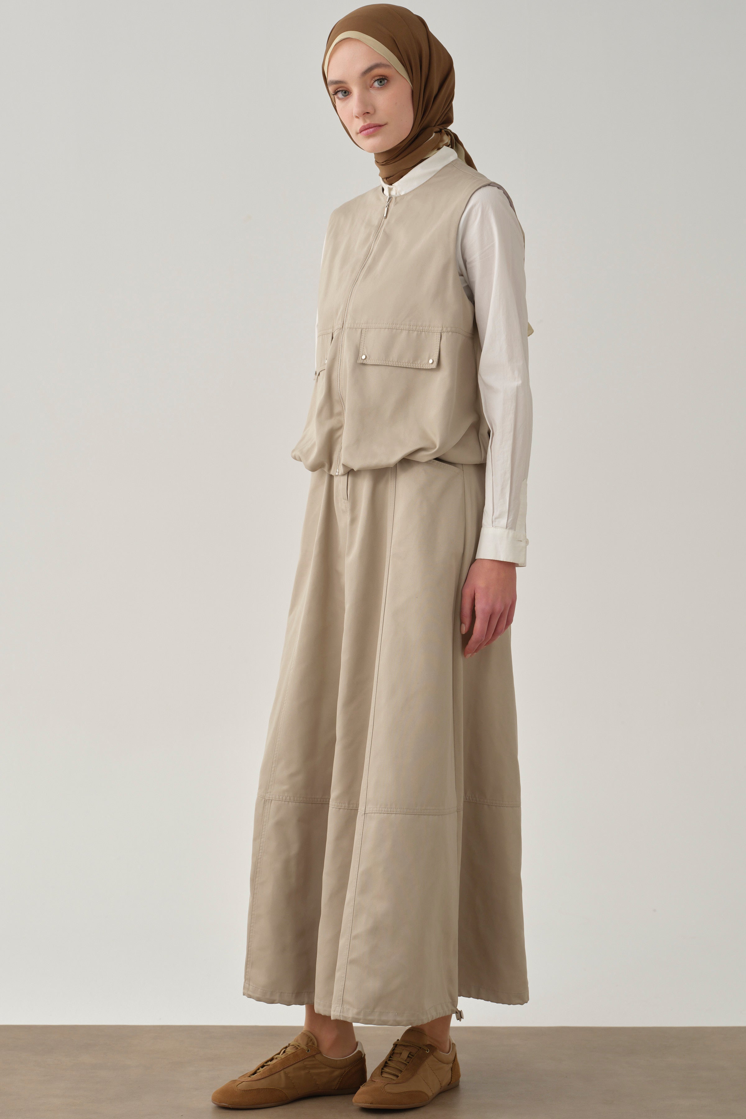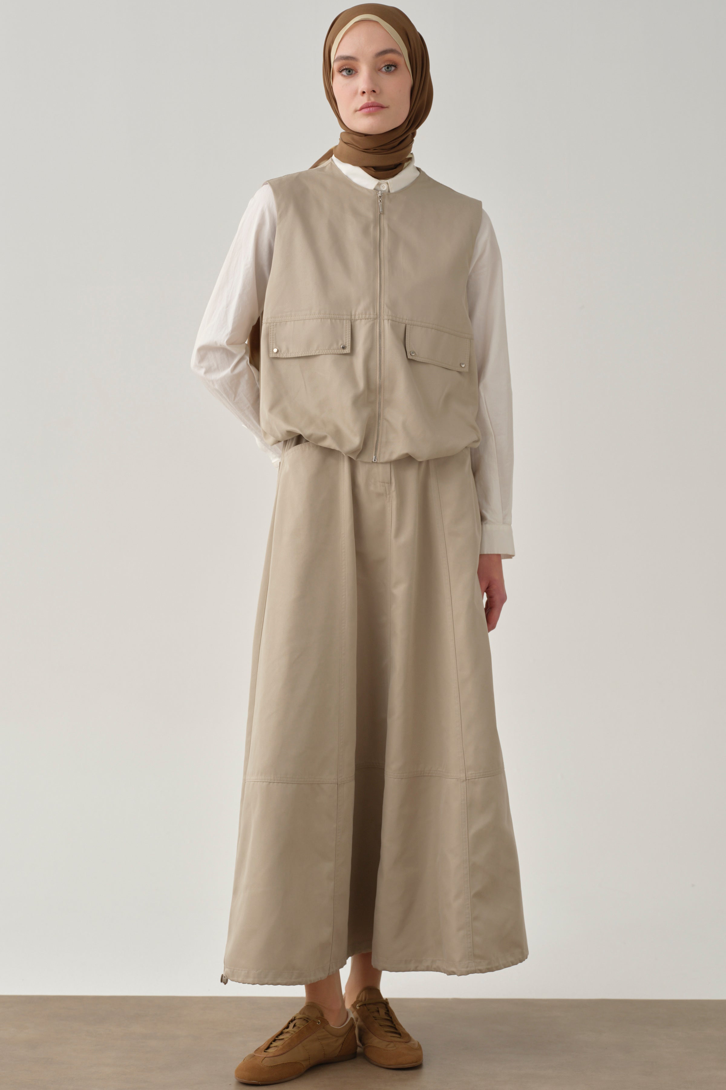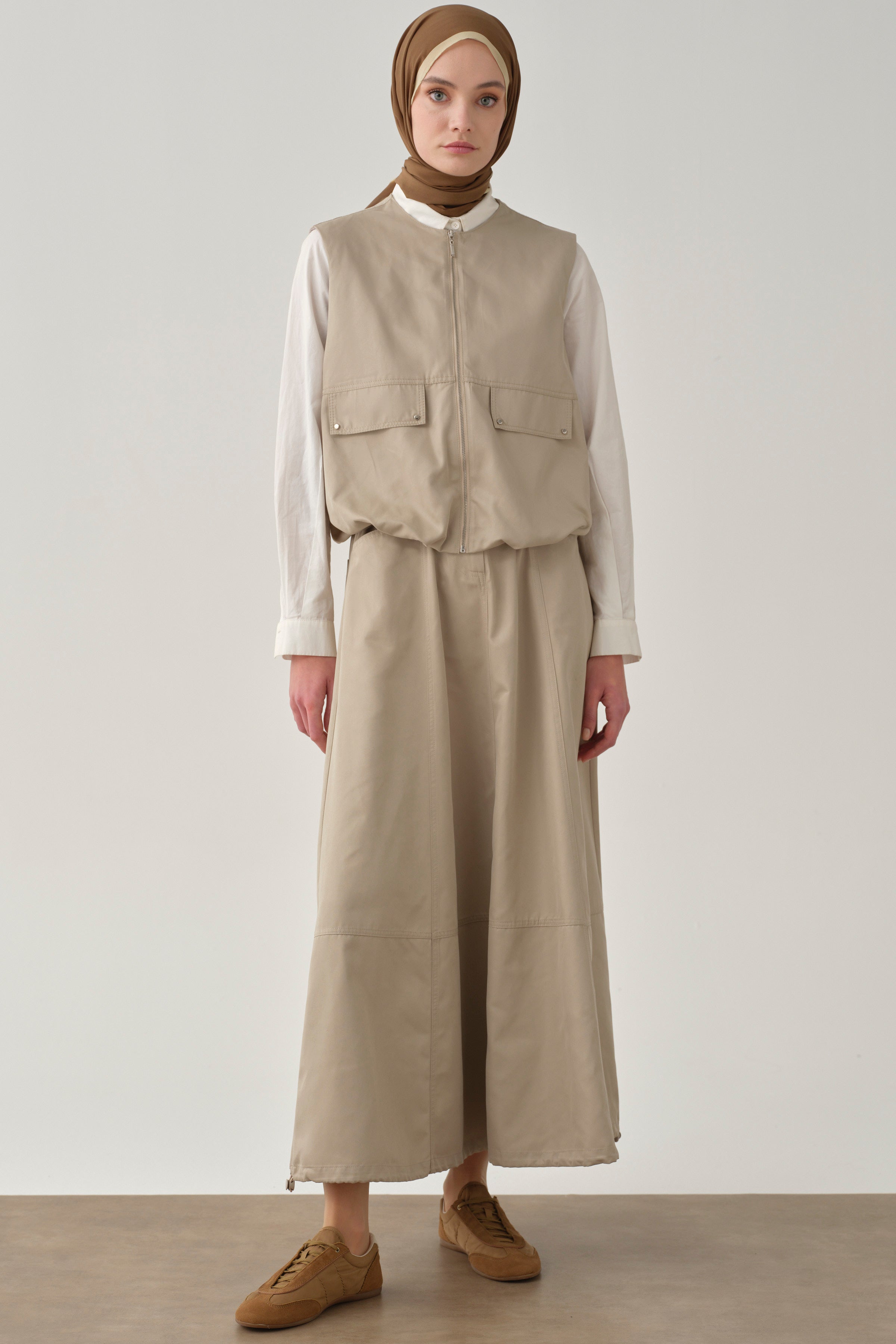 This pocketed, segmented balloon skirt stands out with its modern and stylish design, adding a unique touch to your style with its voluminous silhouette. The segmented cut offers a dynamic look, while the functional pockets provide practical use.