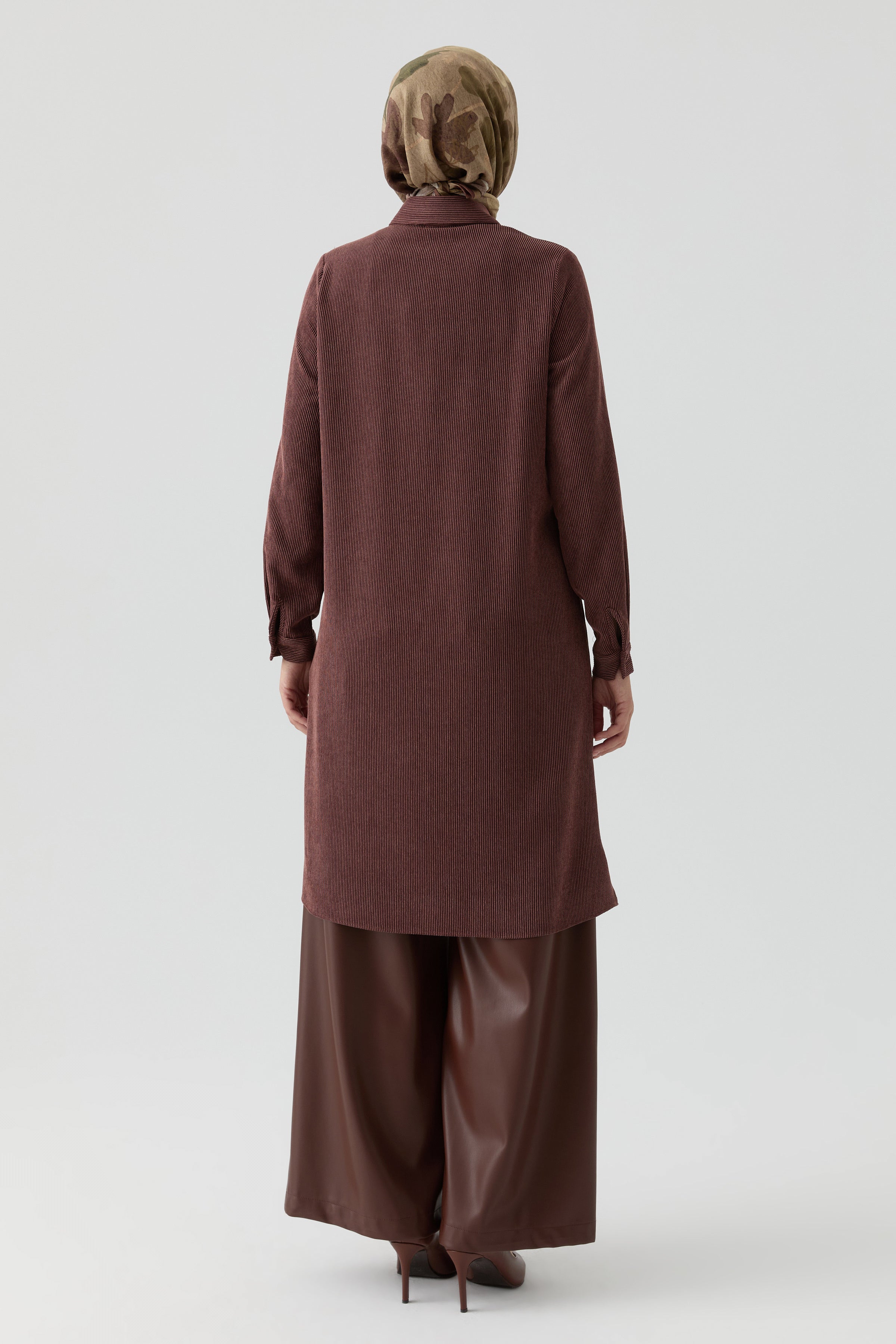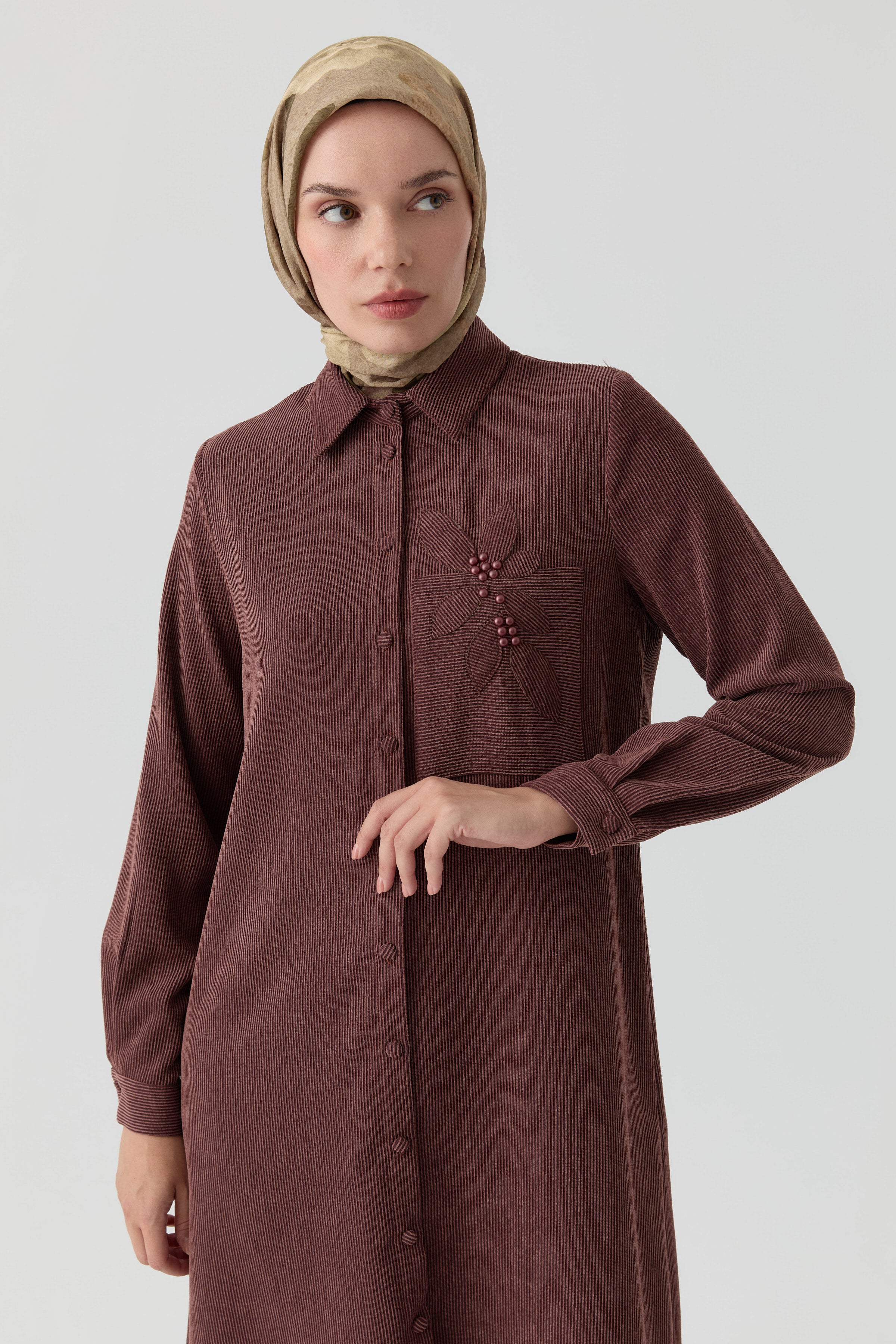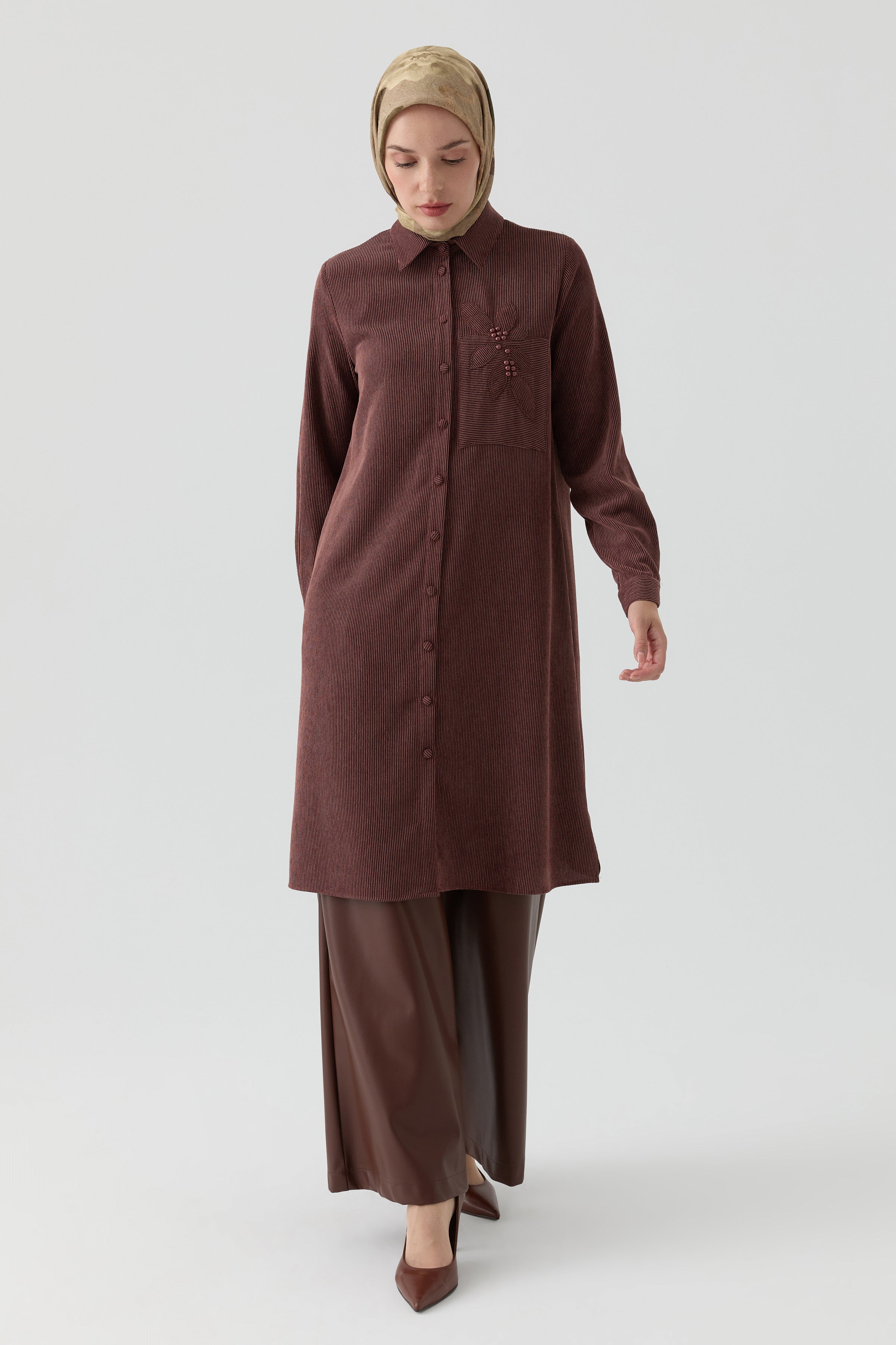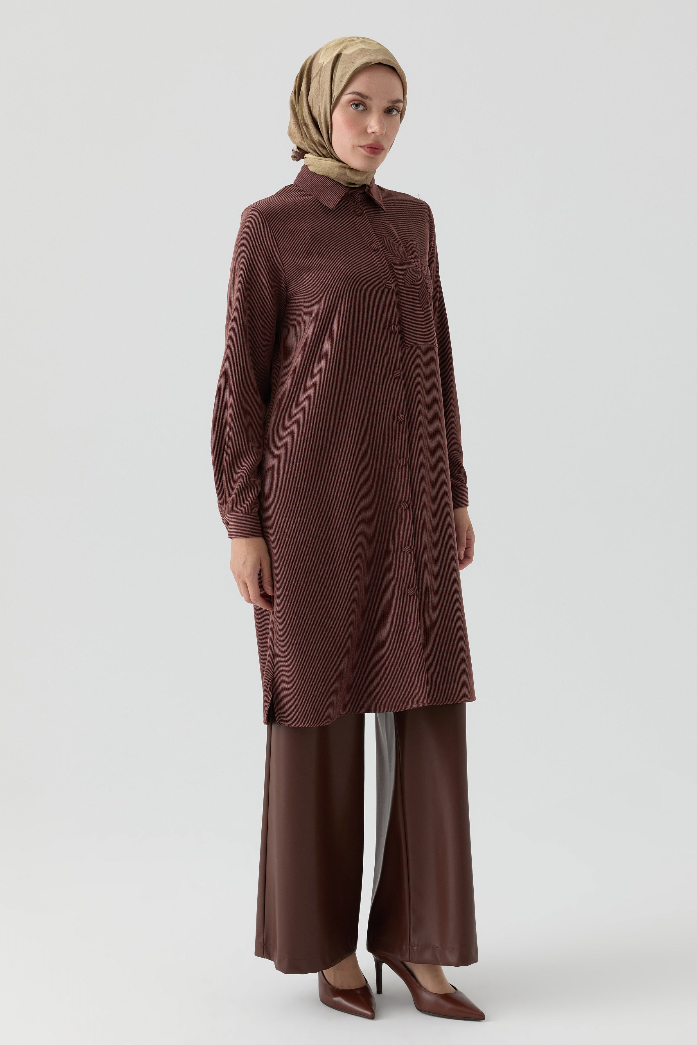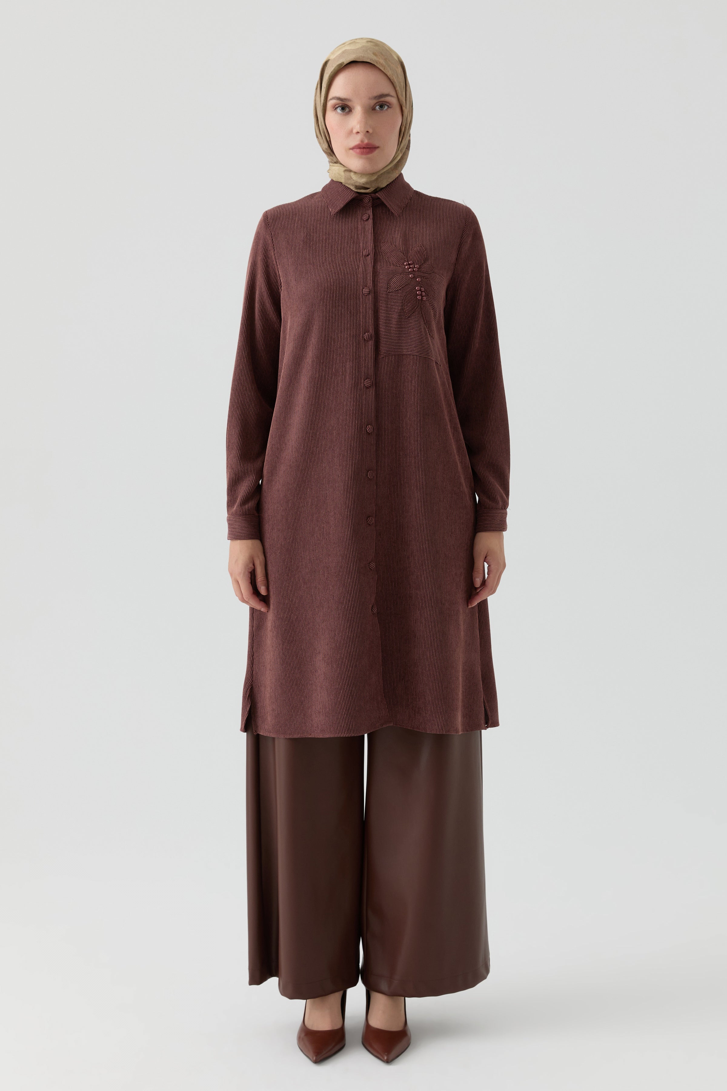 Tunic with Applique Laser Embroidery Detail - Brown