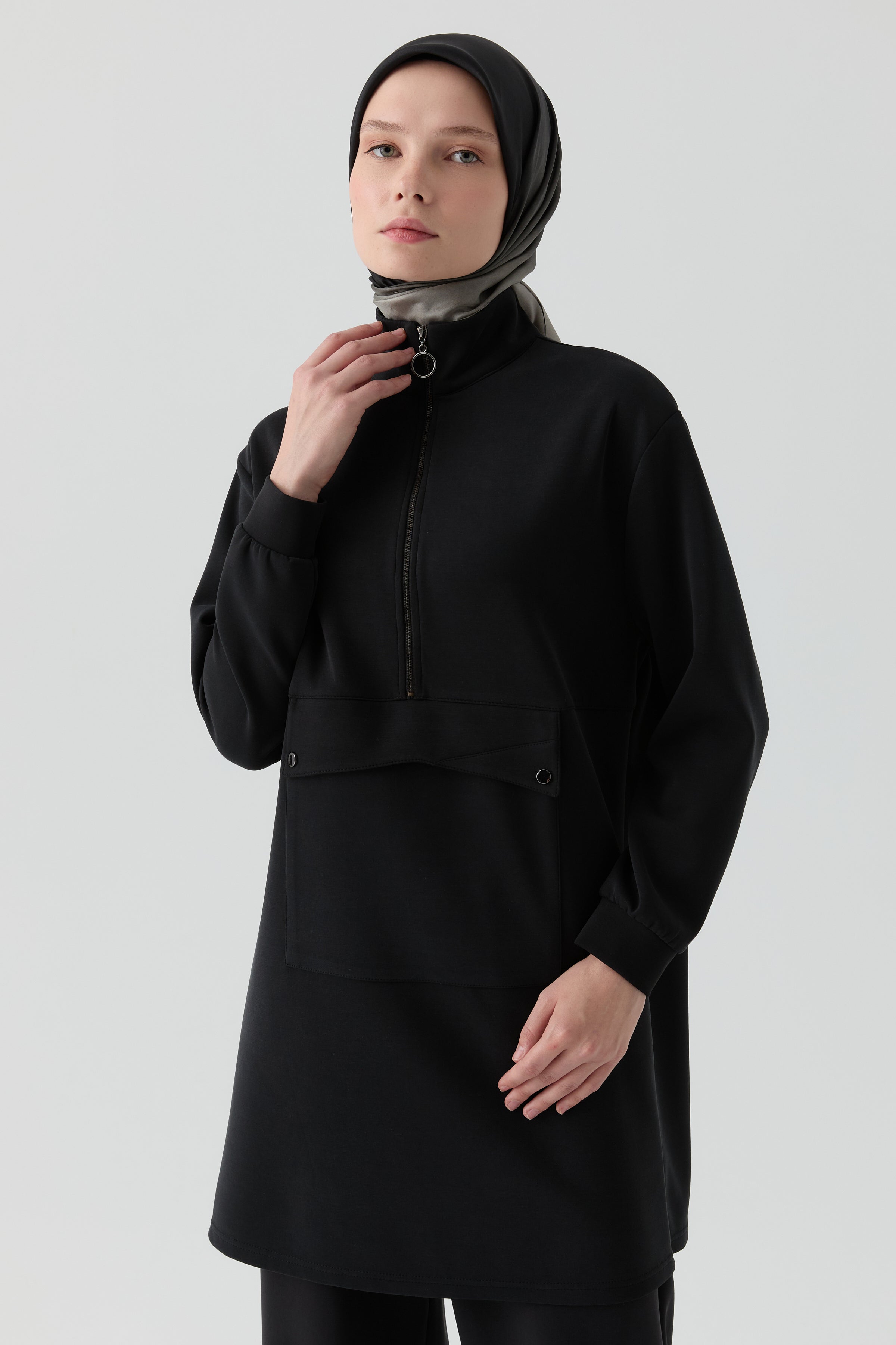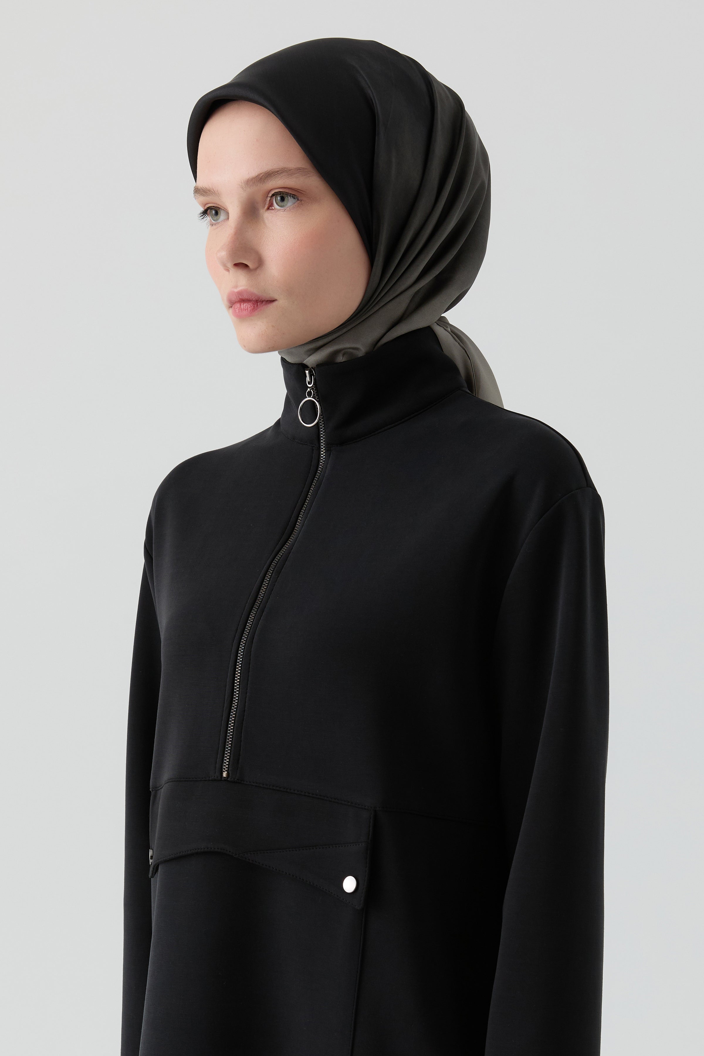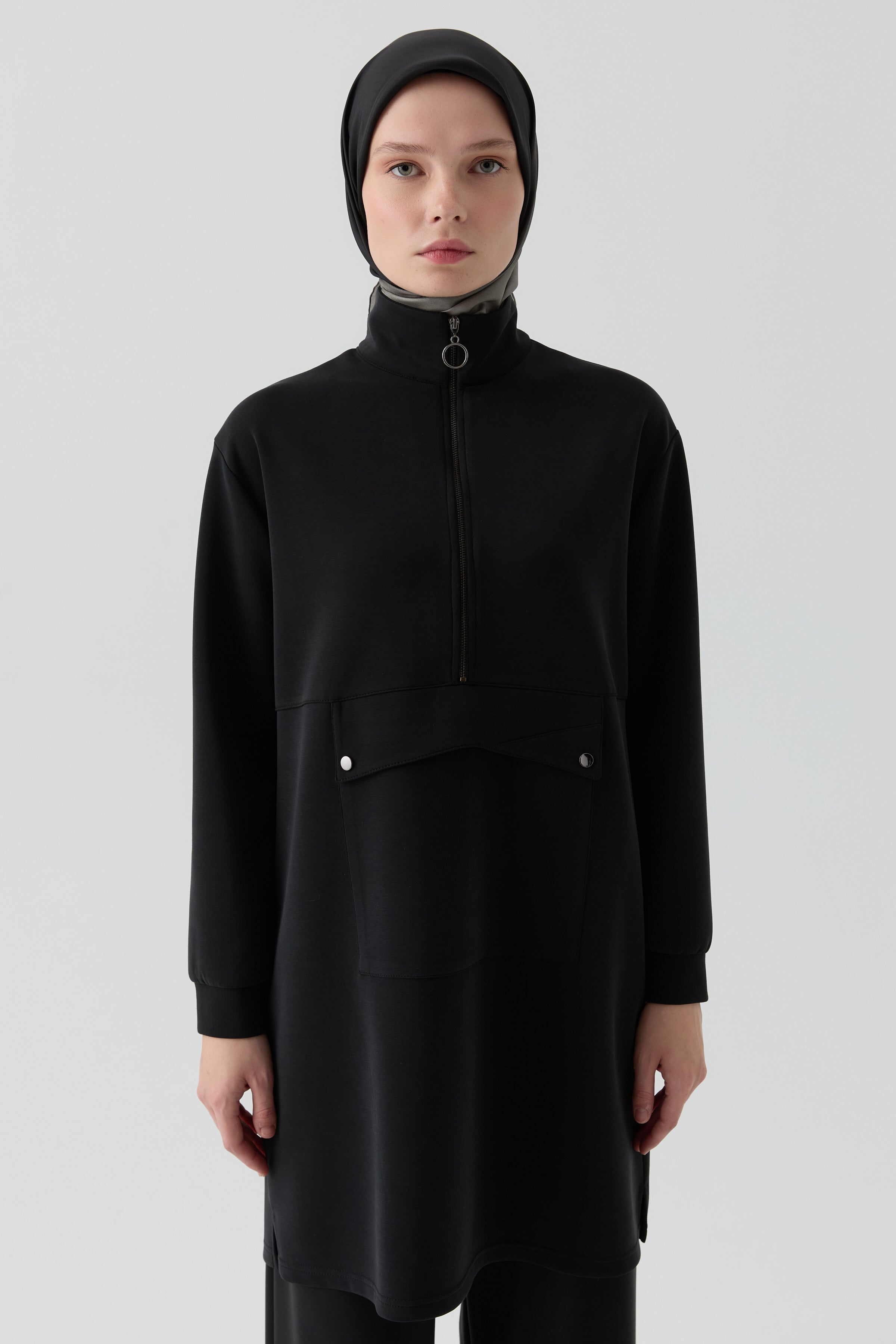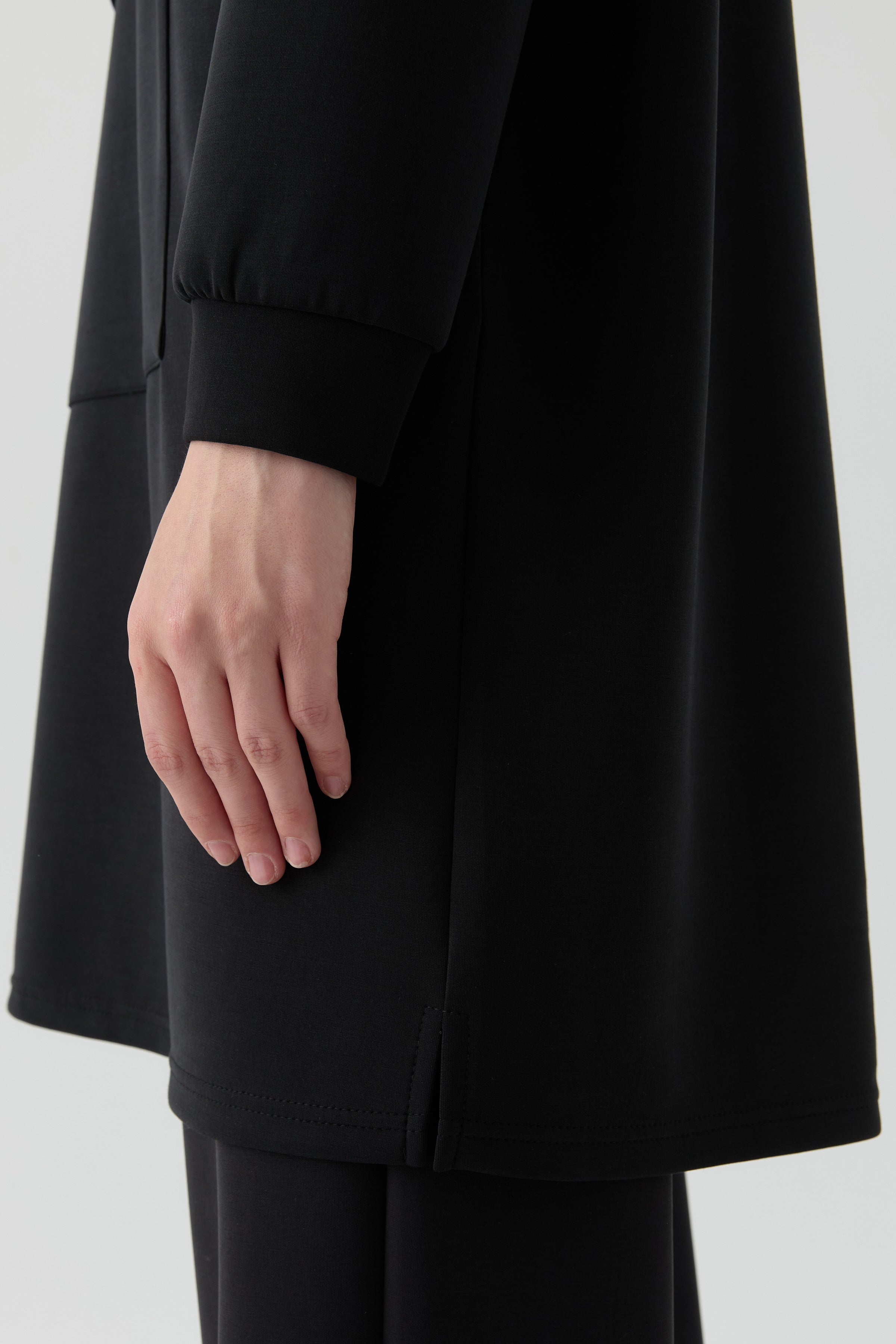 This tunic, complete with a minimalist design and practical pocket detail, adds both comfort and functionality to your everyday style. Its relaxed cut and modern lines allow for freedom of movement throughout the day, while its timeless elegance makes it a must-have in your wardrobe.