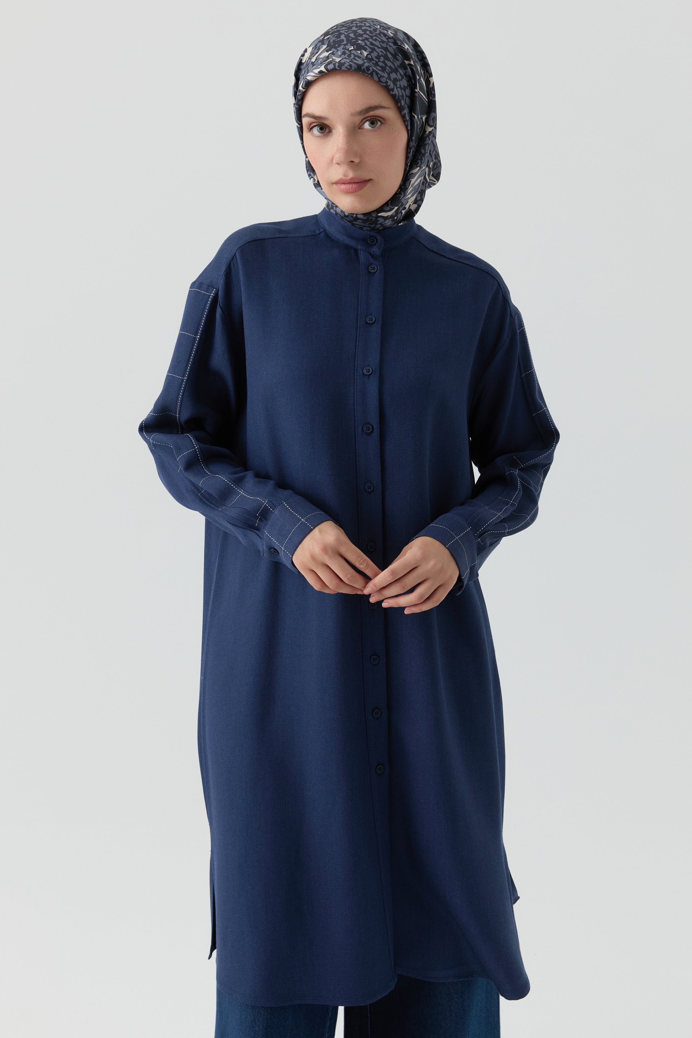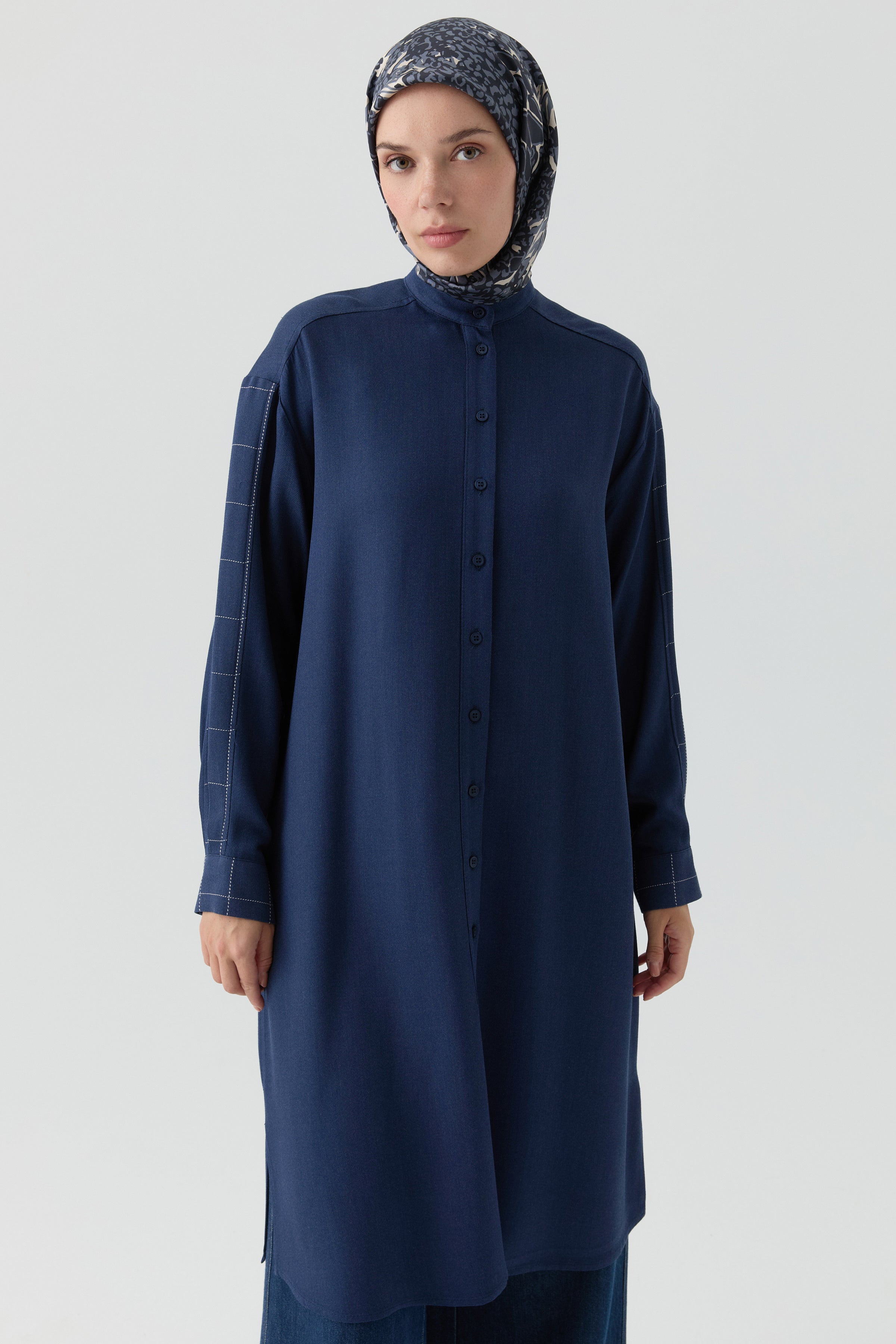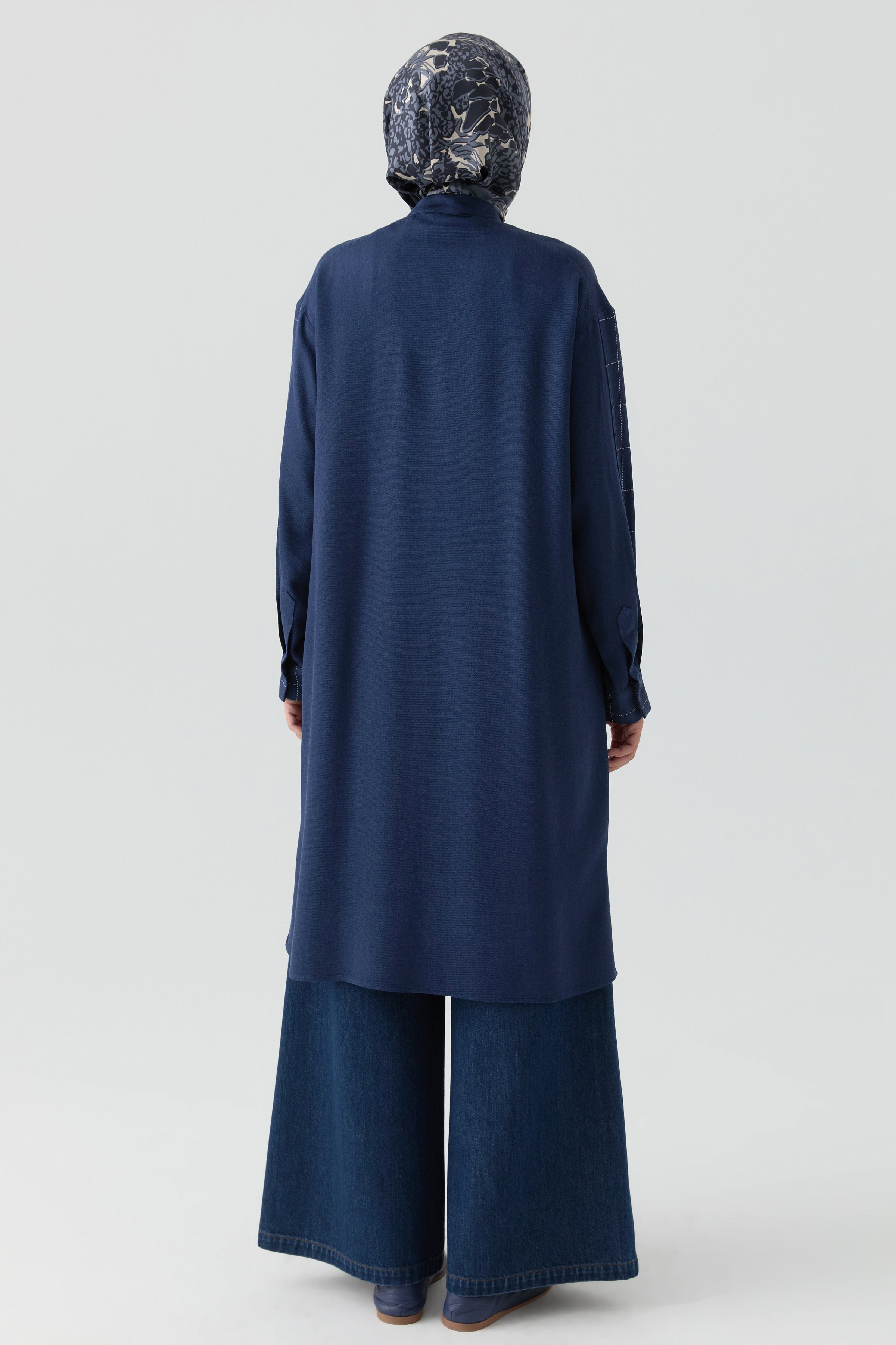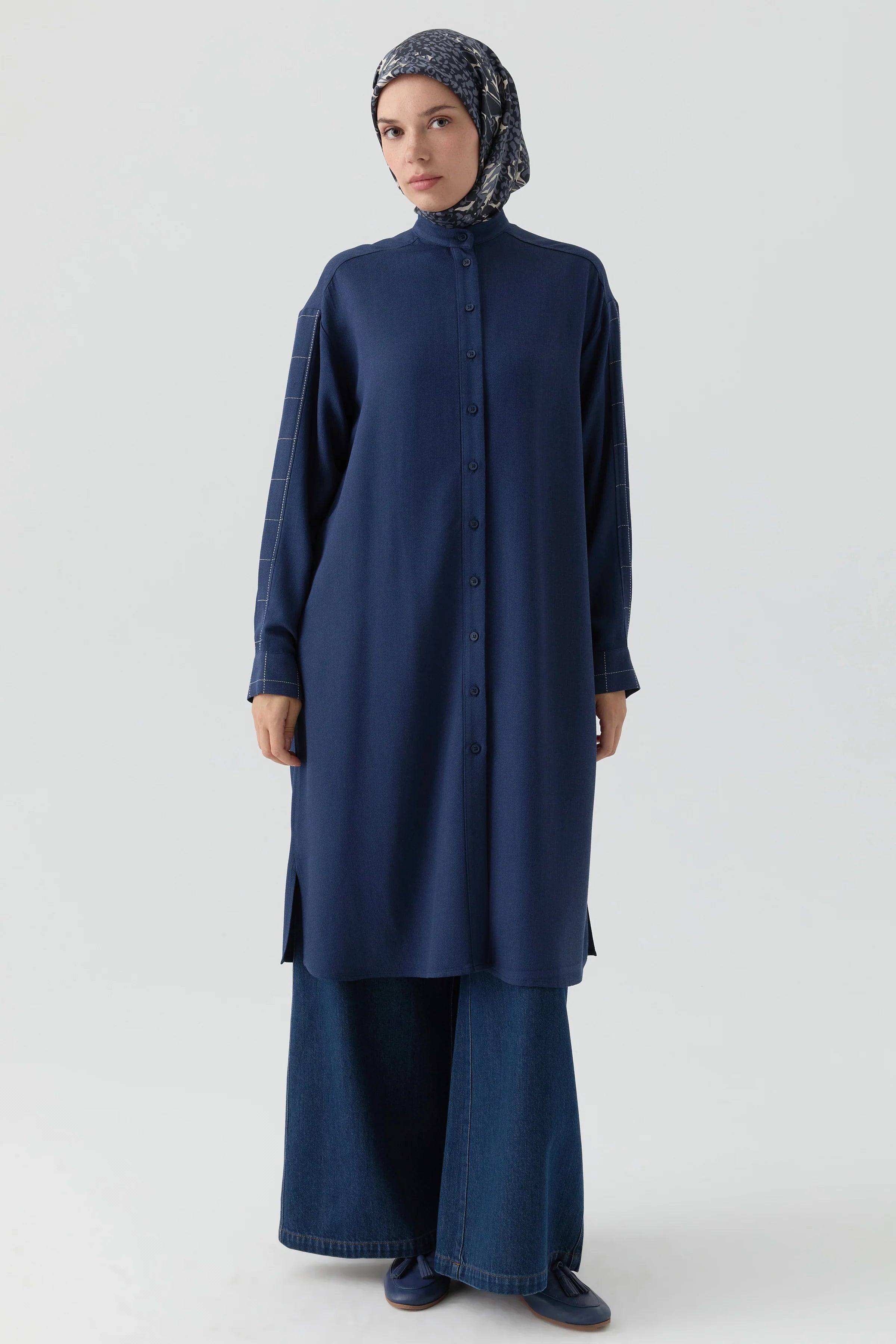 Its square patterns and special sleeve details add a touch of elegance to your everyday style. Its relaxed cut ensures all-day comfort, while its chic design complements any outfit.