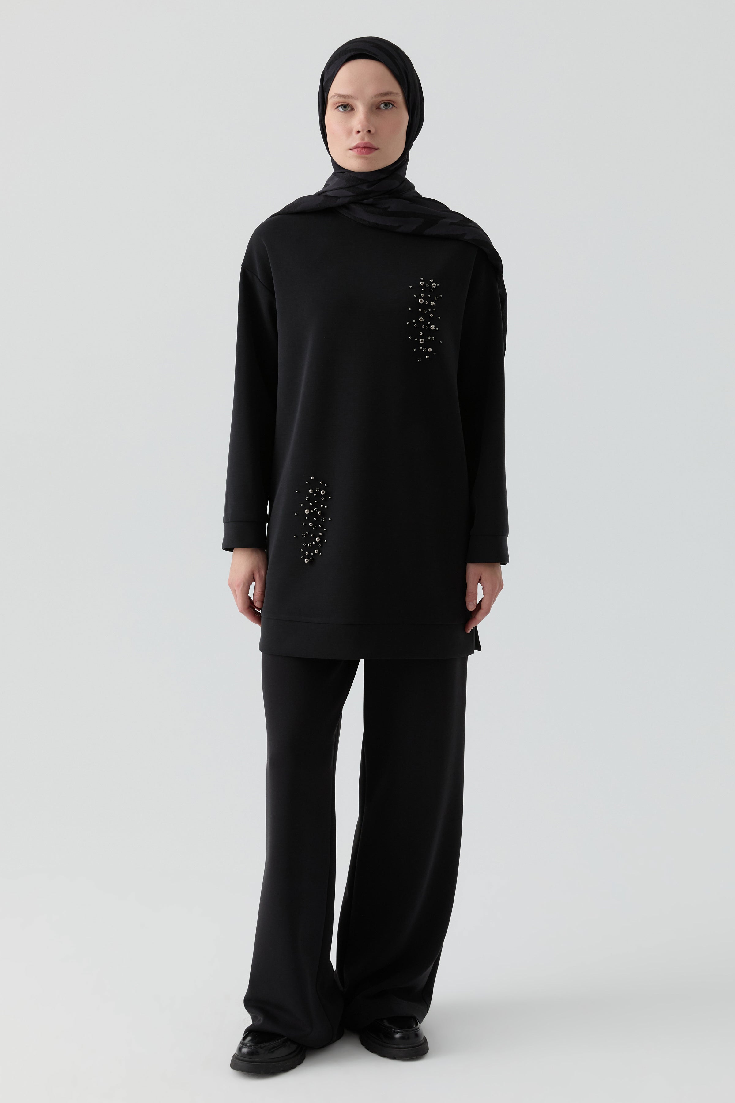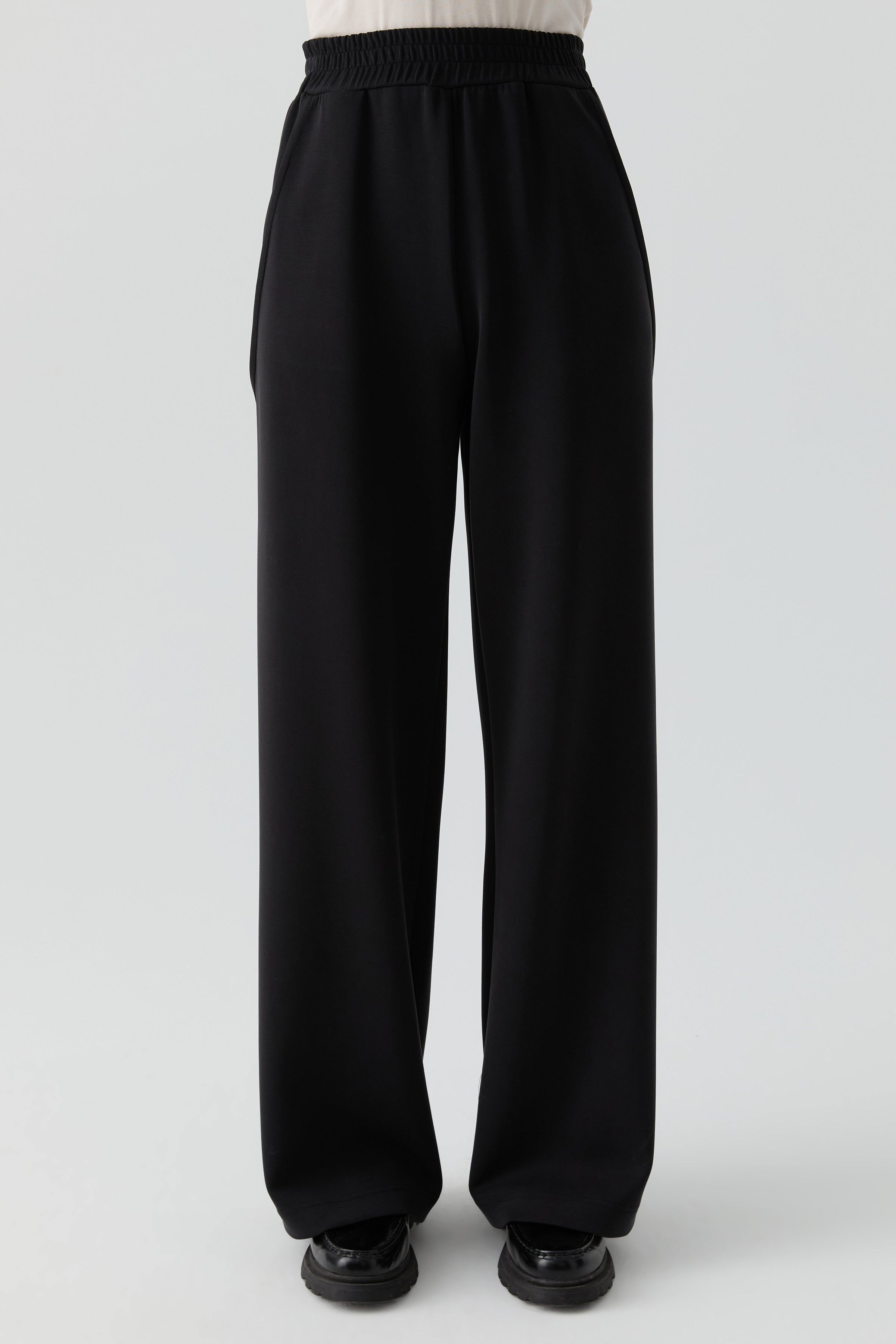 These trousers, with their soft knit texture for all-day comfort, add a touch of elegance to your everyday style with their modern cut. Their minimalist design makes them easy to pair with different tops, while their comfortable fit allows for freedom of movement.