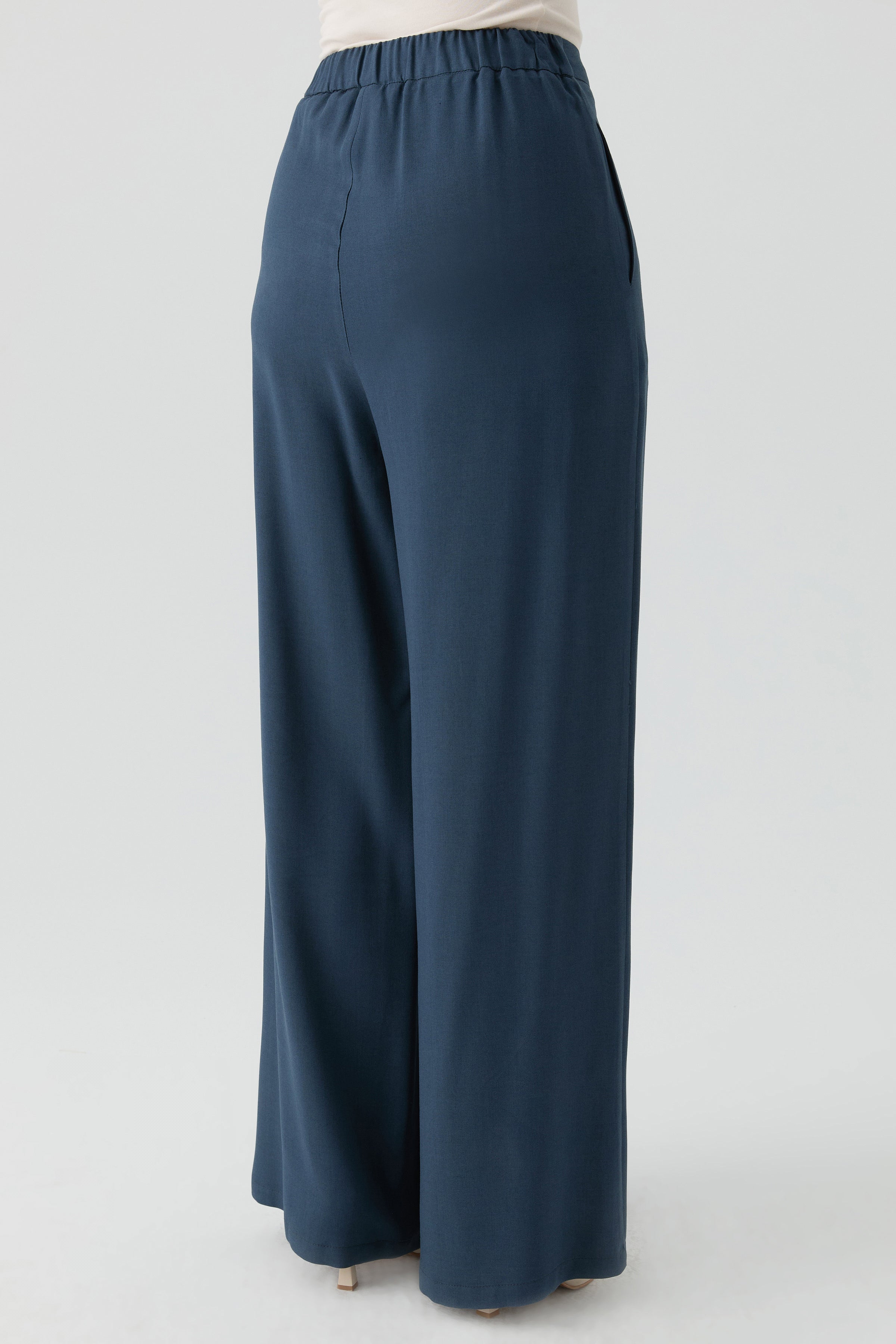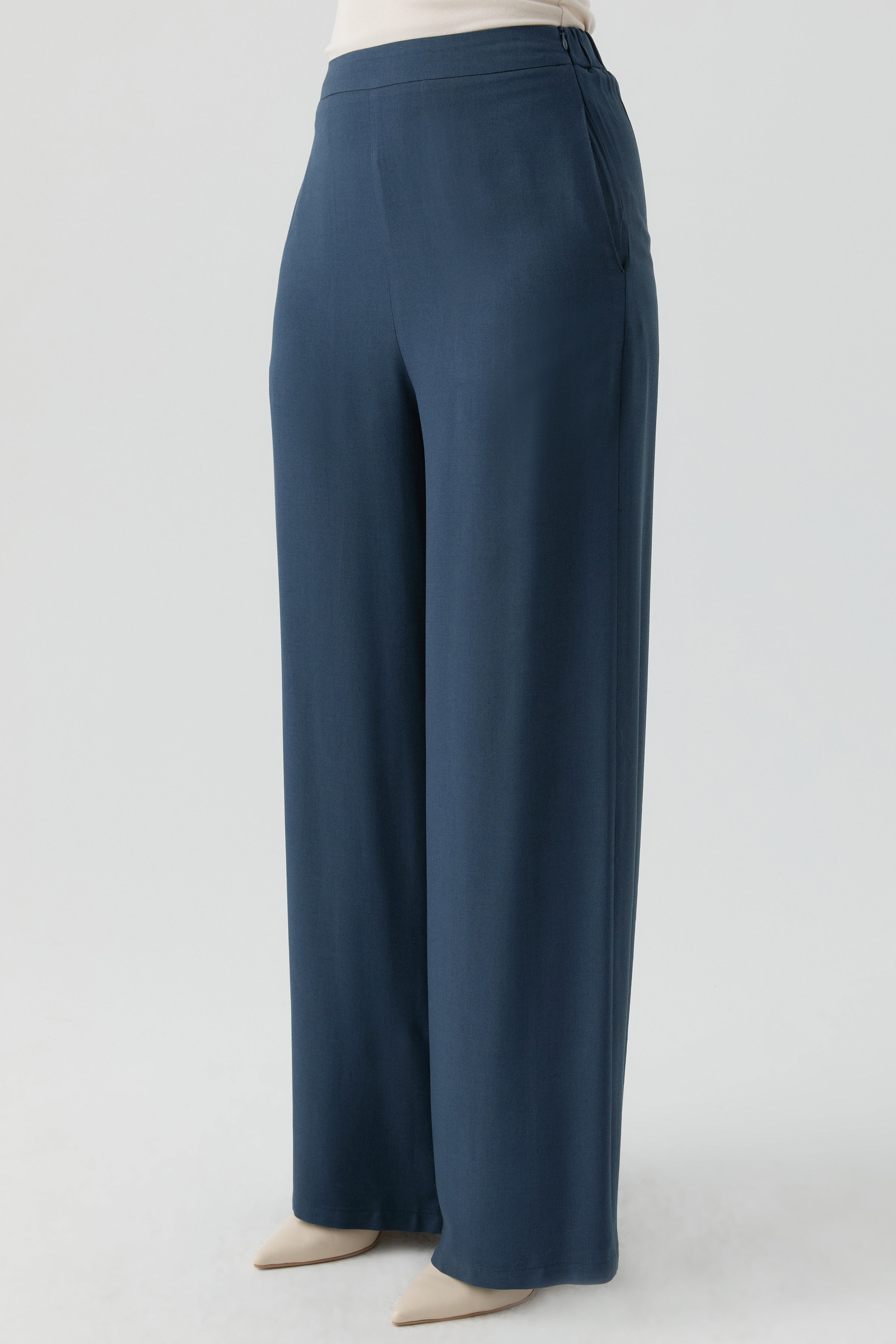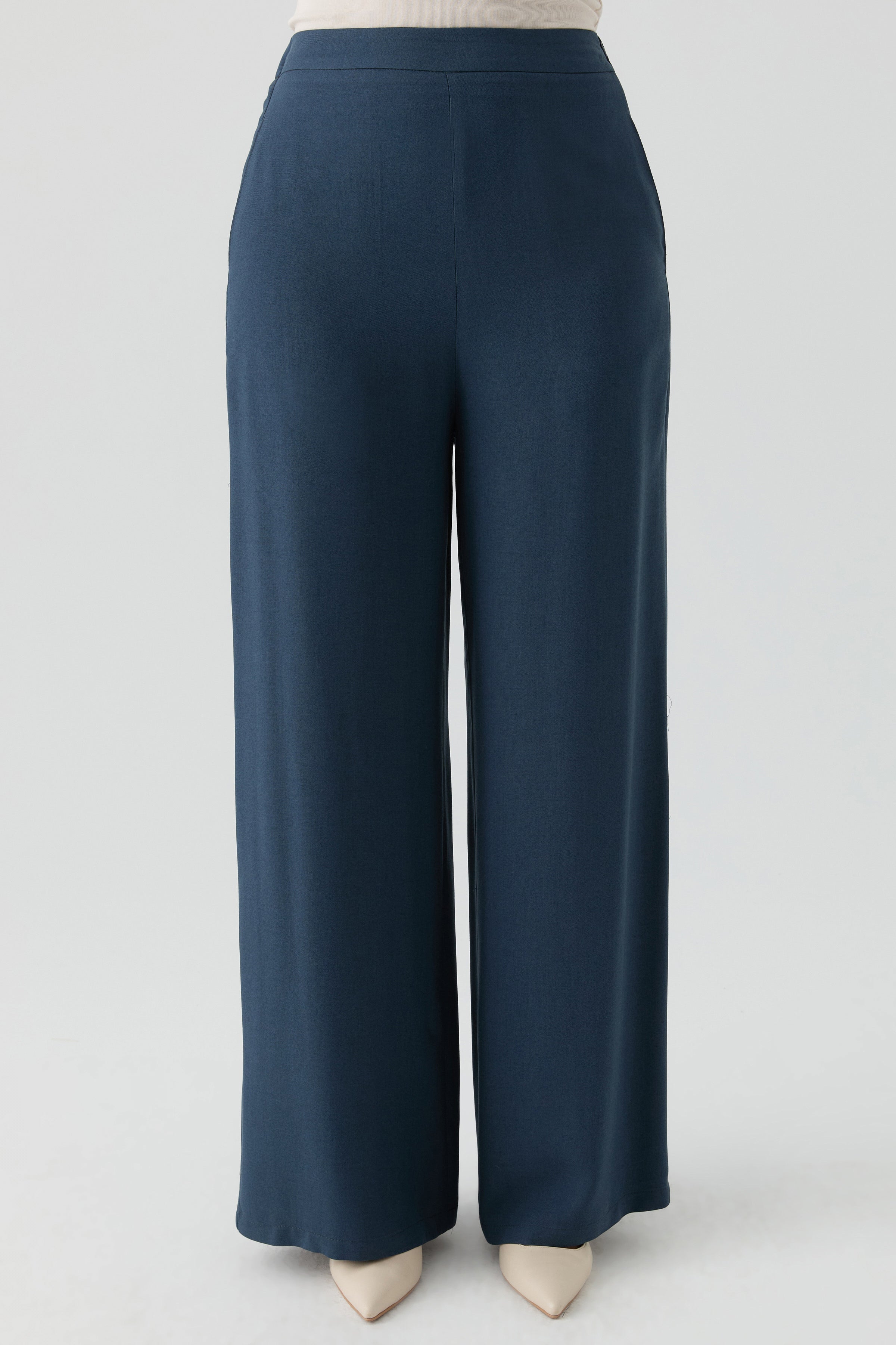 Offering a modern, wide-leg feel, these palazzo trousers, made of flowing fabric, ensure all-day comfort. Their high-waisted design and sleek cut add a sophisticated touch to any outfit, elevating your style for both work and everyday wear.