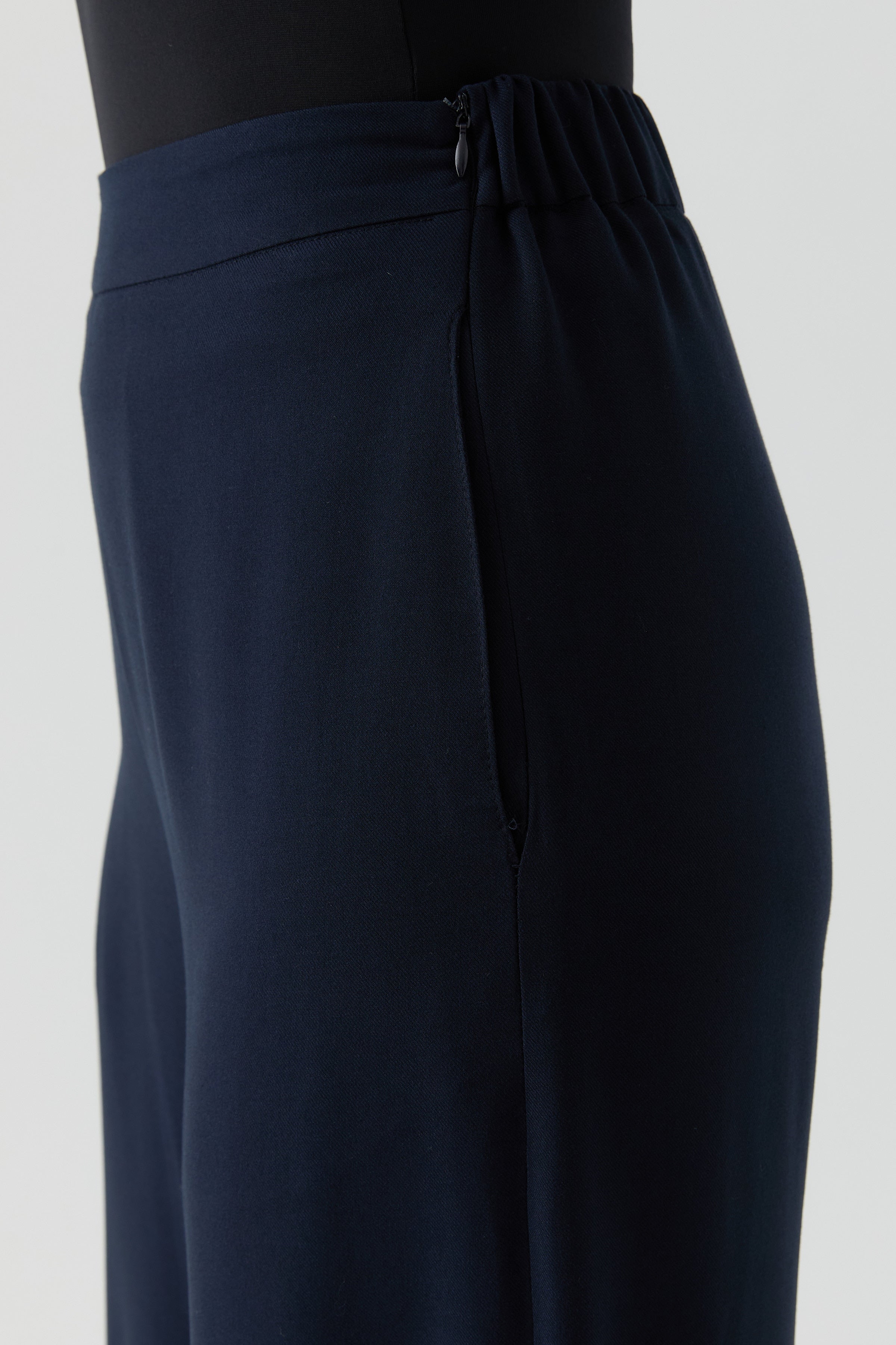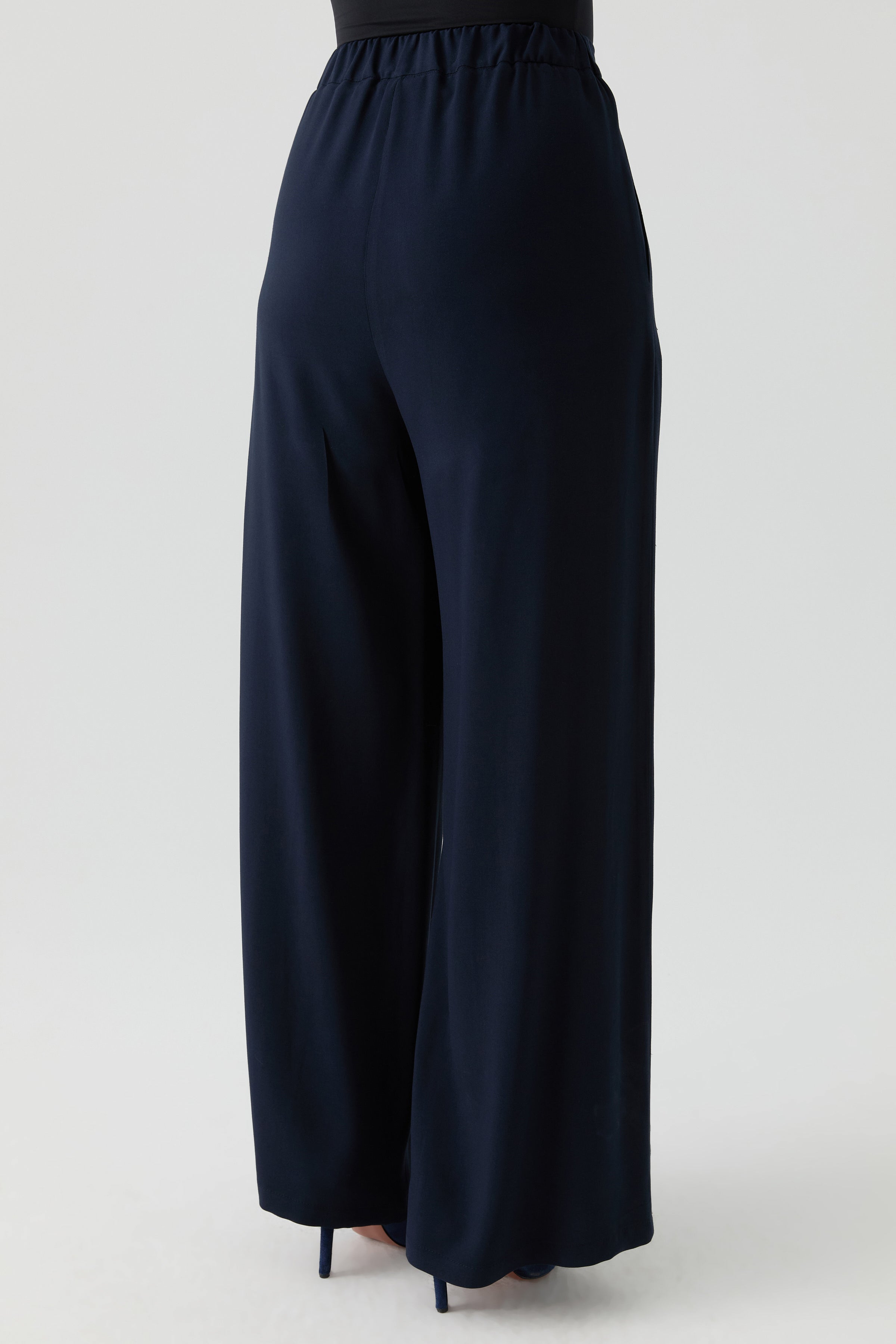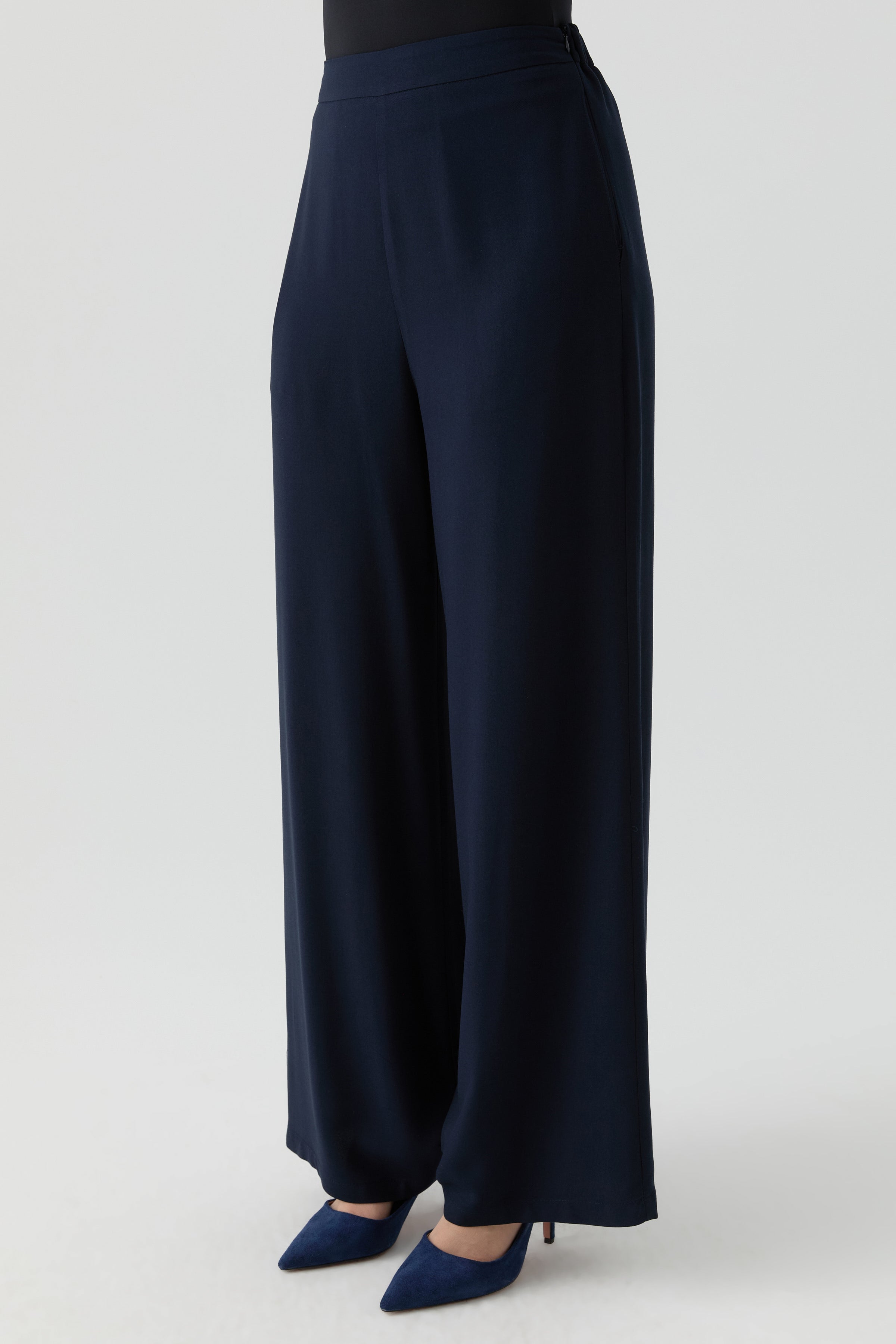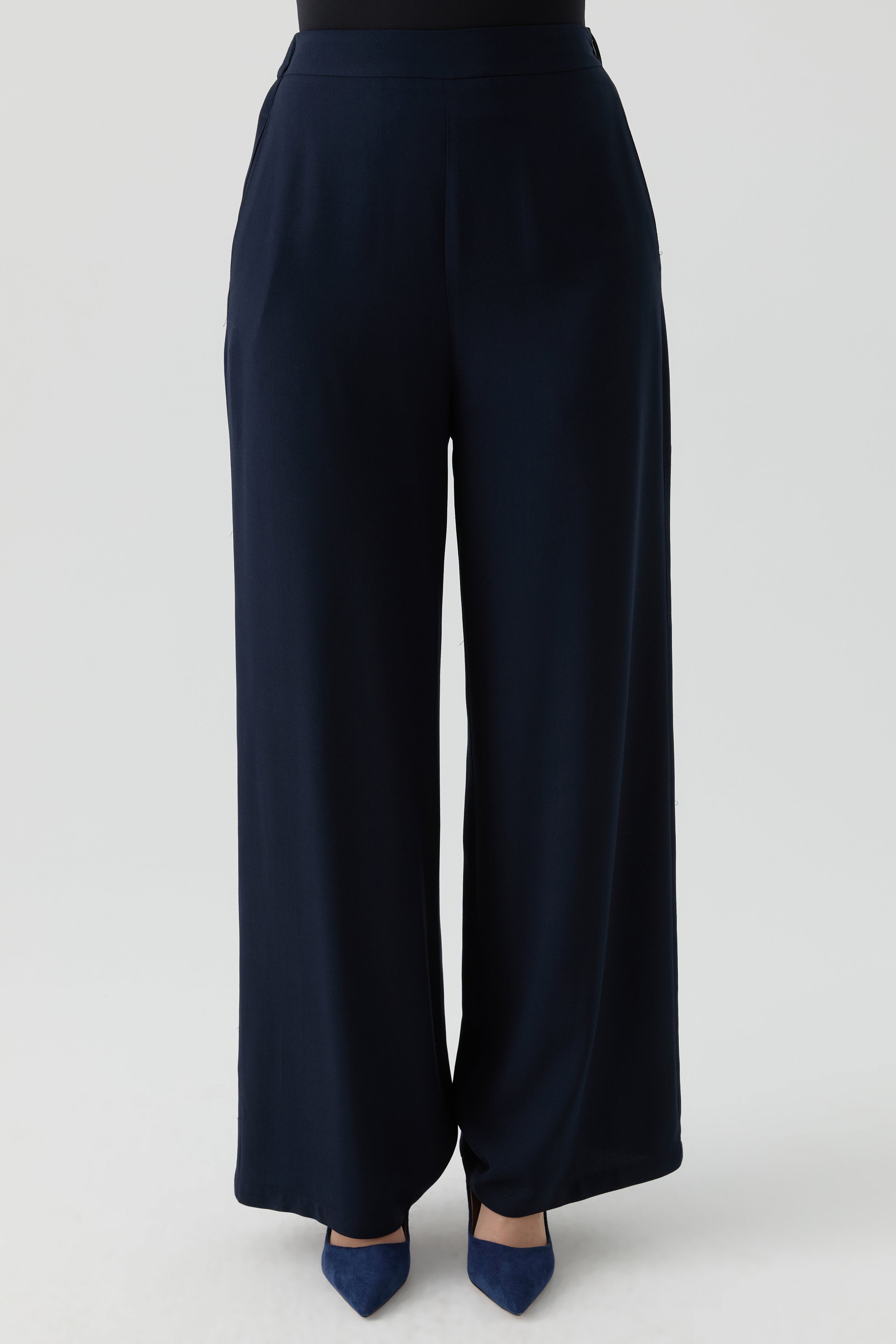 Offering a modern, wide-leg feel, these palazzo trousers, made of flowing fabric, ensure all-day comfort. Their high-waisted design and sleek cut add a sophisticated touch to any outfit, elevating your style for both work and everyday wear.