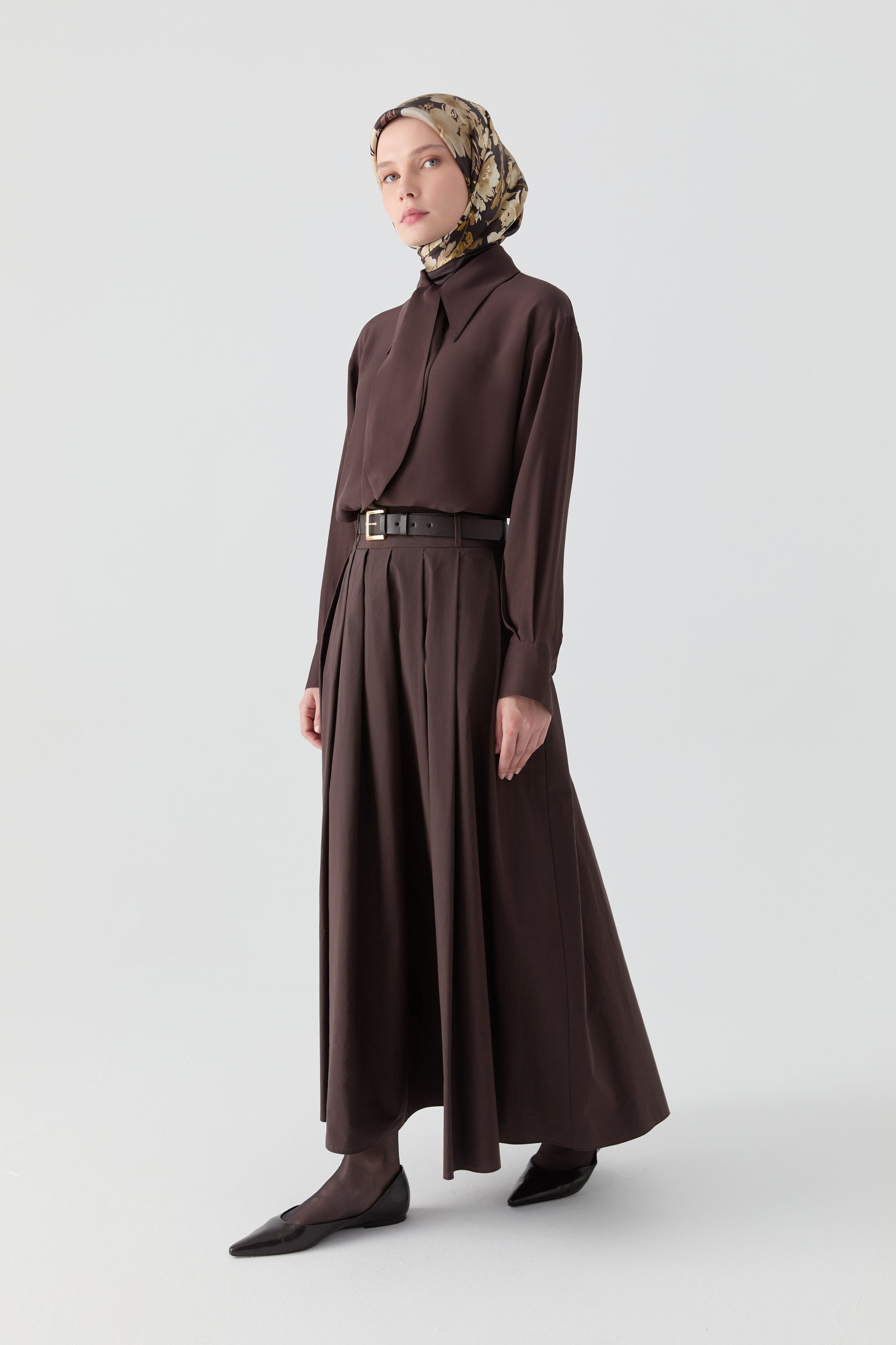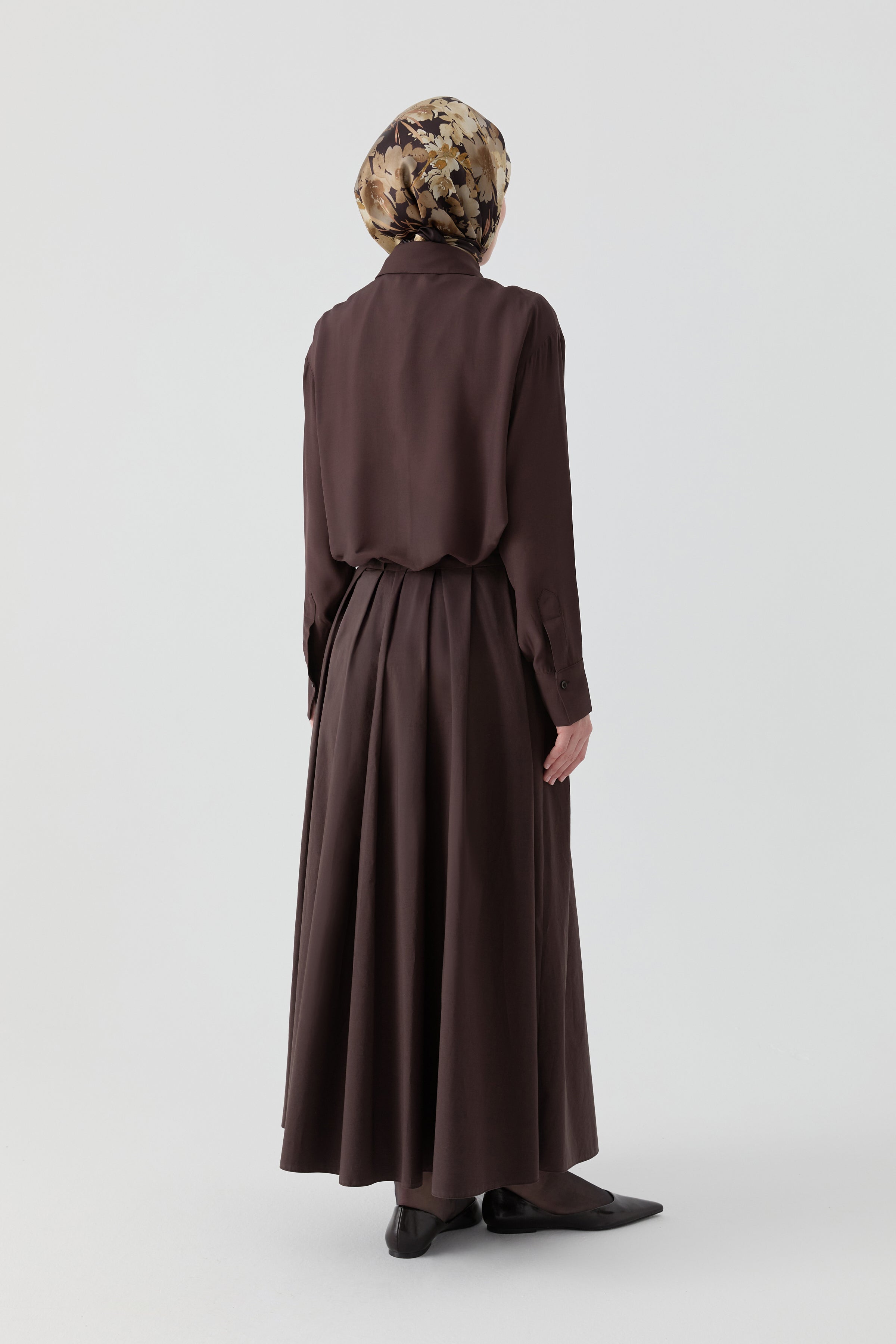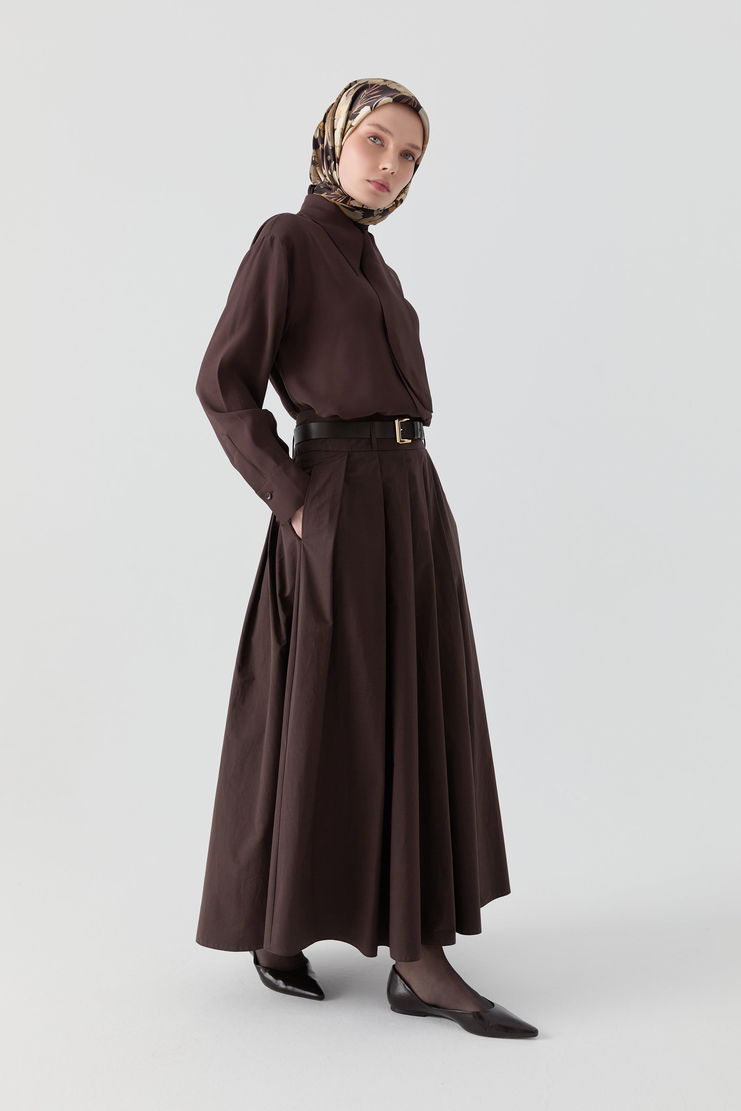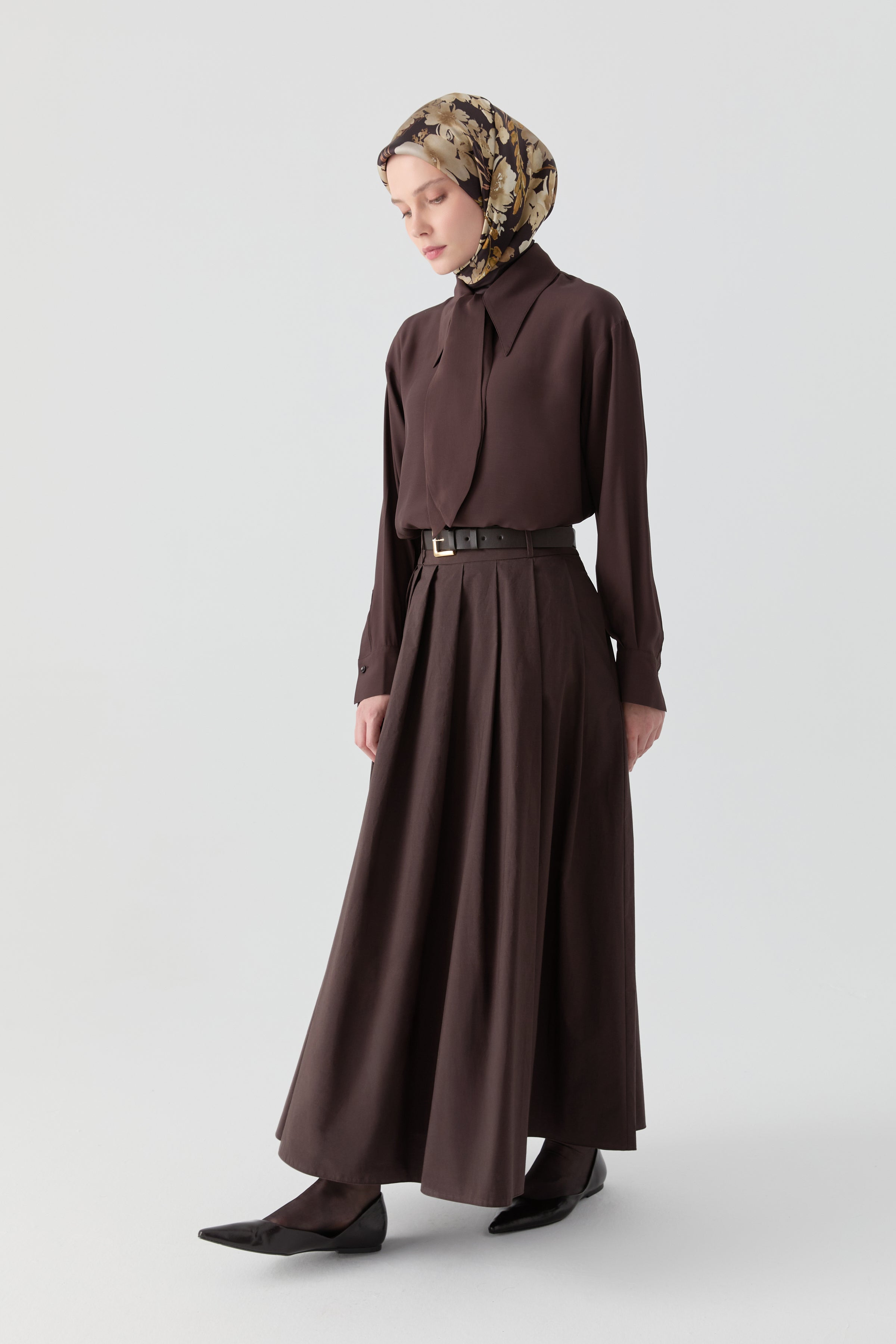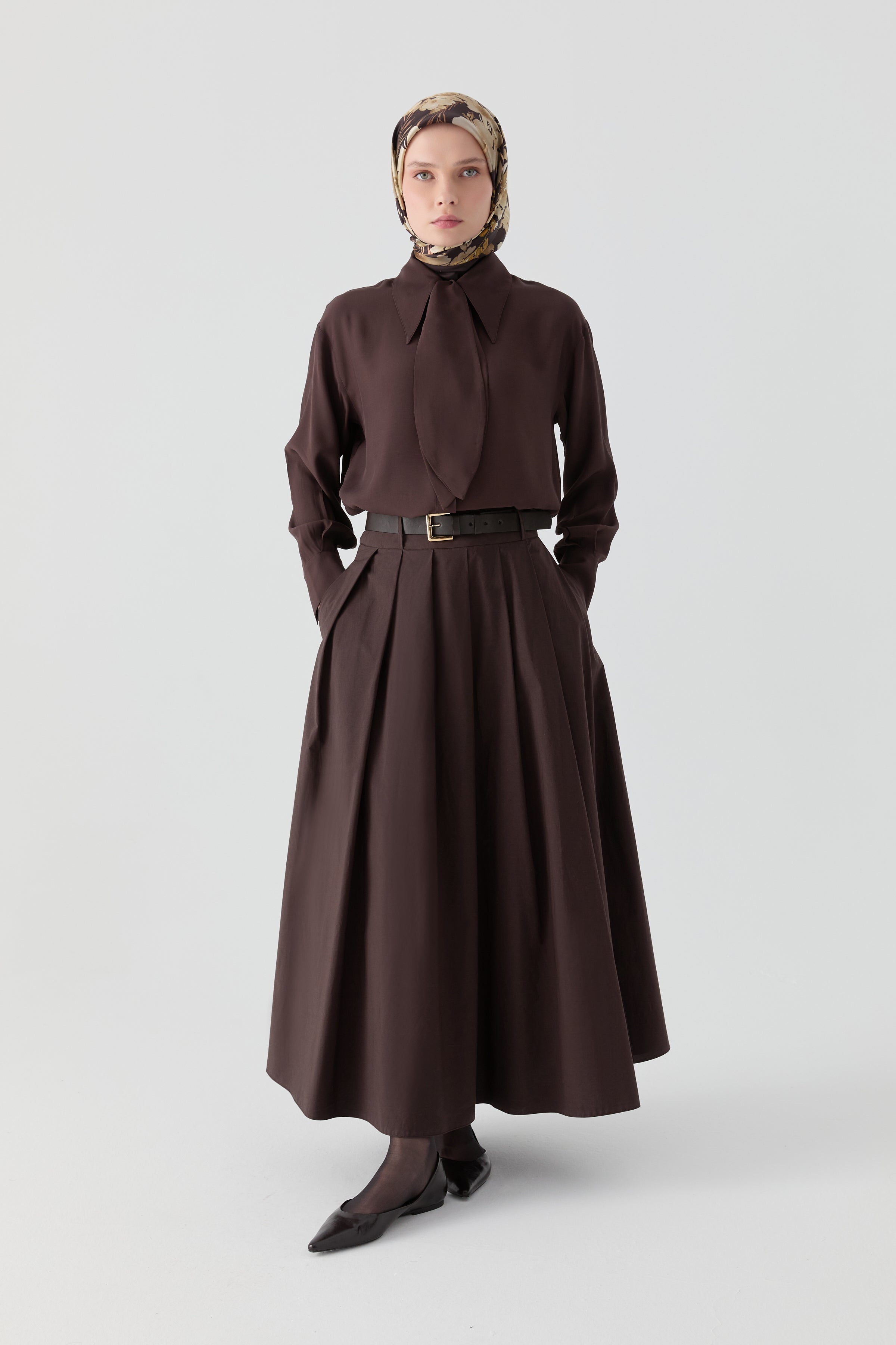A wardrobe essential with its light and elegant look, this skirt offers a romantic silhouette with pleat details.