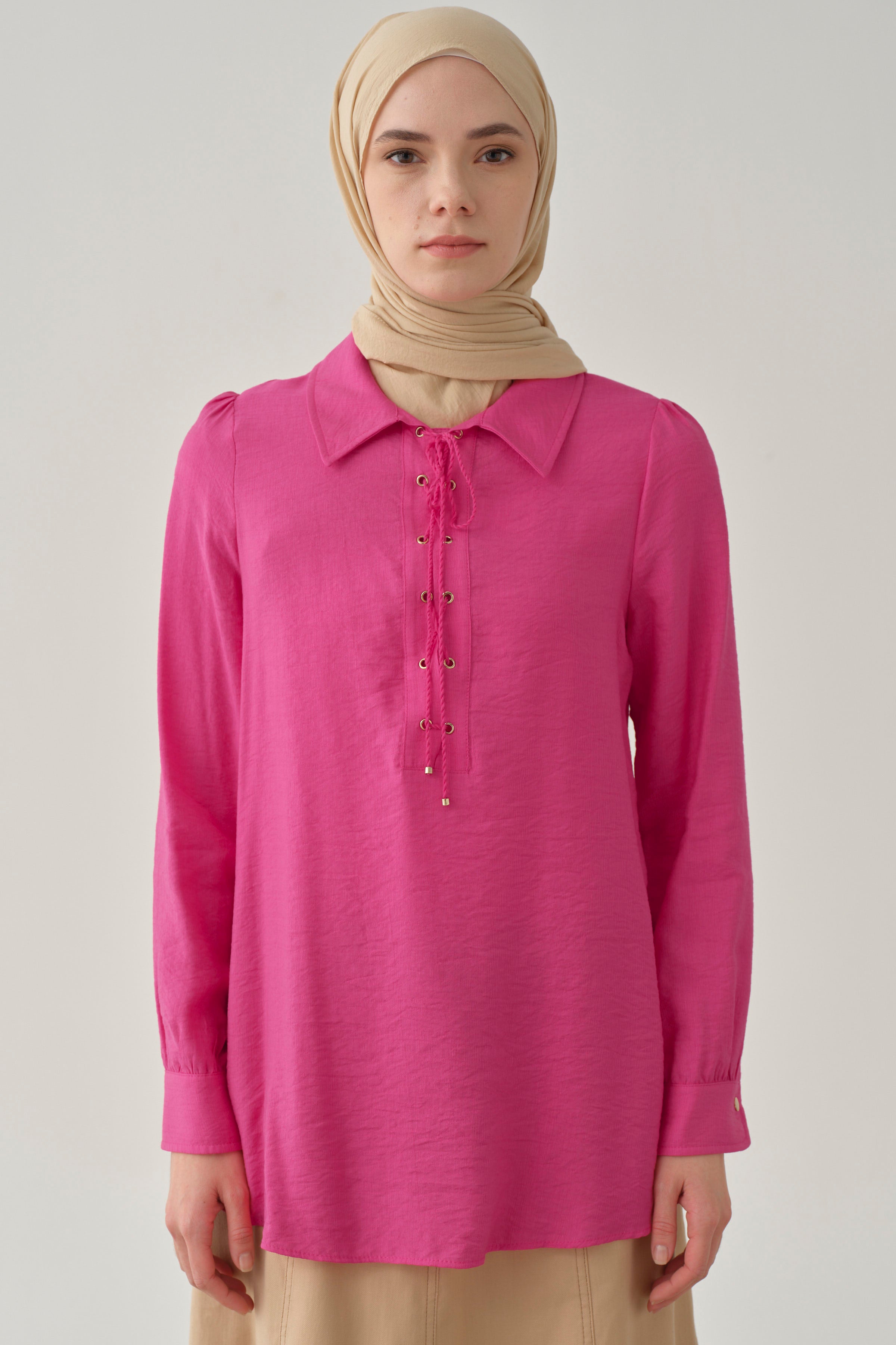 Cross Neck Blouse - Fuchsia